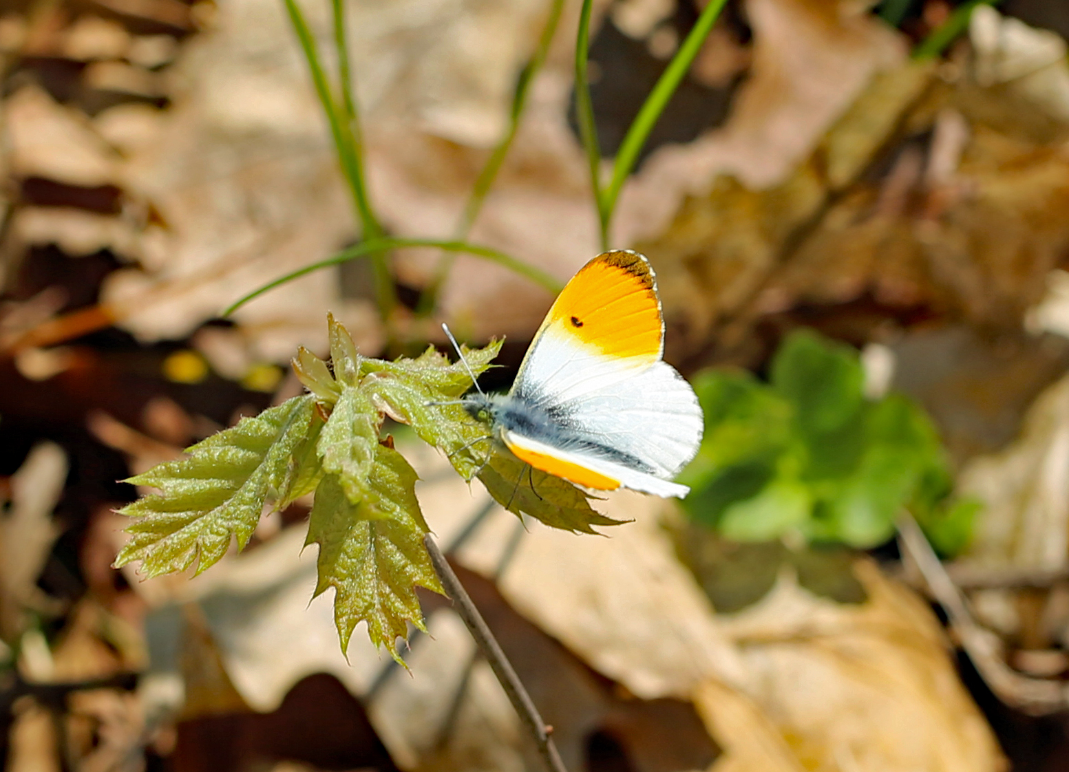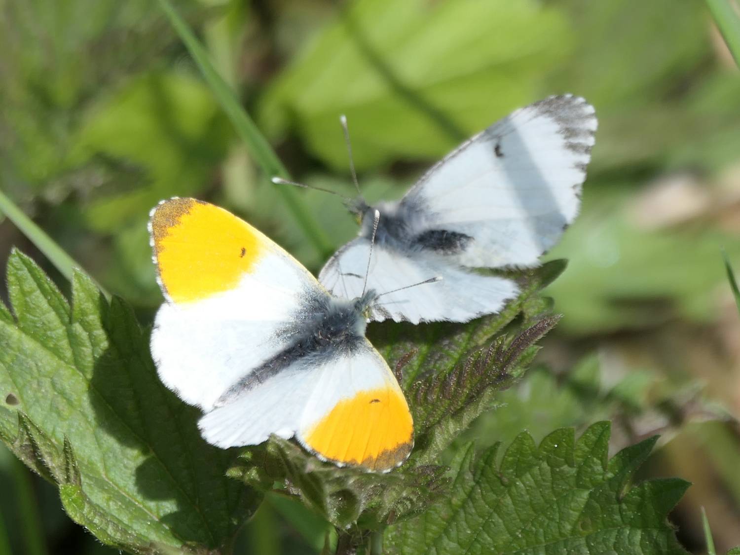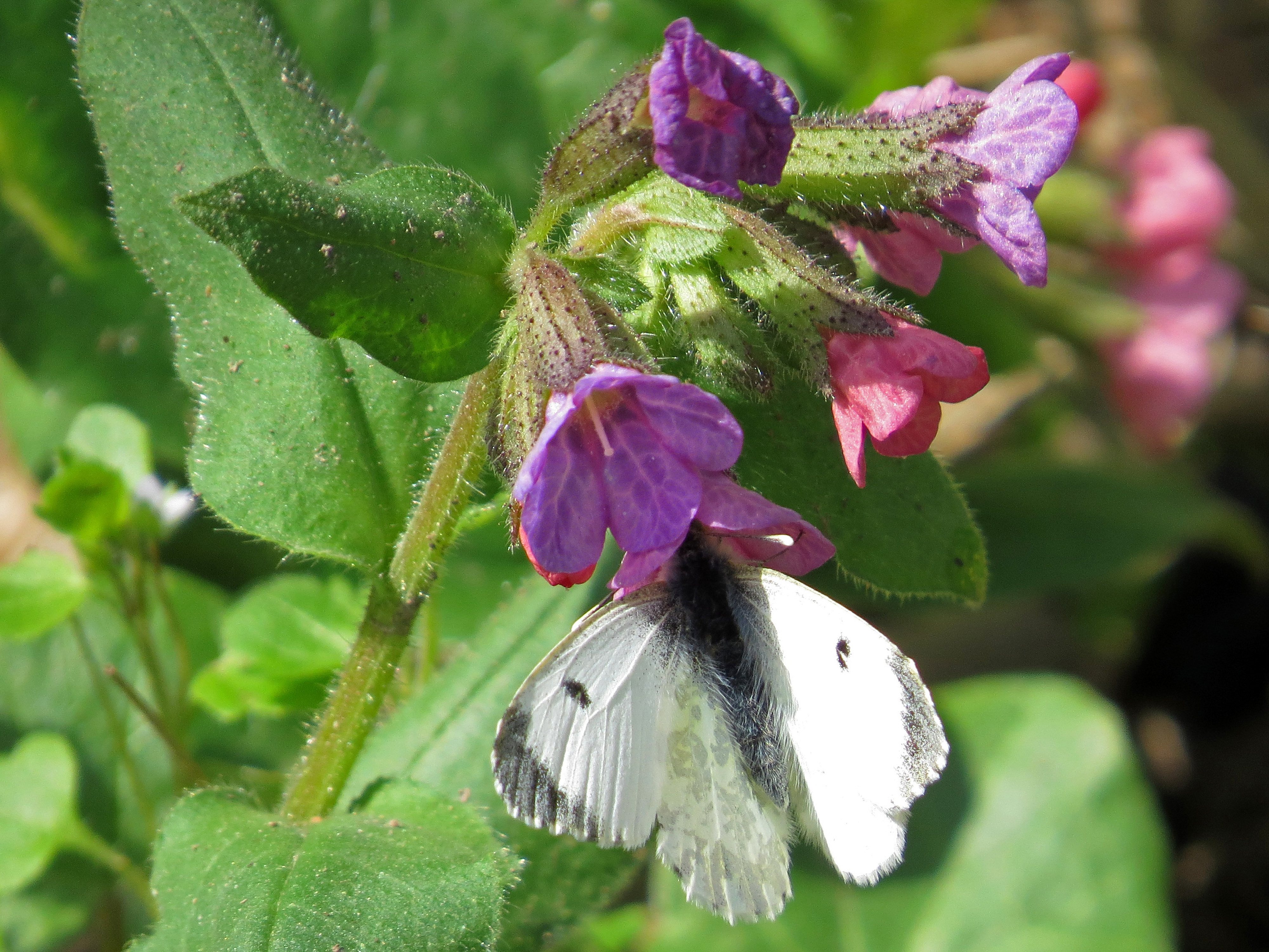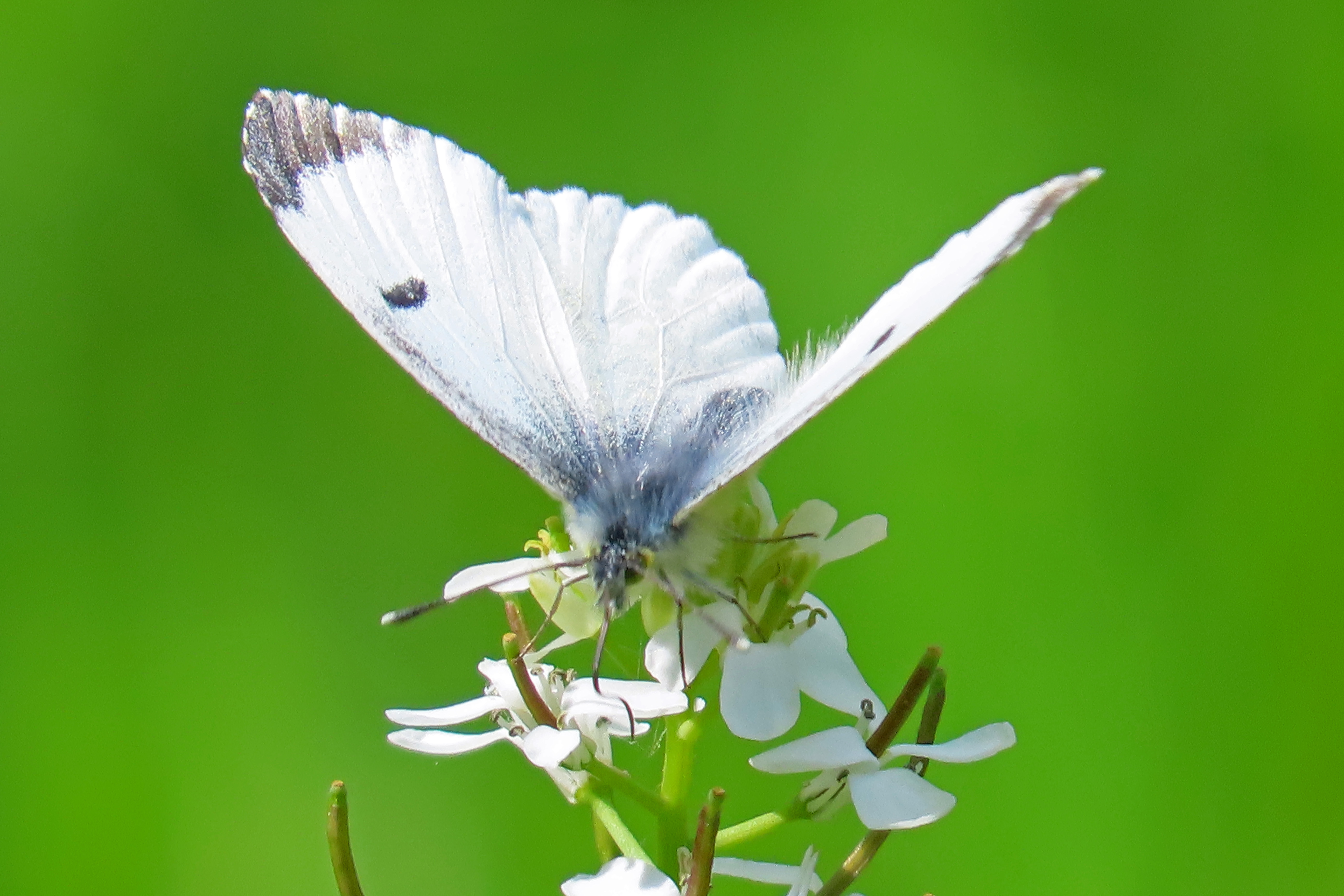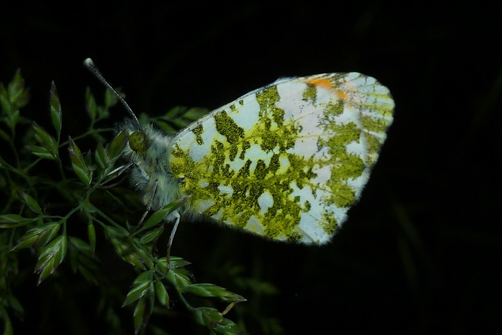 Aurorafalter (Anthocharis cardamines (Linnaeus, 1758)), Männchen, Blütenbesuch an Stellaria holostea, bei Nossen, April 2020 (© Andreas Hurtig)( Bild vergrößern)