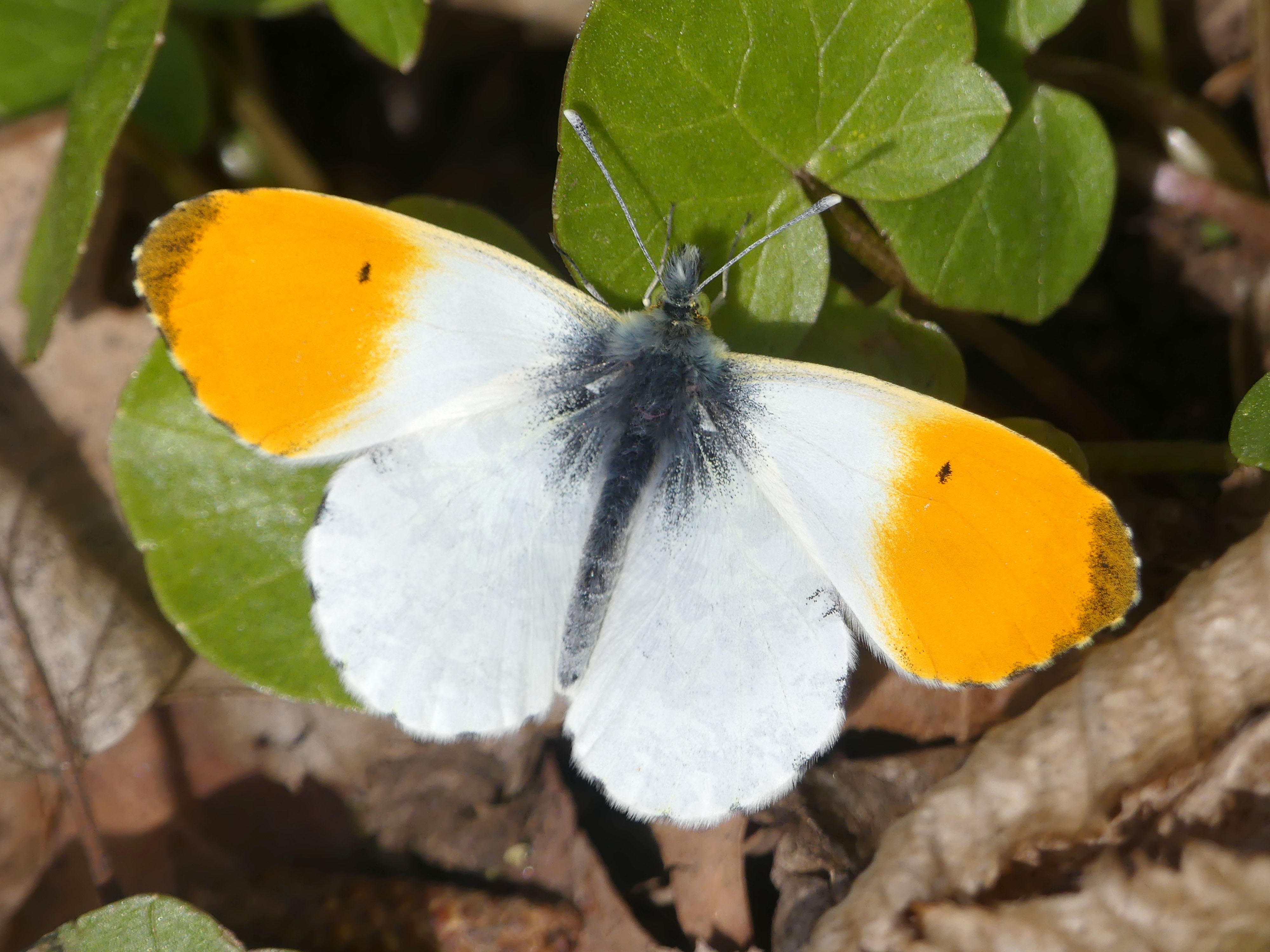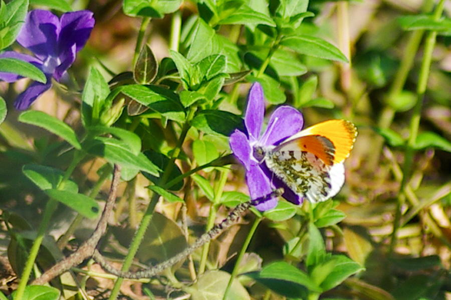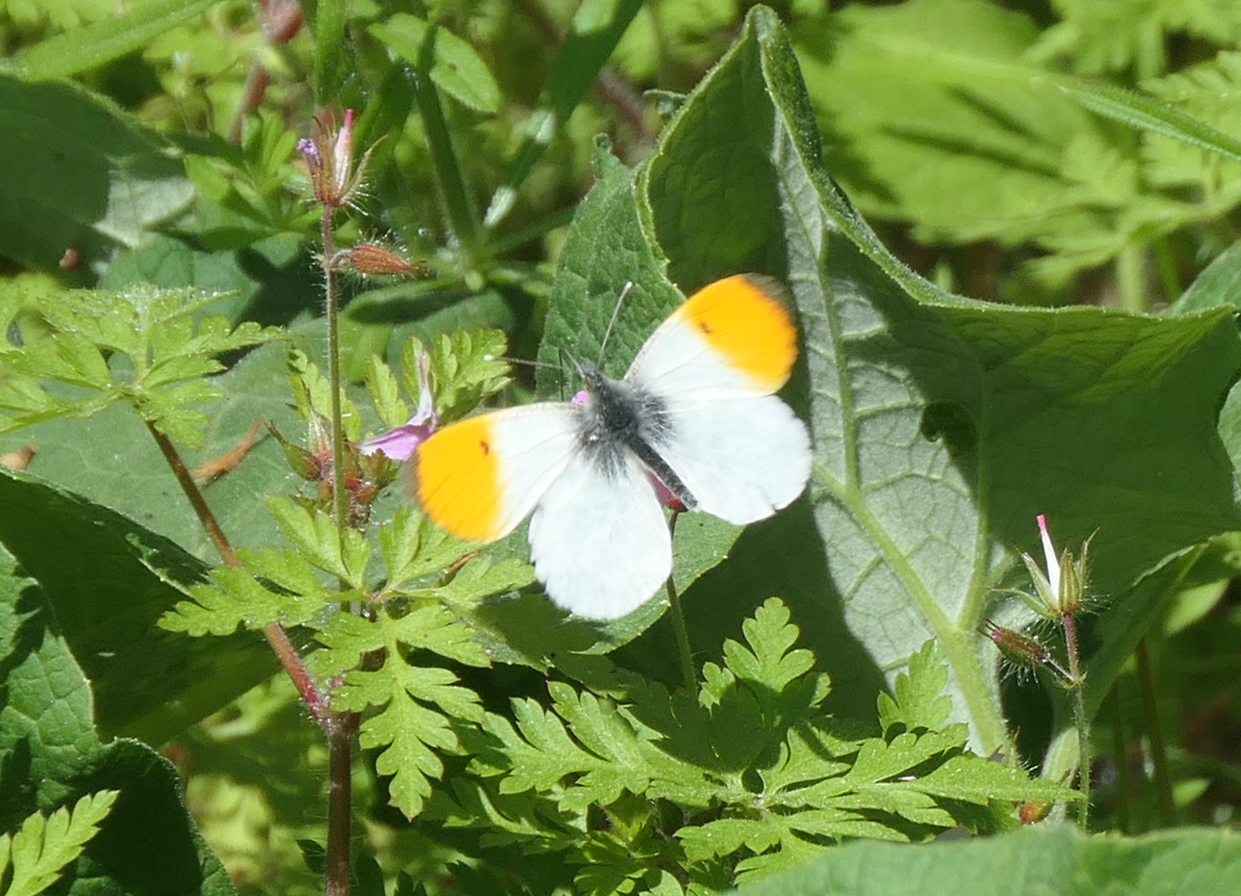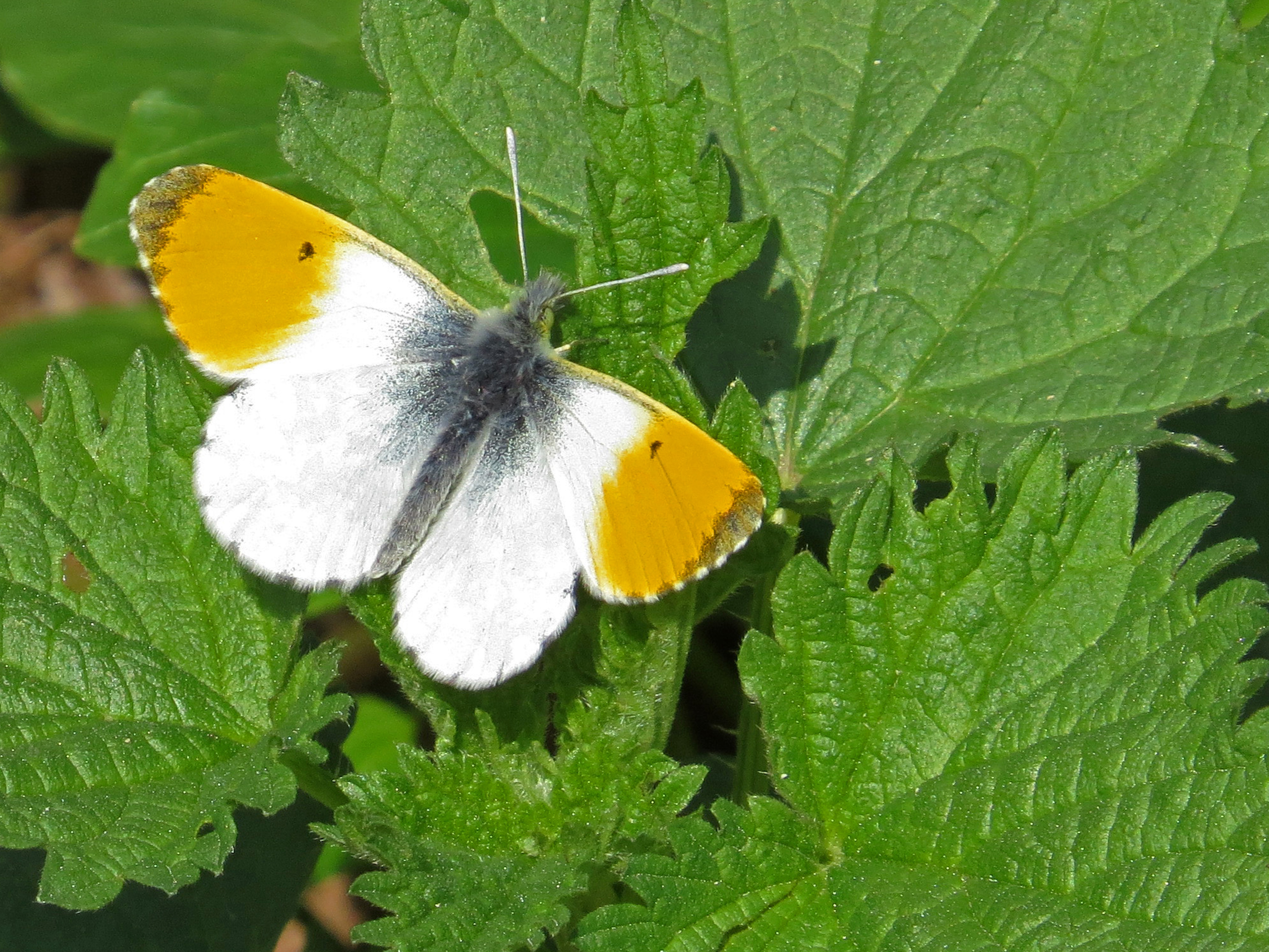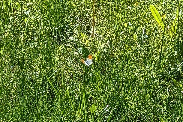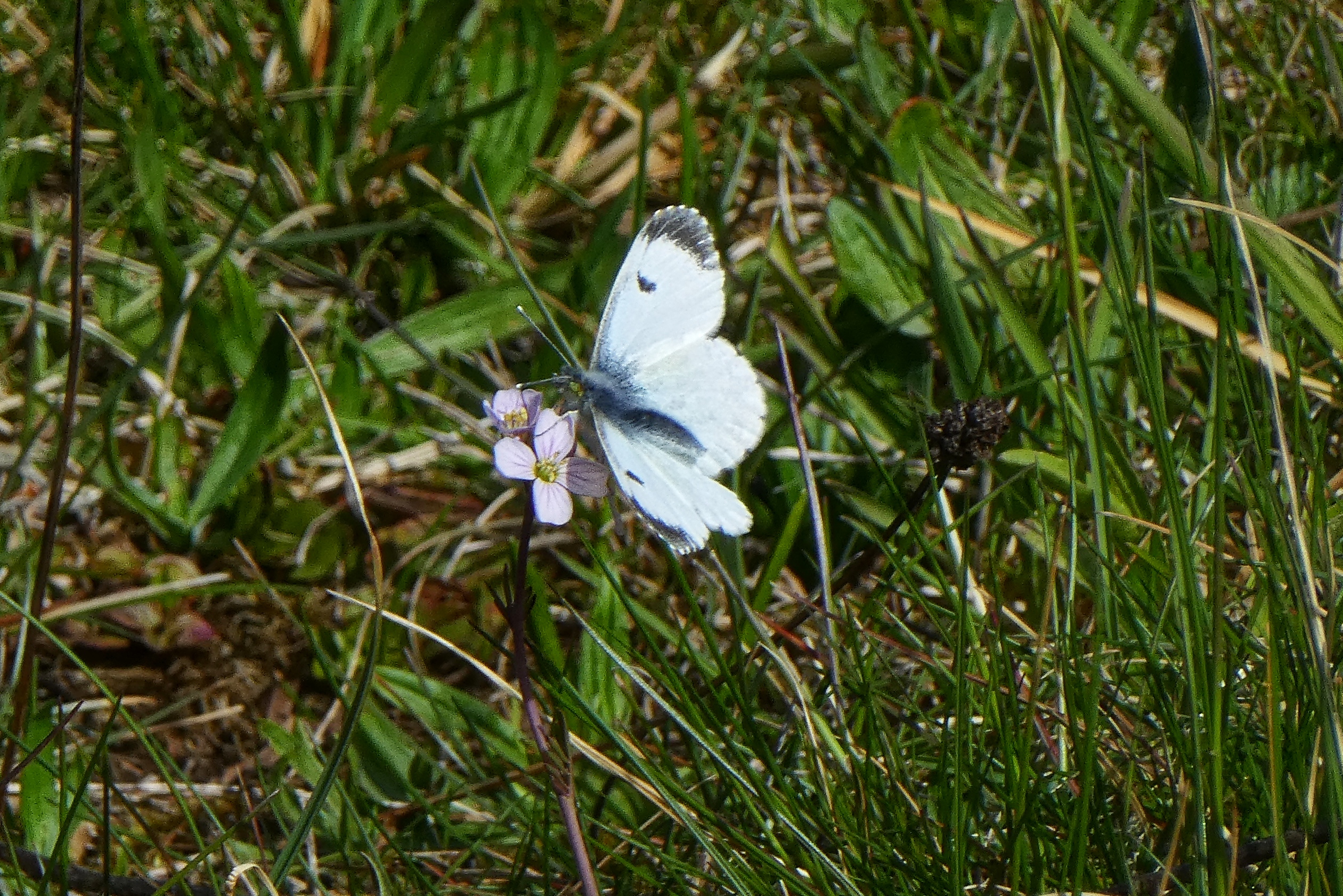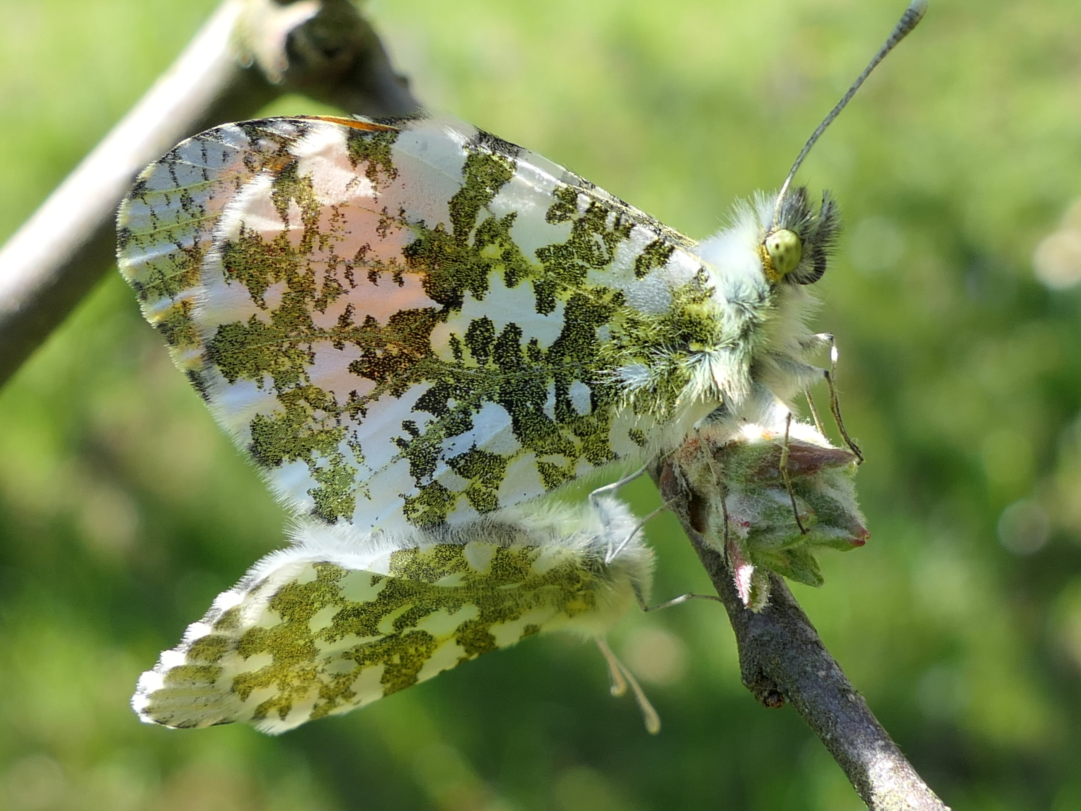Aurorafalter (Anthocharis cardamines (Linnaeus, 1758)), Männchen, Blütenbesuch an Stellaria holostea, bei Nossen, April 2020 (© Andreas Hurtig)( Bild vergrößern)