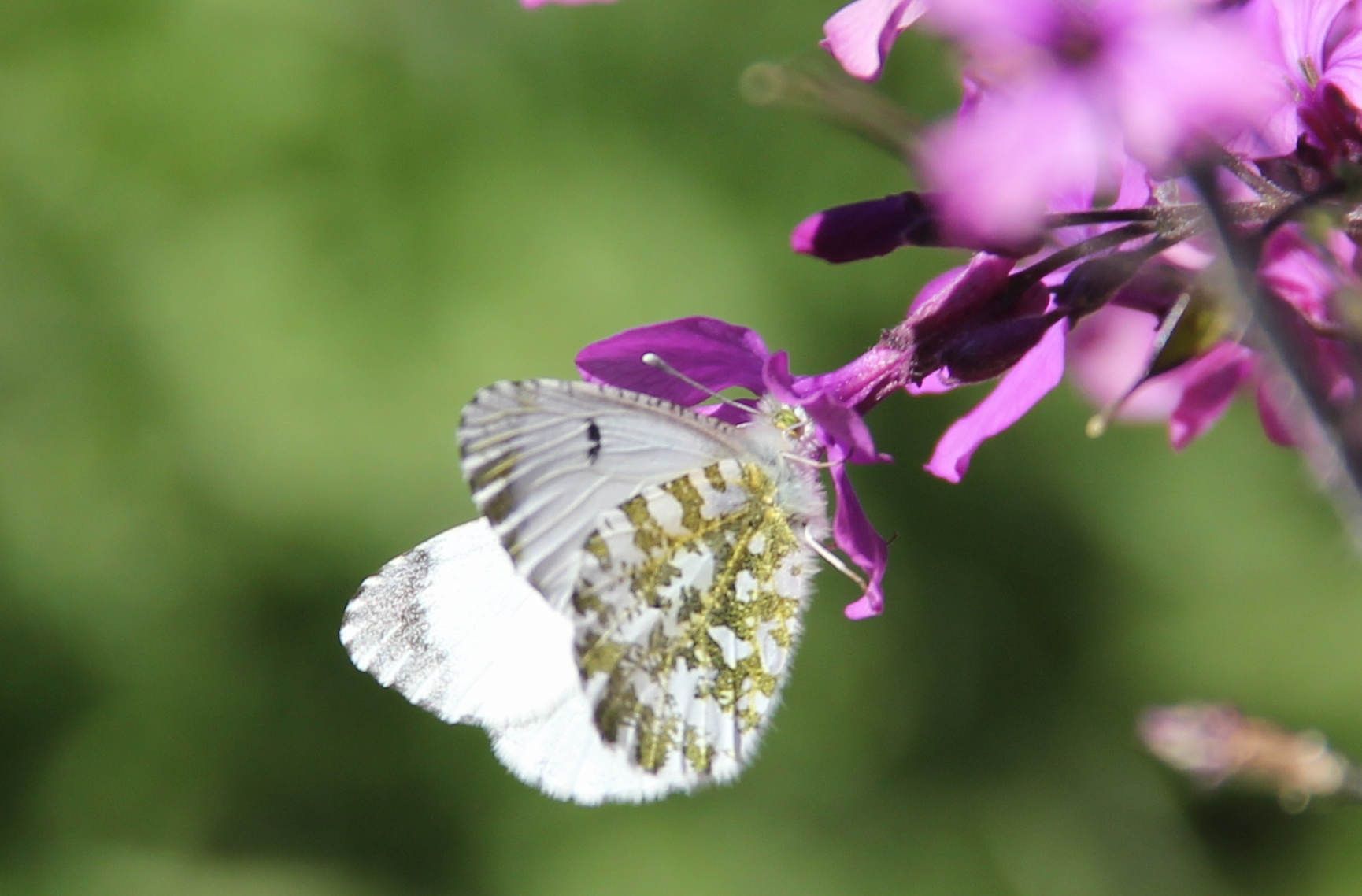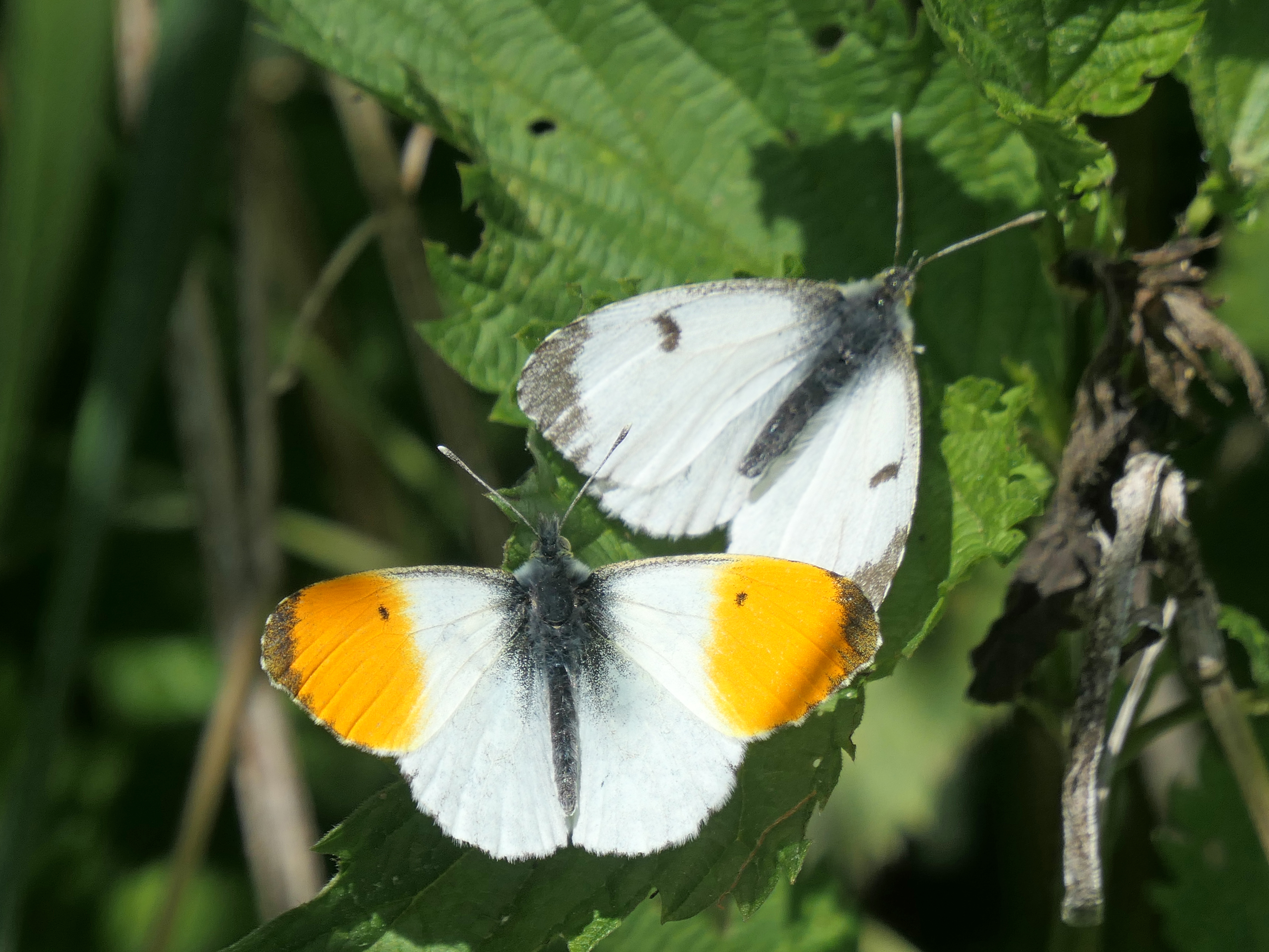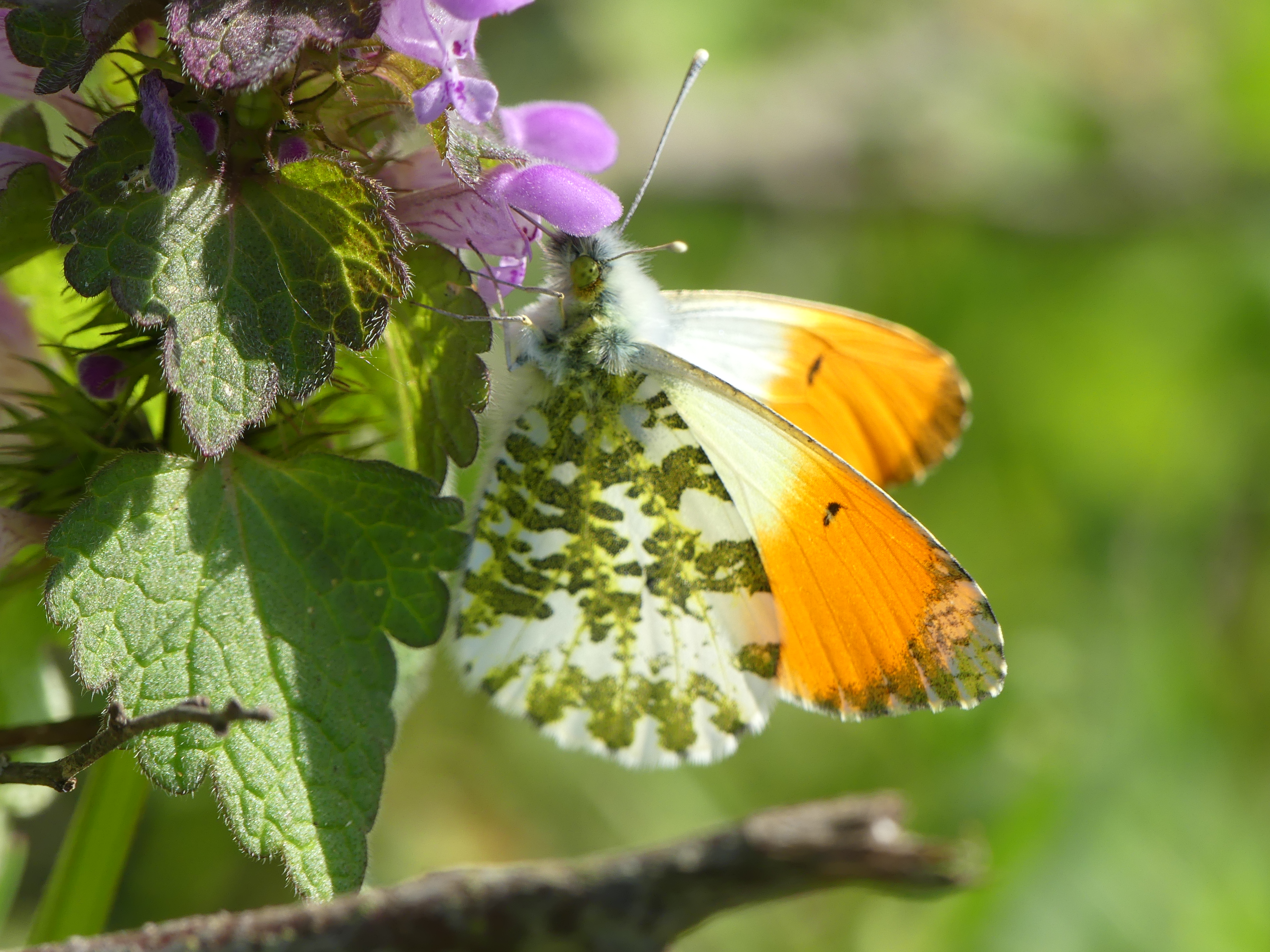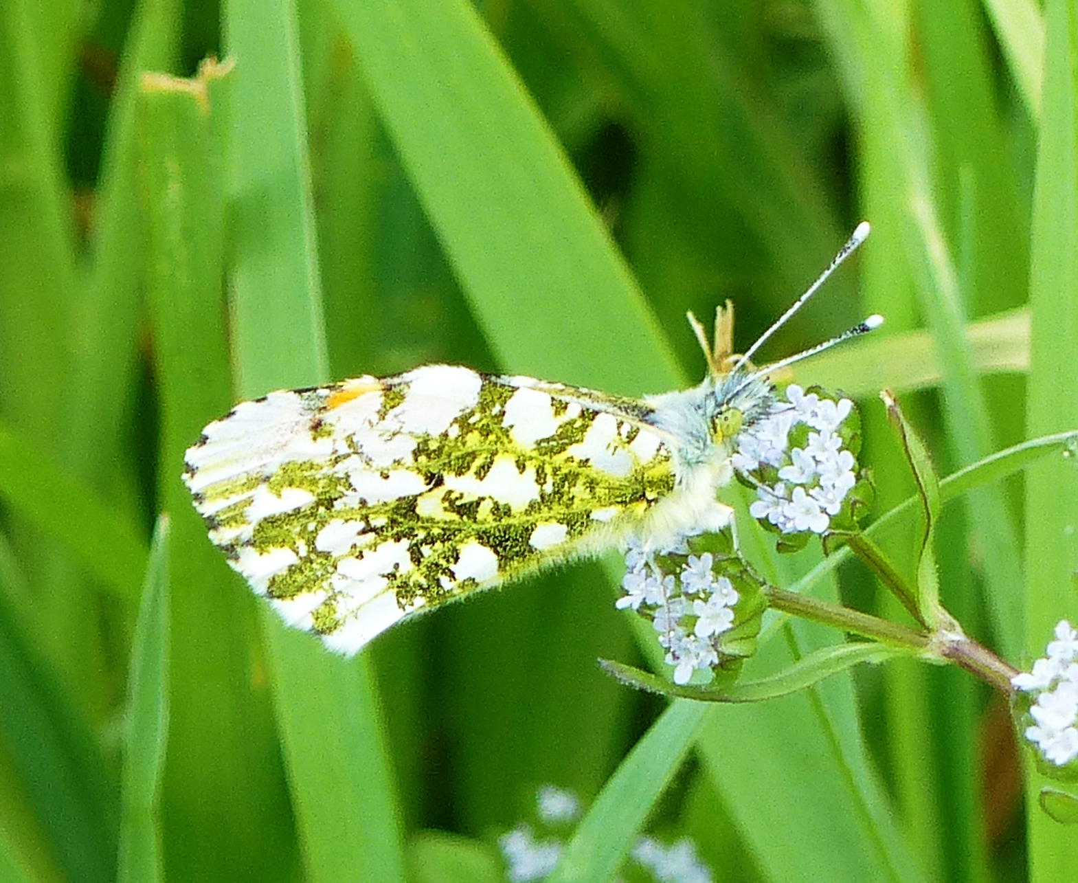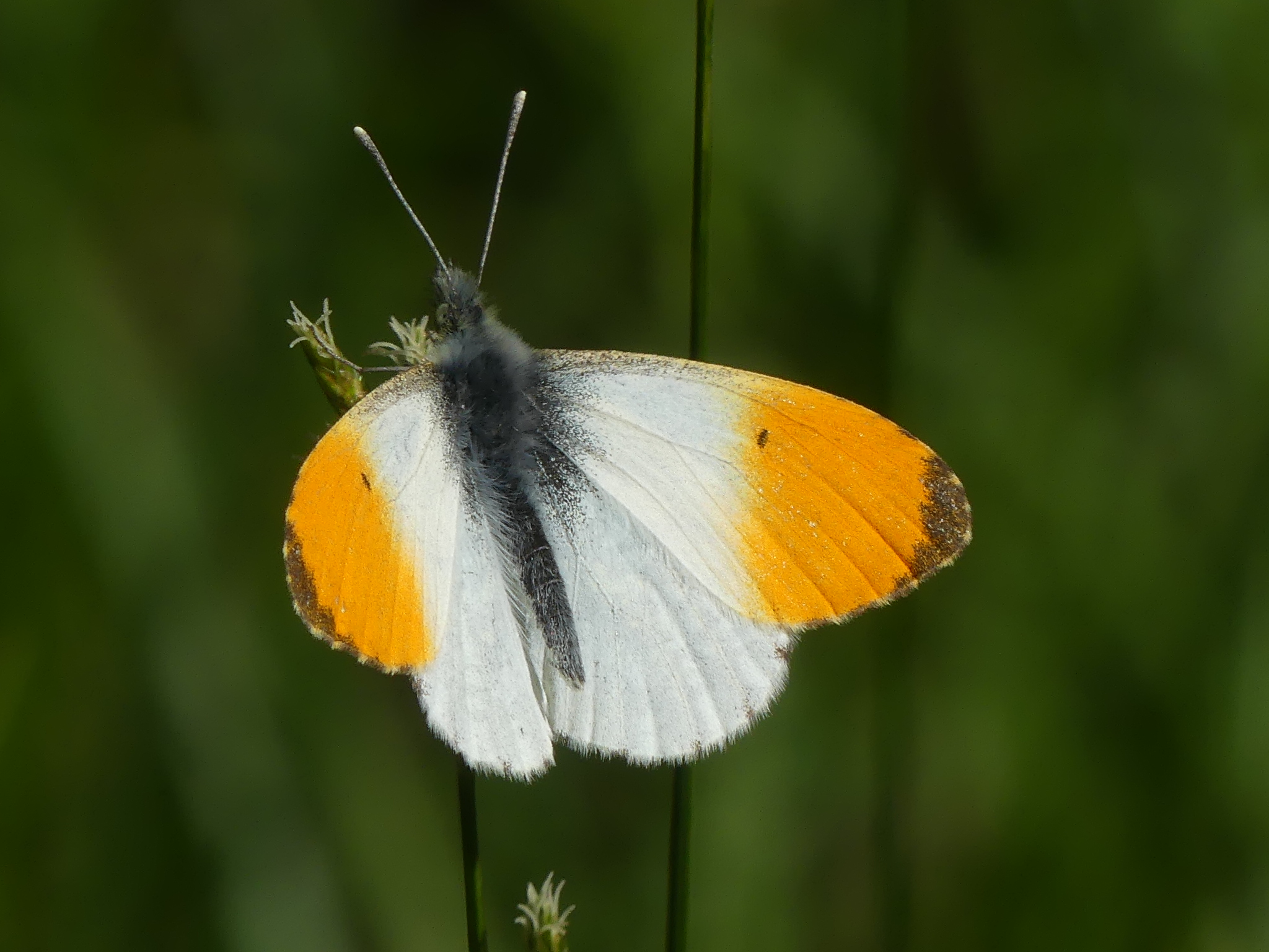 Aurorafalter (Anthocharis cardamines (Linnaeus, 1758)), Männchen, Blütenbesuch an Stellaria holostea, bei Nossen, April 2020 (© Andreas Hurtig)( Bild vergrößern)