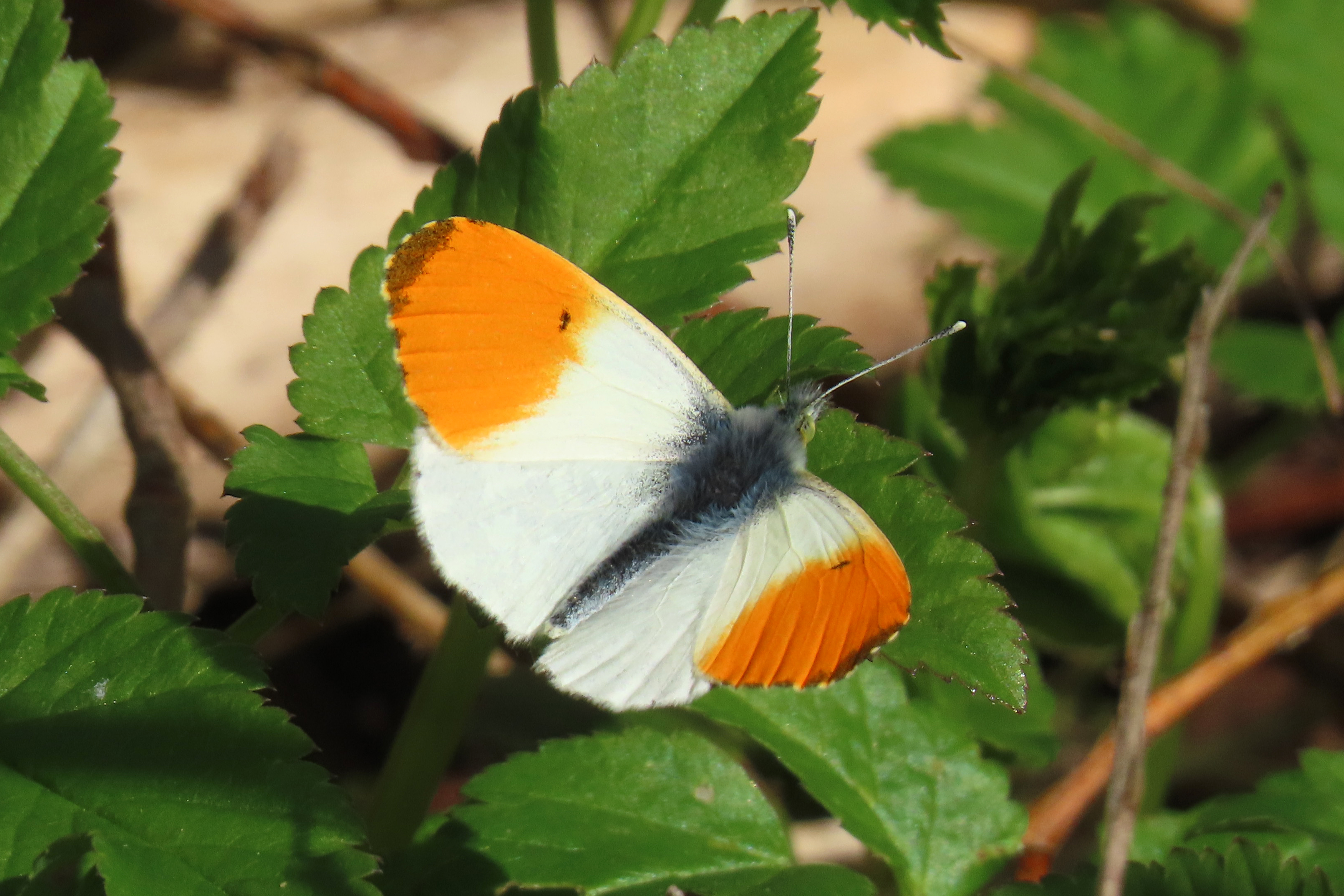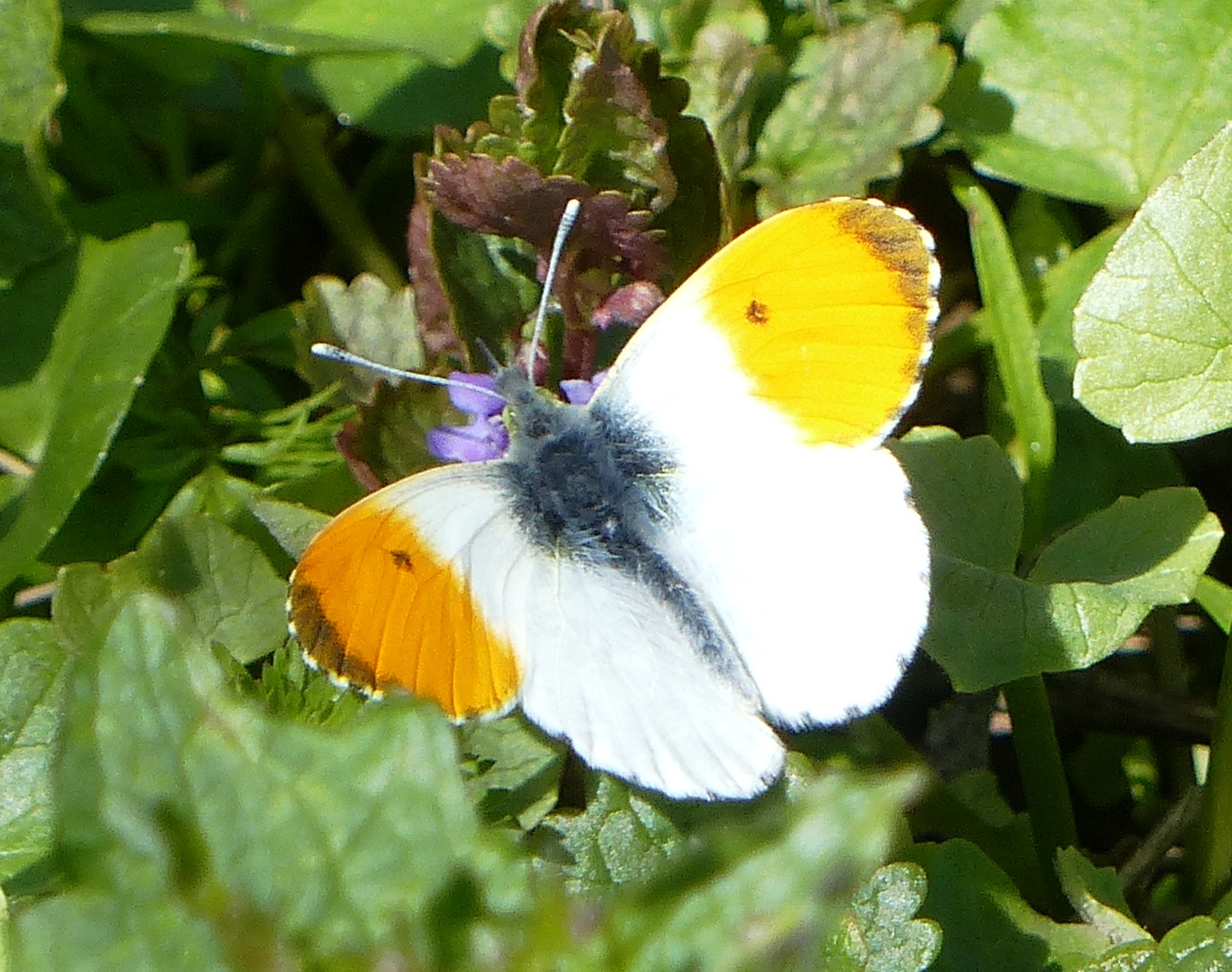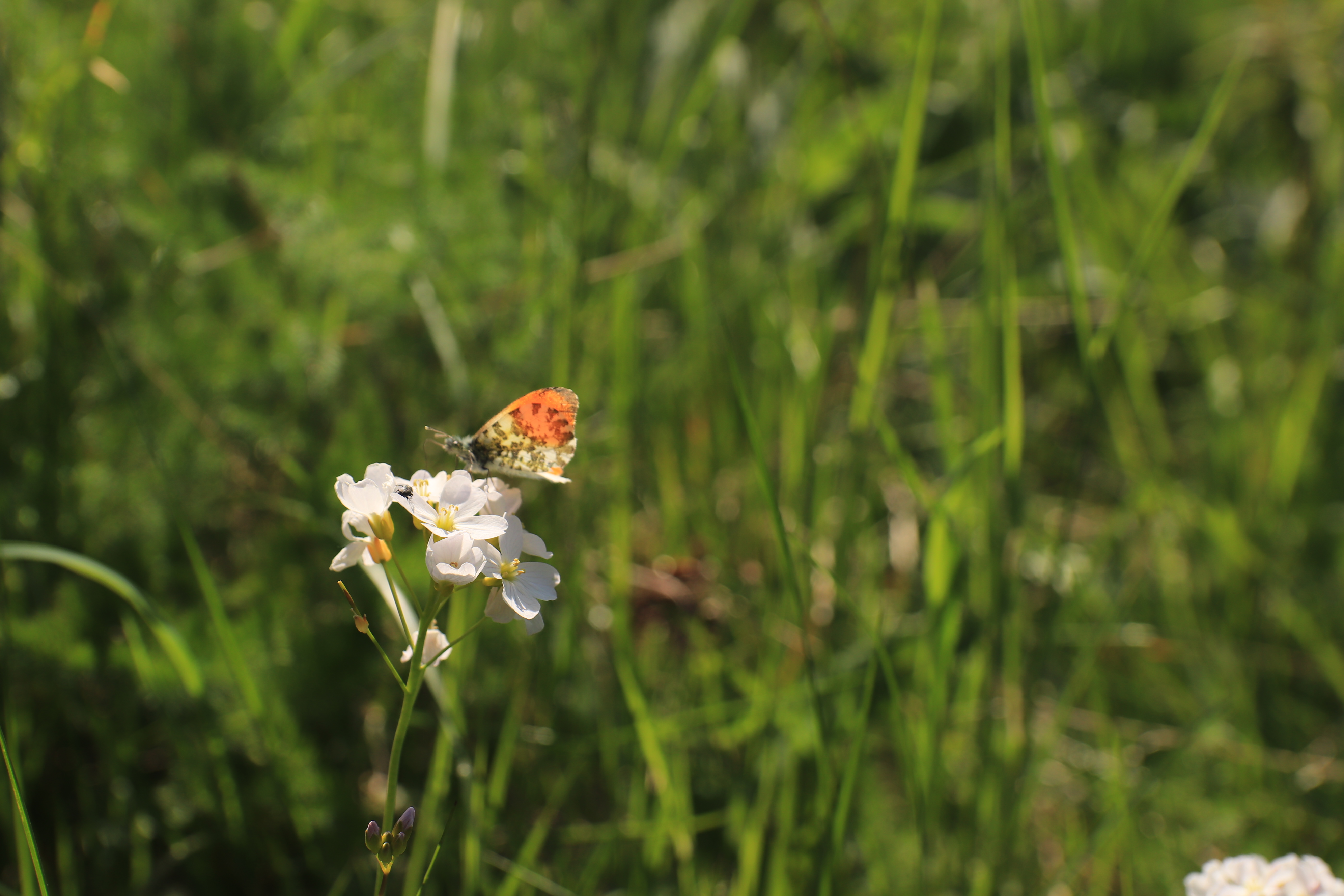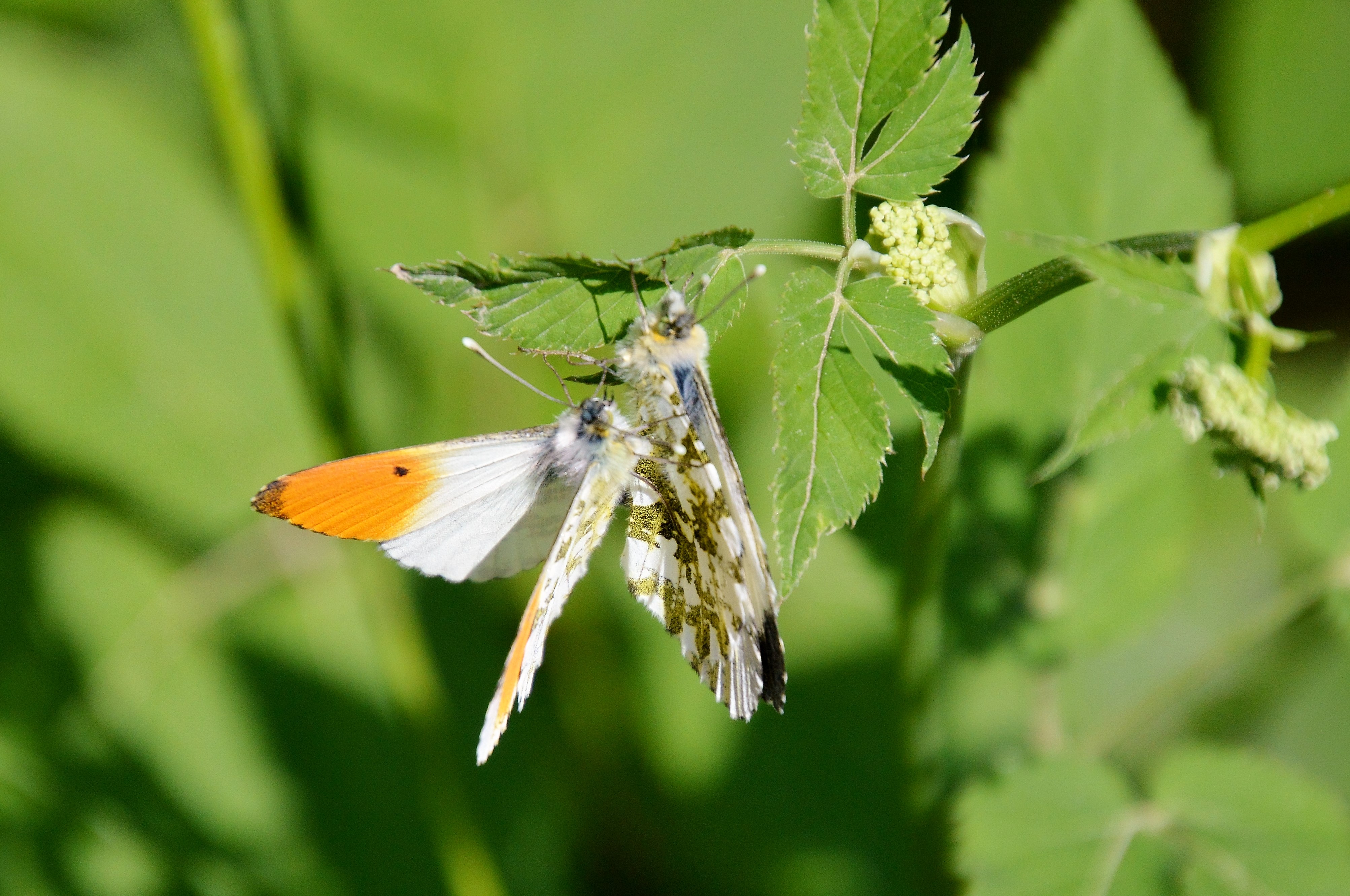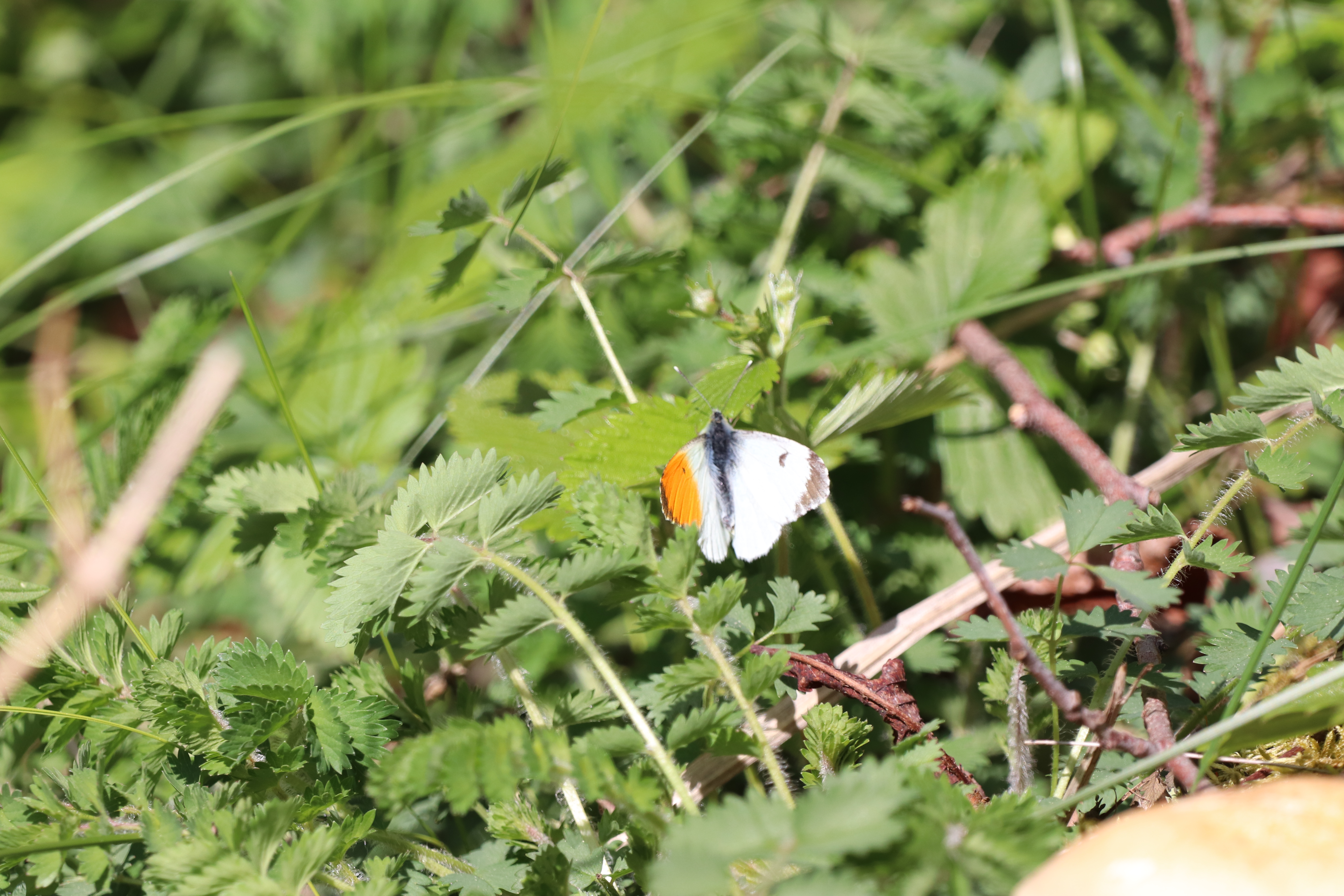 Aurorafalter (Anthocharis cardamines (Linnaeus, 1758)), Männchen, Blütenbesuch an Stellaria holostea, bei Nossen, April 2020 (© Andreas Hurtig)( Bild vergrößern)