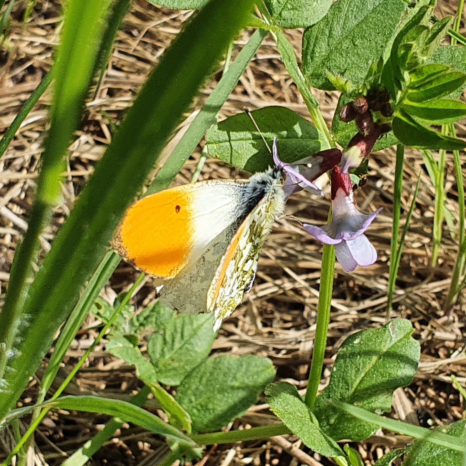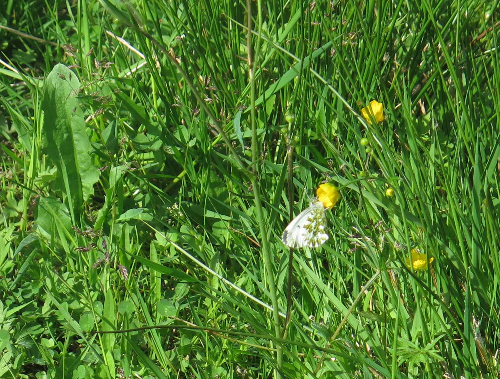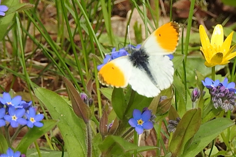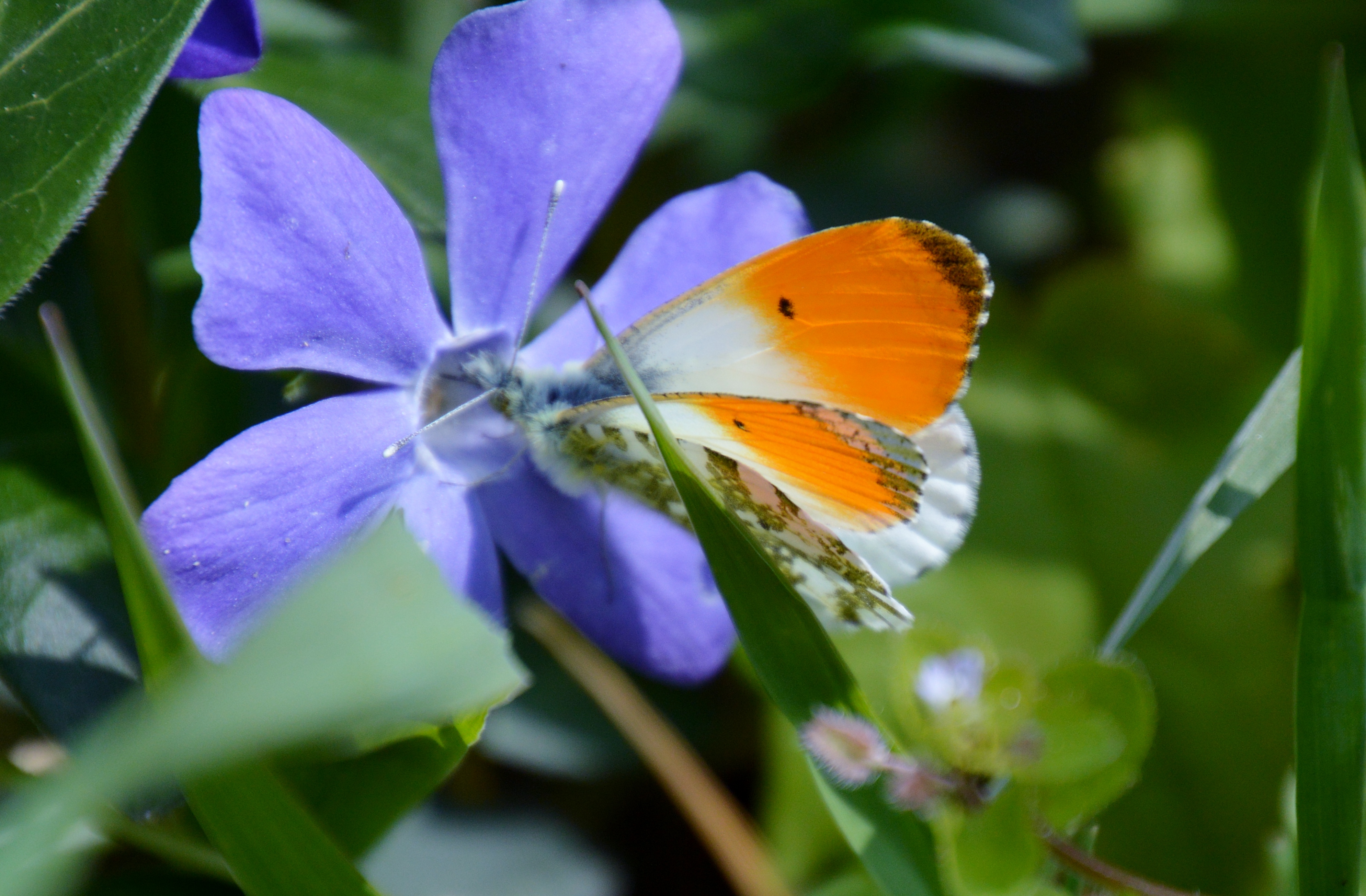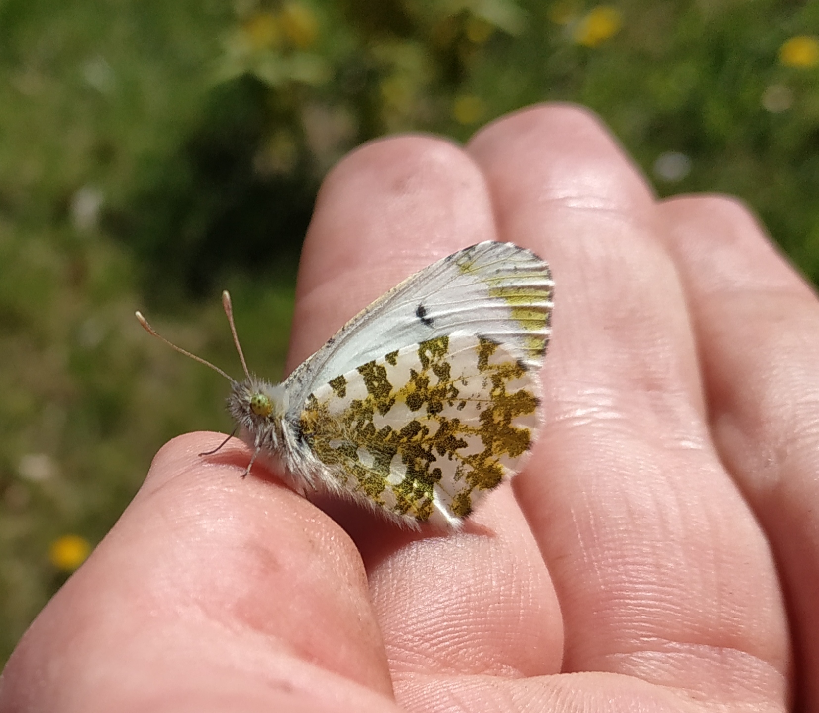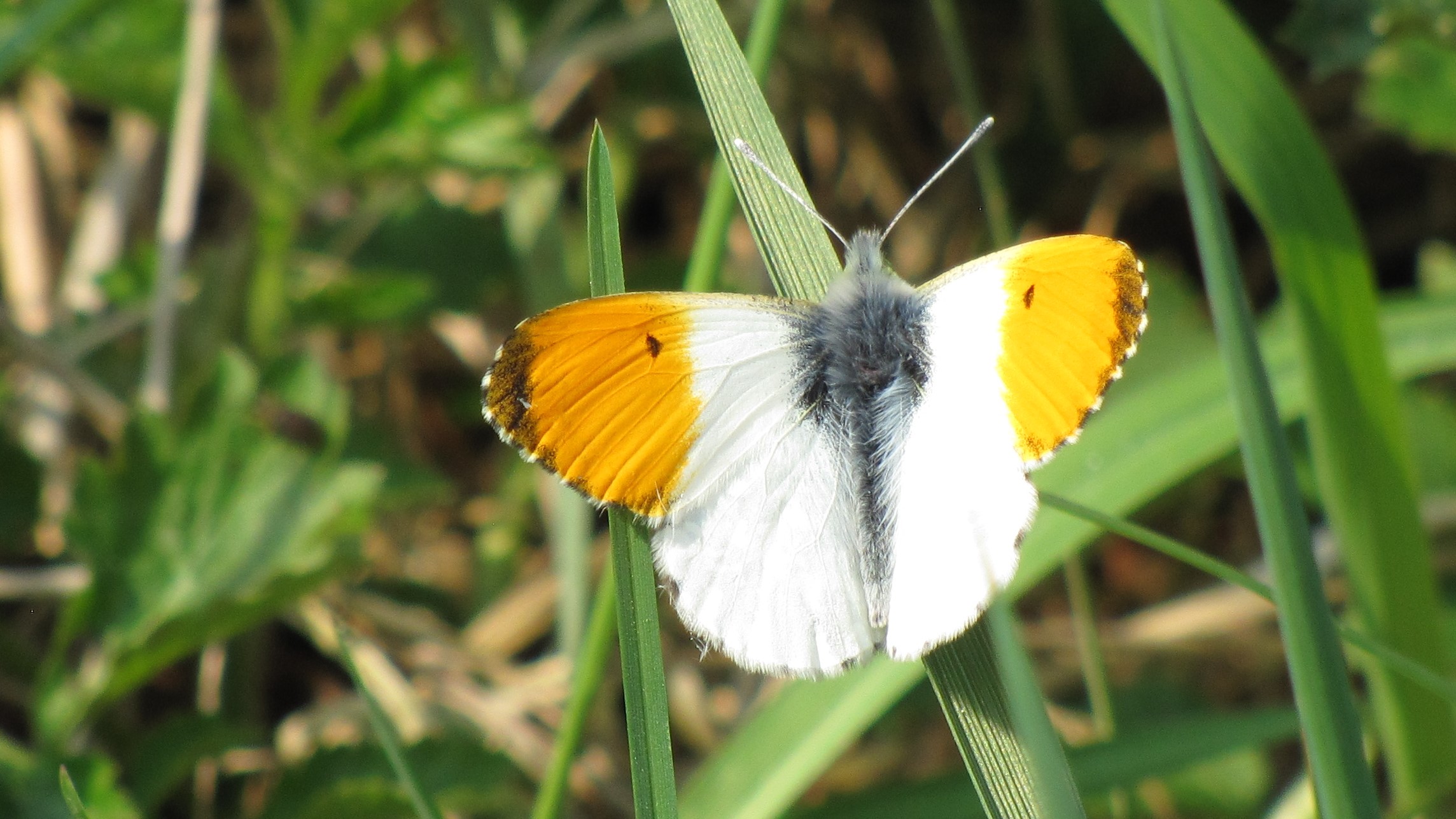 Aurorafalter (Anthocharis cardamines (Linnaeus, 1758)), Männchen, Blütenbesuch an Stellaria holostea, bei Nossen, April 2020 (© Andreas Hurtig)( Bild vergrößern)
