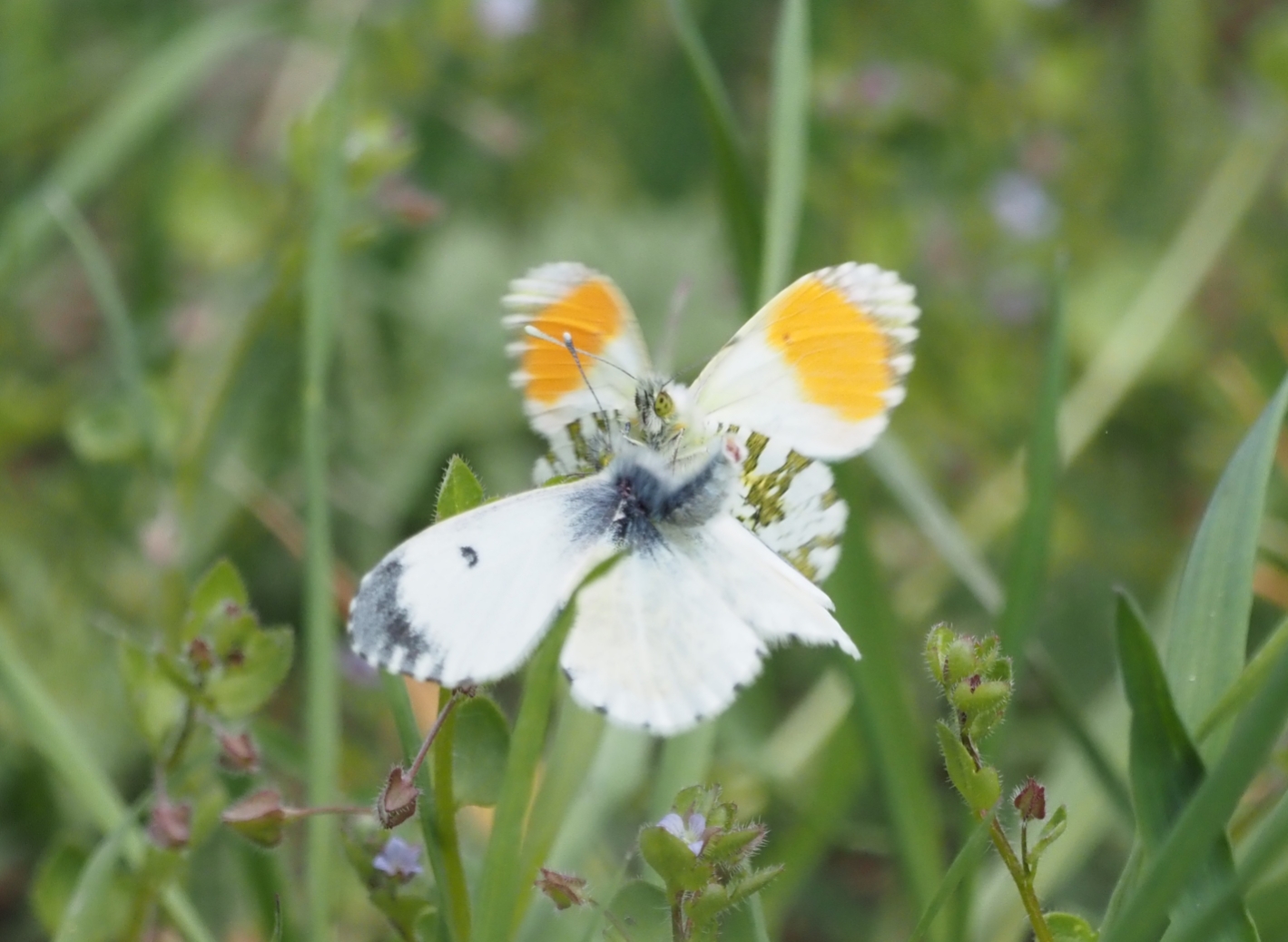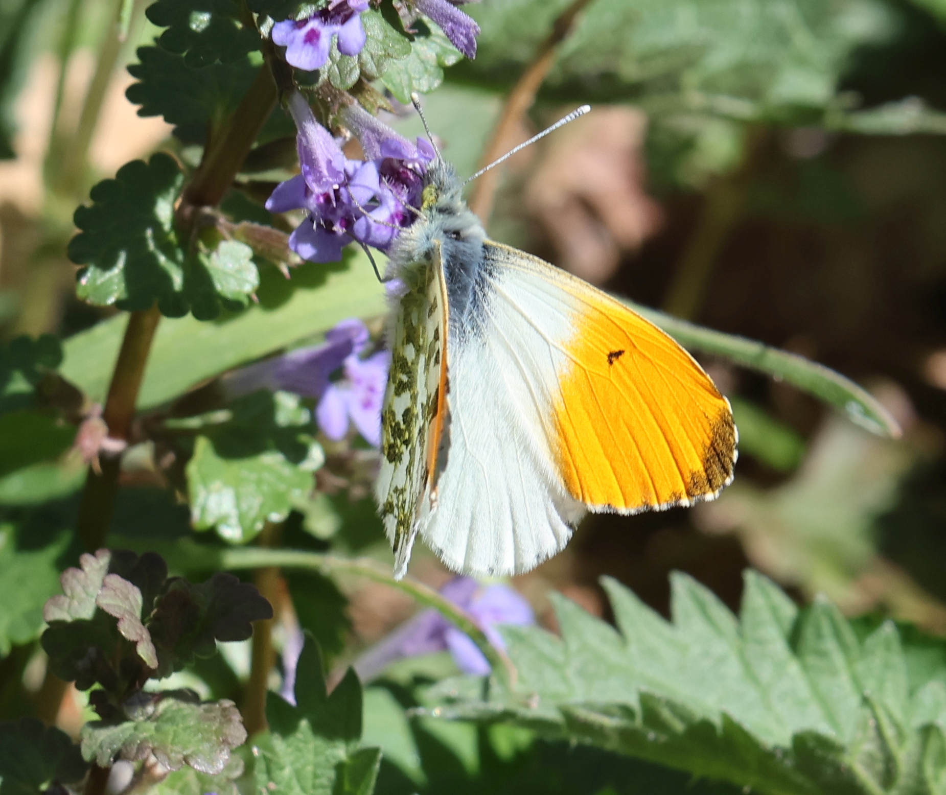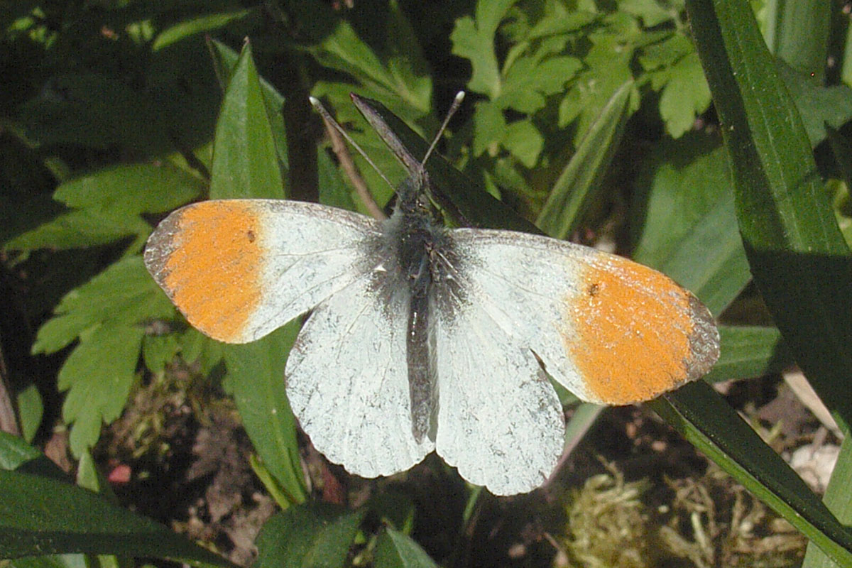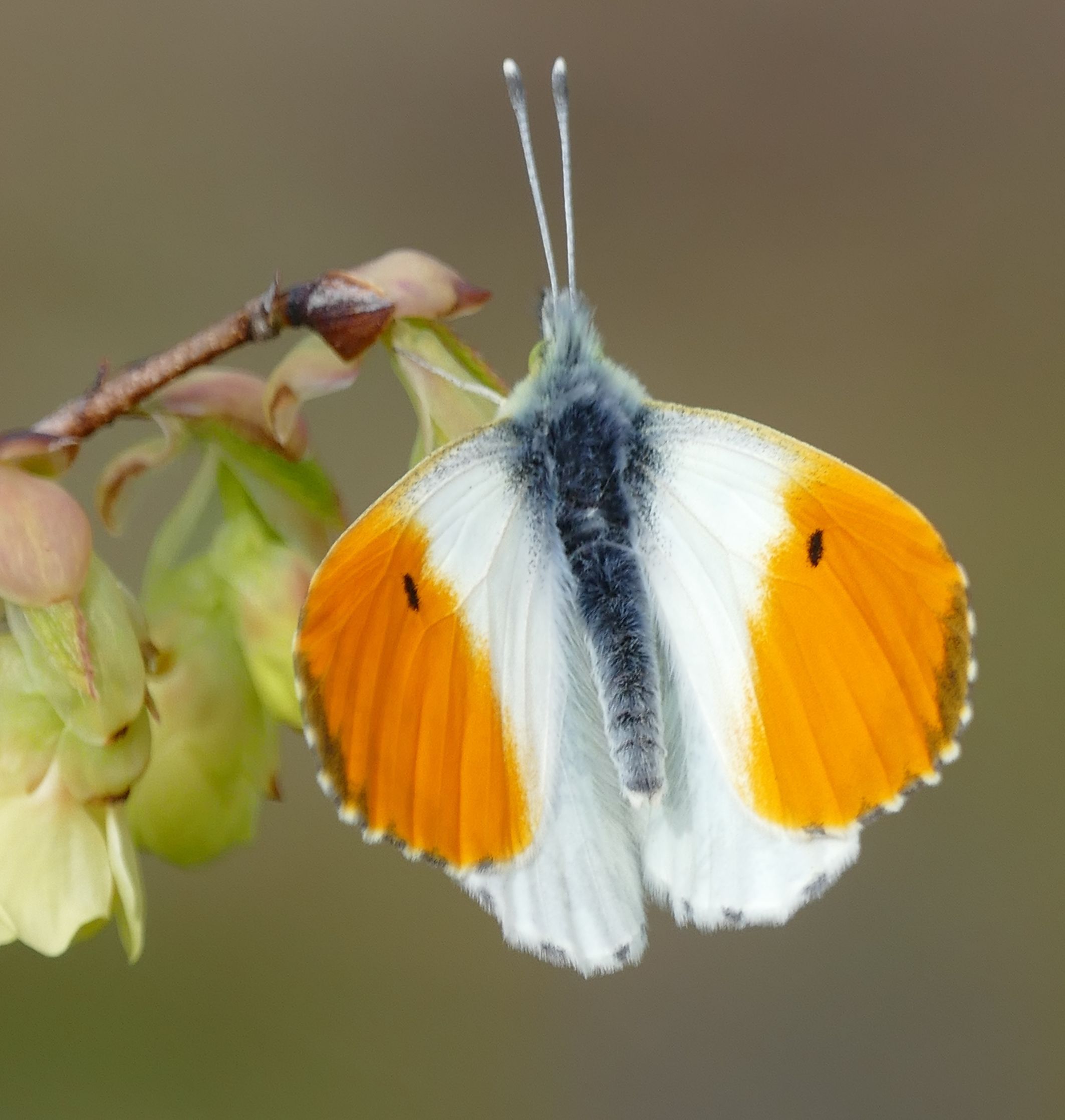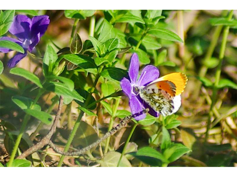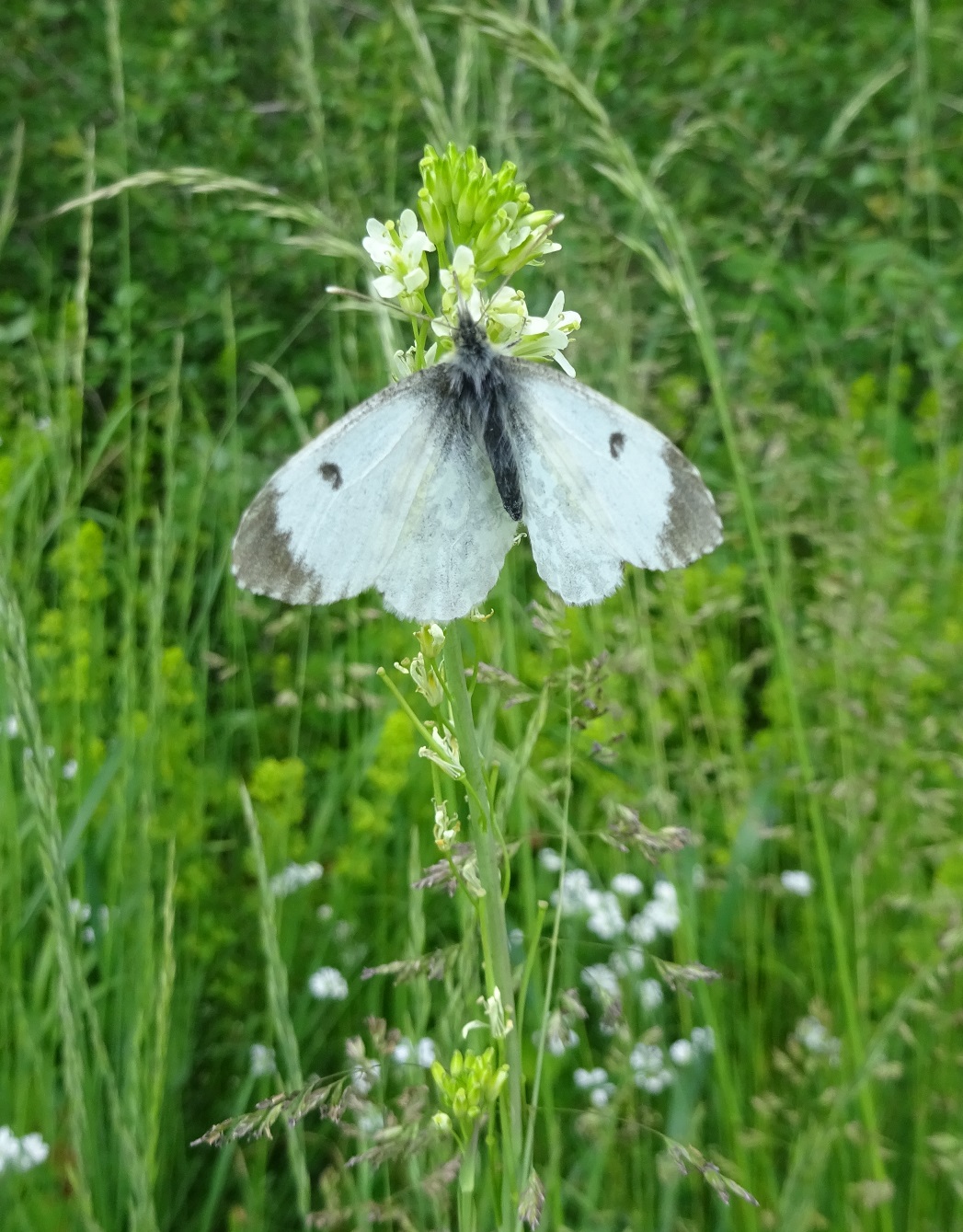 Aurorafalter (Anthocharis cardamines (Linnaeus, 1758)), Männchen, Blütenbesuch an Stellaria holostea, bei Nossen, April 2020 (© Andreas Hurtig)( Bild vergrößern)