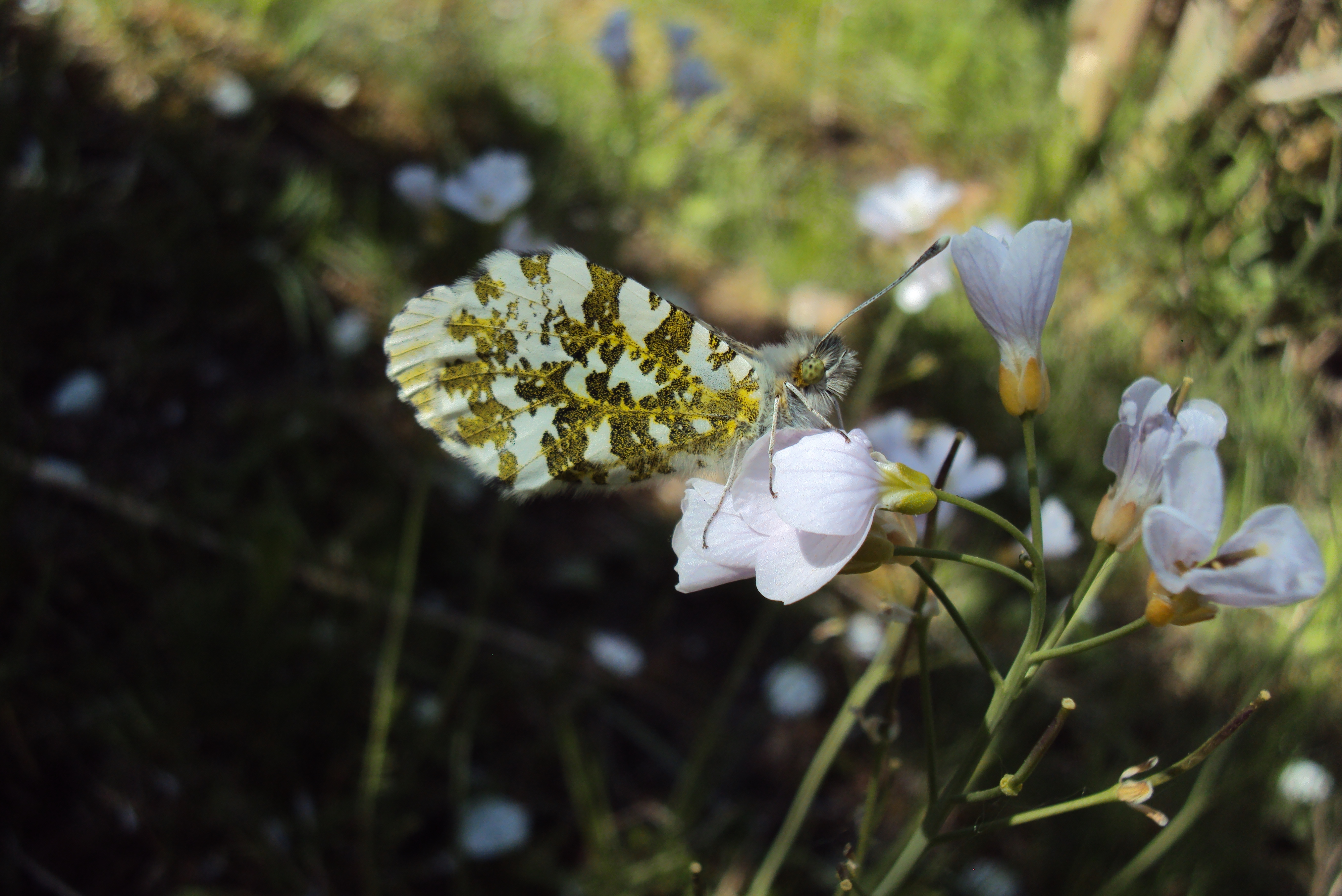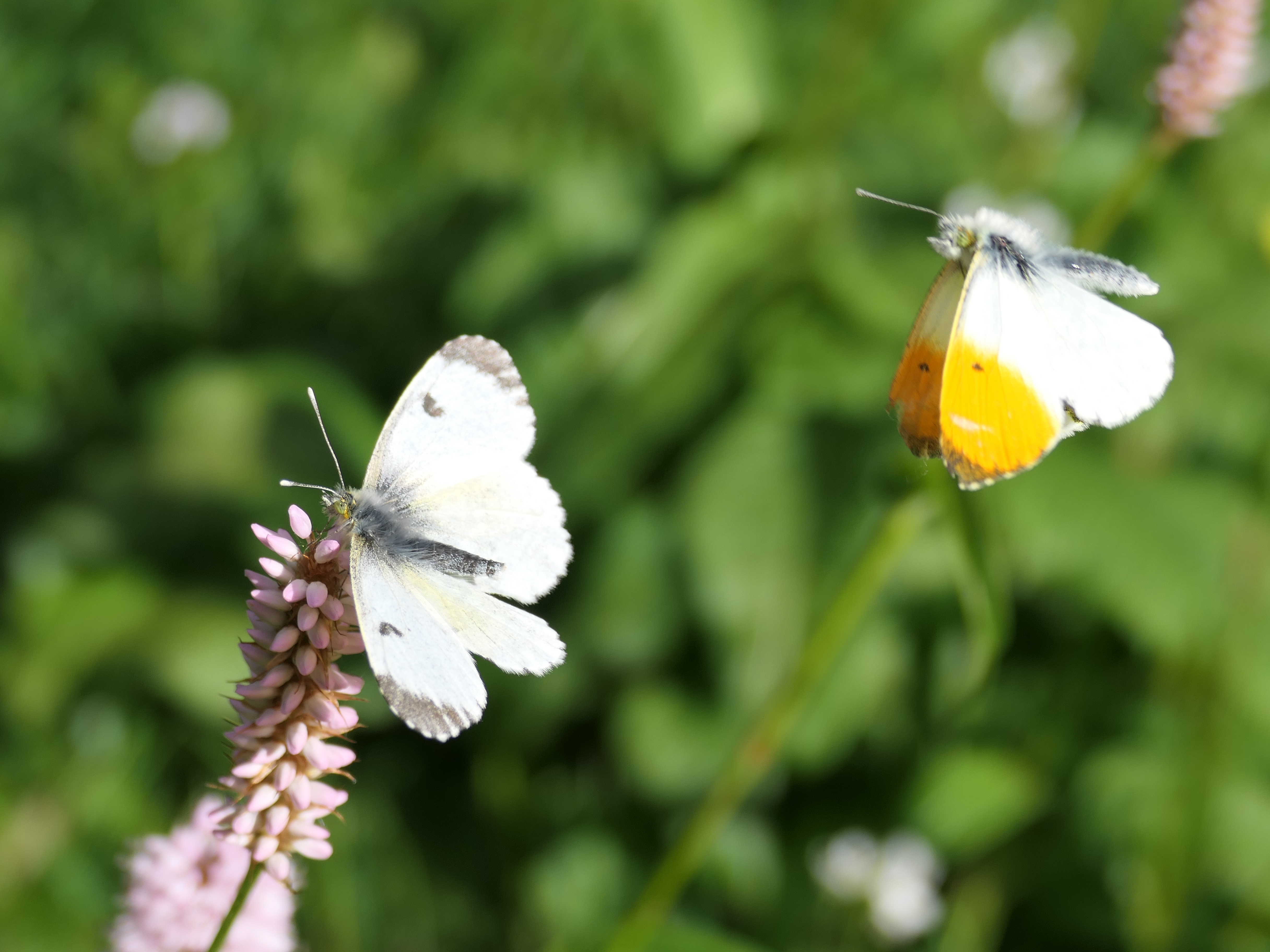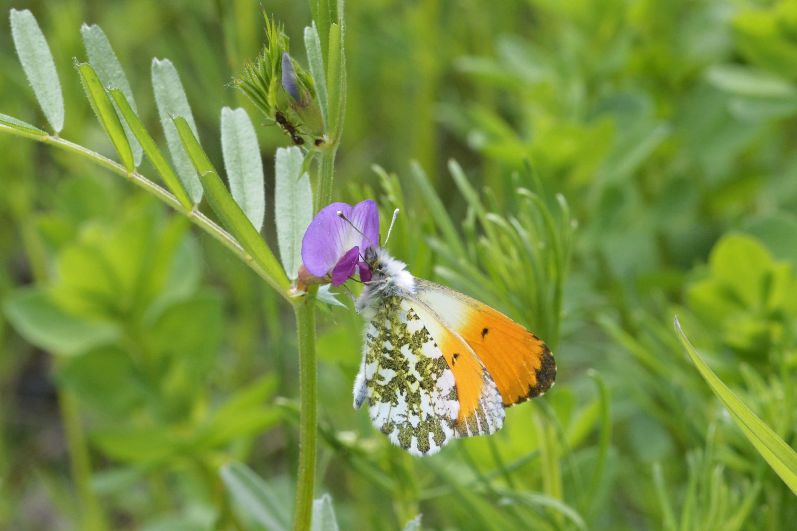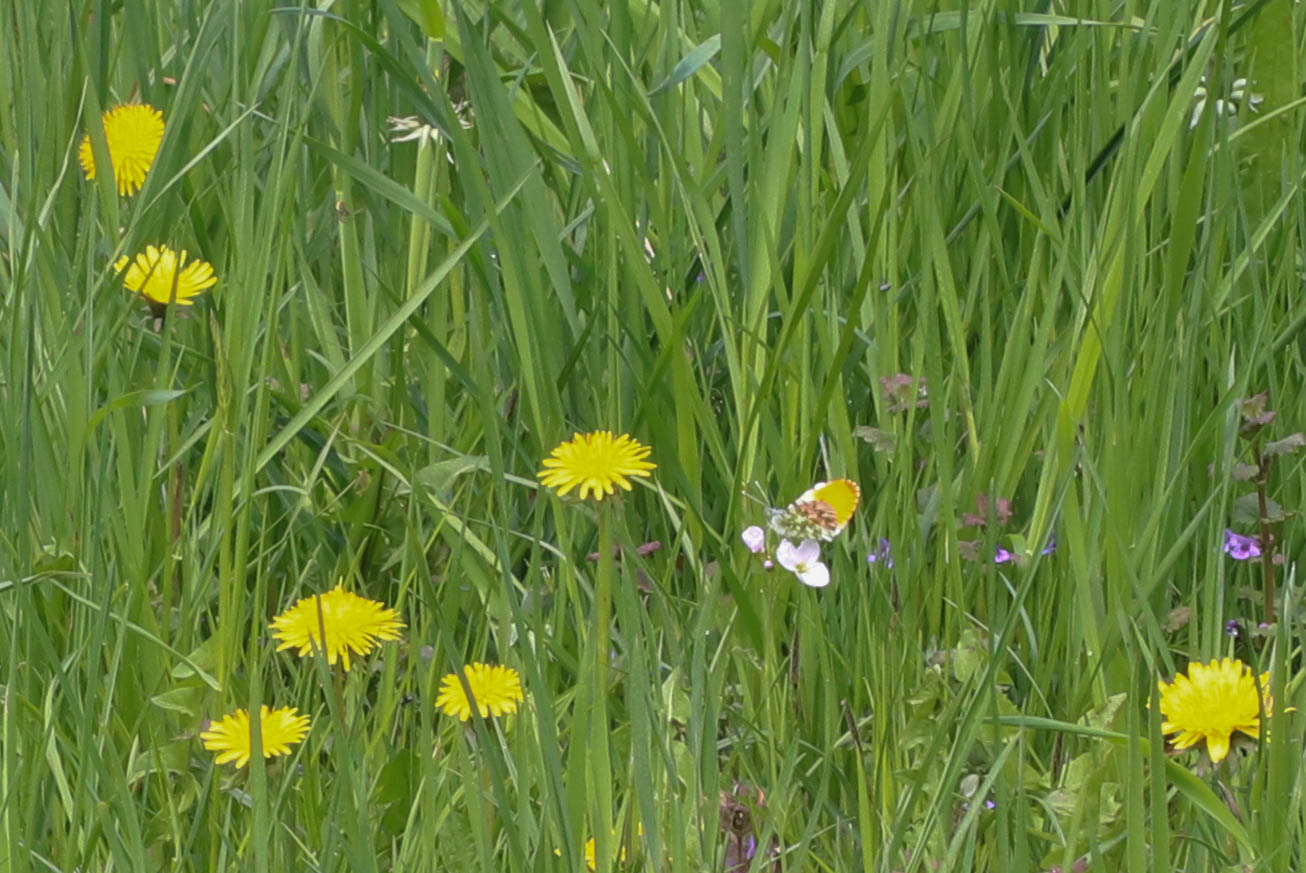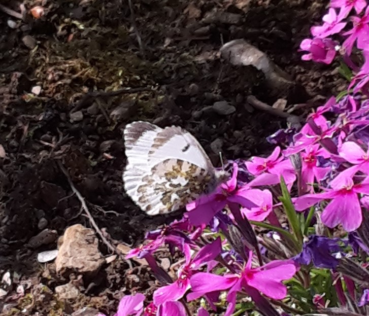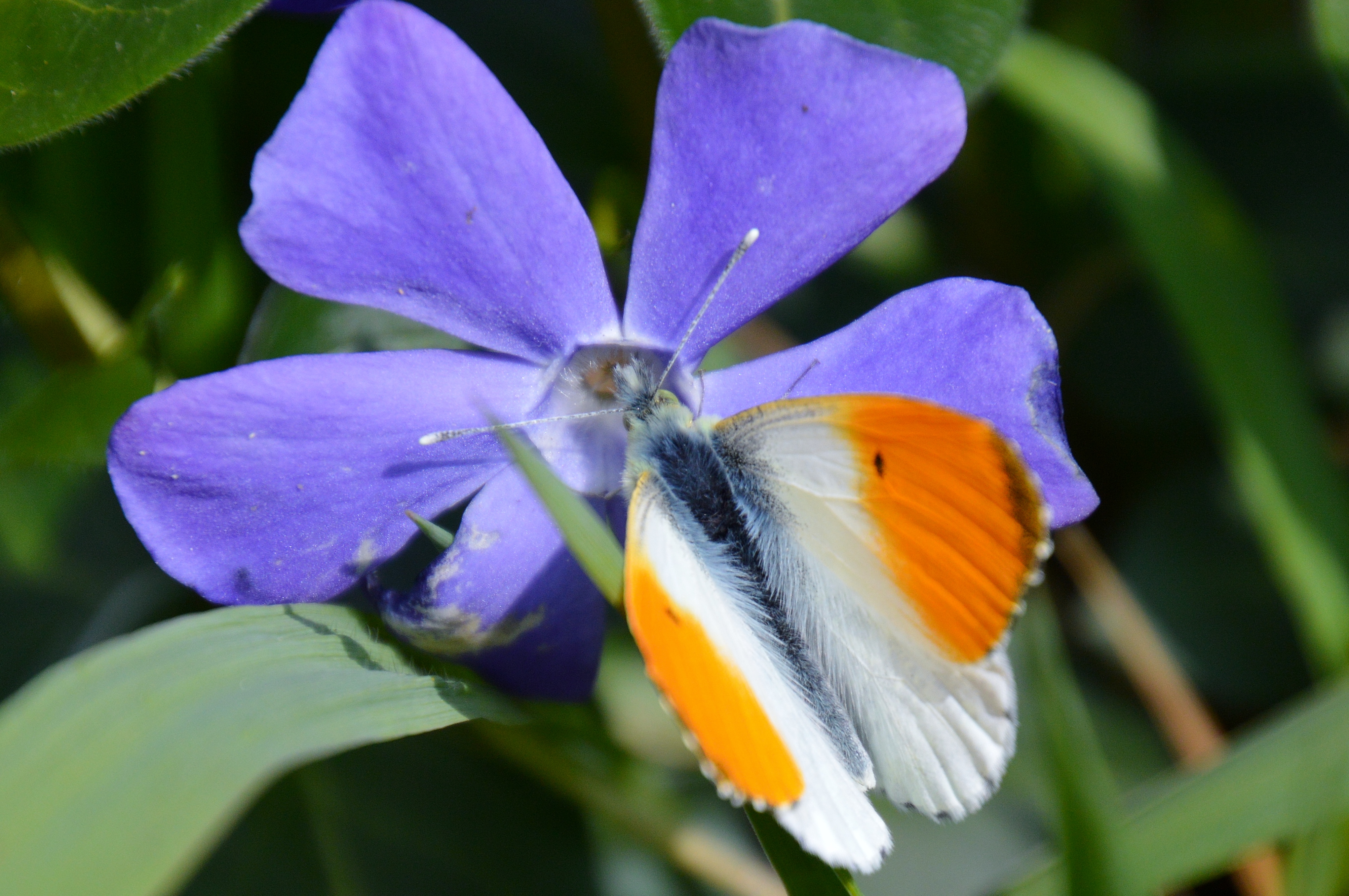 Aurorafalter (Anthocharis cardamines (Linnaeus, 1758)), Männchen, Blütenbesuch an Stellaria holostea, bei Nossen, April 2020 (© Andreas Hurtig)( Bild vergrößern)