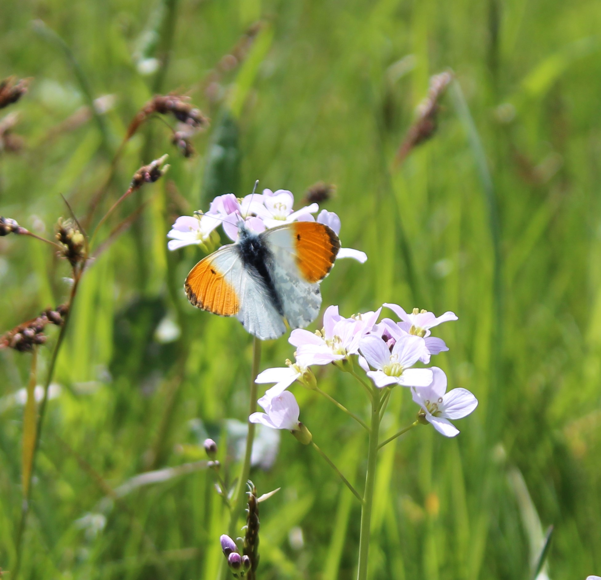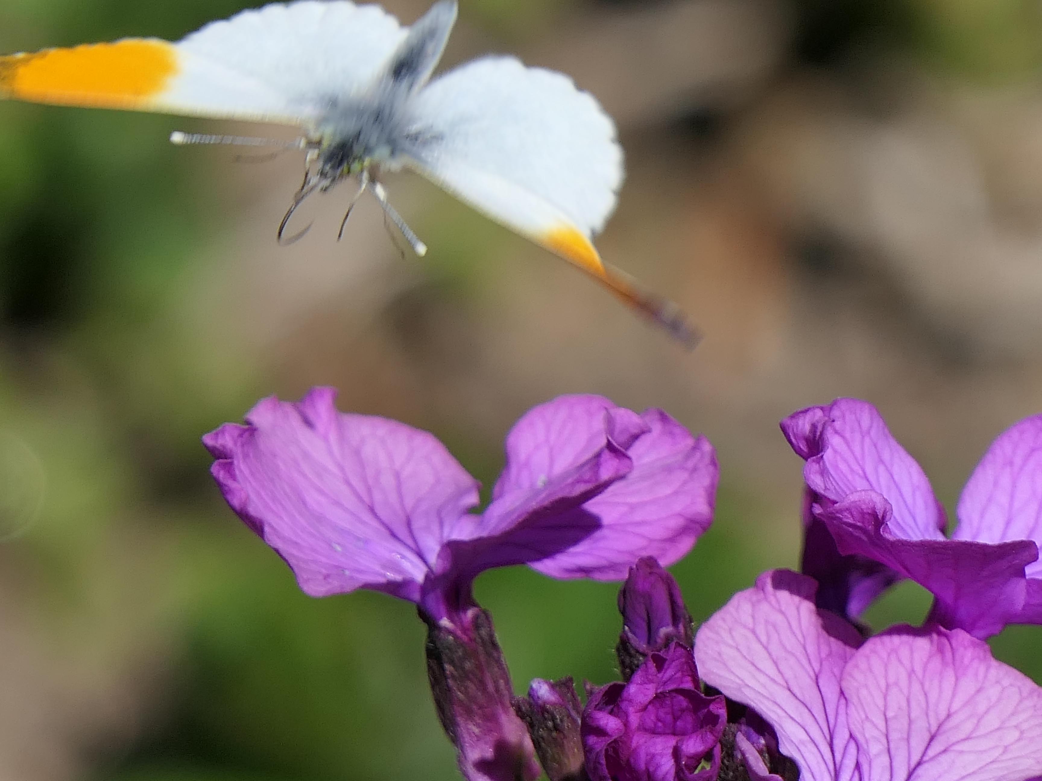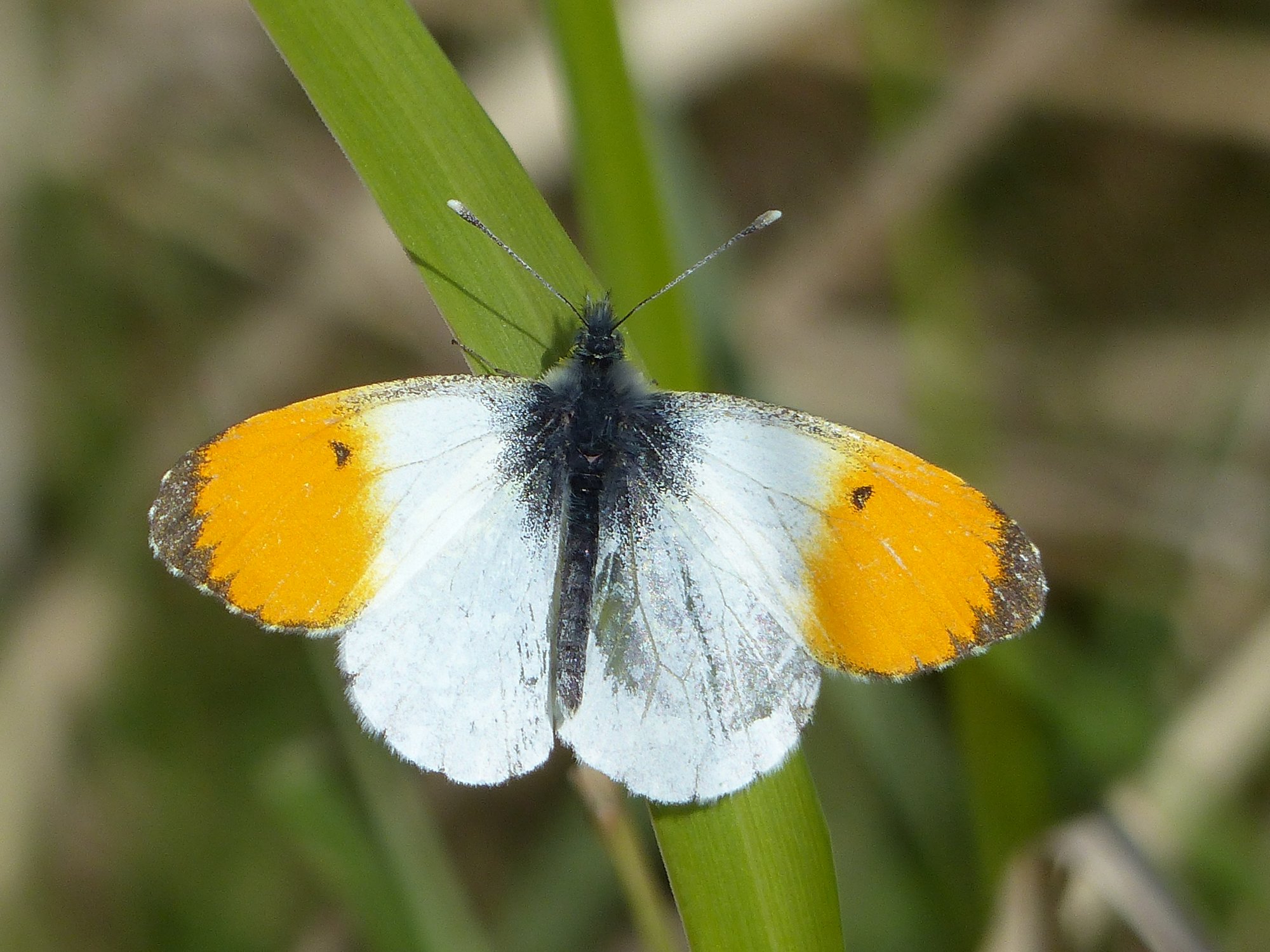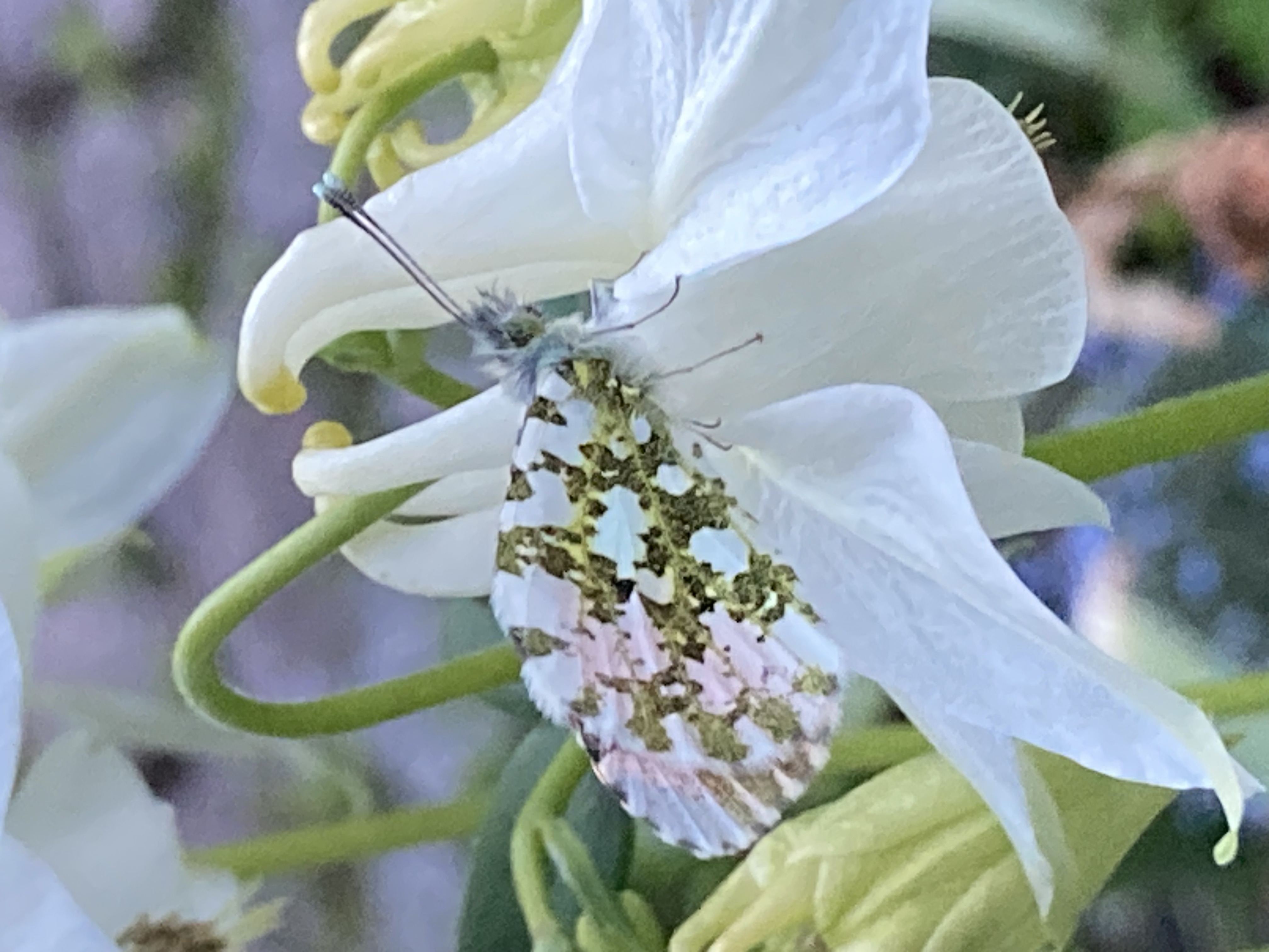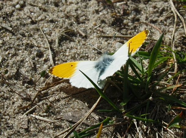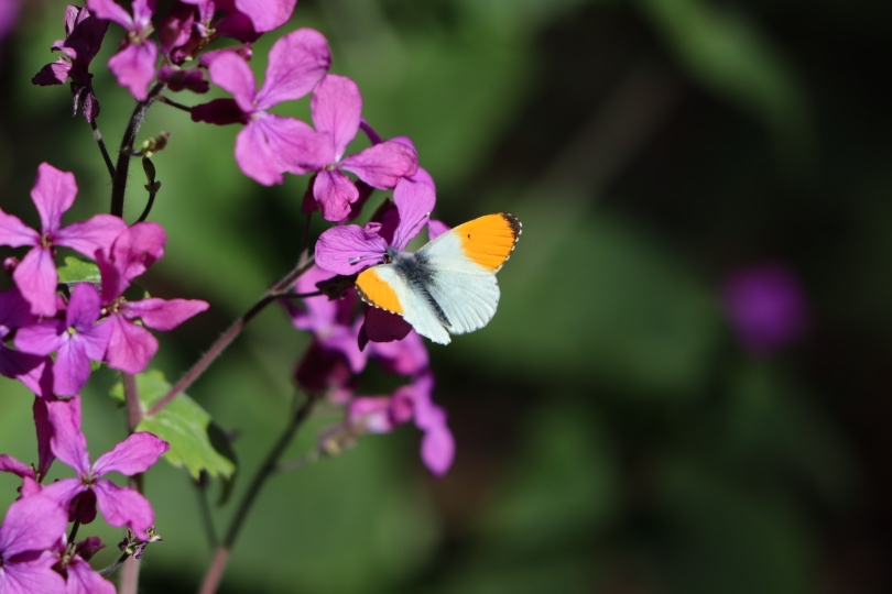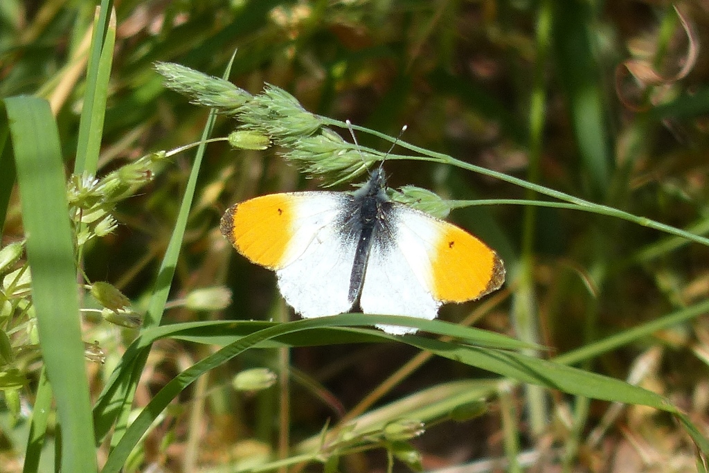 Aurorafalter (Anthocharis cardamines (Linnaeus, 1758)), Männchen, Blütenbesuch an Stellaria holostea, bei Nossen, April 2020 (© Andreas Hurtig)( Bild vergrößern)