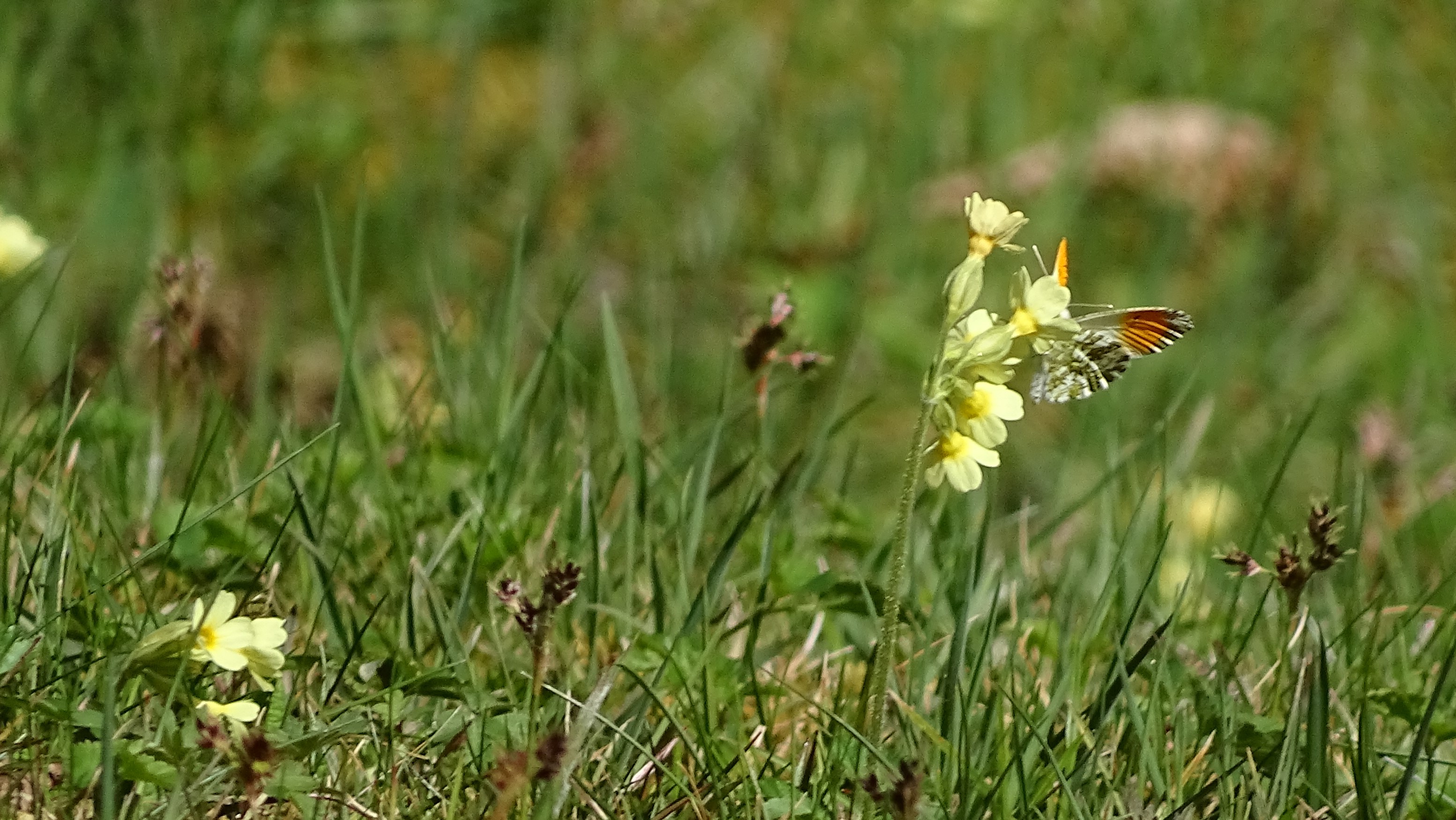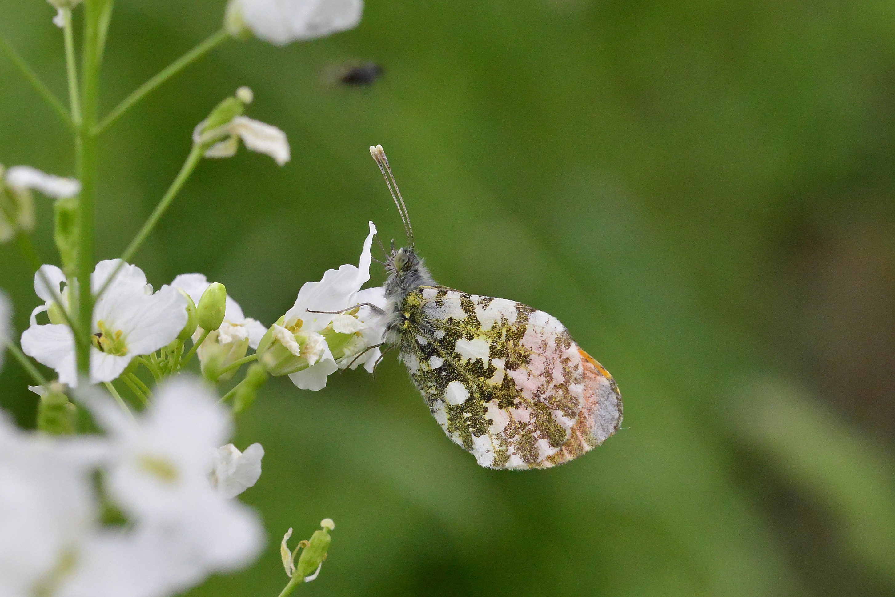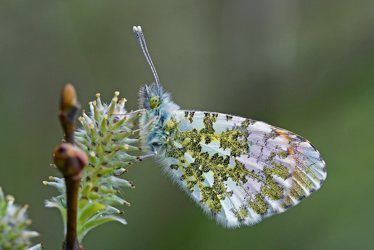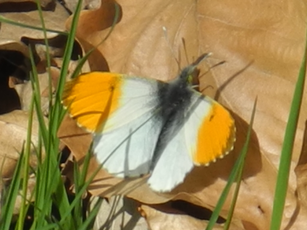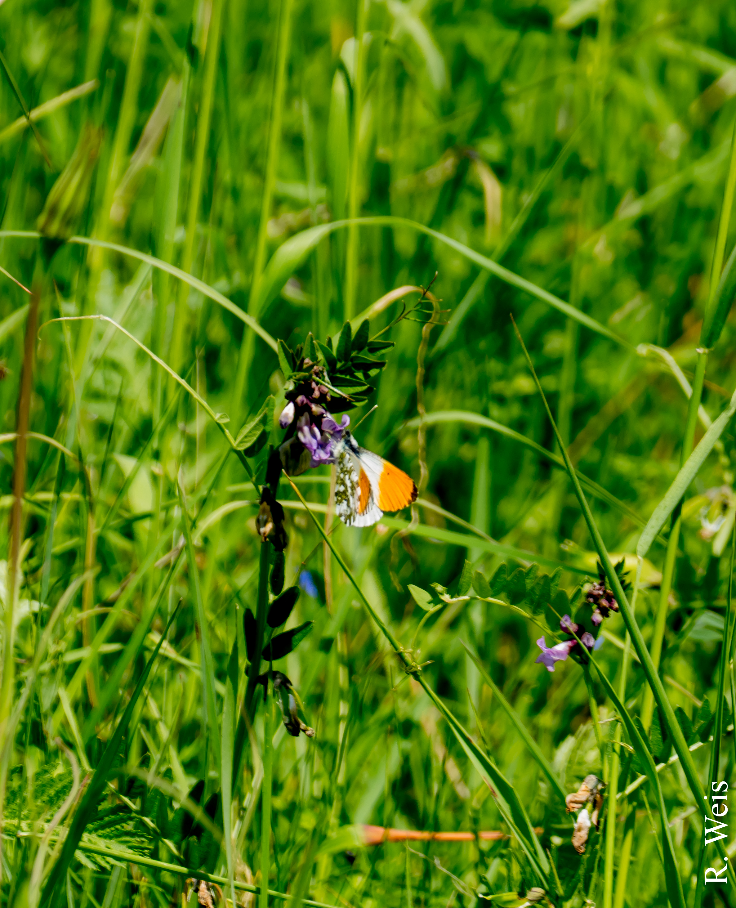 Aurorafalter (Anthocharis cardamines (Linnaeus, 1758)), Männchen, Blütenbesuch an Stellaria holostea, bei Nossen, April 2020 (© Andreas Hurtig)( Bild vergrößern)