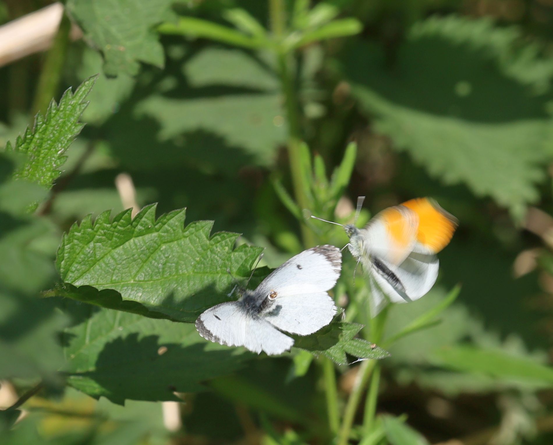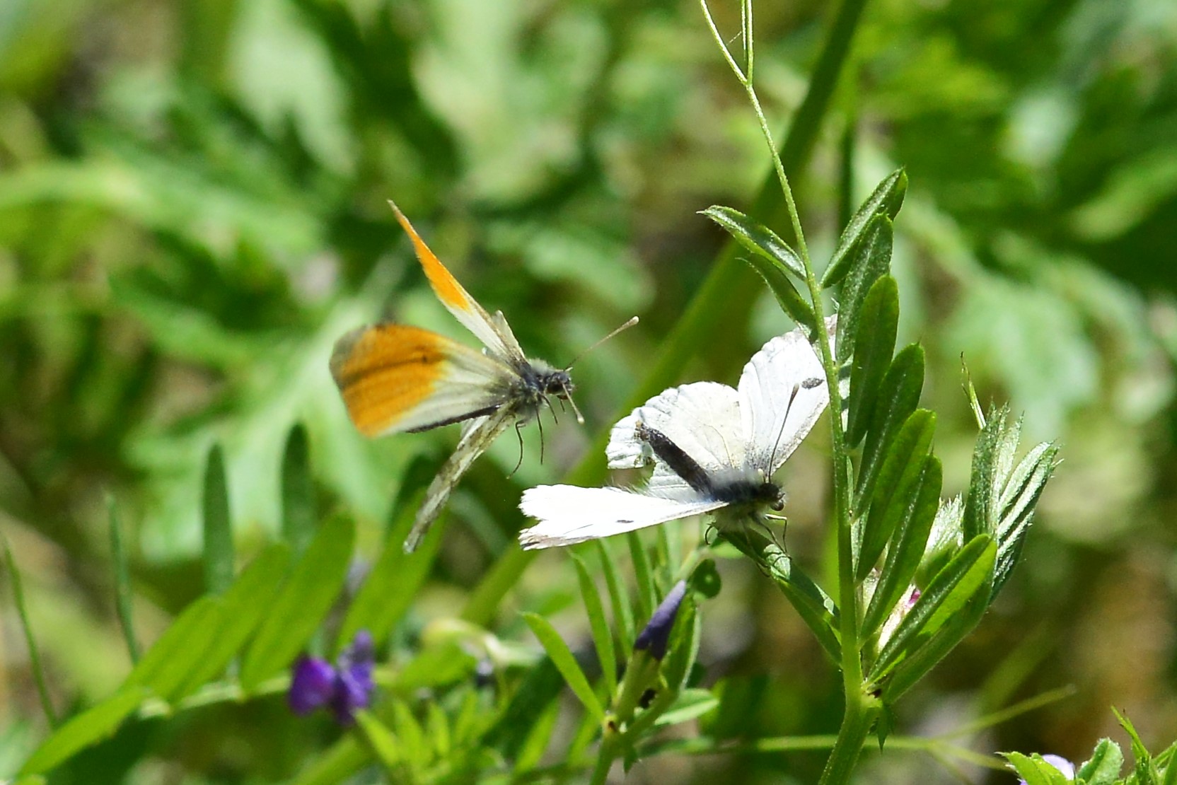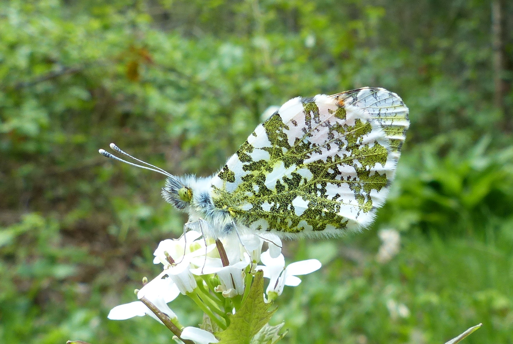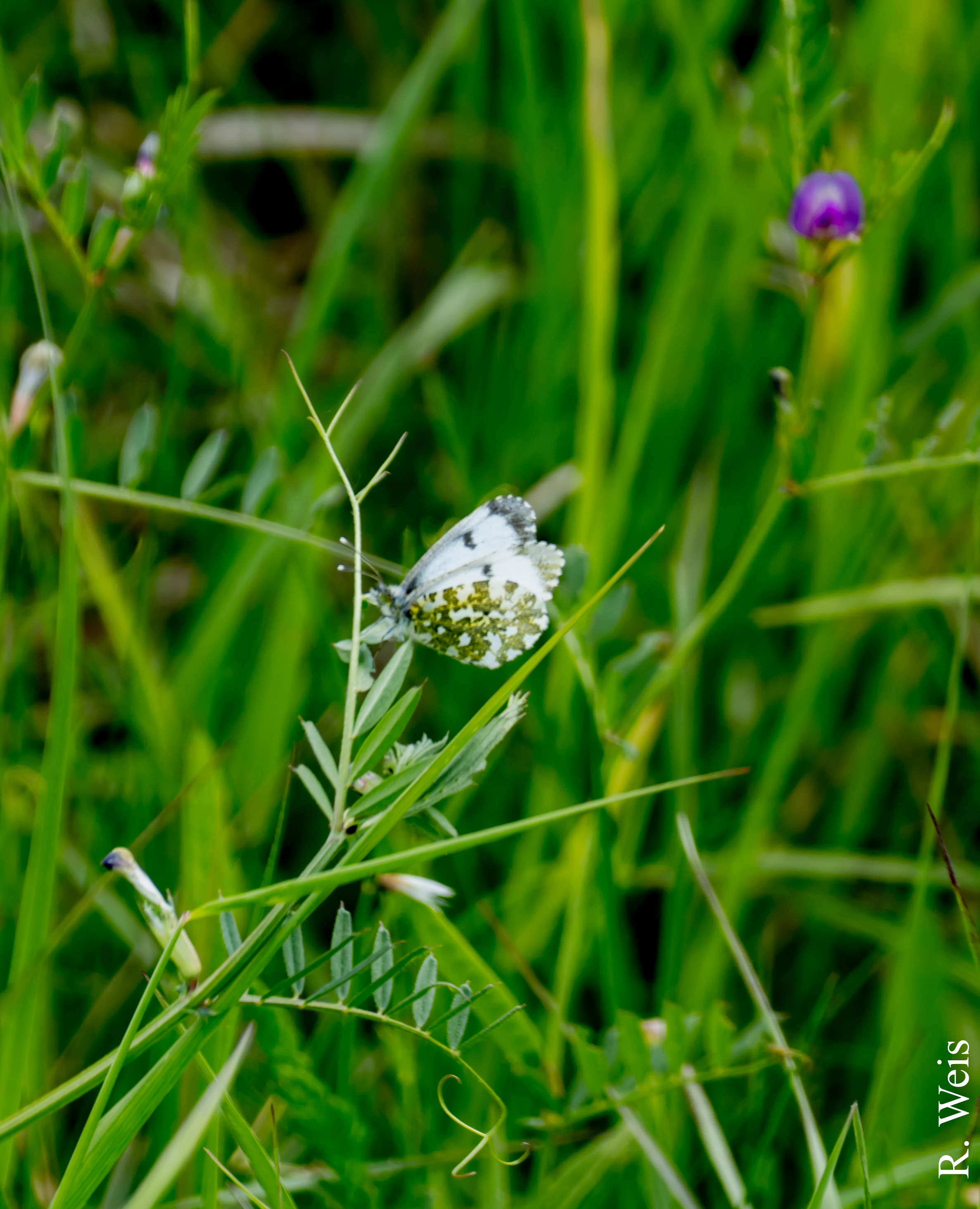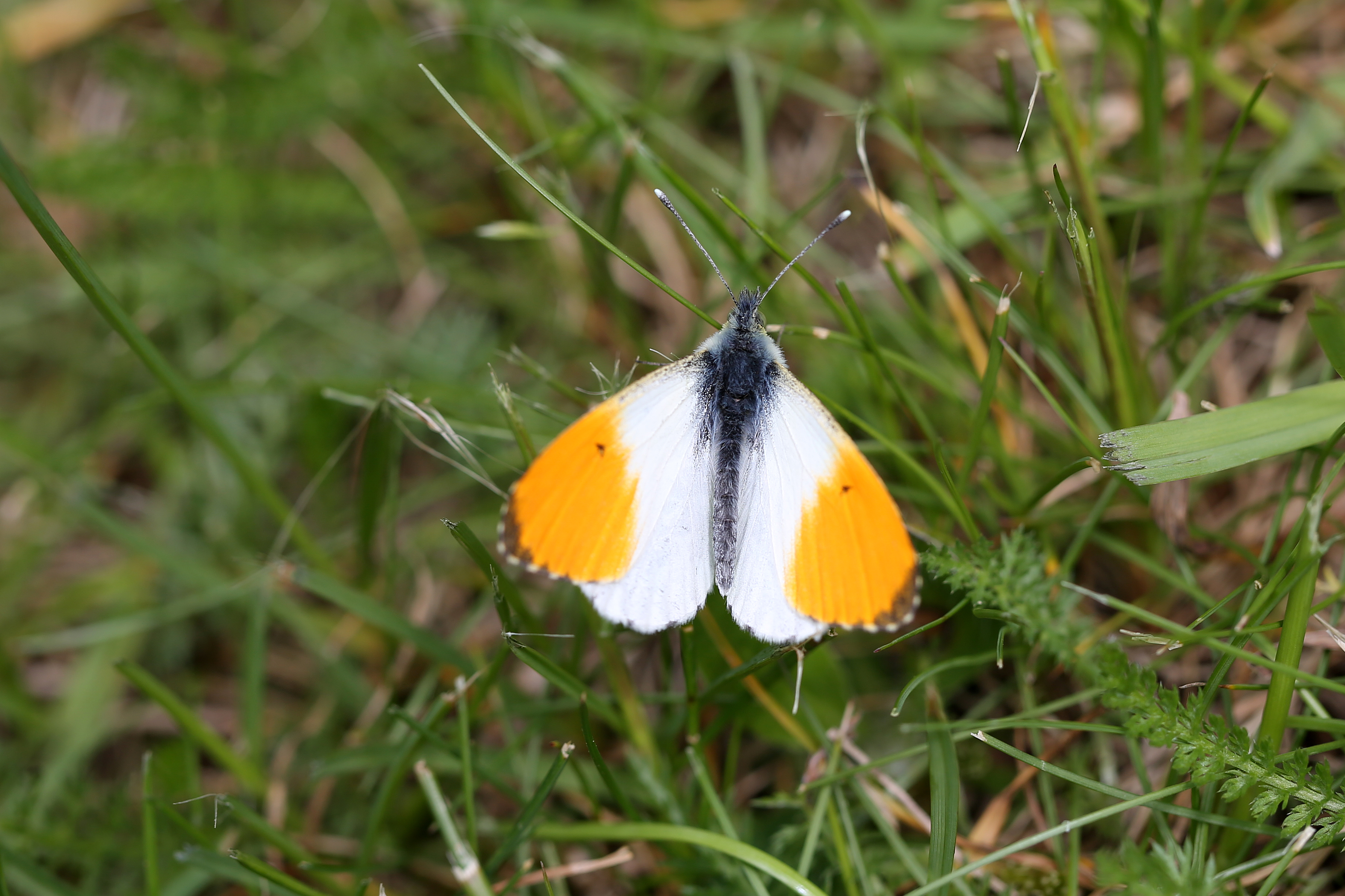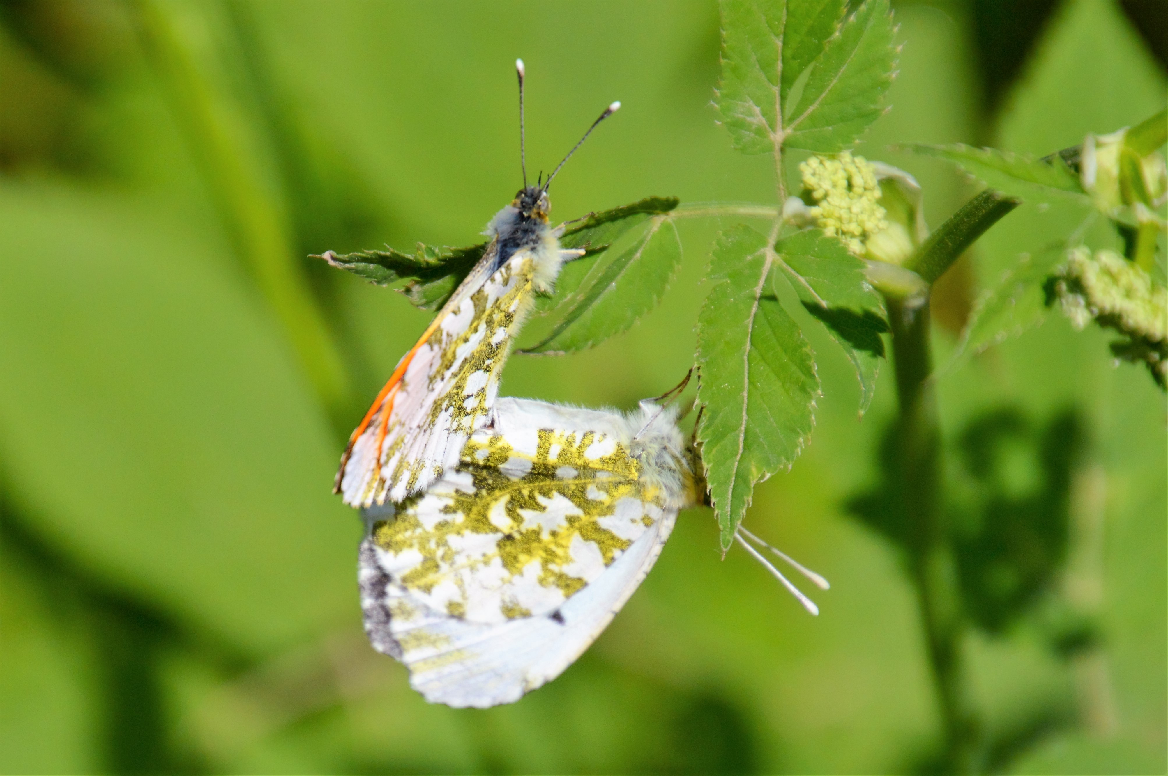 Aurorafalter (Anthocharis cardamines (Linnaeus, 1758)), Männchen, Blütenbesuch an Stellaria holostea, bei Nossen, April 2020 (© Andreas Hurtig)( Bild vergrößern)