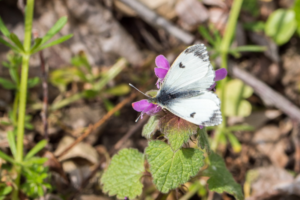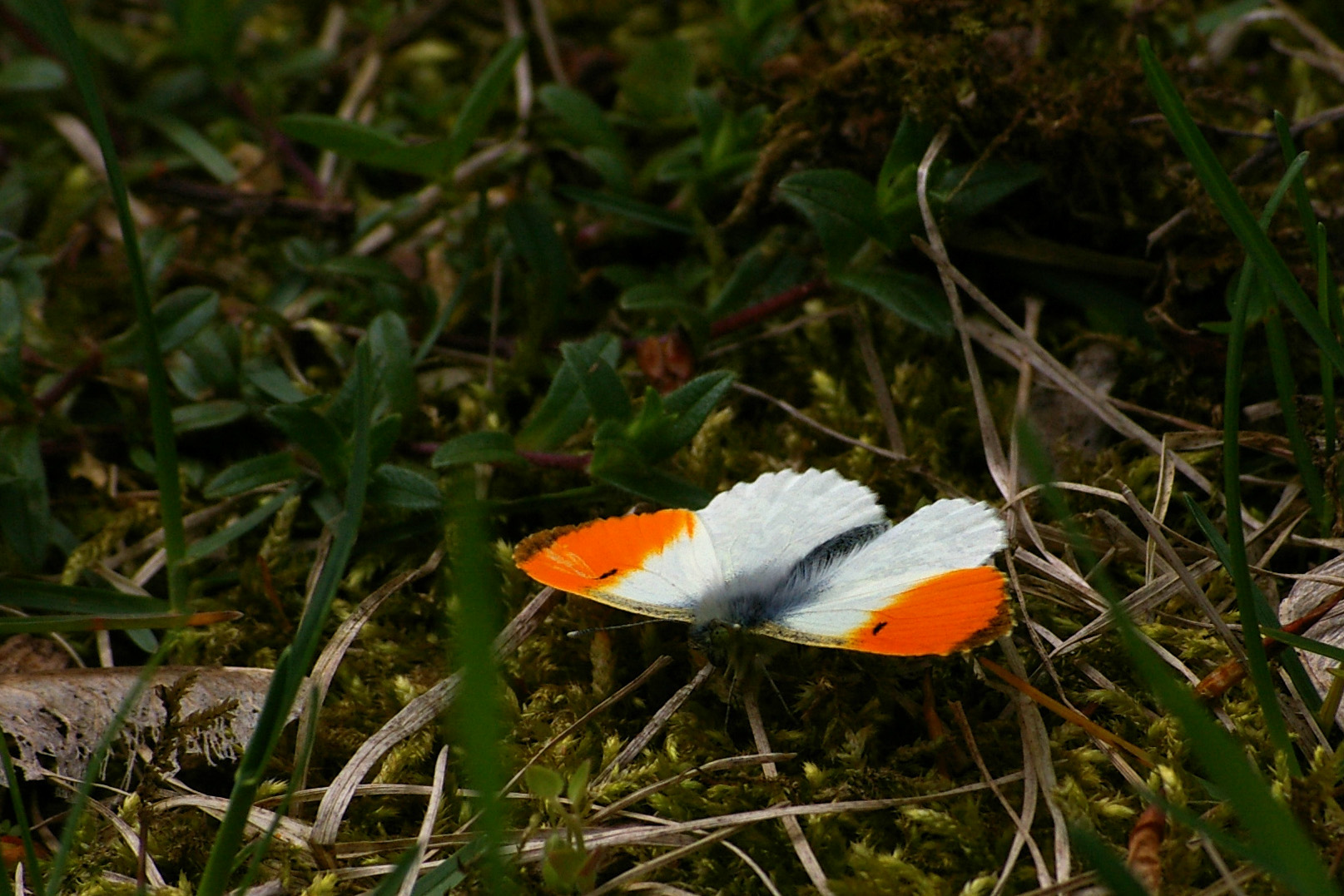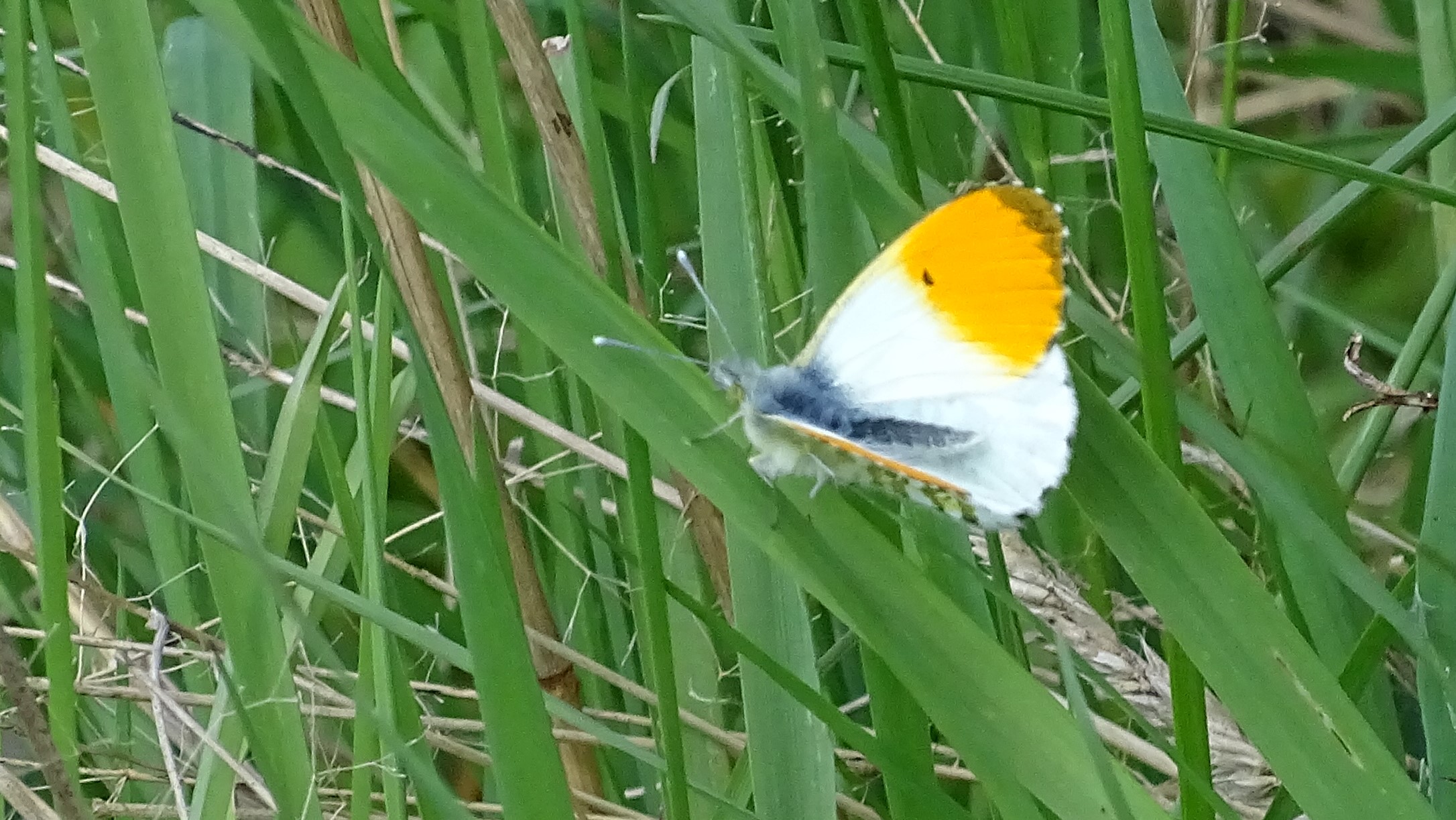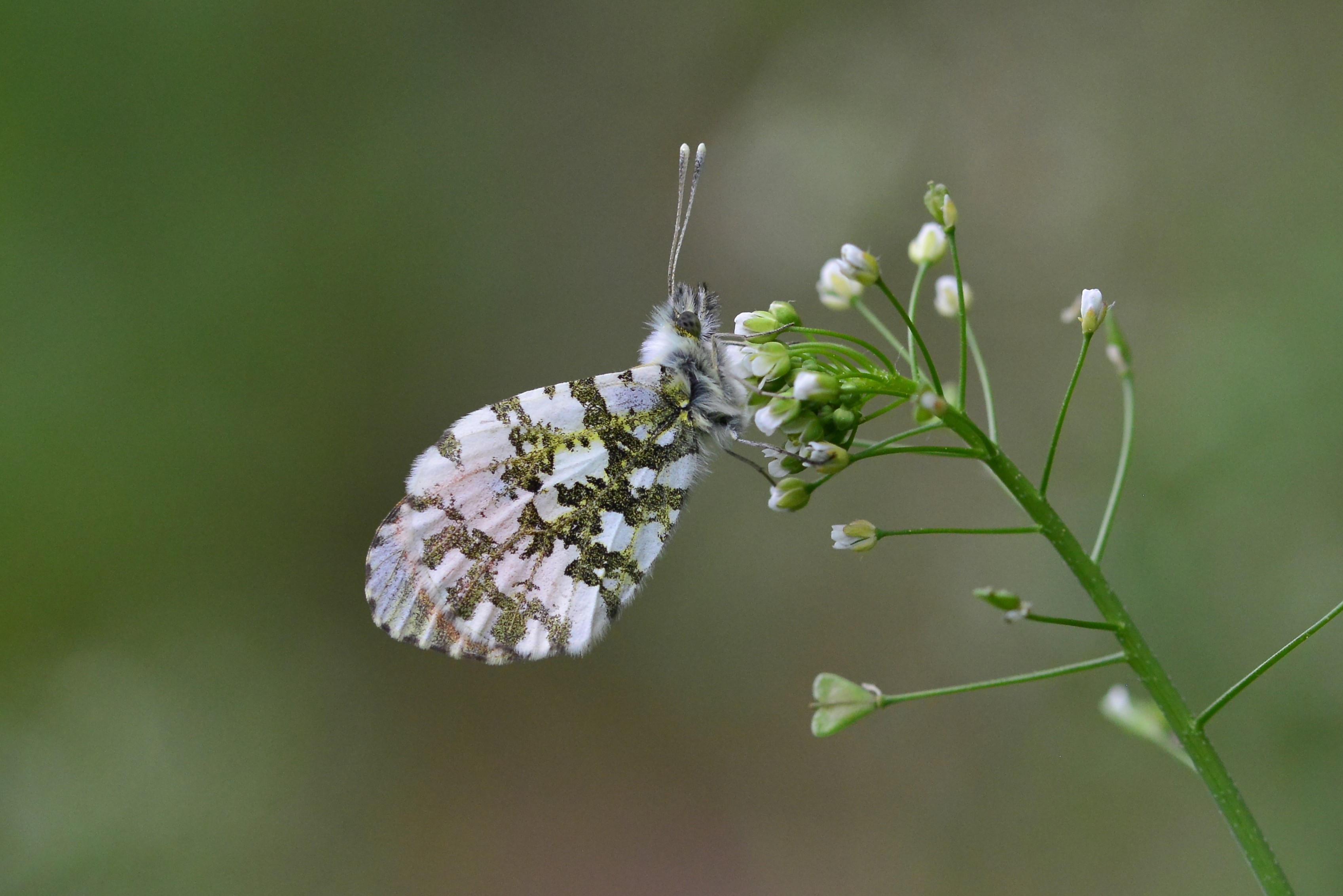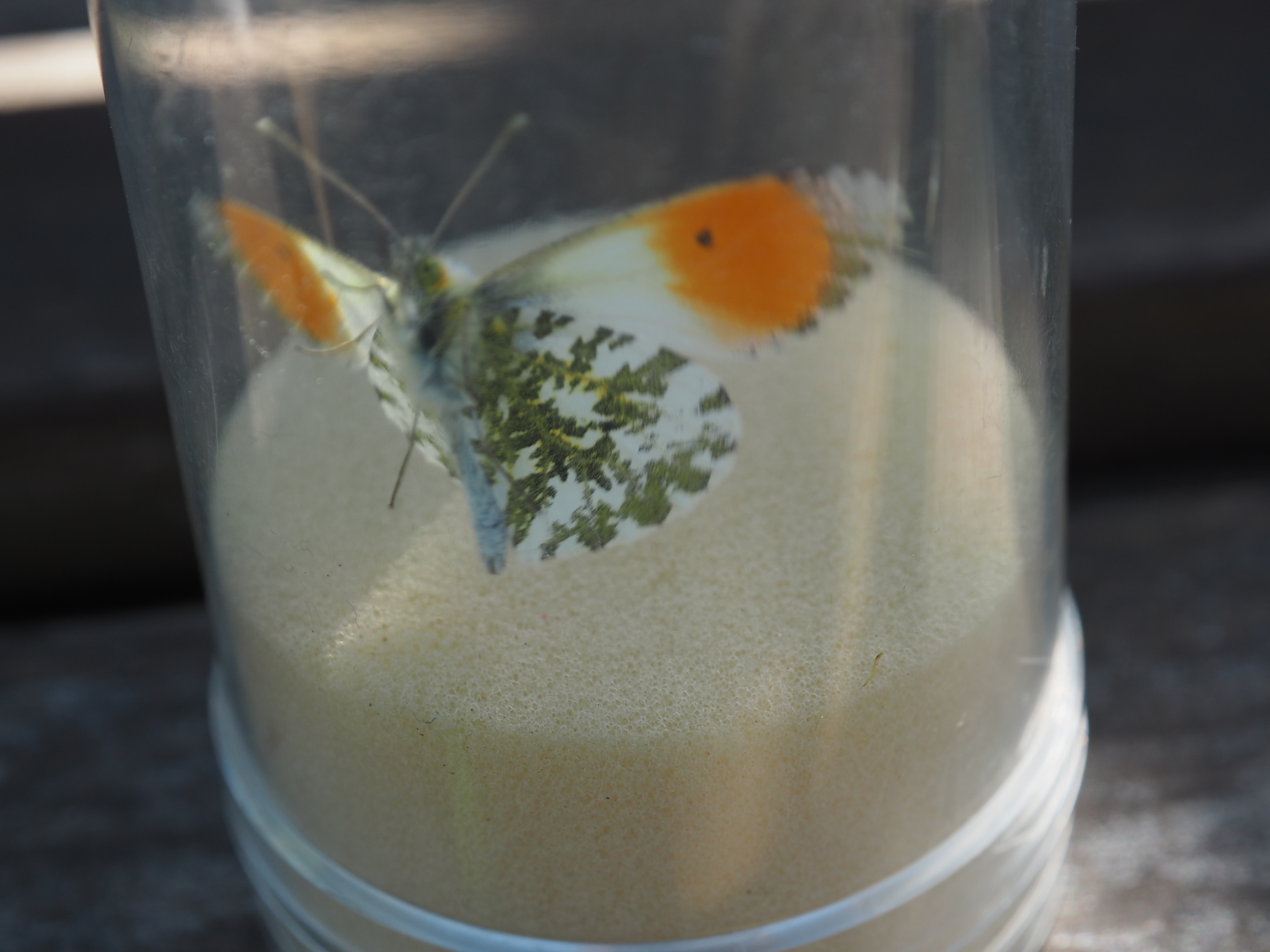 Aurorafalter (Anthocharis cardamines (Linnaeus, 1758)), Männchen, Blütenbesuch an Stellaria holostea, bei Nossen, April 2020 (© Andreas Hurtig)( Bild vergrößern)