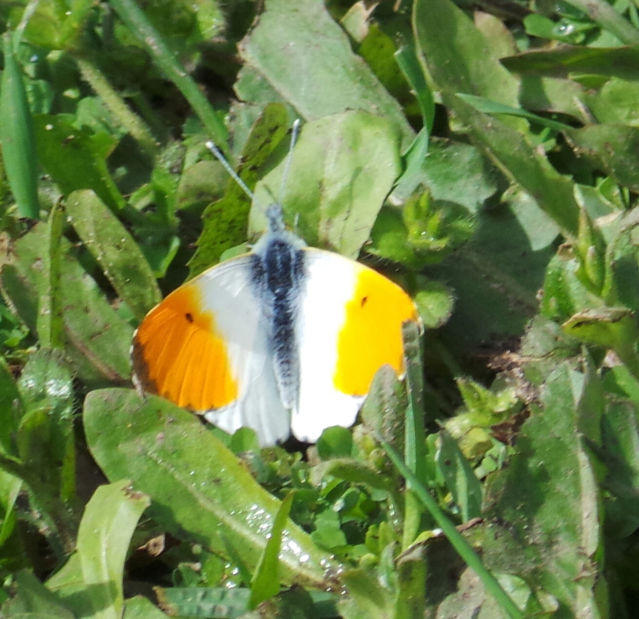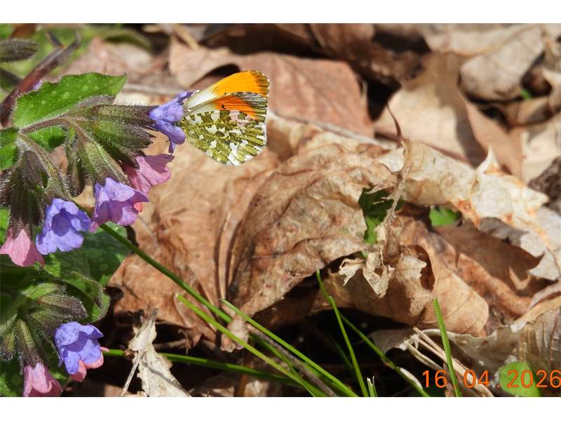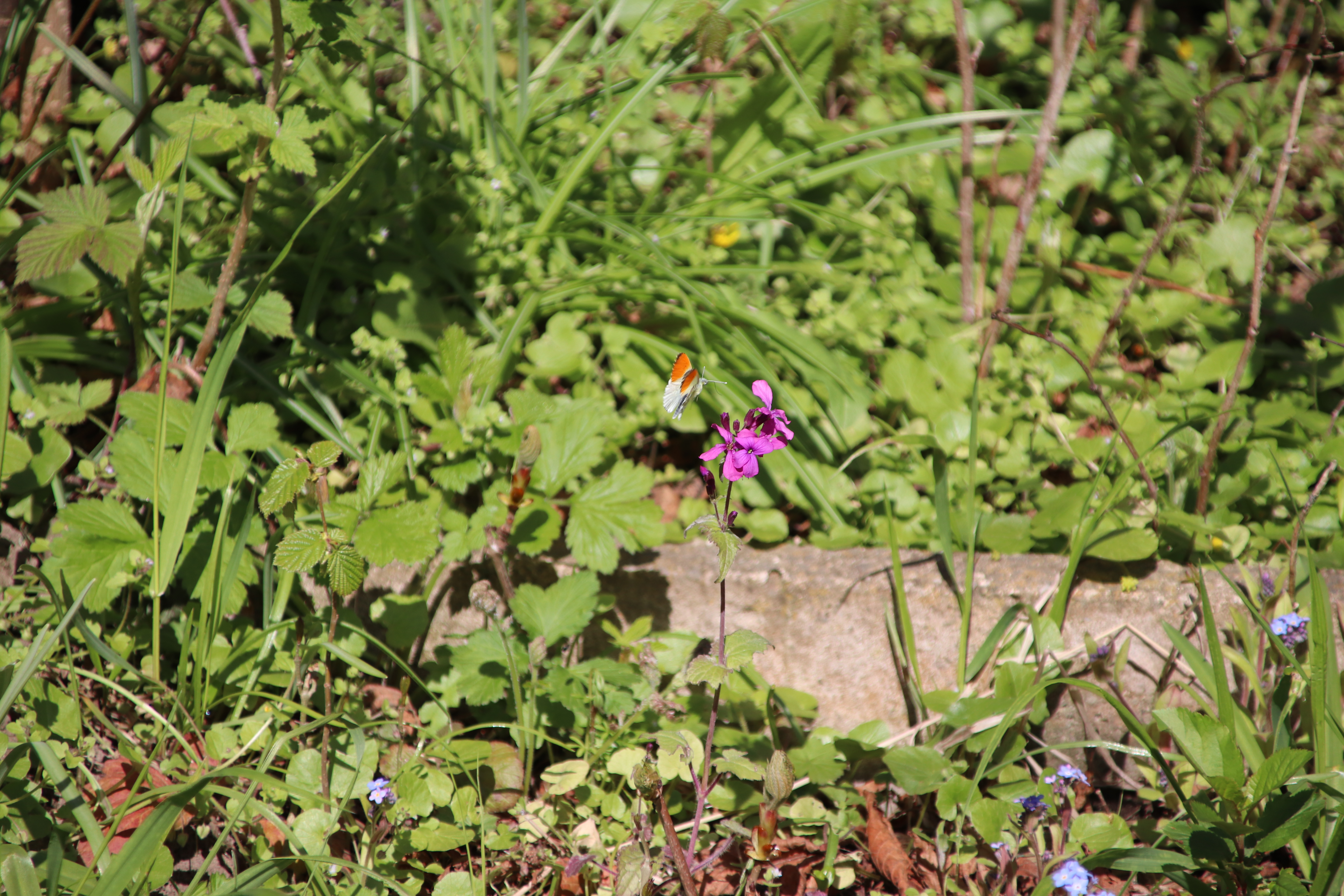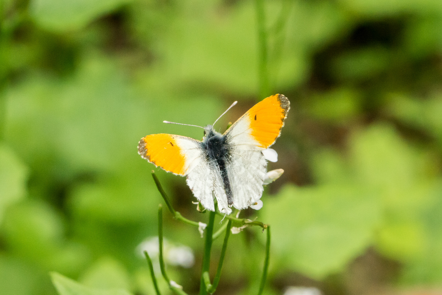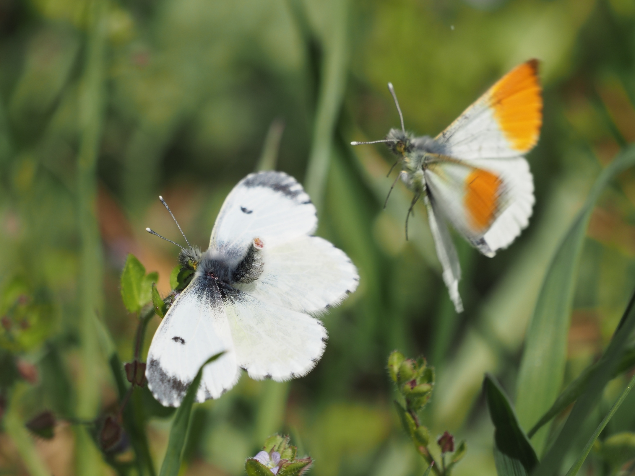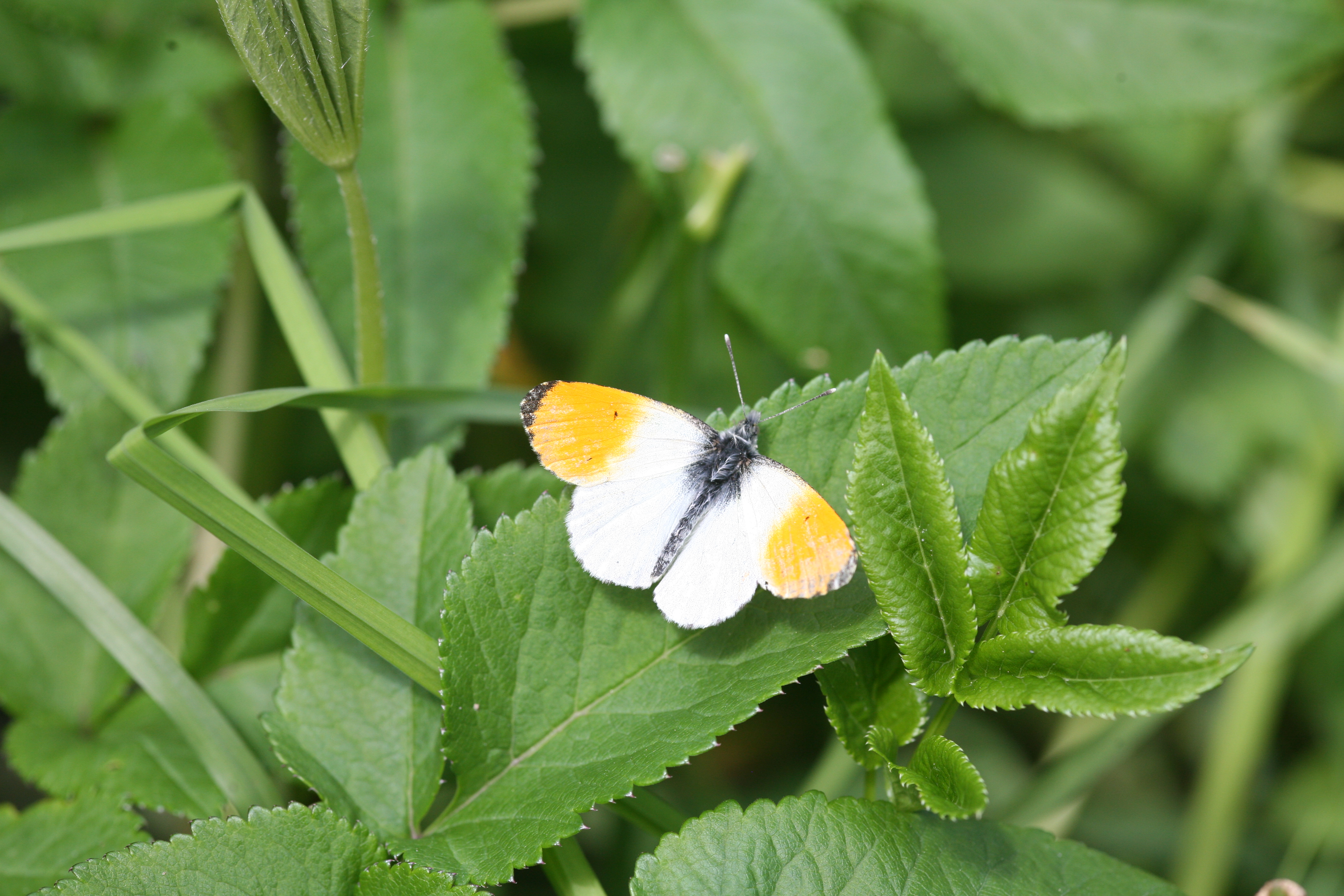 Aurorafalter (Anthocharis cardamines (Linnaeus, 1758)), Männchen, Blütenbesuch an Stellaria holostea, bei Nossen, April 2020 (© Andreas Hurtig)( Bild vergrößern)