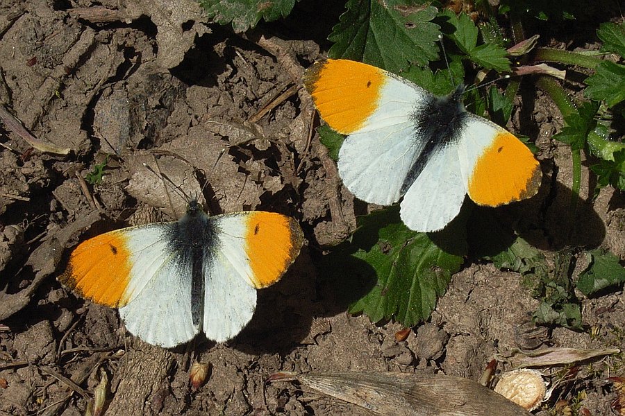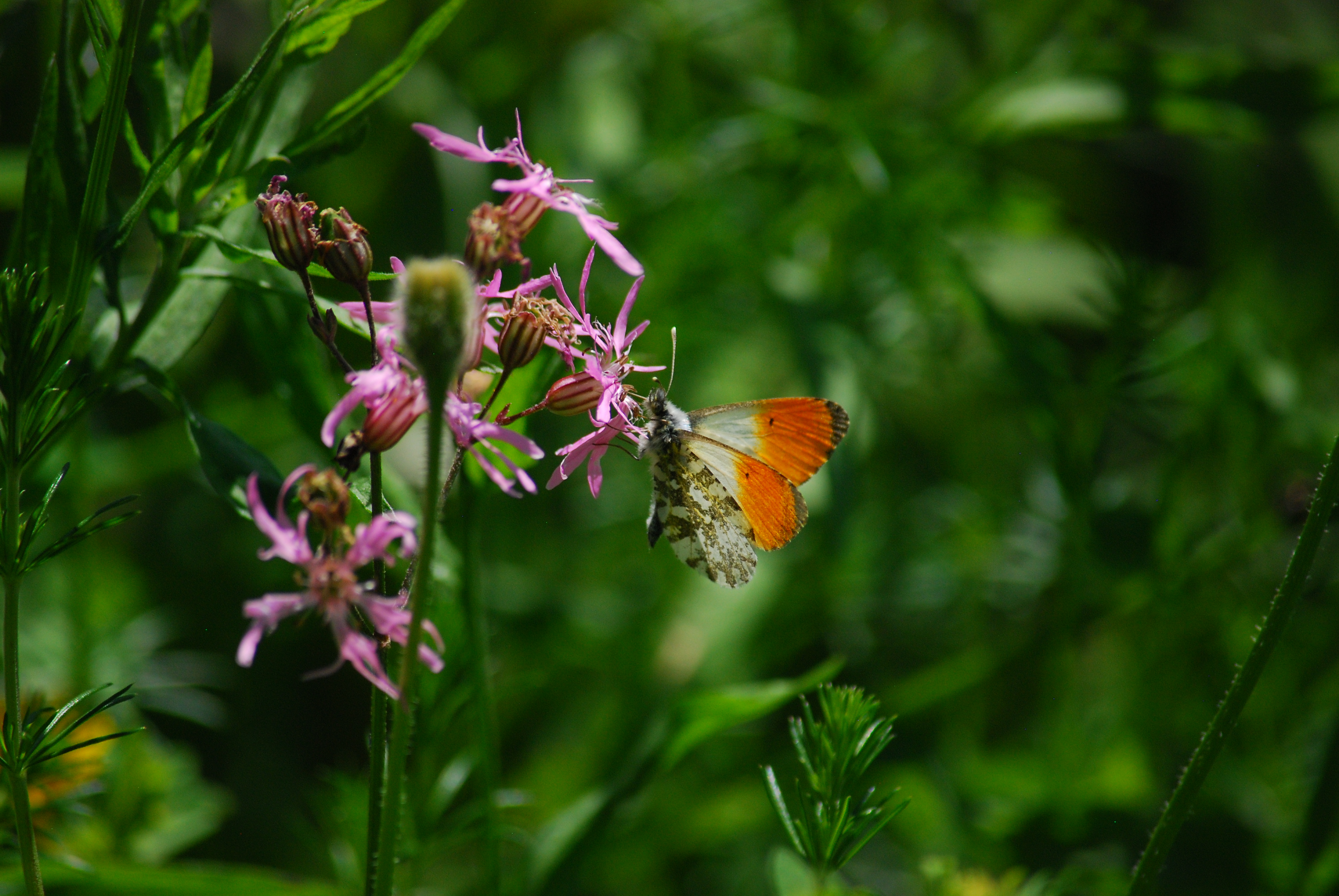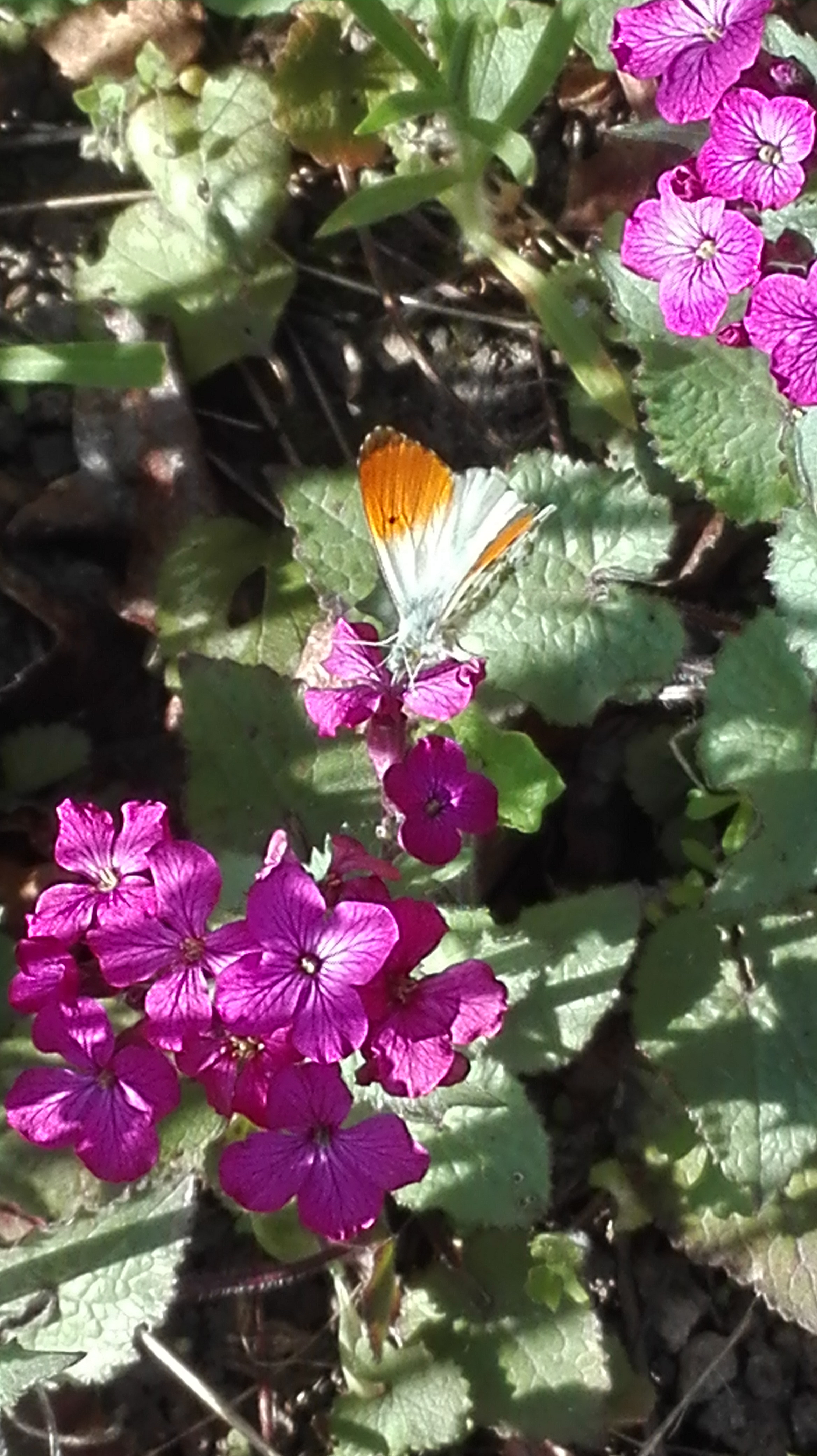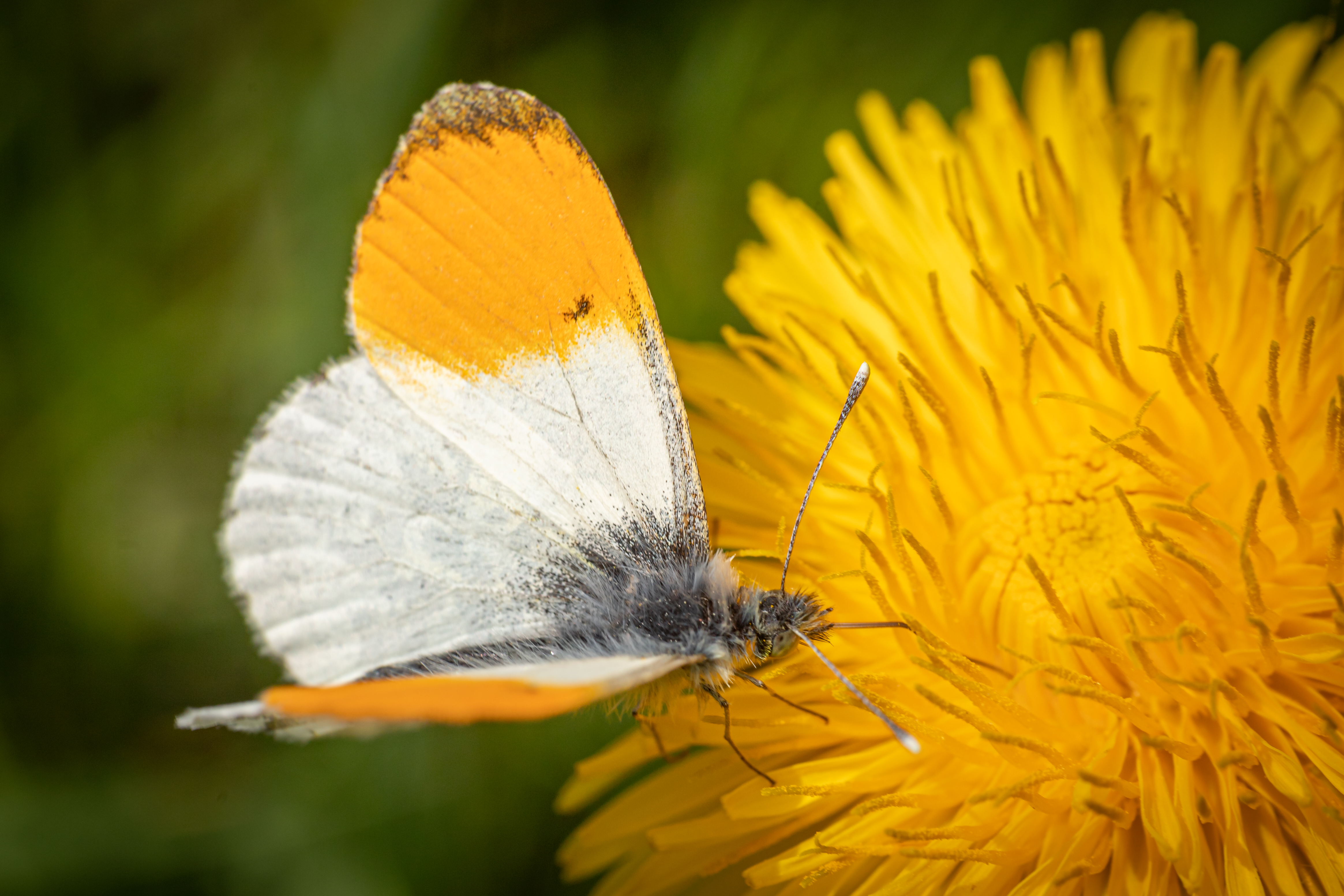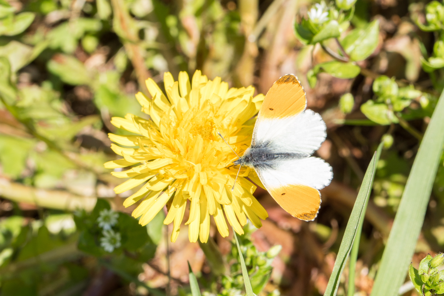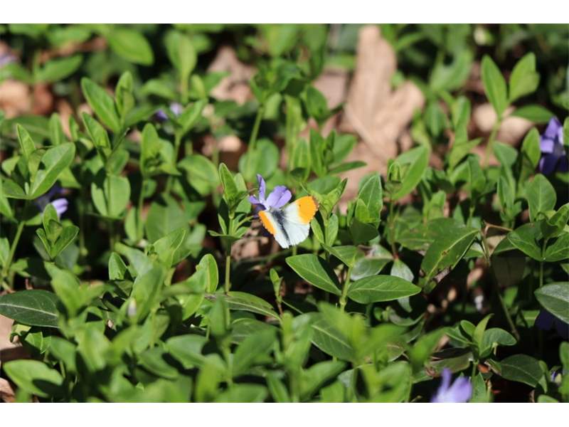 Aurorafalter (Anthocharis cardamines (Linnaeus, 1758)), Männchen, Blütenbesuch an Stellaria holostea, bei Nossen, April 2020 (© Andreas Hurtig)( Bild vergrößern)
