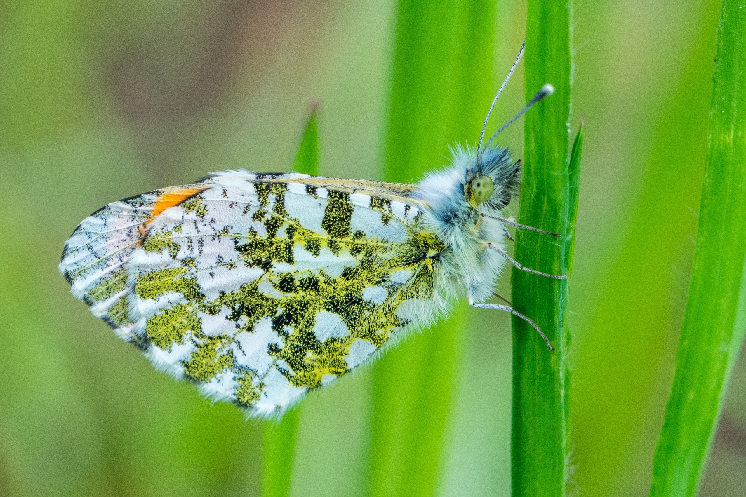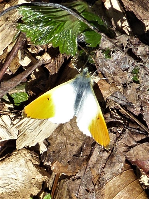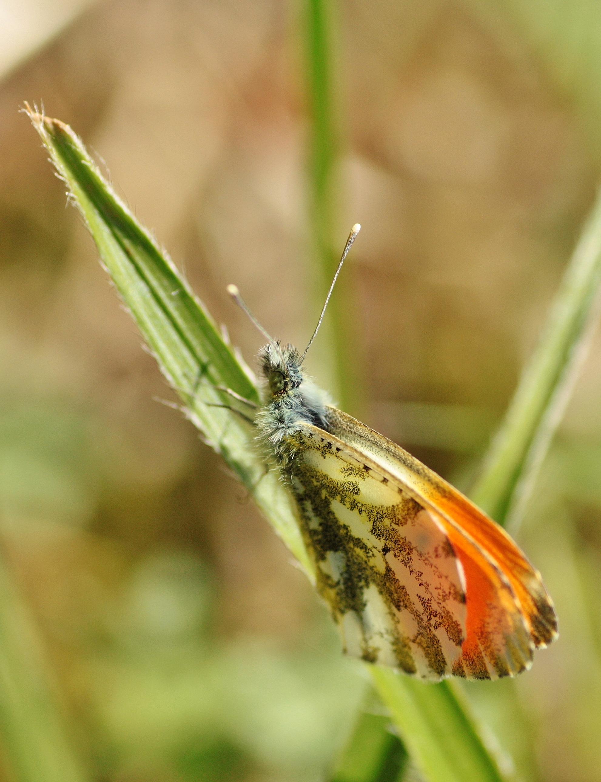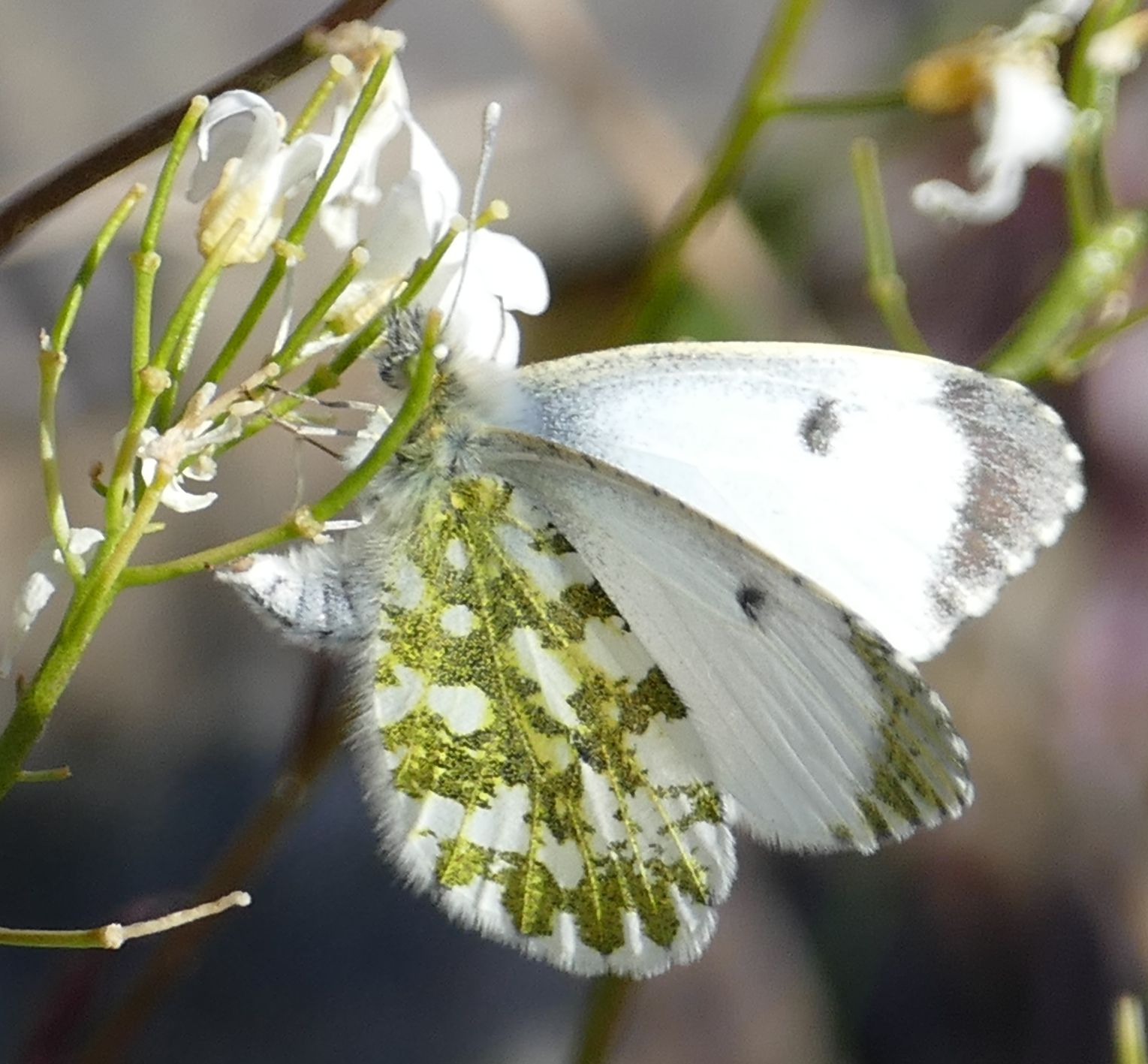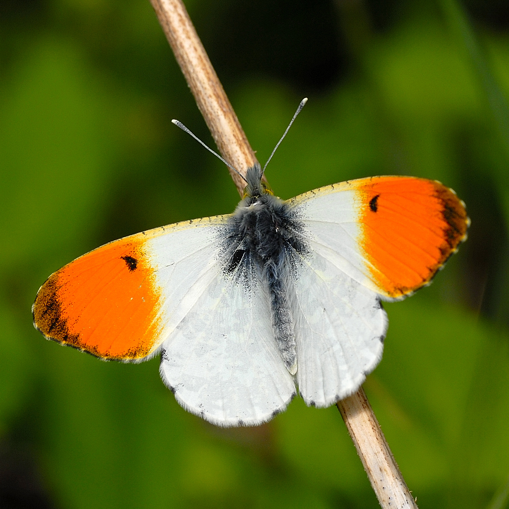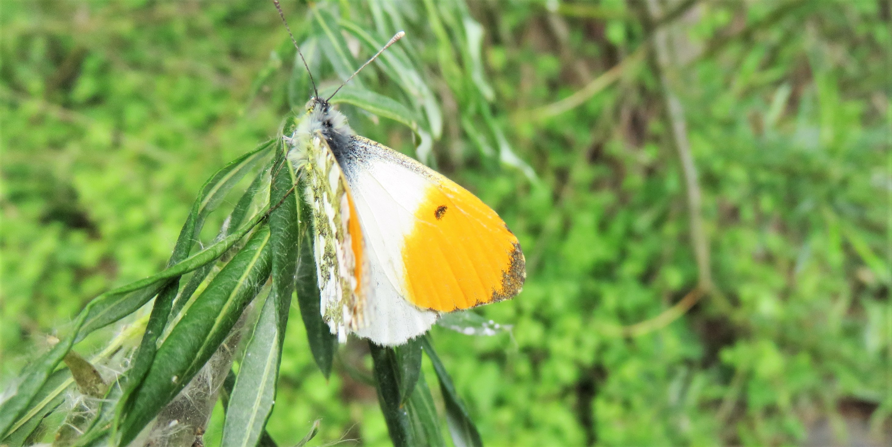Aurorafalter (Anthocharis cardamines (Linnaeus, 1758)), Männchen, Blütenbesuch an Stellaria holostea, bei Nossen, April 2020 (© Andreas Hurtig)( Bild vergrößern)