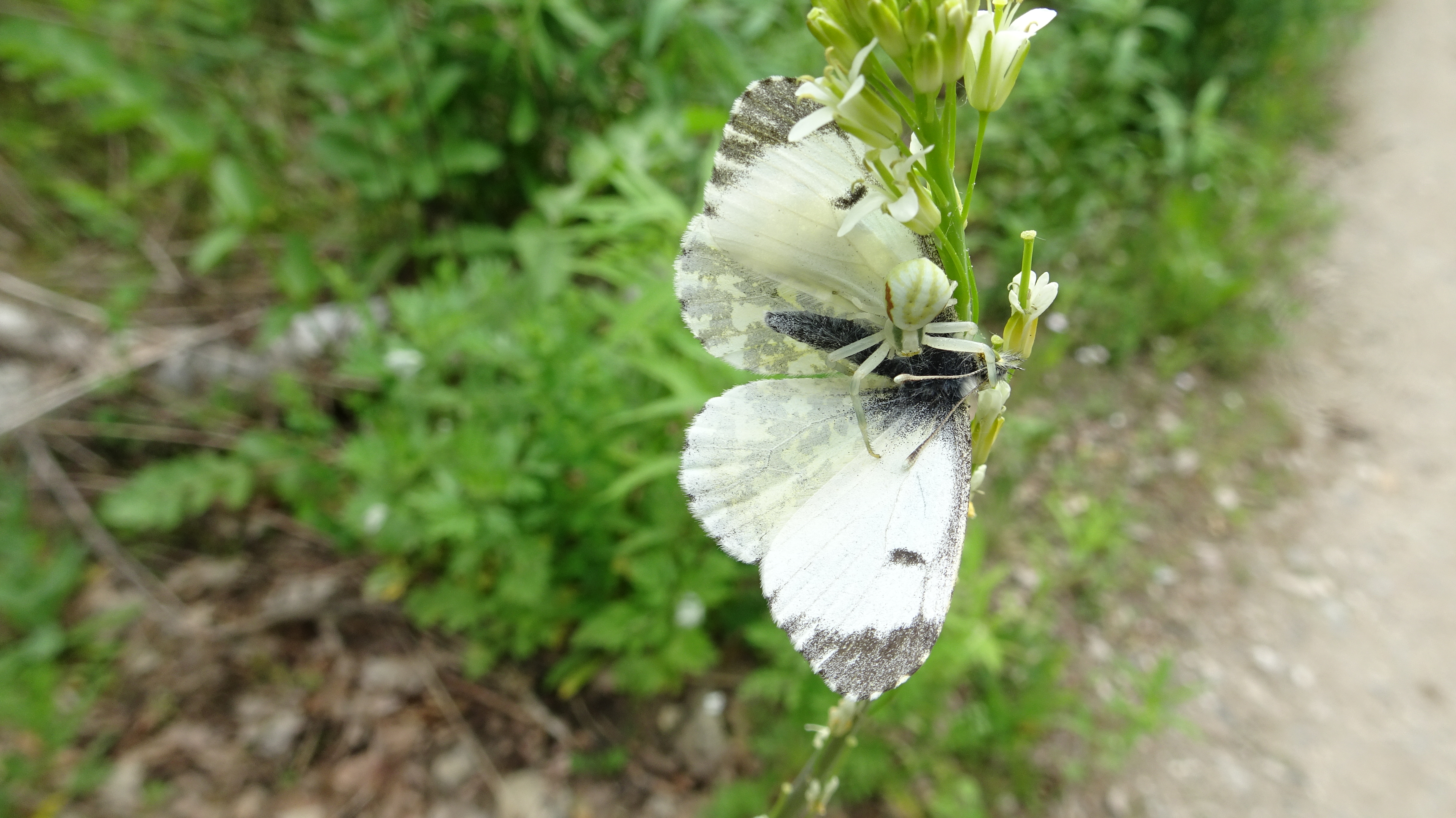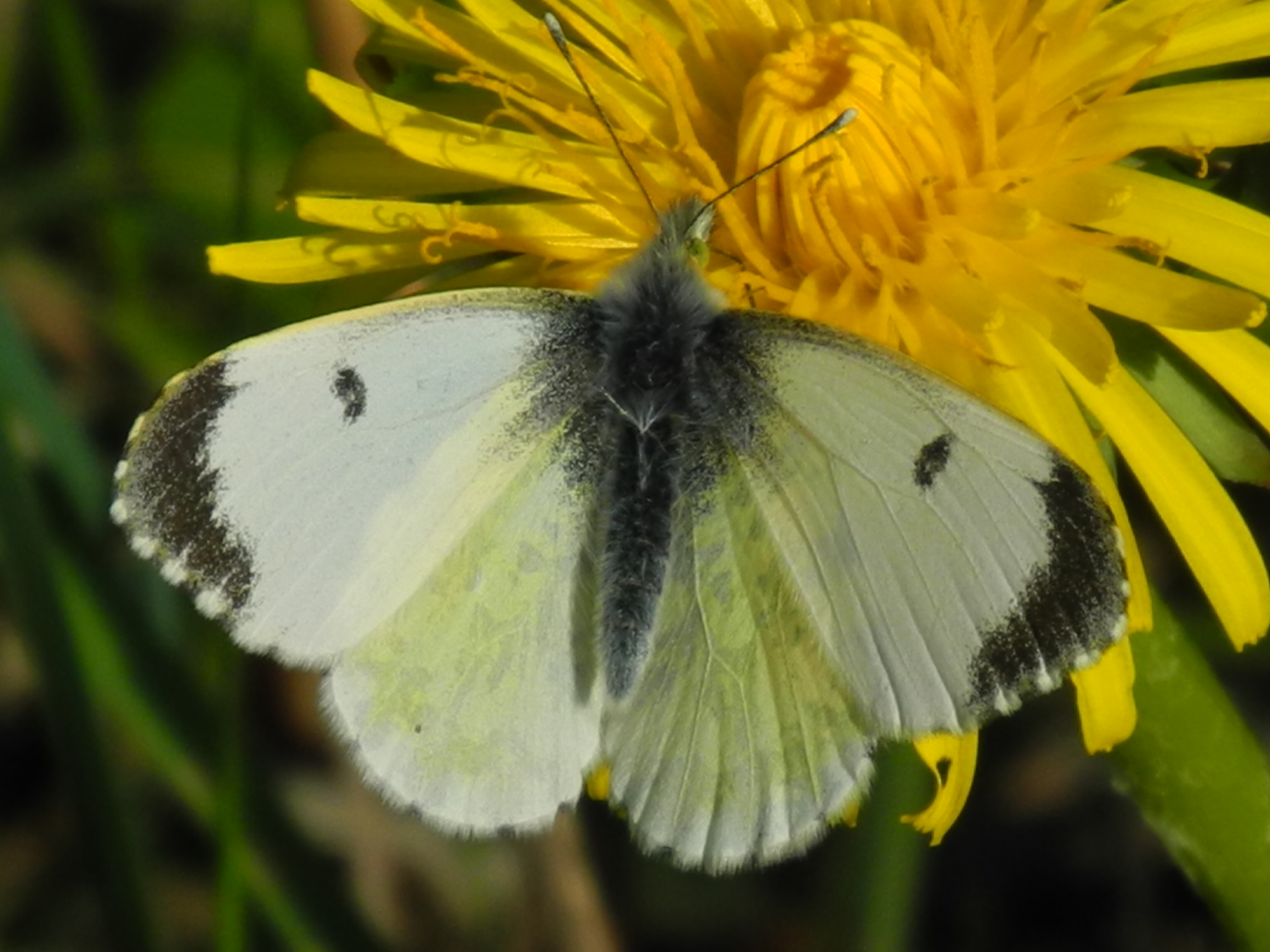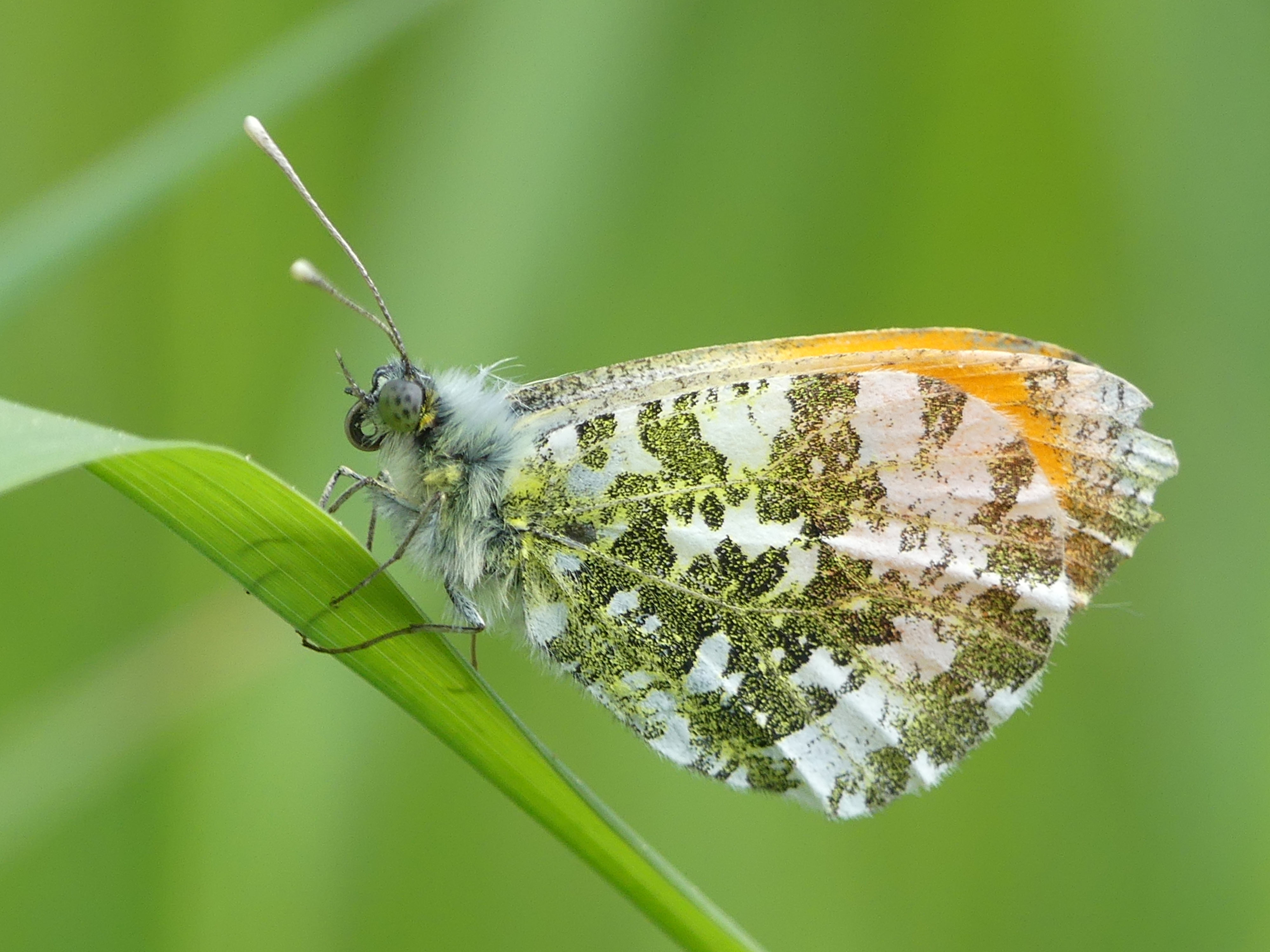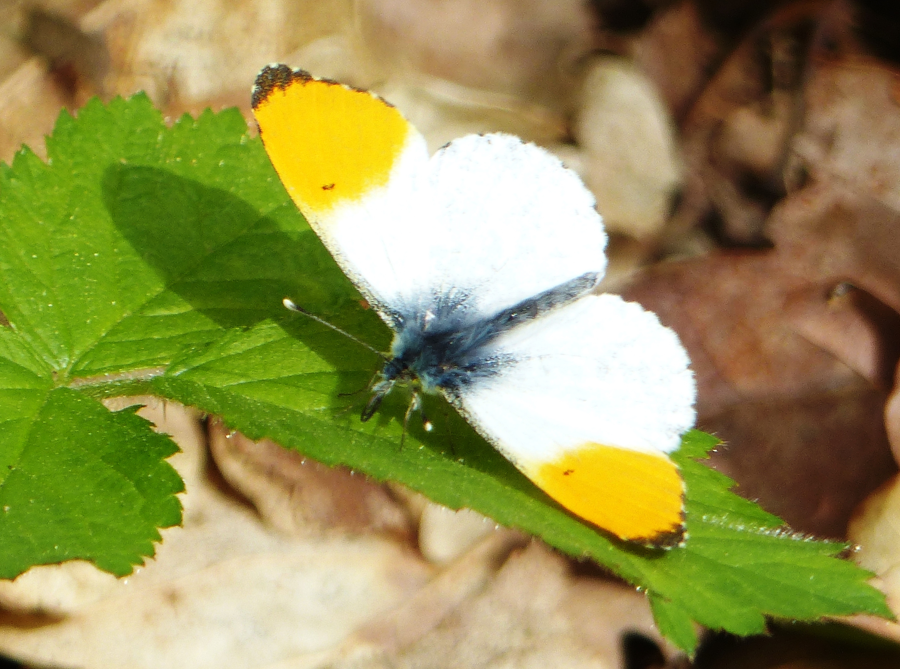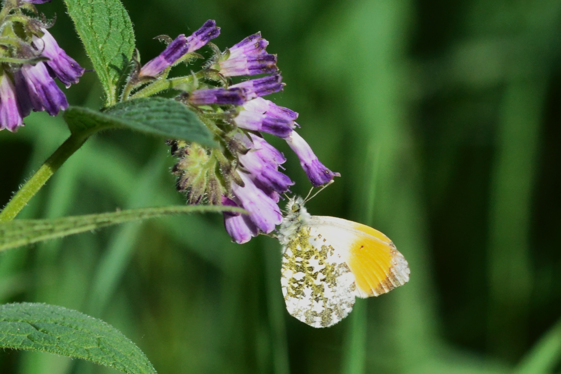 Aurorafalter (Anthocharis cardamines (Linnaeus, 1758)), Männchen, Blütenbesuch an Stellaria holostea, bei Nossen, April 2020 (© Andreas Hurtig)( Bild vergrößern)