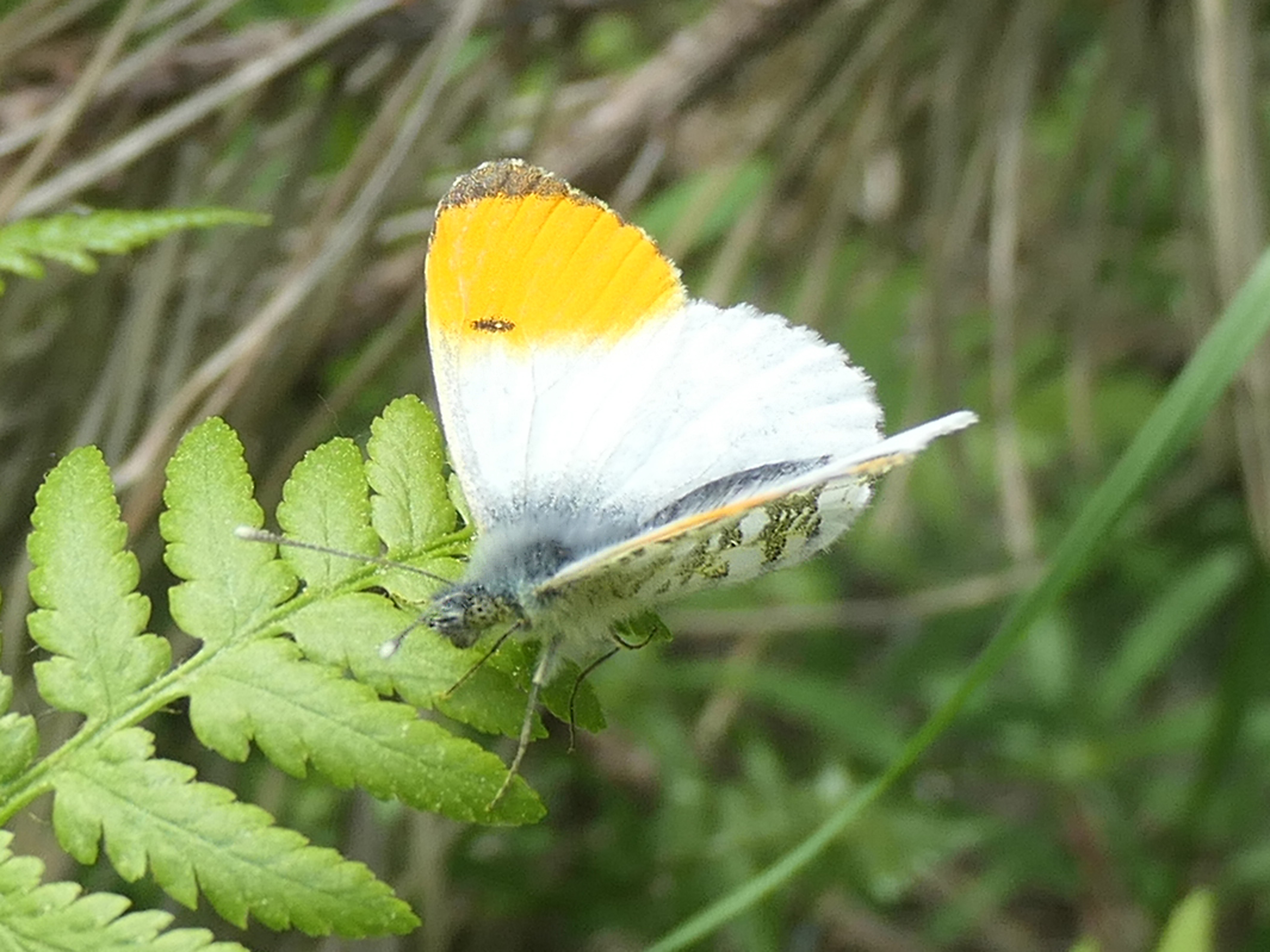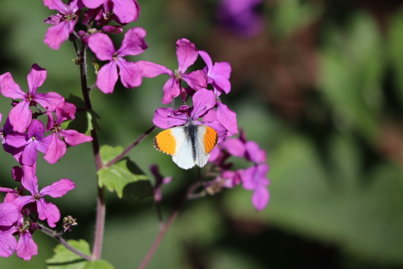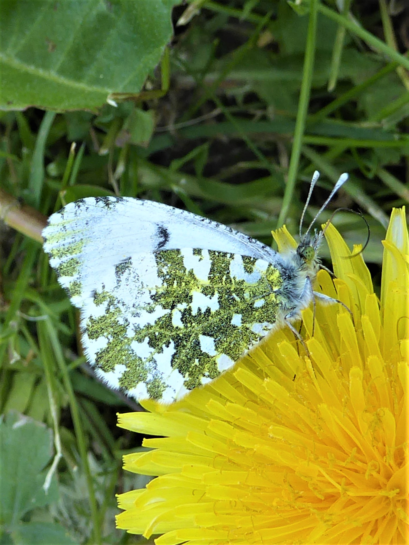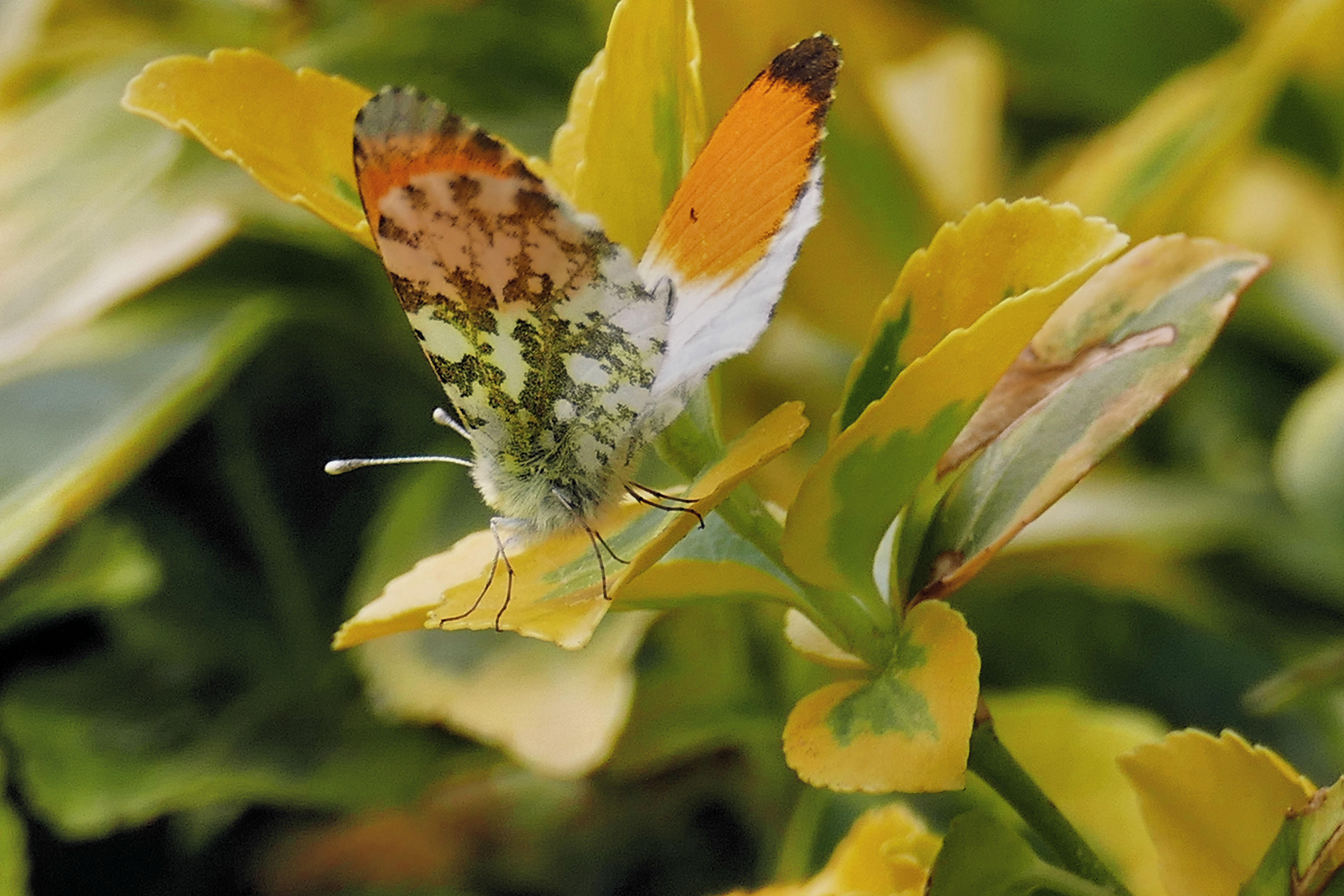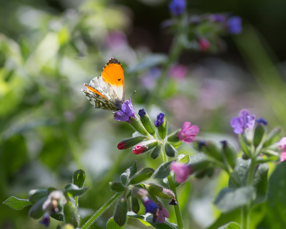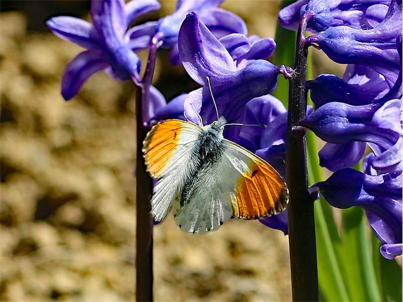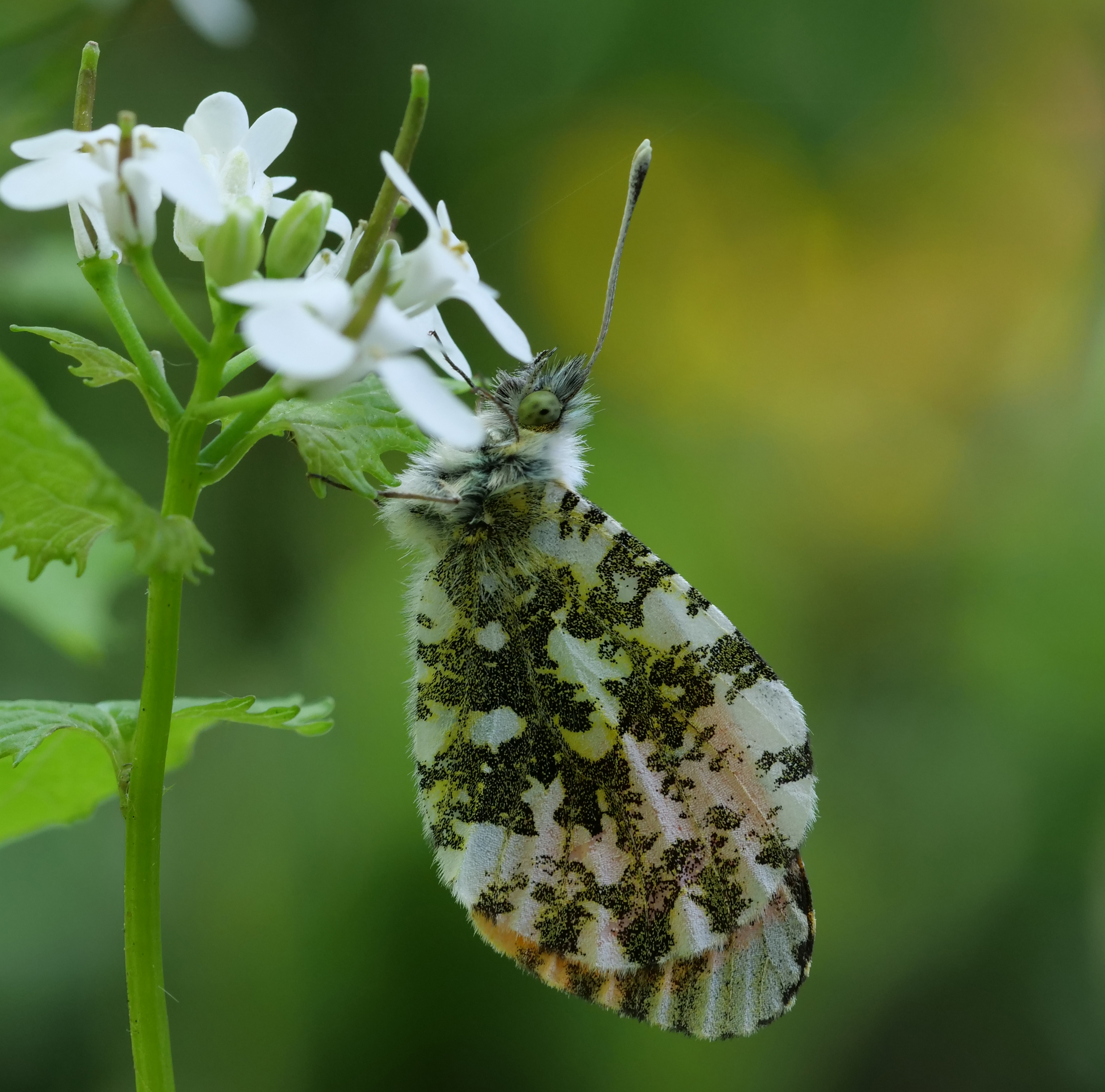 Aurorafalter (Anthocharis cardamines (Linnaeus, 1758)), Männchen, Blütenbesuch an Stellaria holostea, bei Nossen, April 2020 (© Andreas Hurtig)( Bild vergrößern)