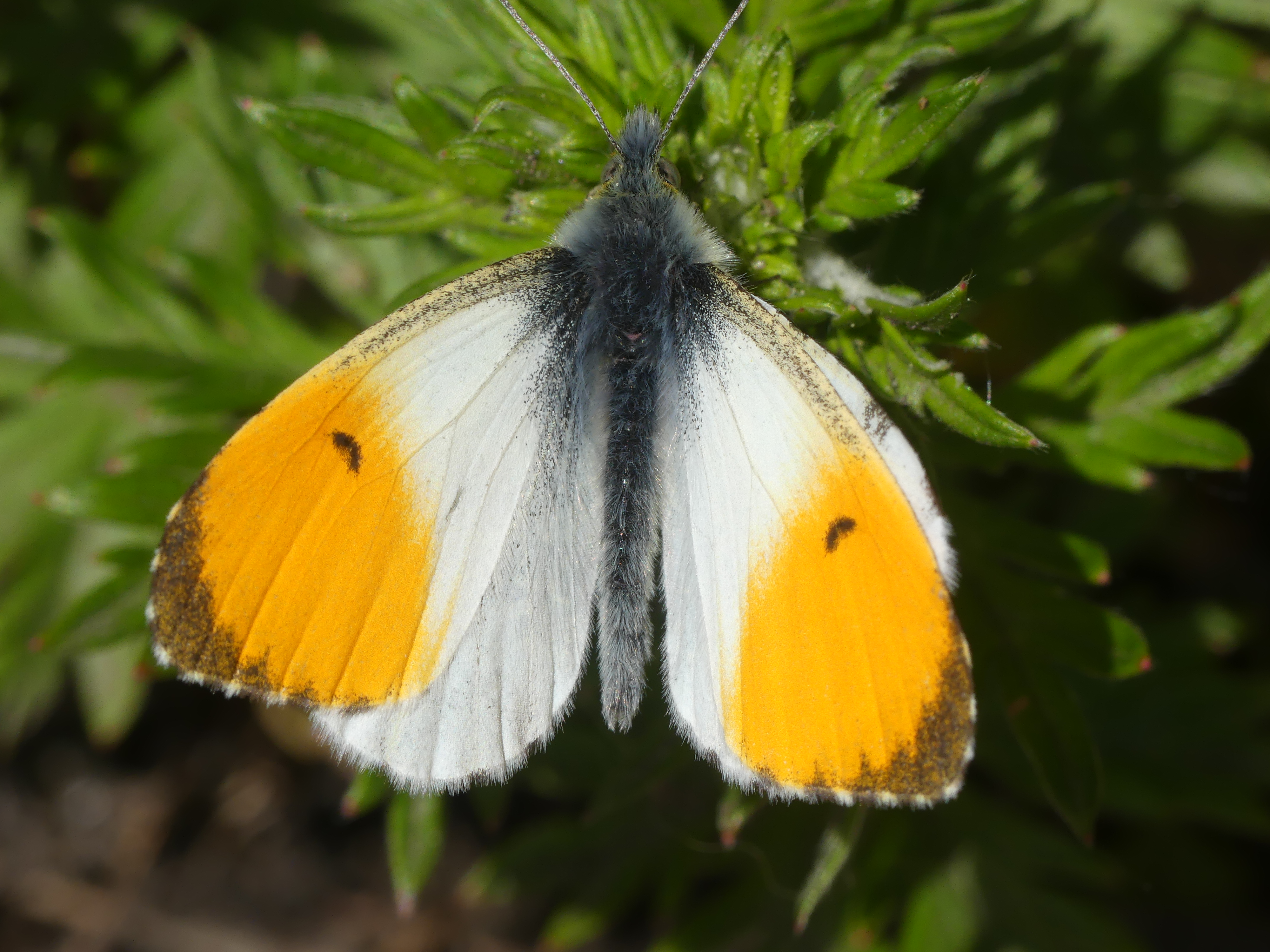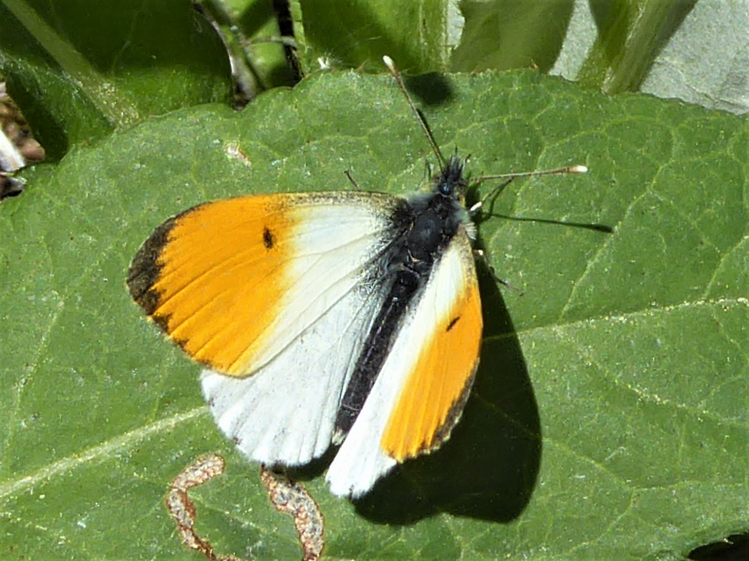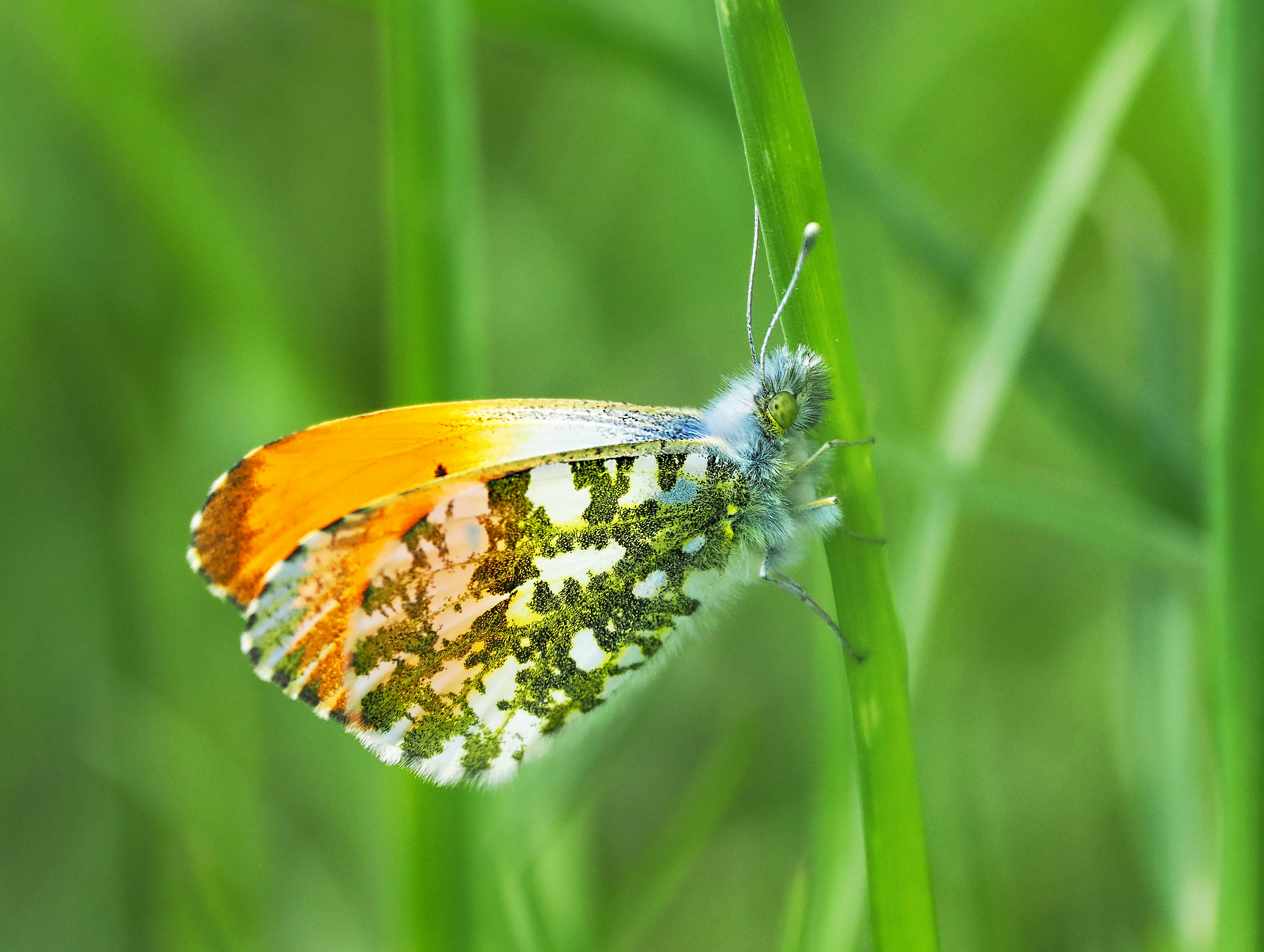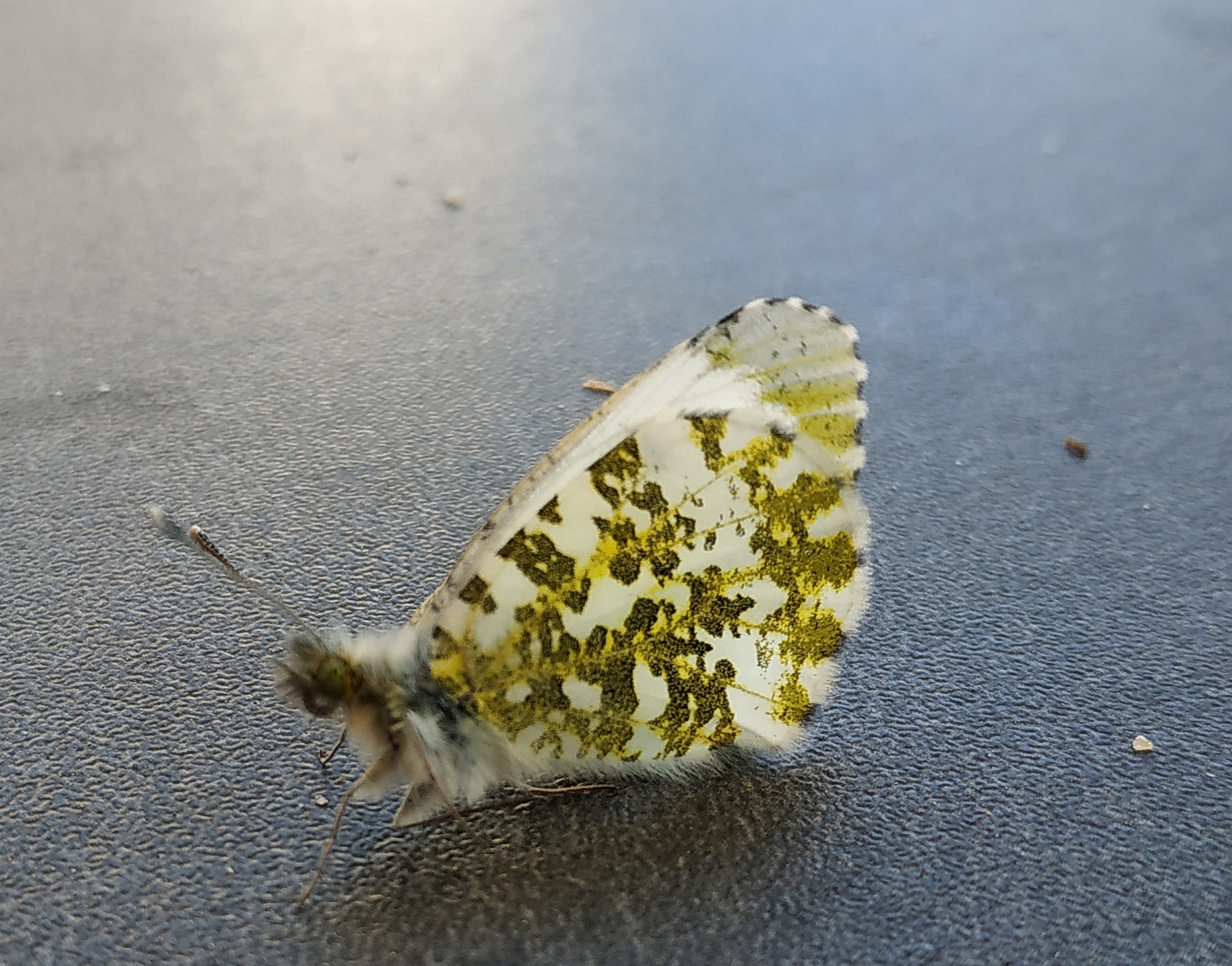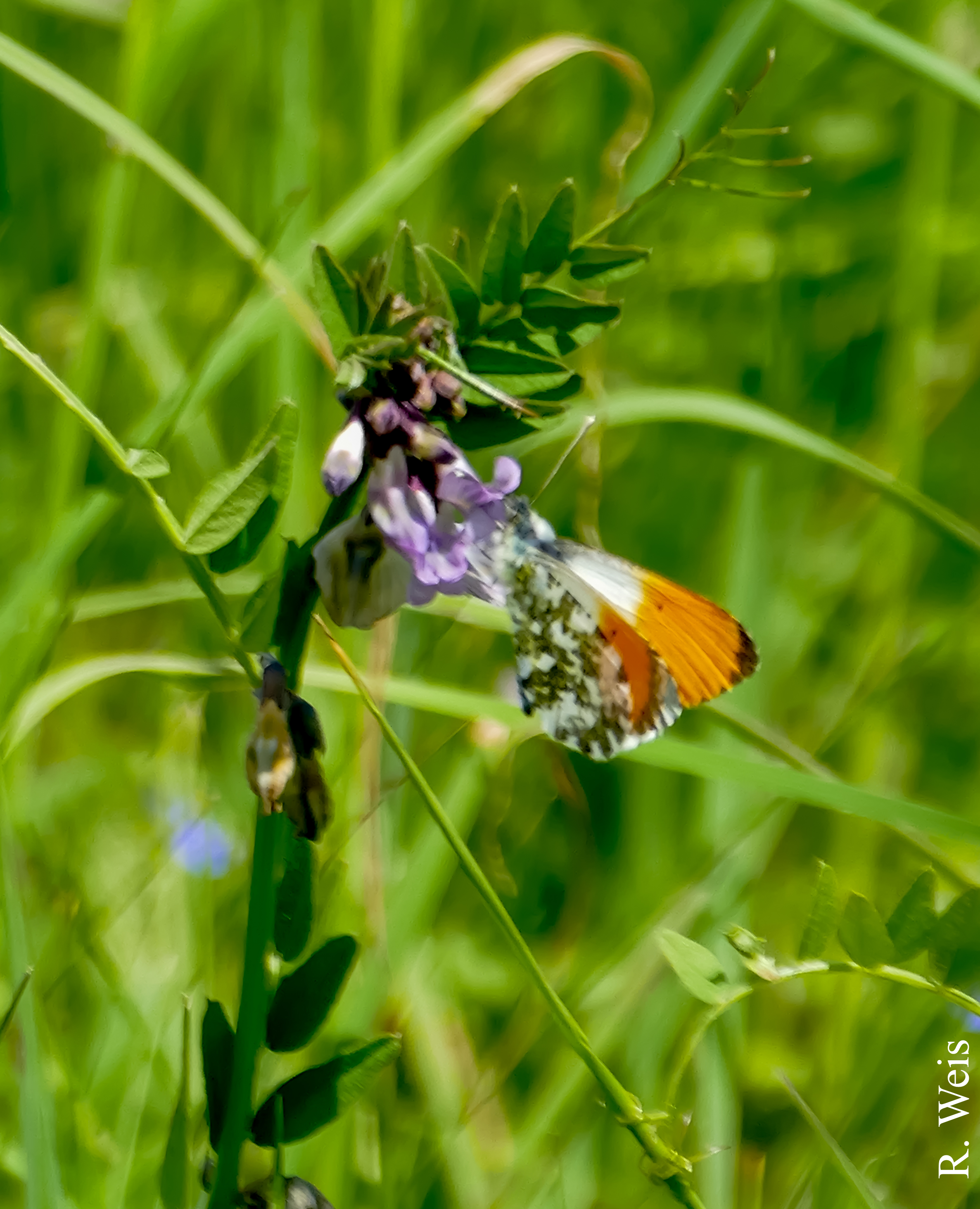 Aurorafalter (Anthocharis cardamines (Linnaeus, 1758)), Männchen, Blütenbesuch an Stellaria holostea, bei Nossen, April 2020 (© Andreas Hurtig)( Bild vergrößern)