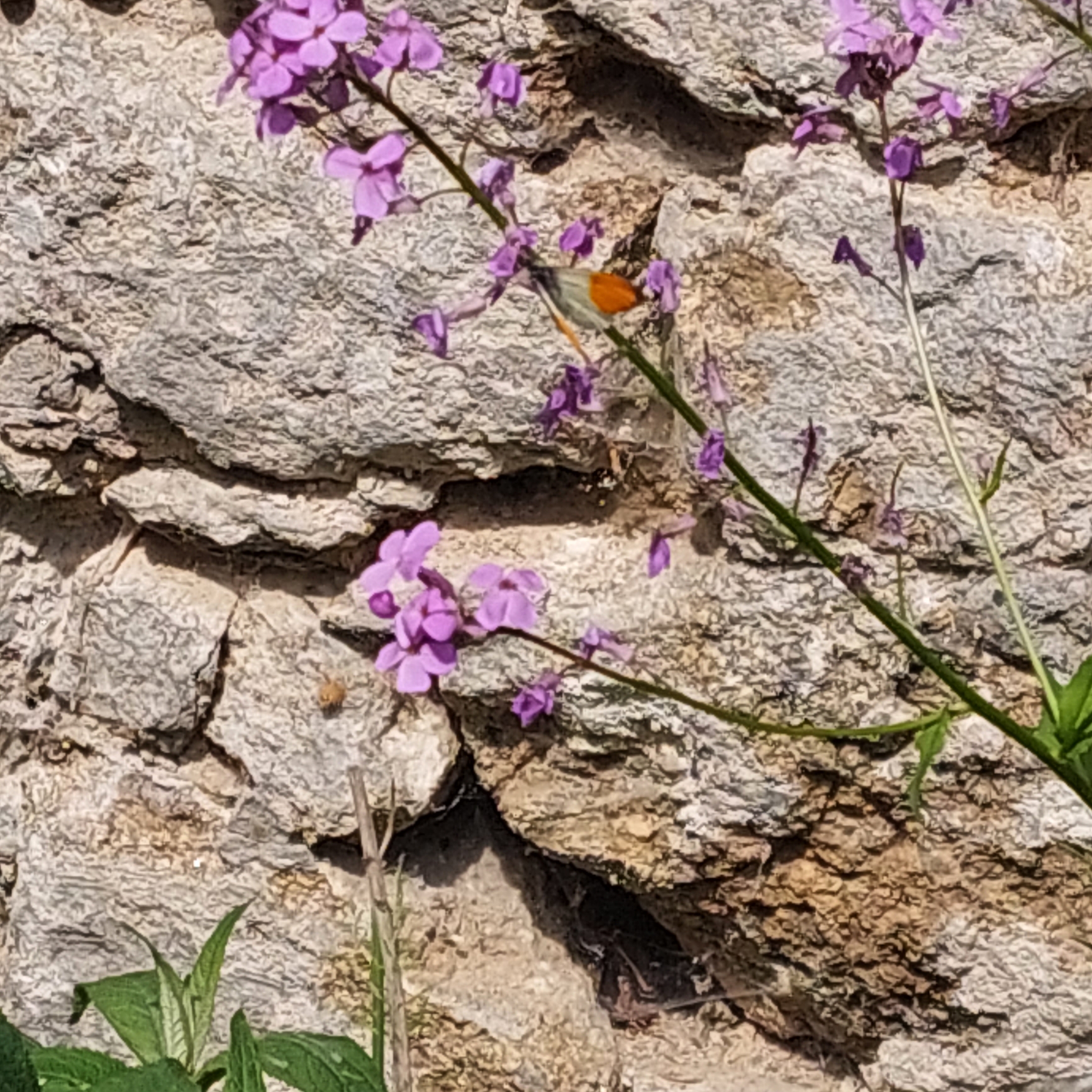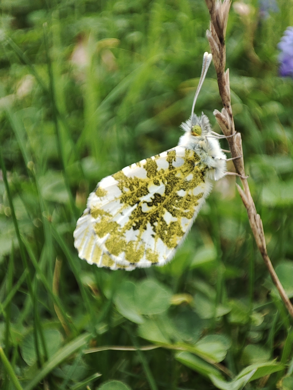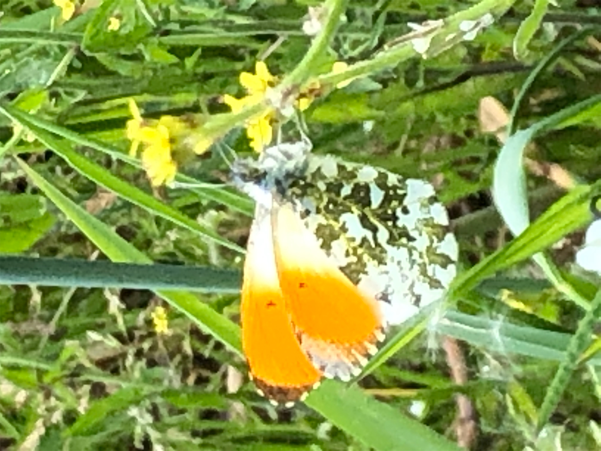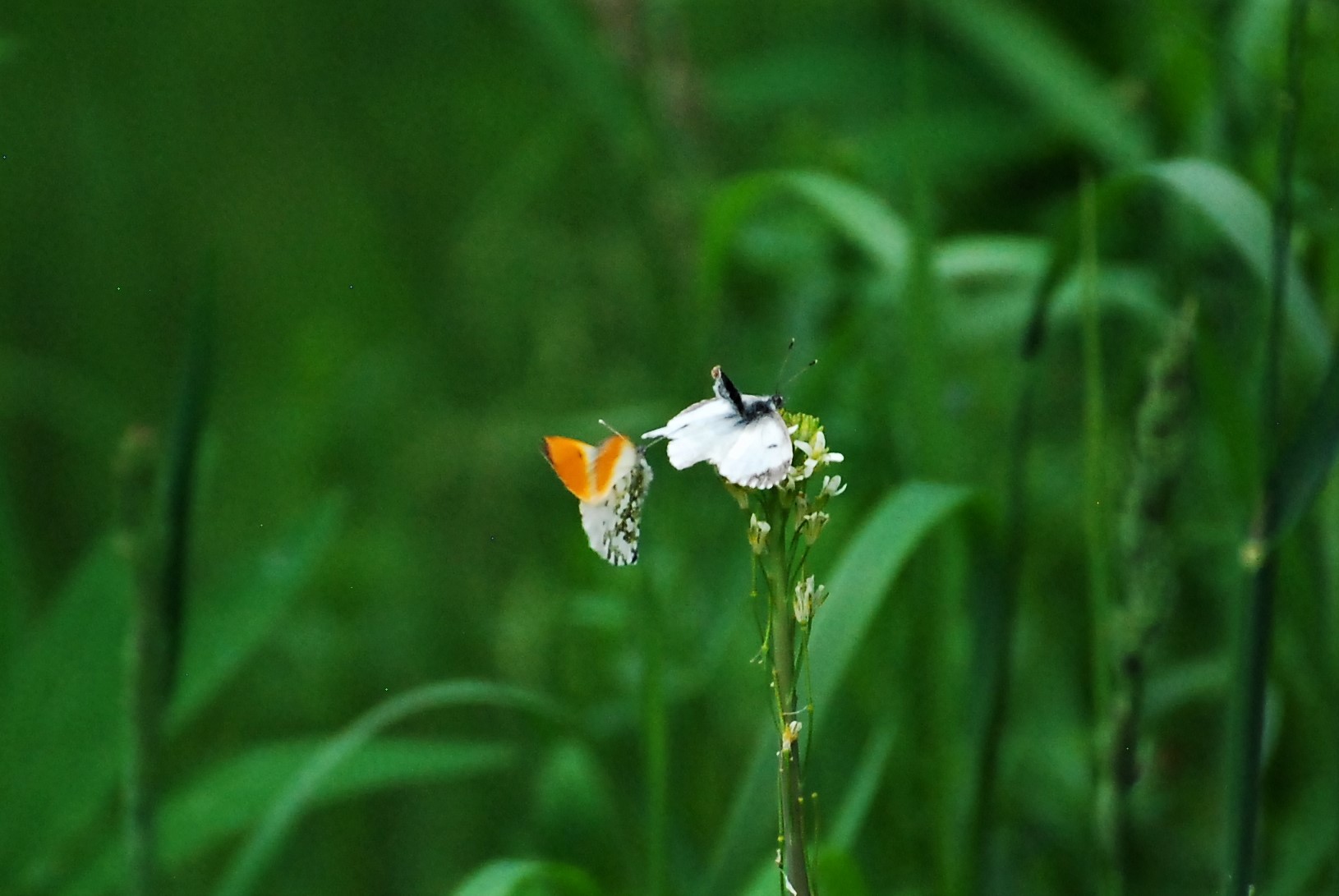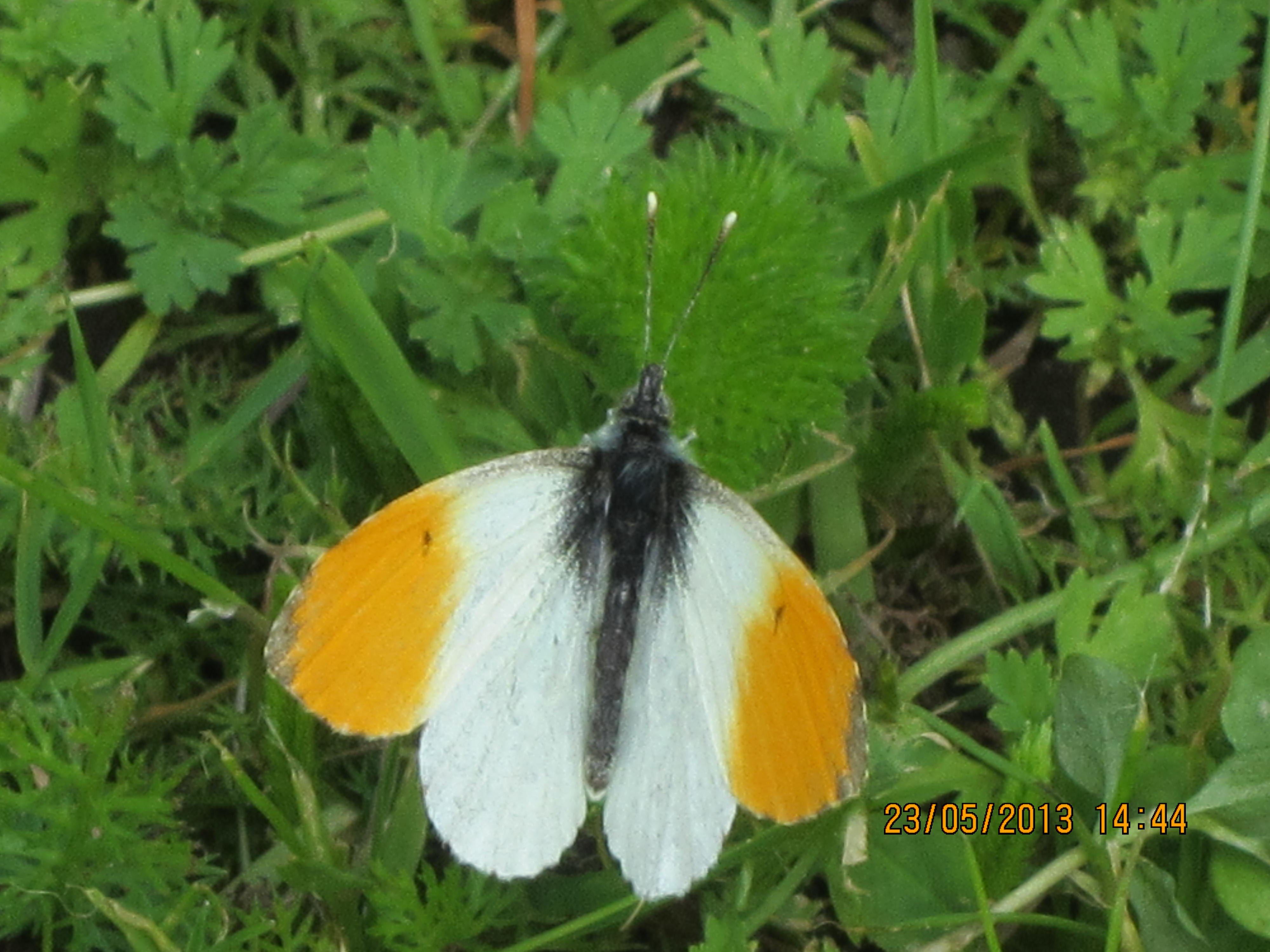 Aurorafalter (Anthocharis cardamines (Linnaeus, 1758)), Männchen, Blütenbesuch an Stellaria holostea, bei Nossen, April 2020 (© Andreas Hurtig)( Bild vergrößern)