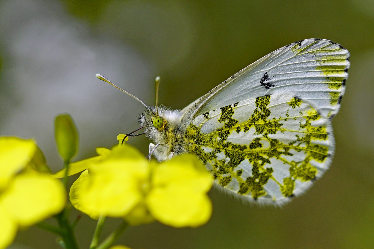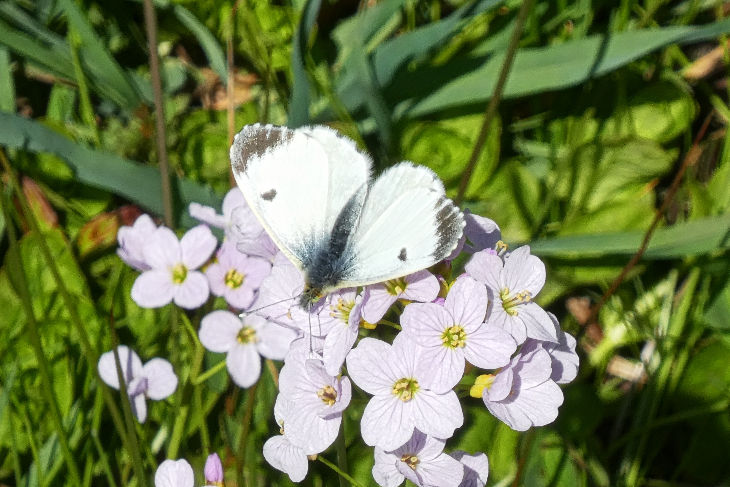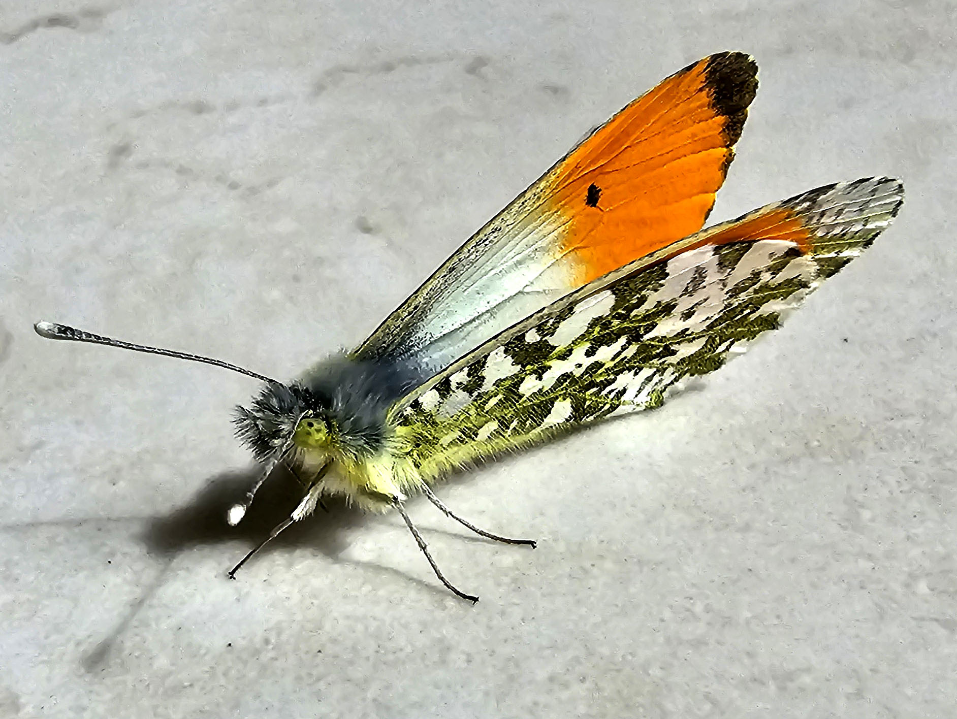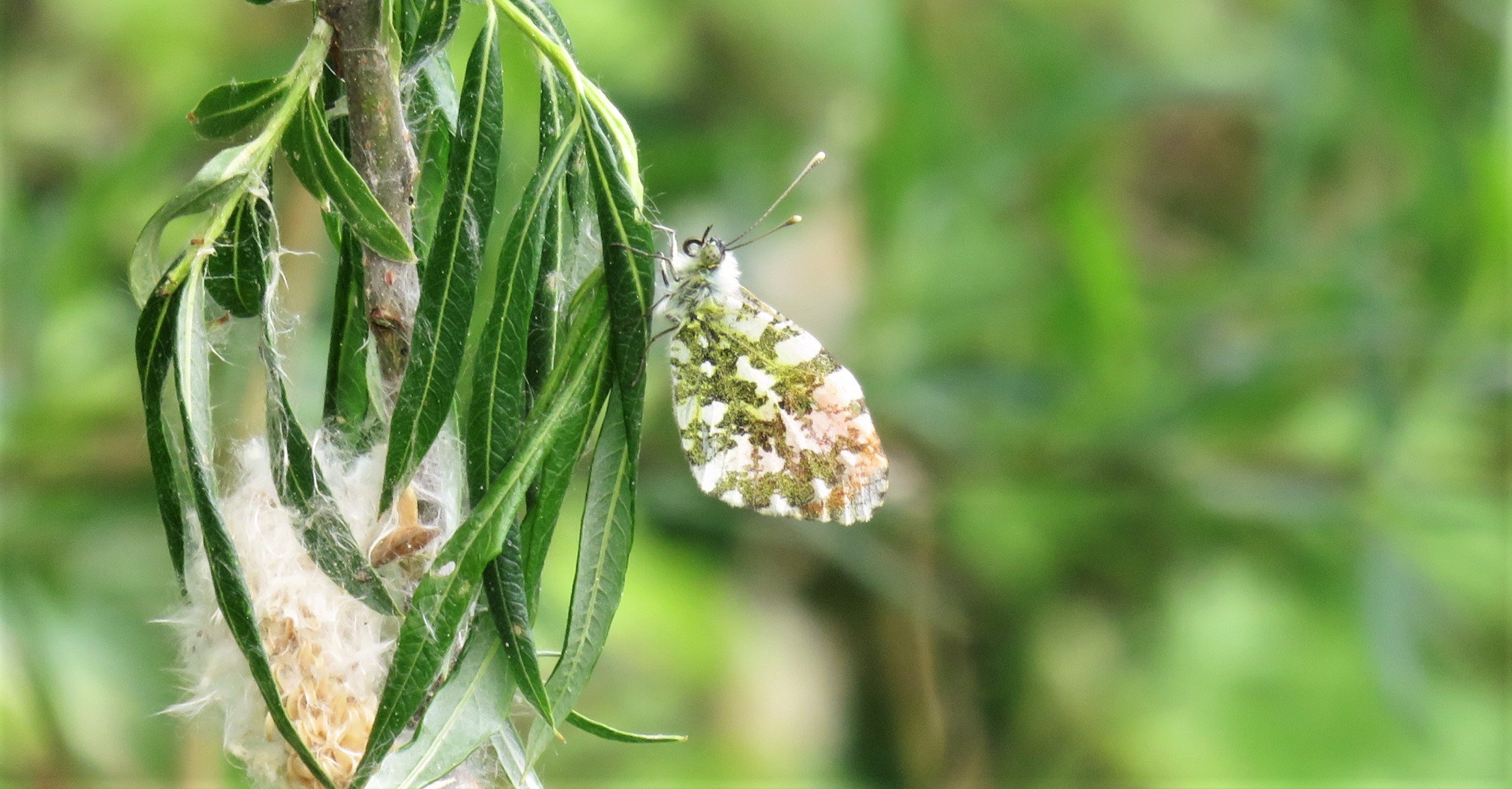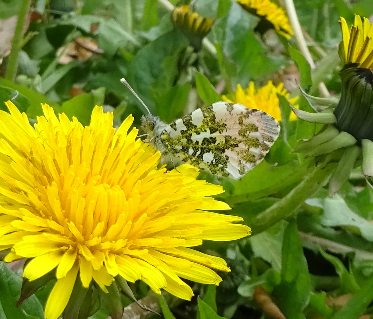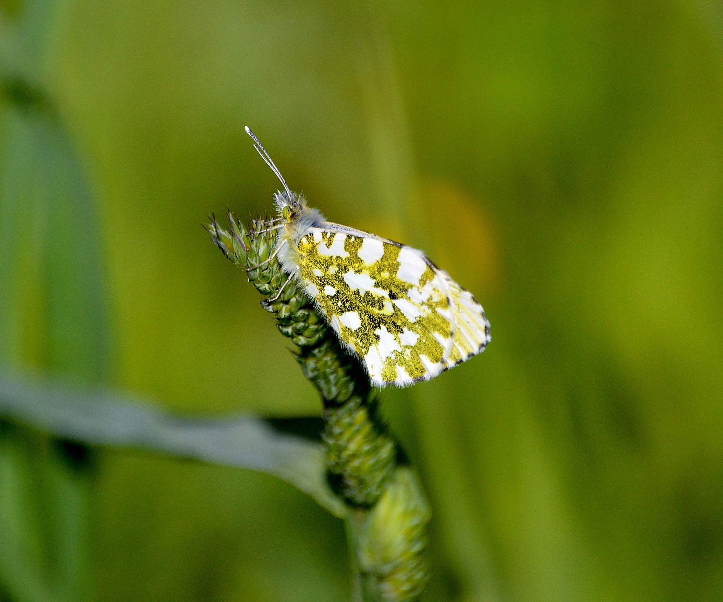 Aurorafalter (Anthocharis cardamines (Linnaeus, 1758)), Männchen, Blütenbesuch an Stellaria holostea, bei Nossen, April 2020 (© Andreas Hurtig)( Bild vergrößern)