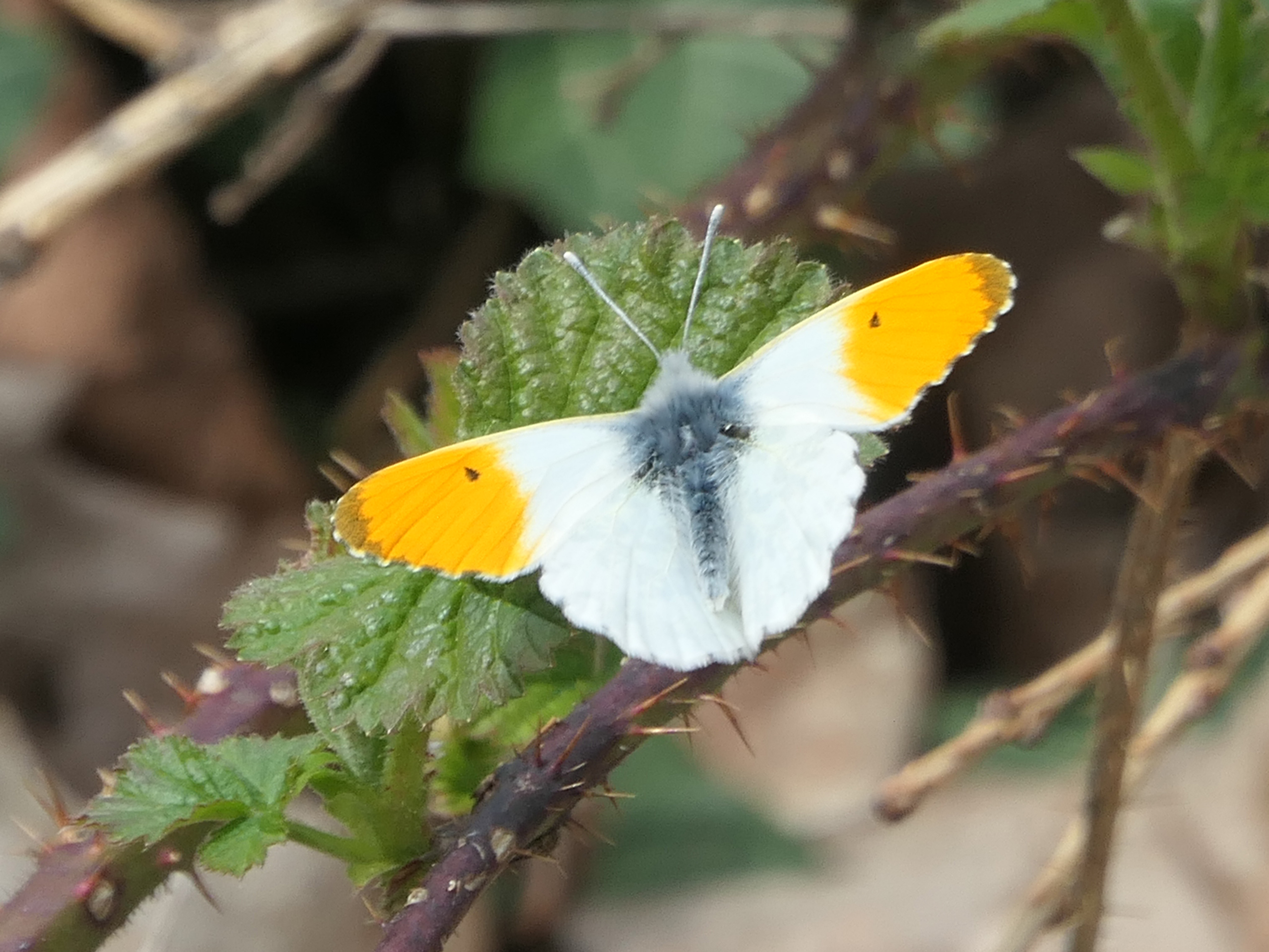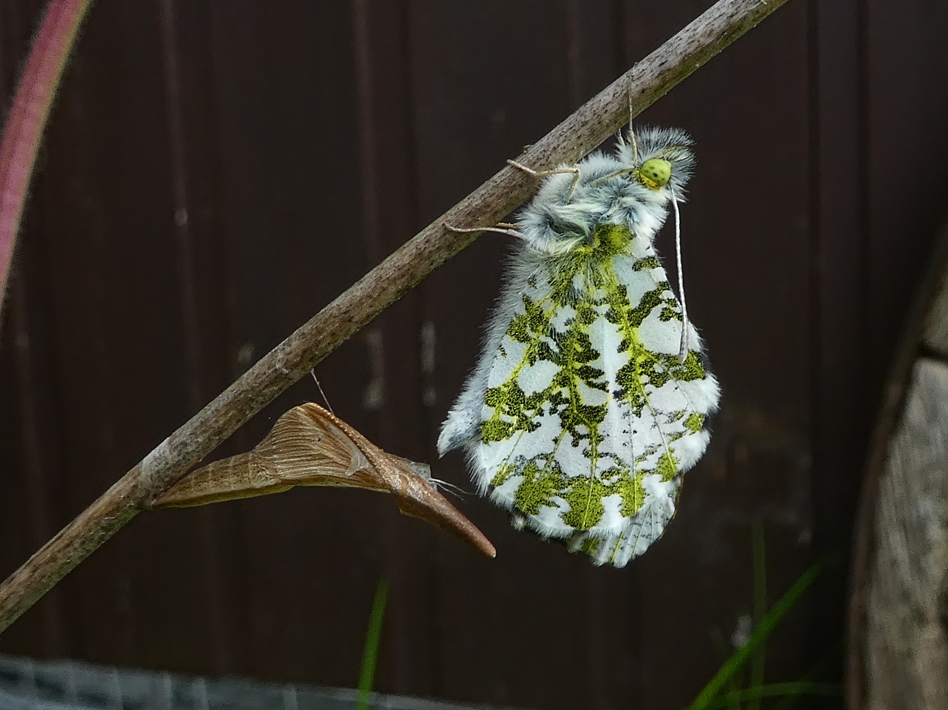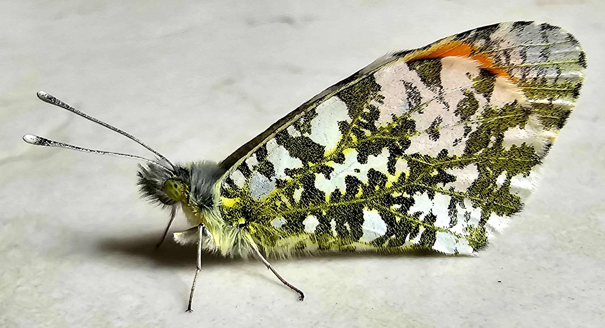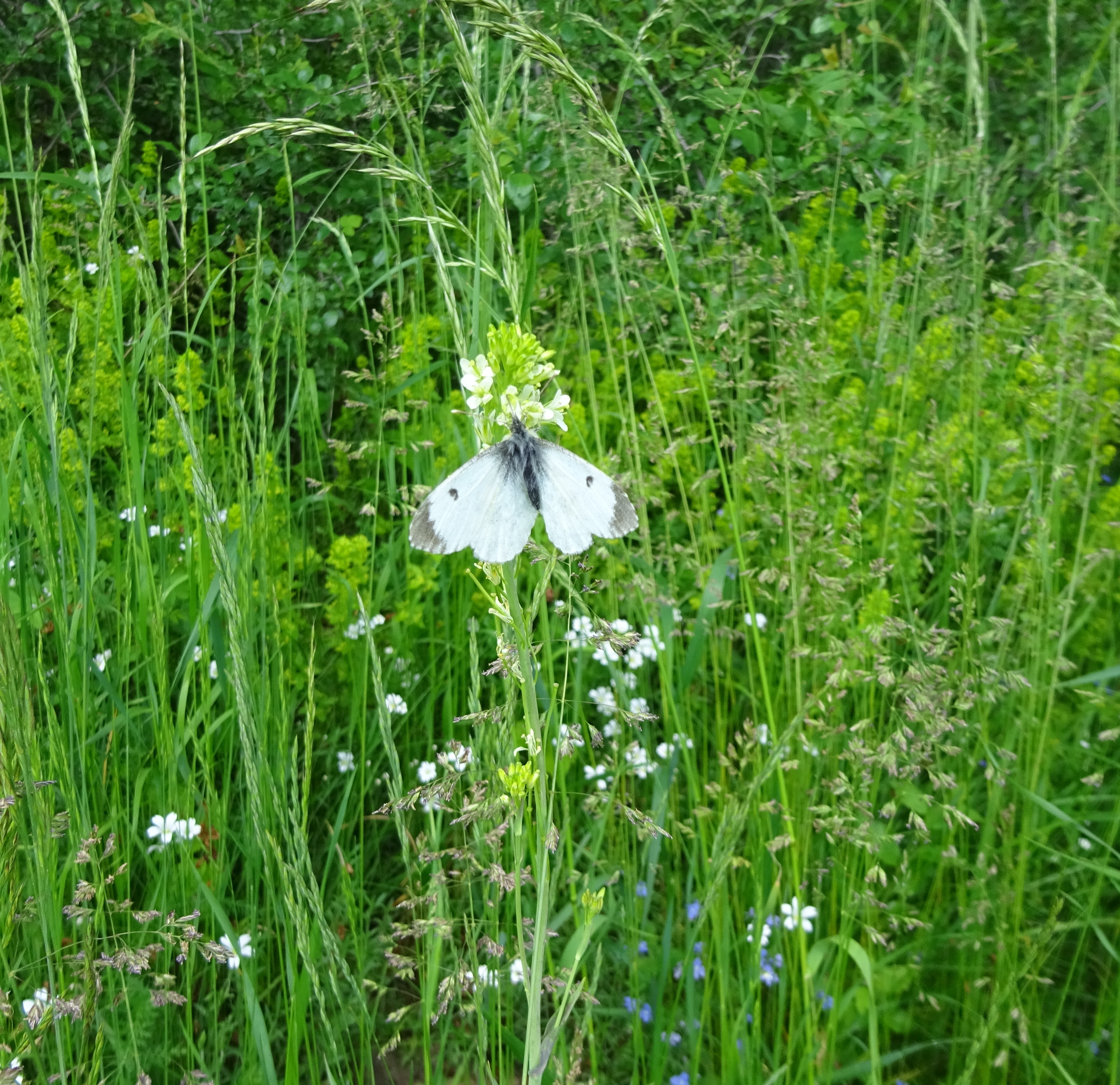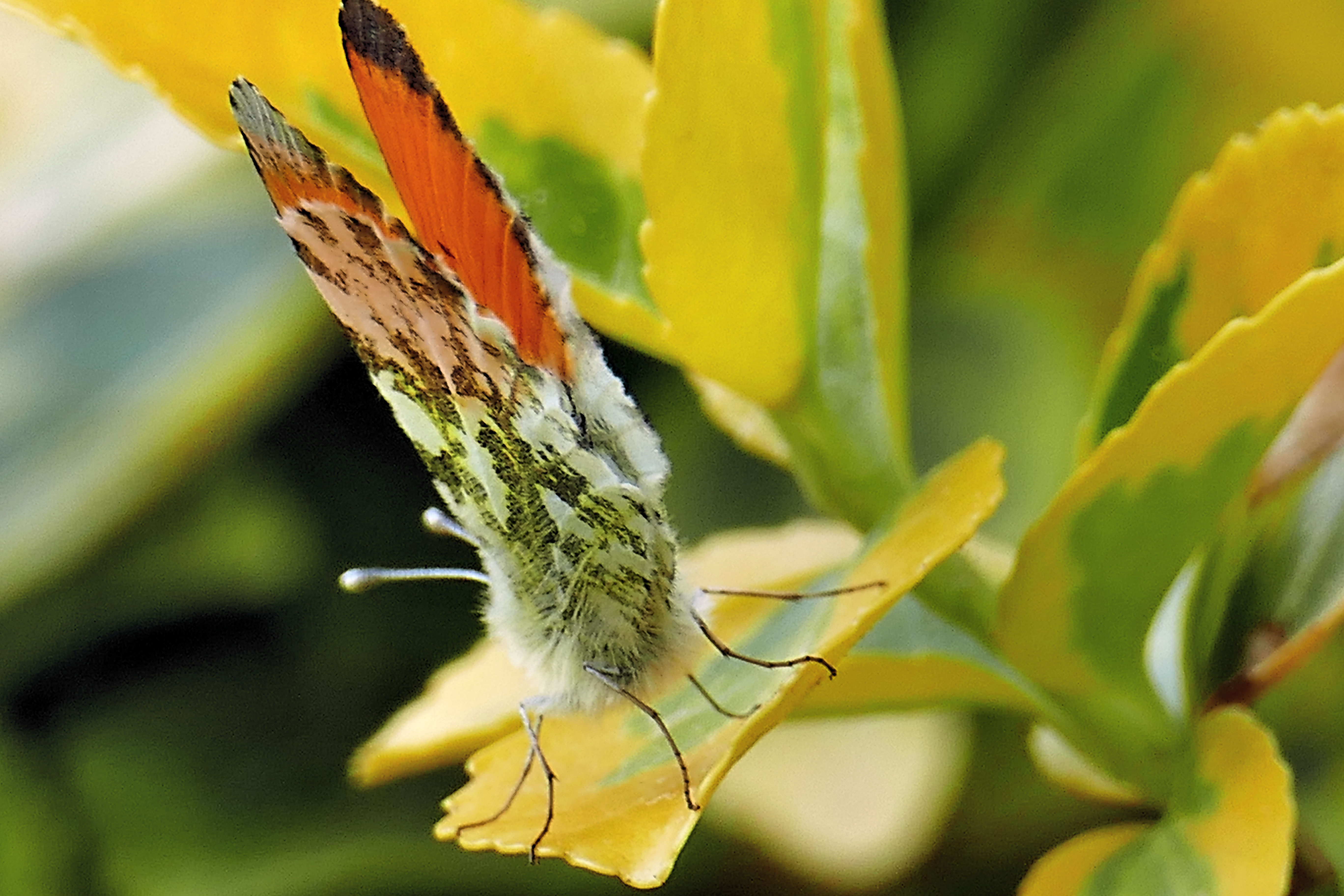 Aurorafalter (Anthocharis cardamines (Linnaeus, 1758)), Männchen, Blütenbesuch an Stellaria holostea, bei Nossen, April 2020 (© Andreas Hurtig)( Bild vergrößern)
