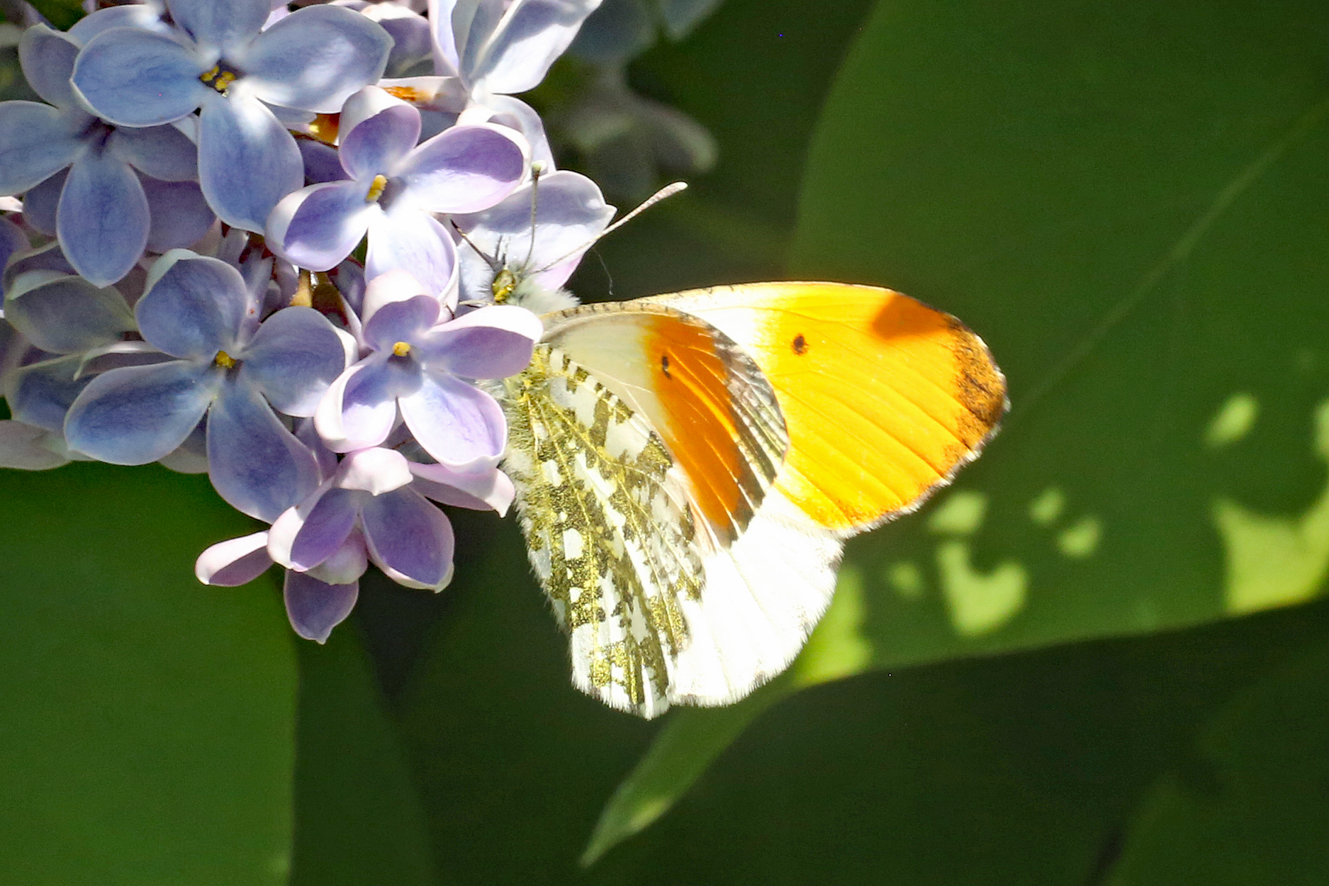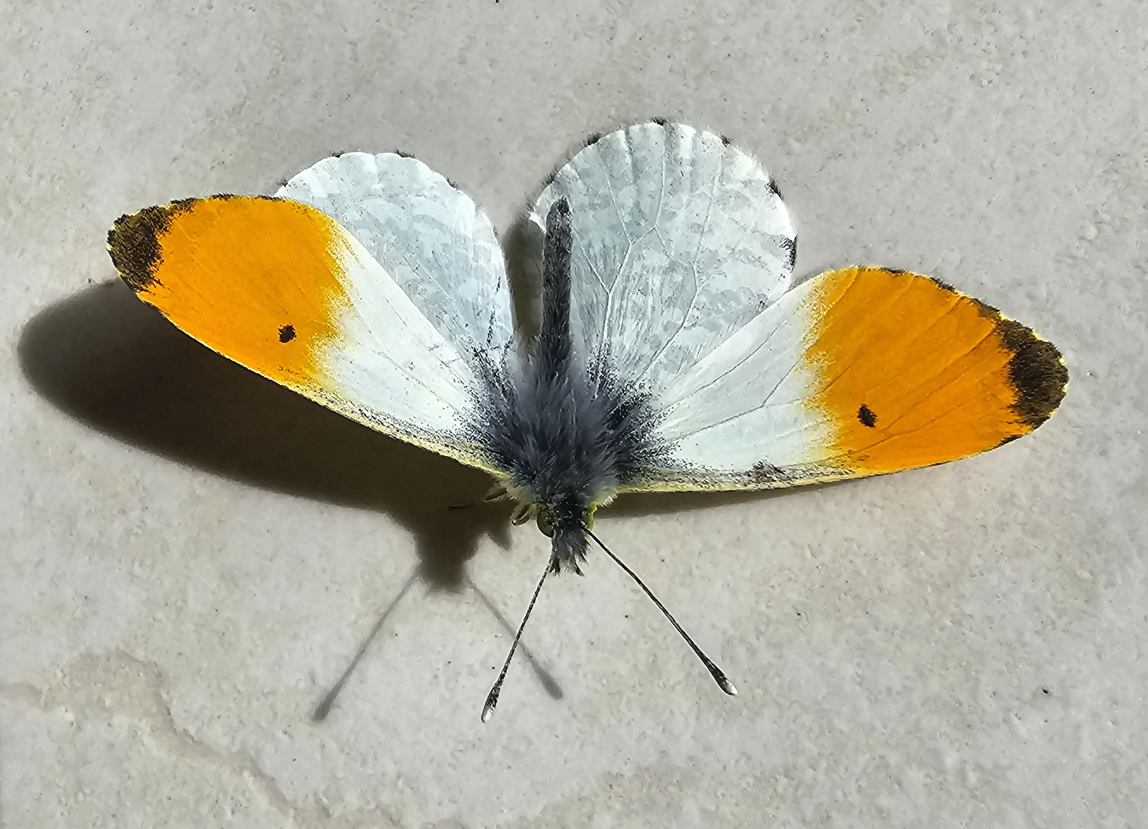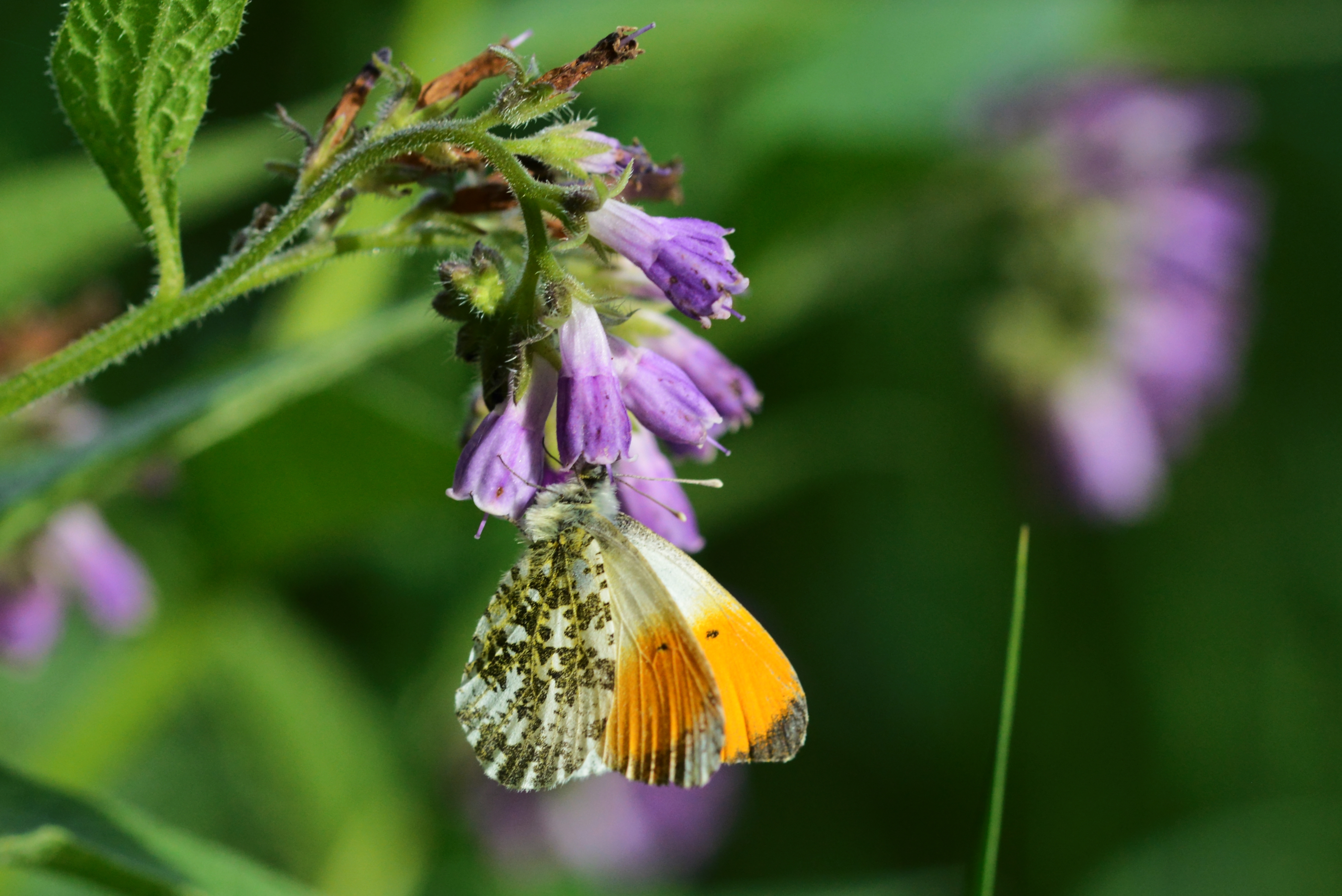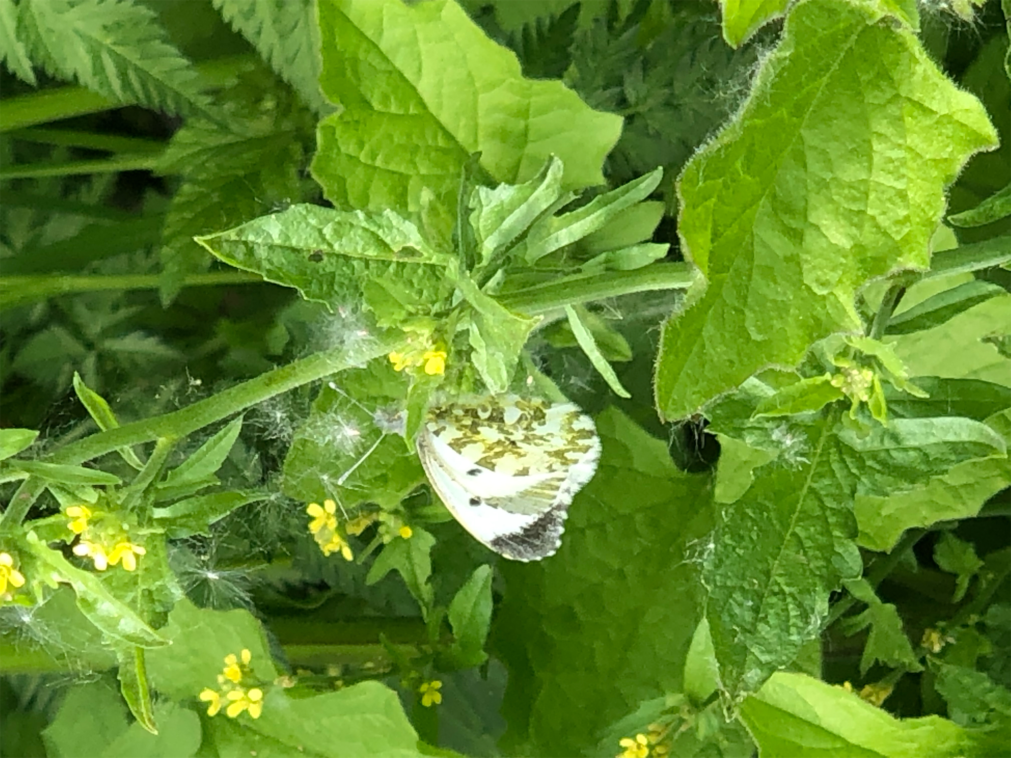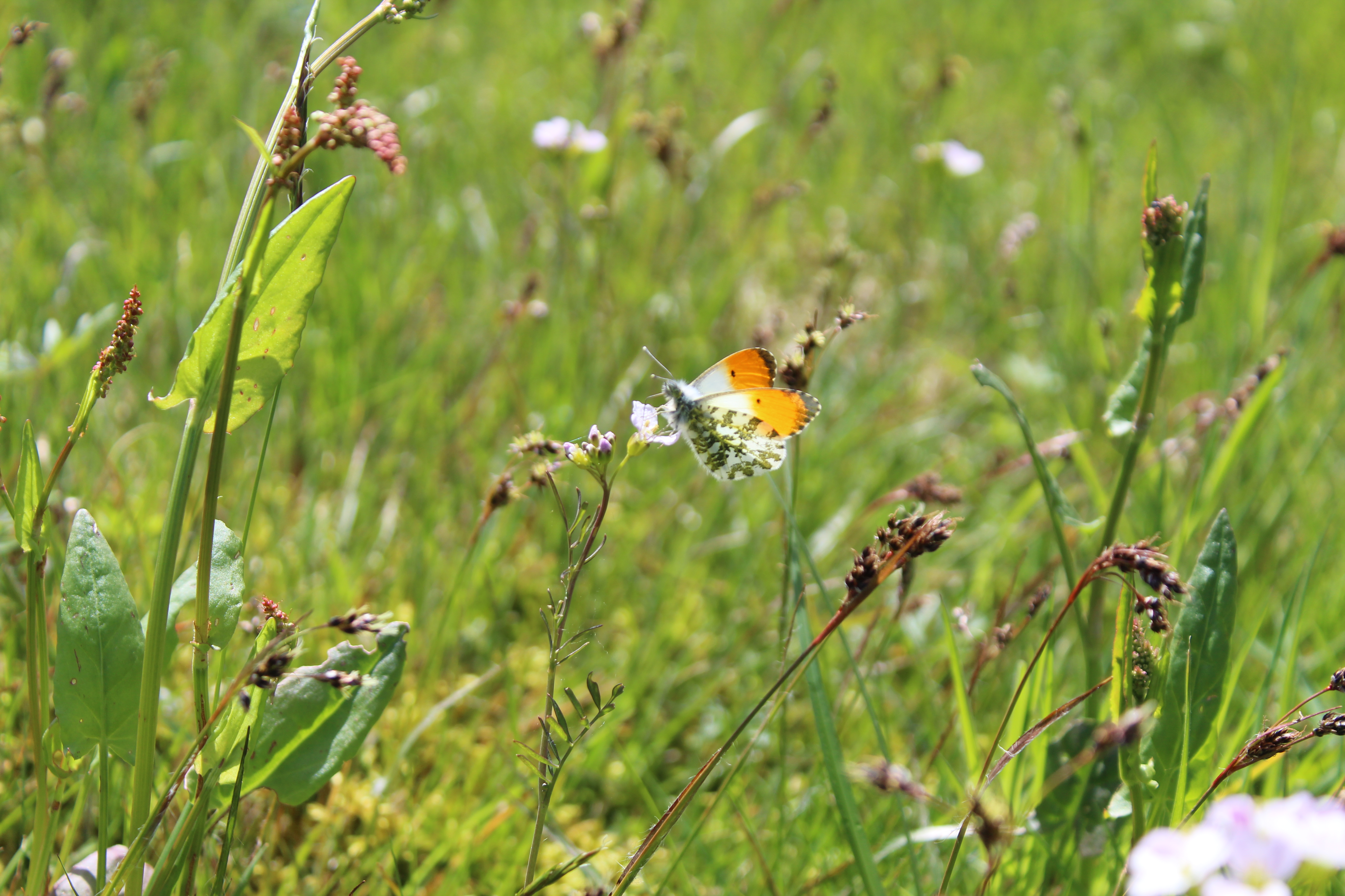 Aurorafalter (Anthocharis cardamines (Linnaeus, 1758)), Männchen, Blütenbesuch an Stellaria holostea, bei Nossen, April 2020 (© Andreas Hurtig)( Bild vergrößern)