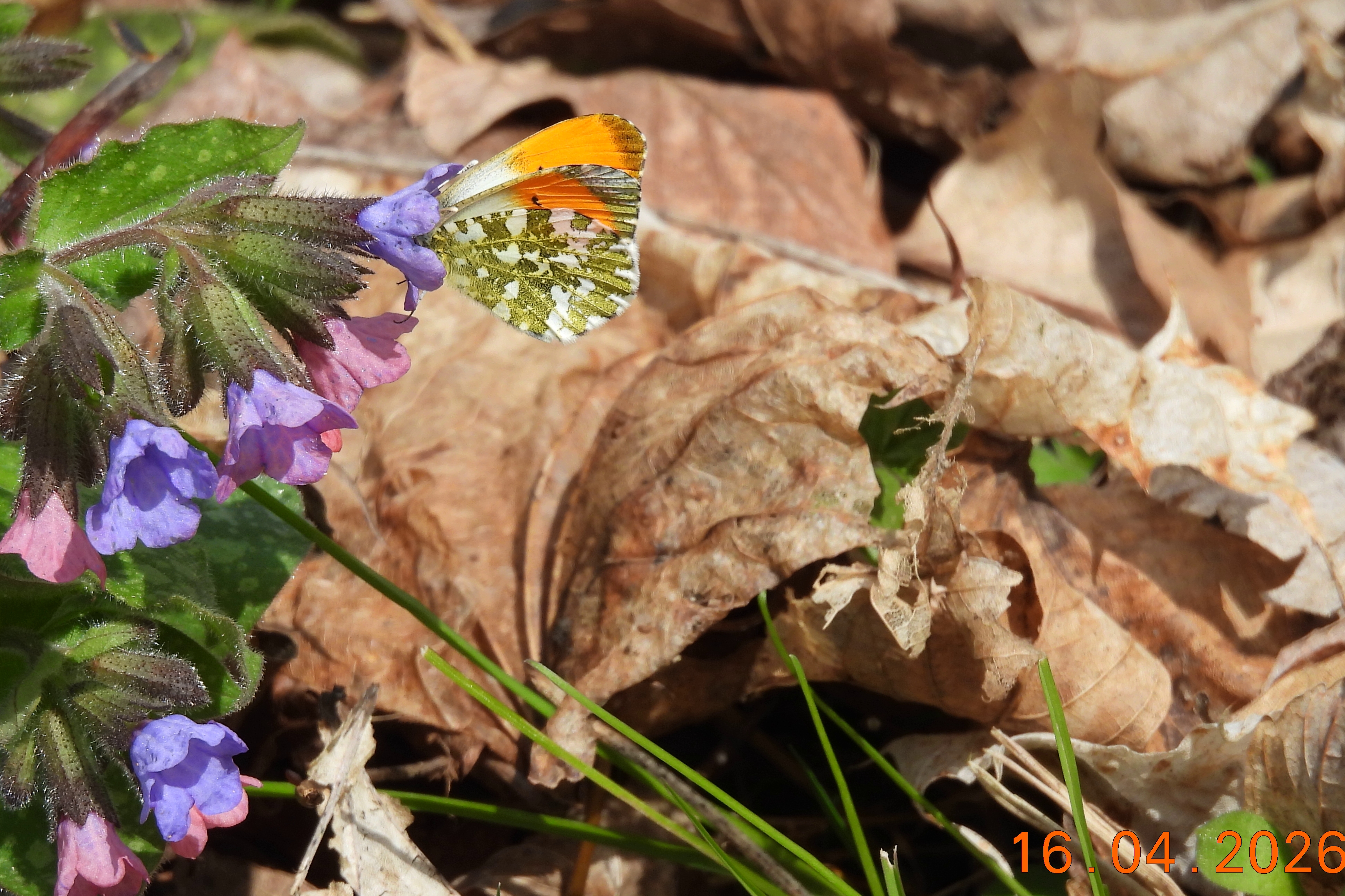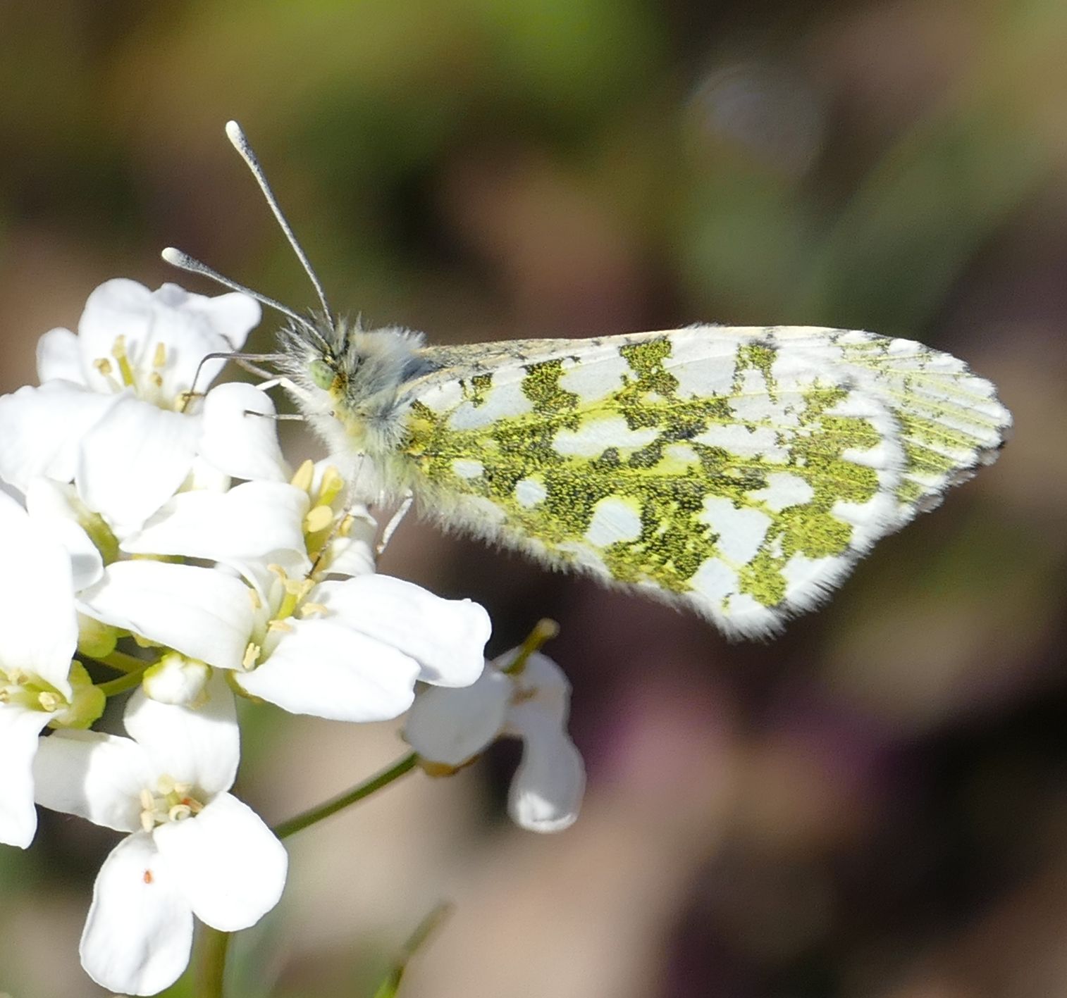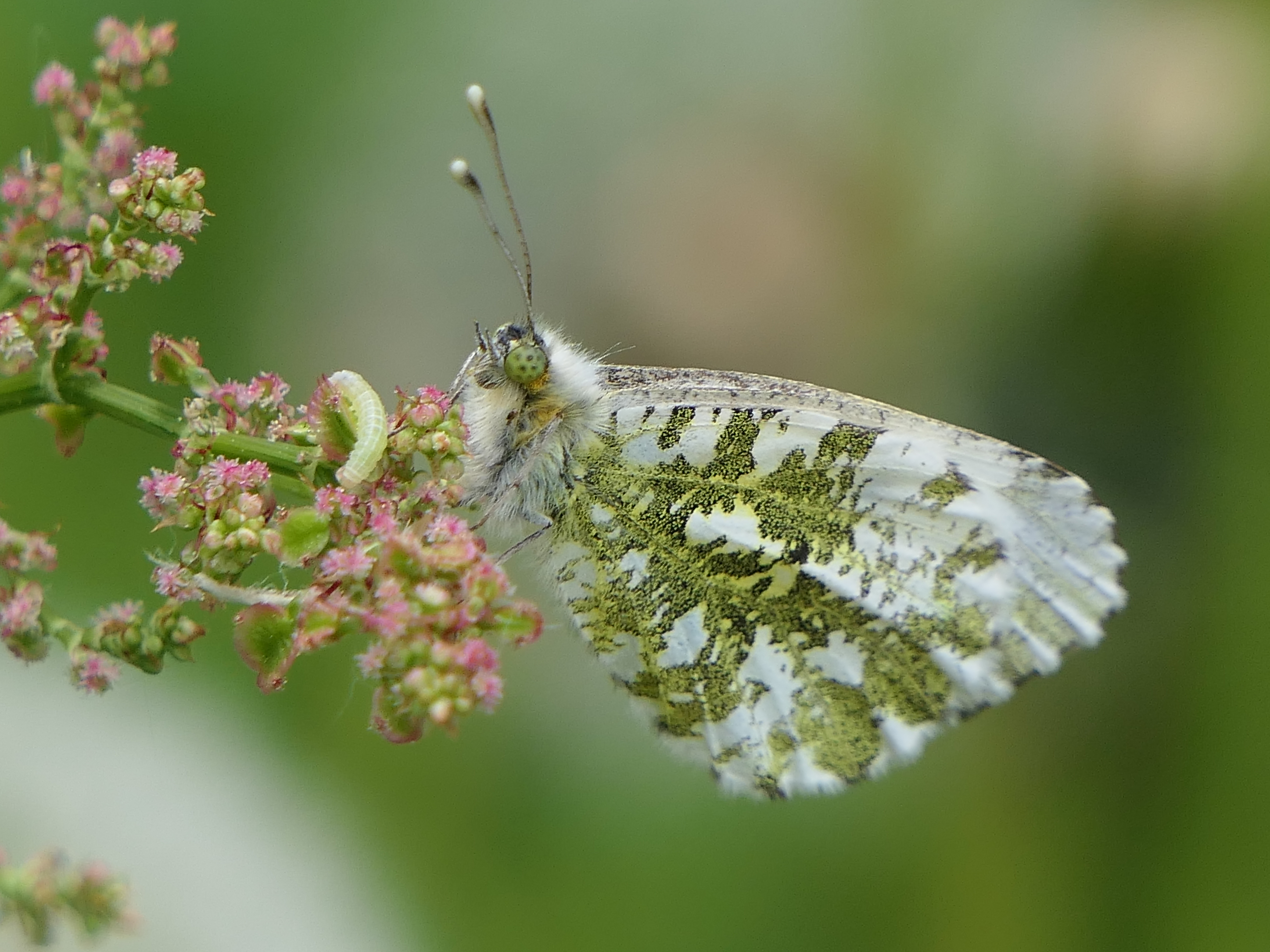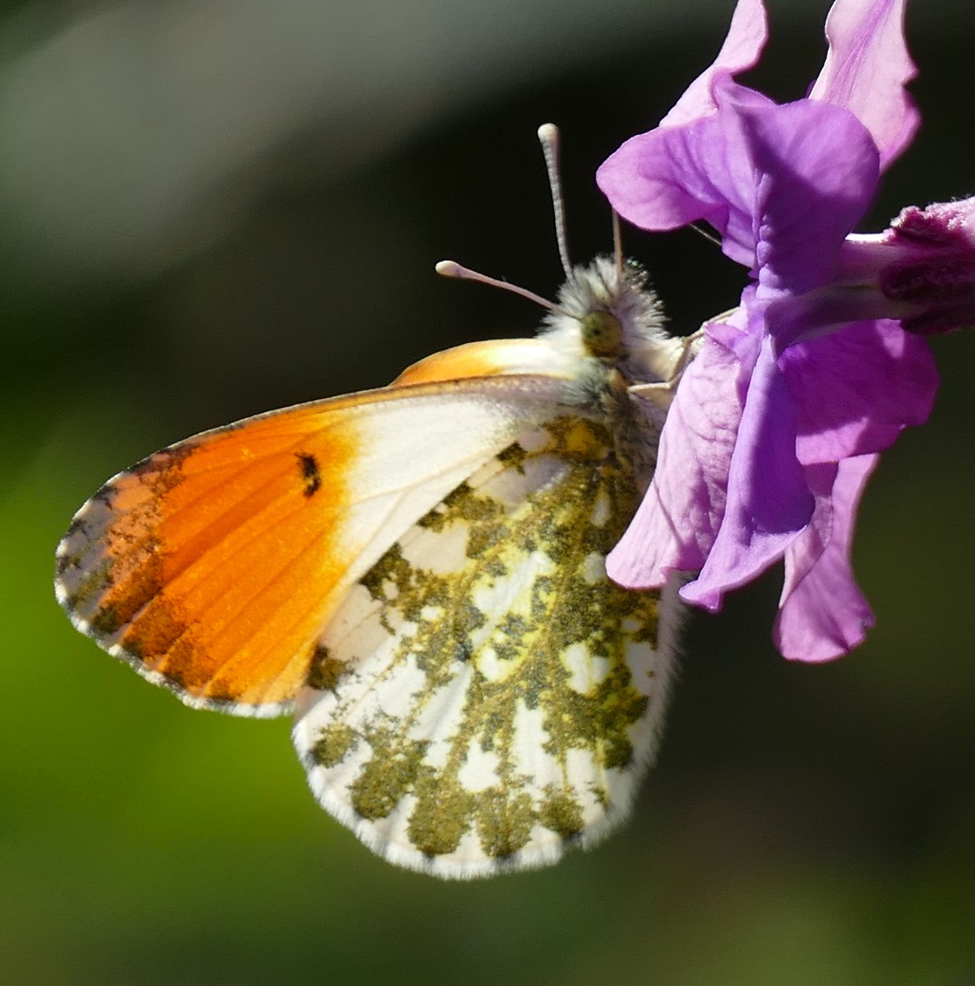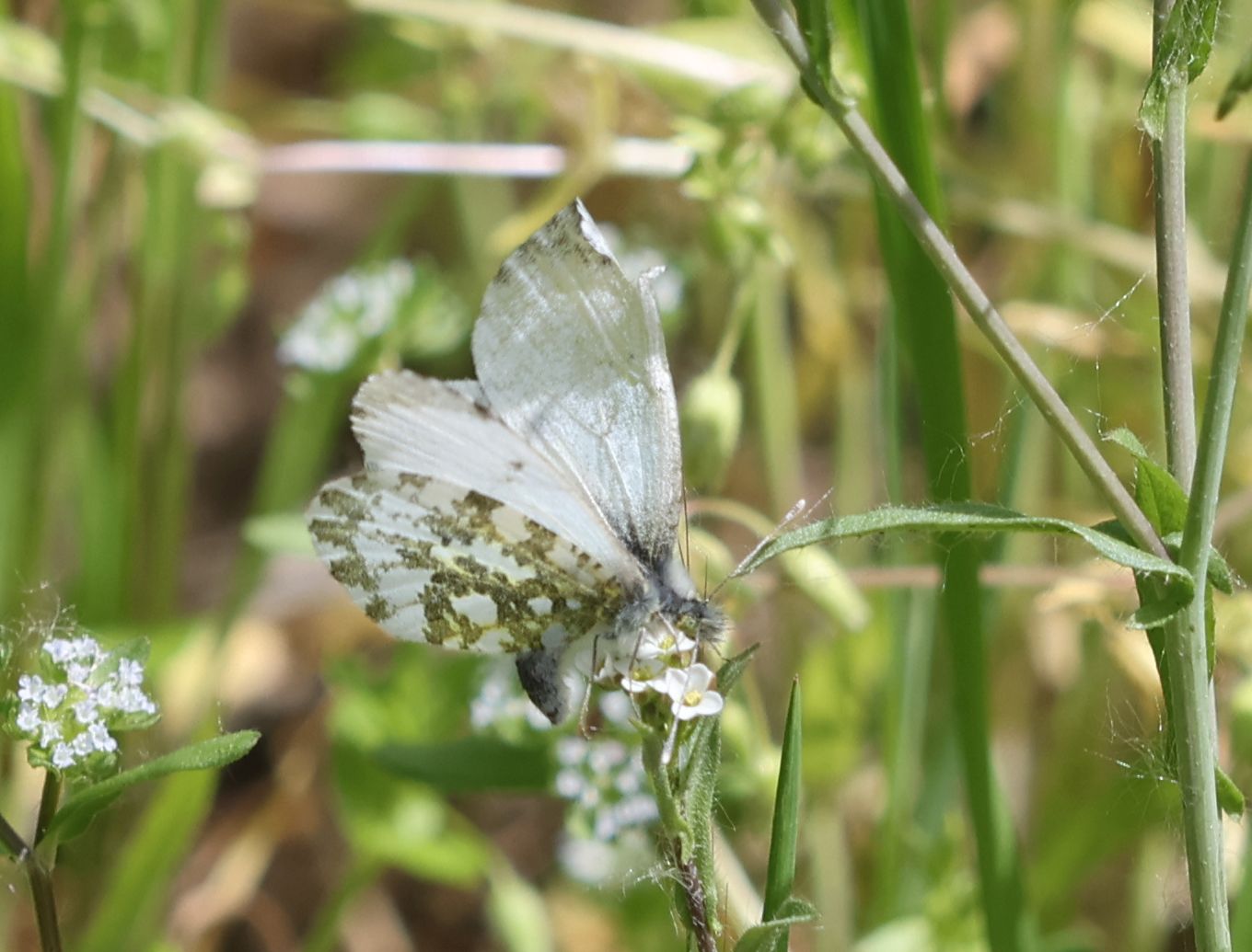 Aurorafalter (Anthocharis cardamines (Linnaeus, 1758)), Männchen, Blütenbesuch an Stellaria holostea, bei Nossen, April 2020