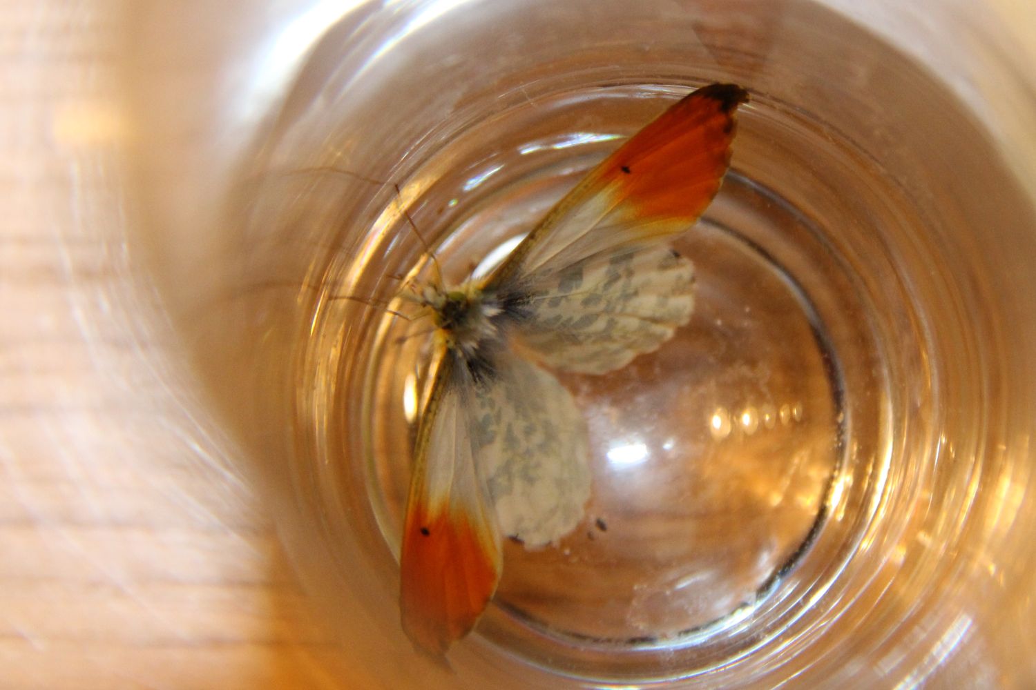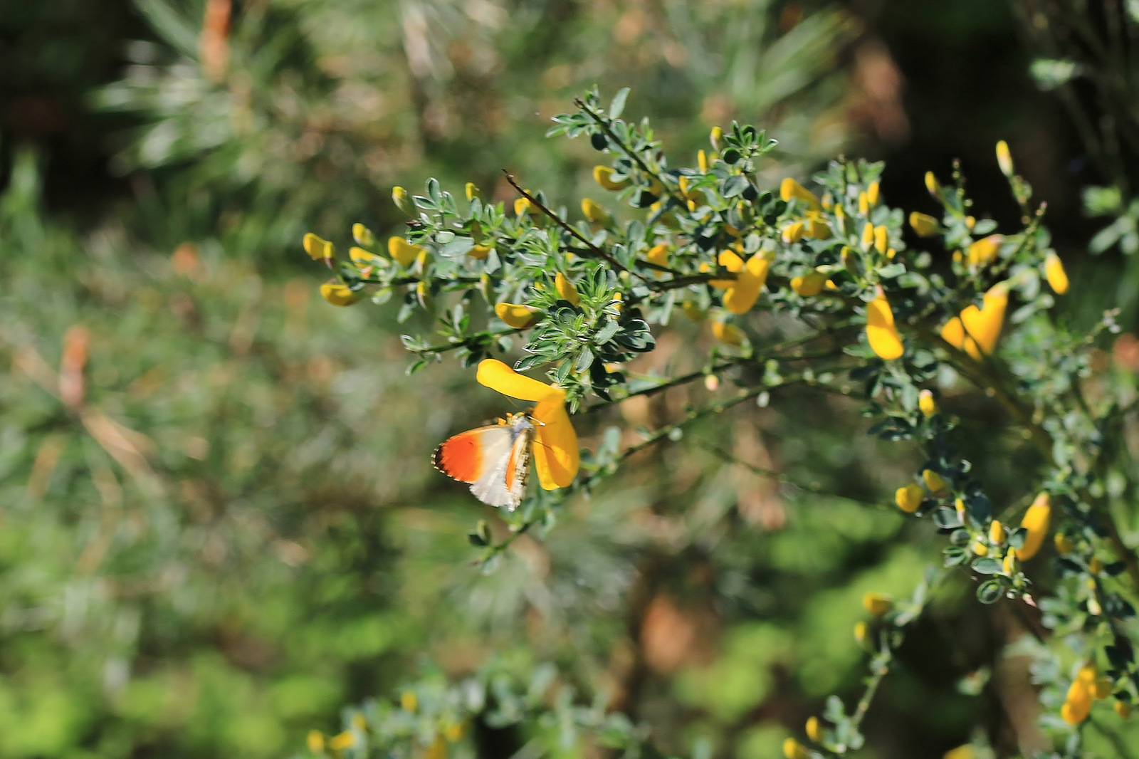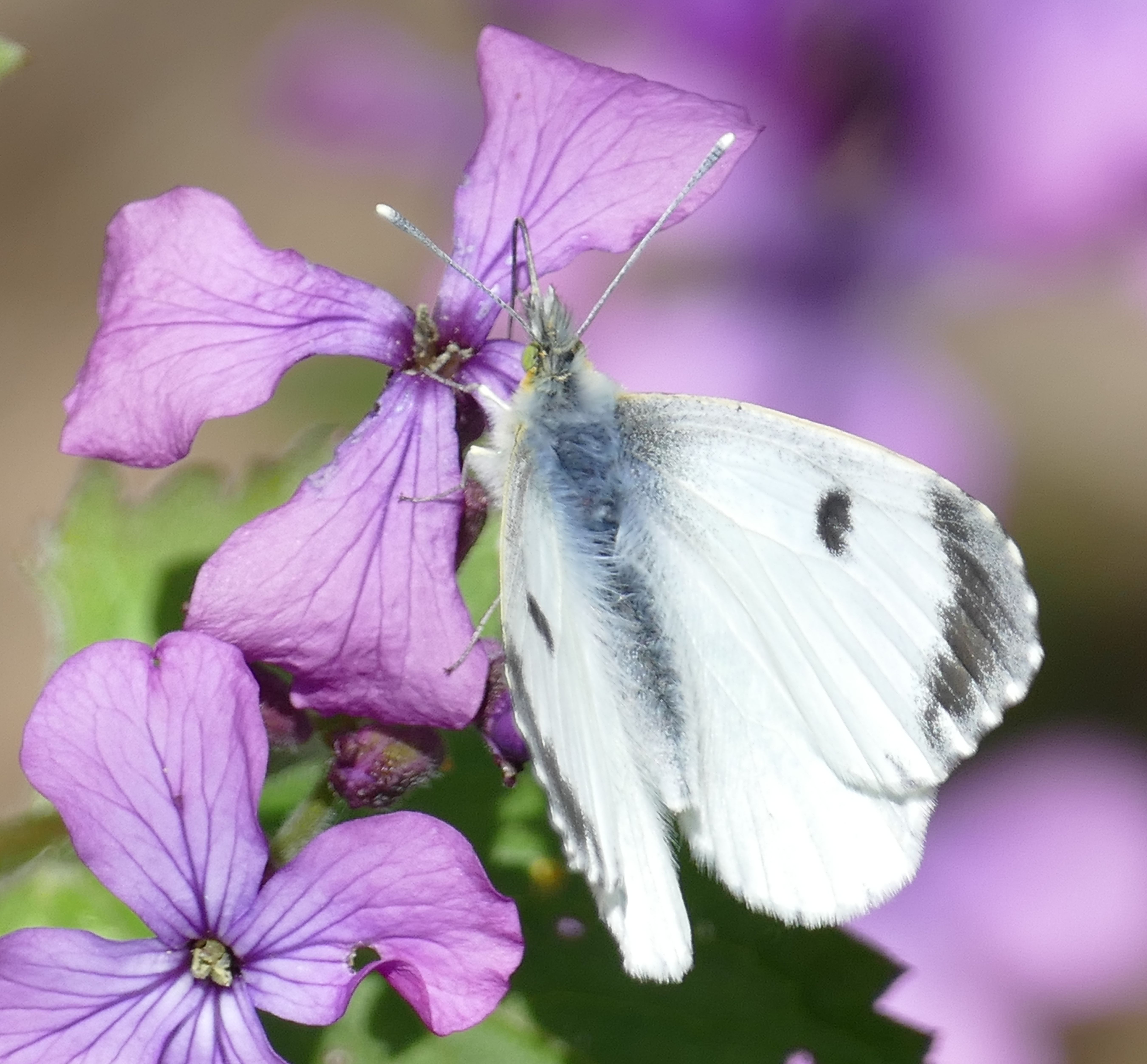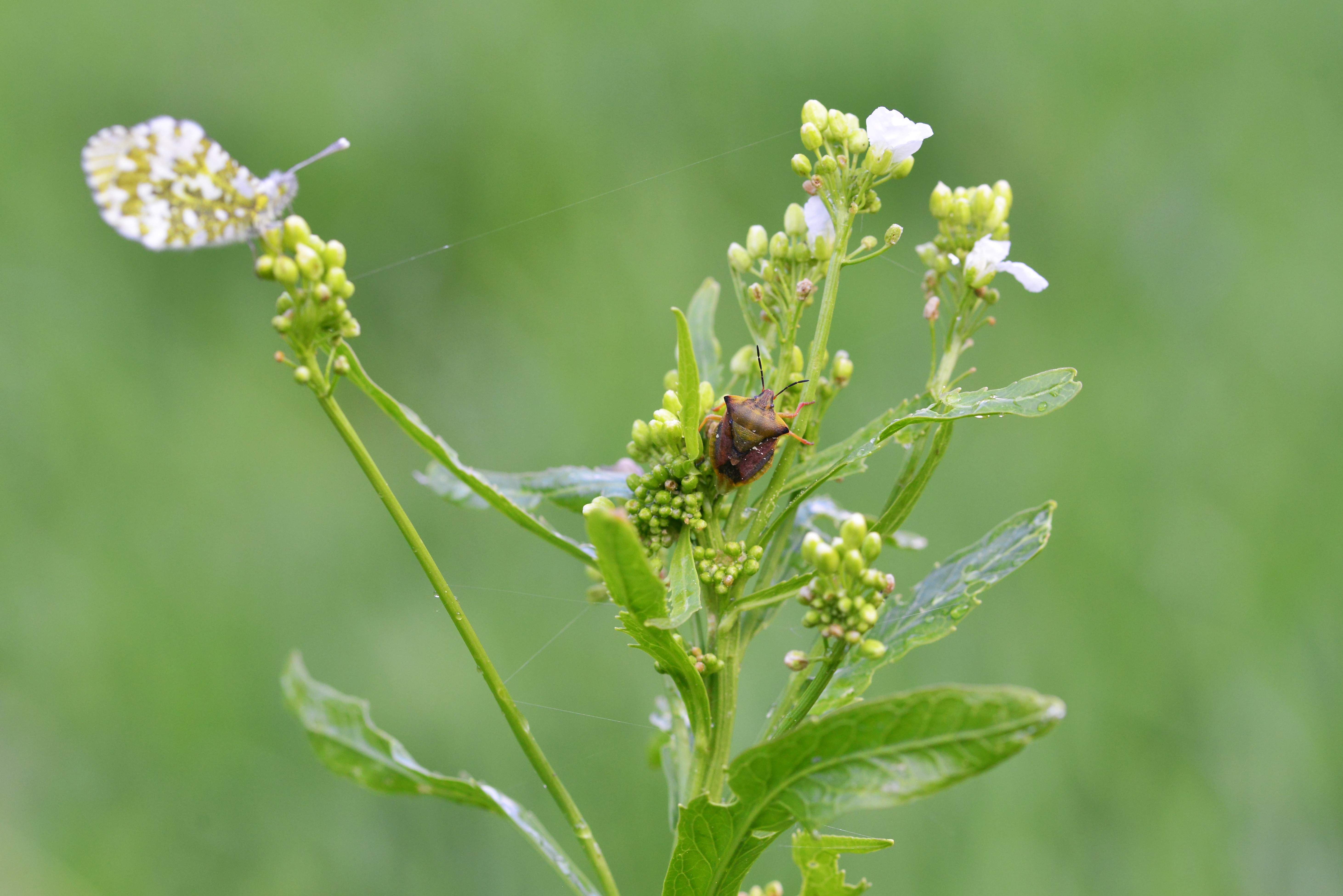 Aurorafalter (Anthocharis cardamines (Linnaeus, 1758)), Männchen, Blütenbesuch an Stellaria holostea, bei Nossen, April 2020