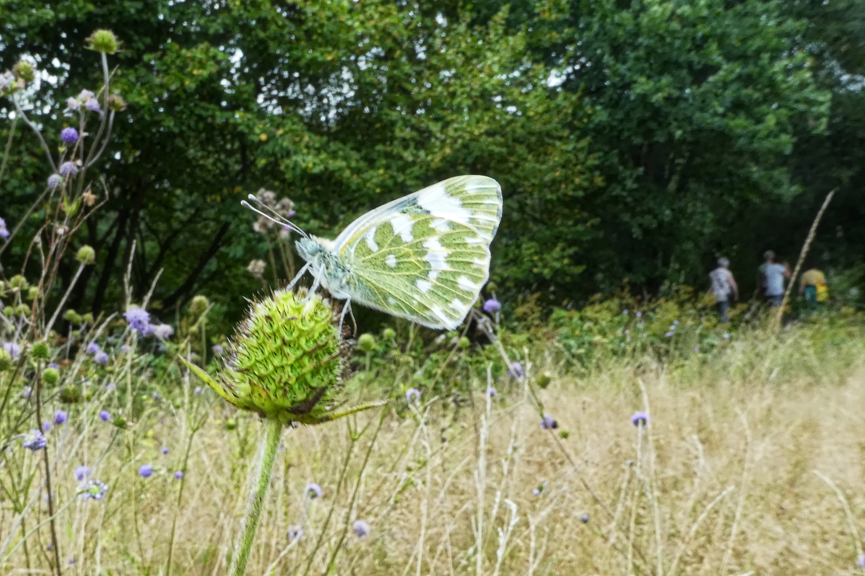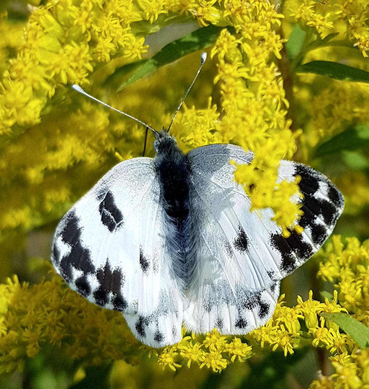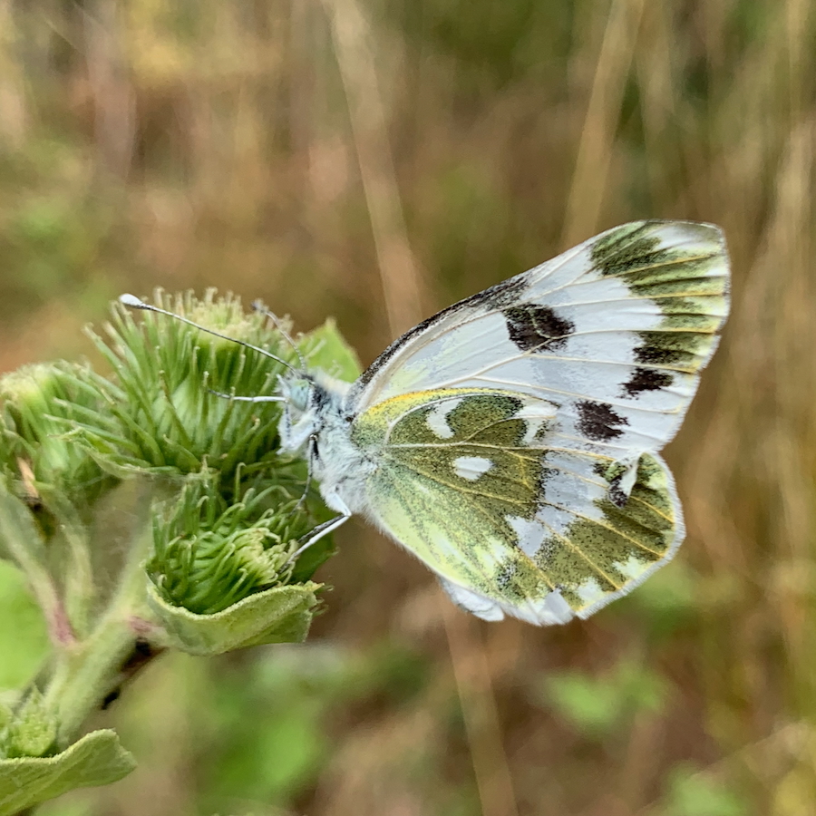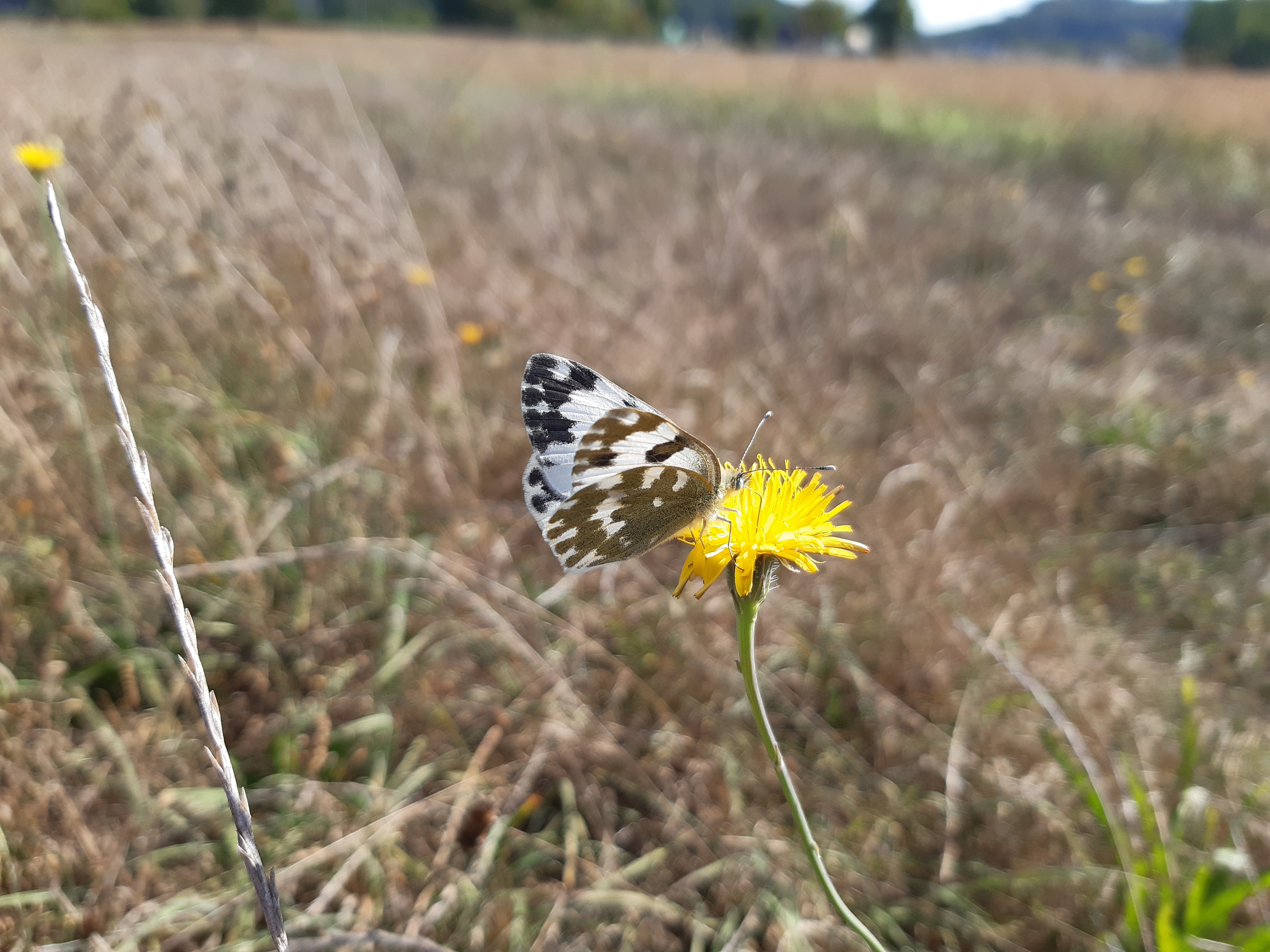 Männchen des Resedaweißlings am11.06.2019 auf der Schmetterlingswiese 242 in Zwickau (Handyfoto)