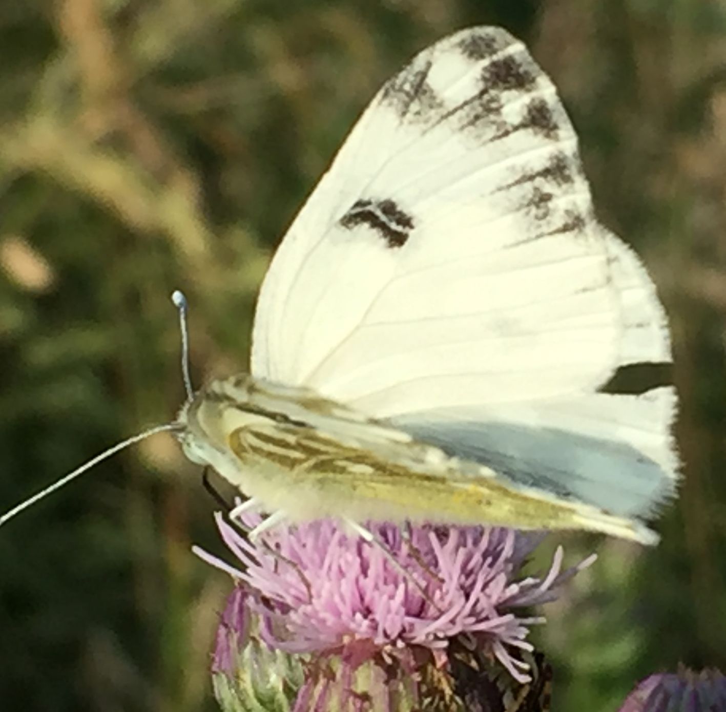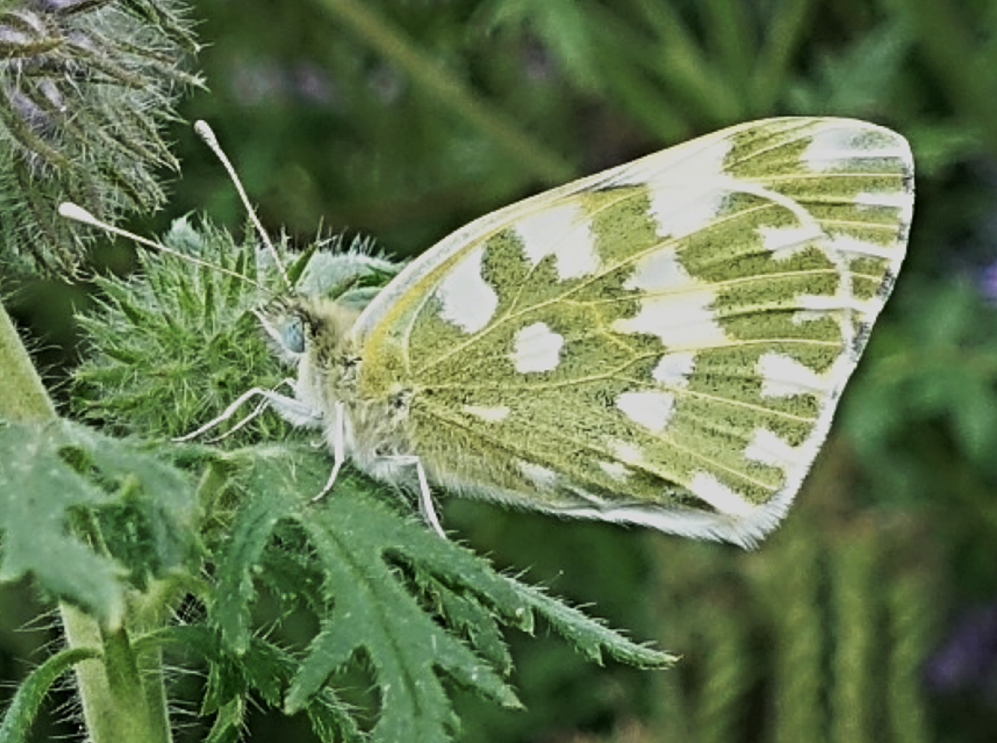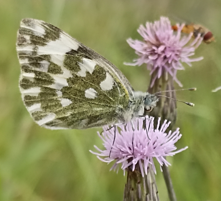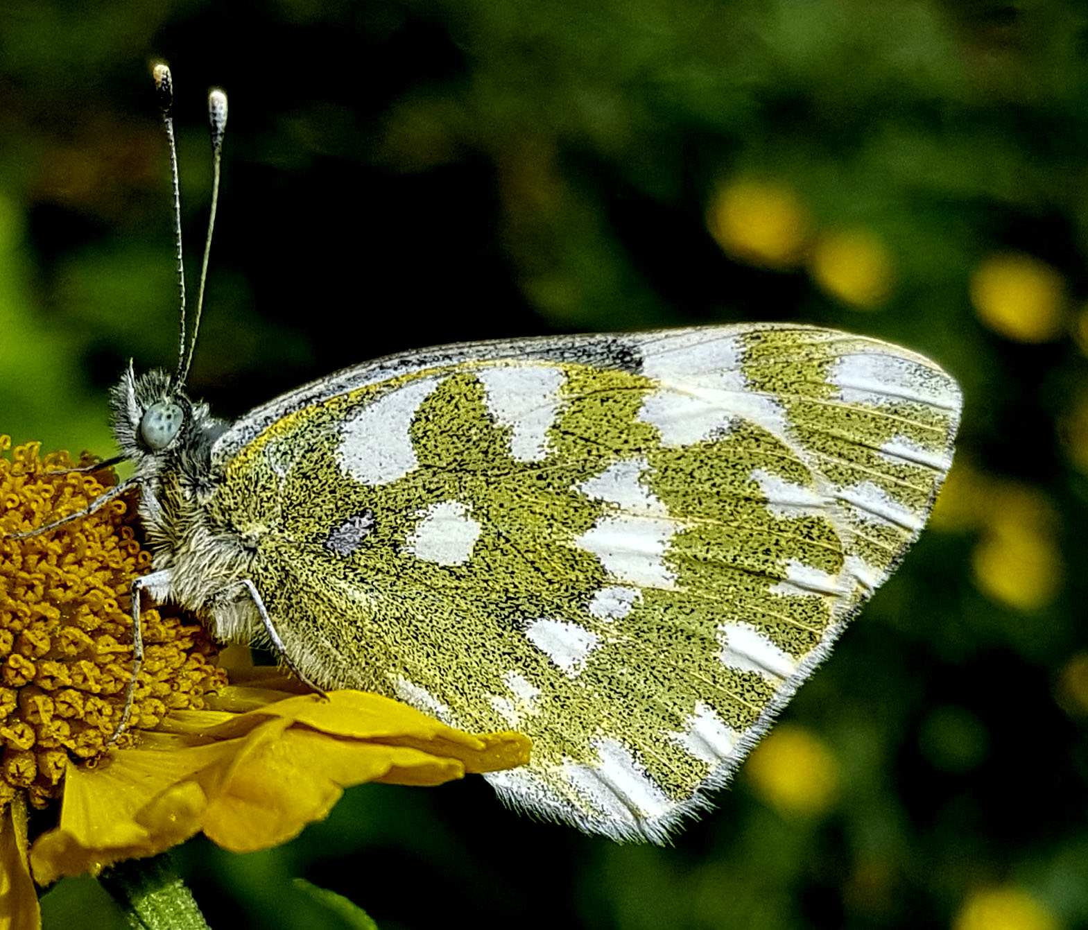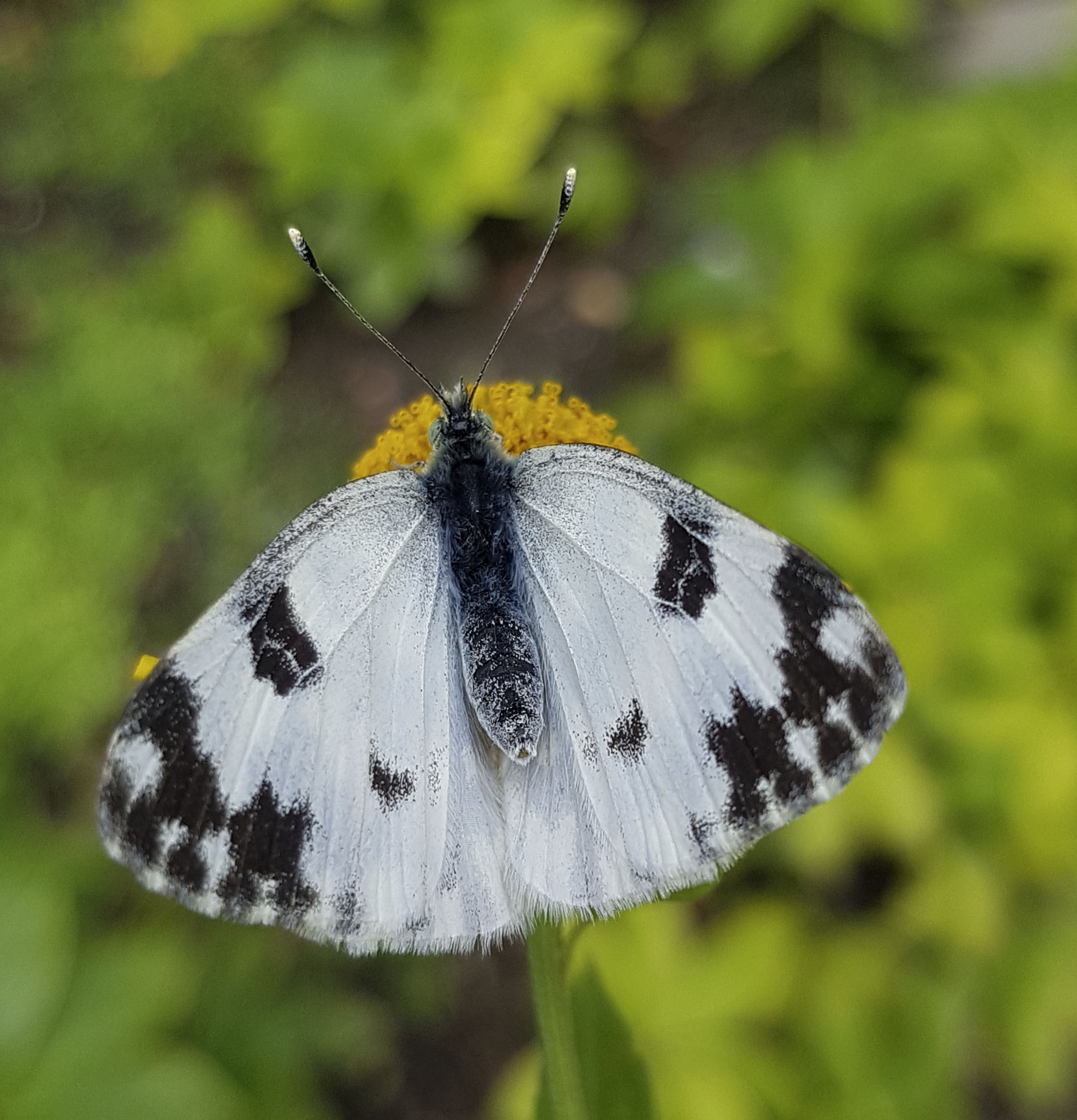 Männchen des Resedaweißlings am11.06.2019 auf der Schmetterlingswiese 242 in Zwickau (Handyfoto)
