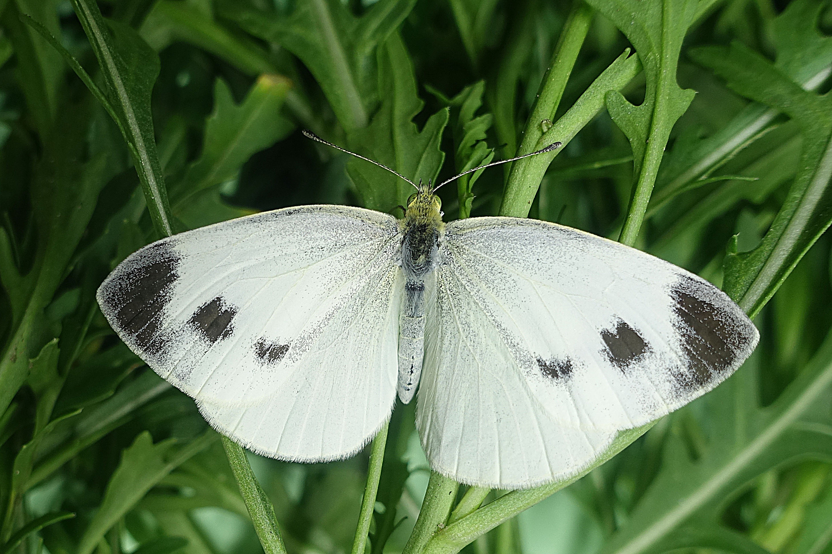 Weibchen des Karstweißlings, frisch geschlüpft im Hausgarten in Hoyerswerda am 25.06.2019