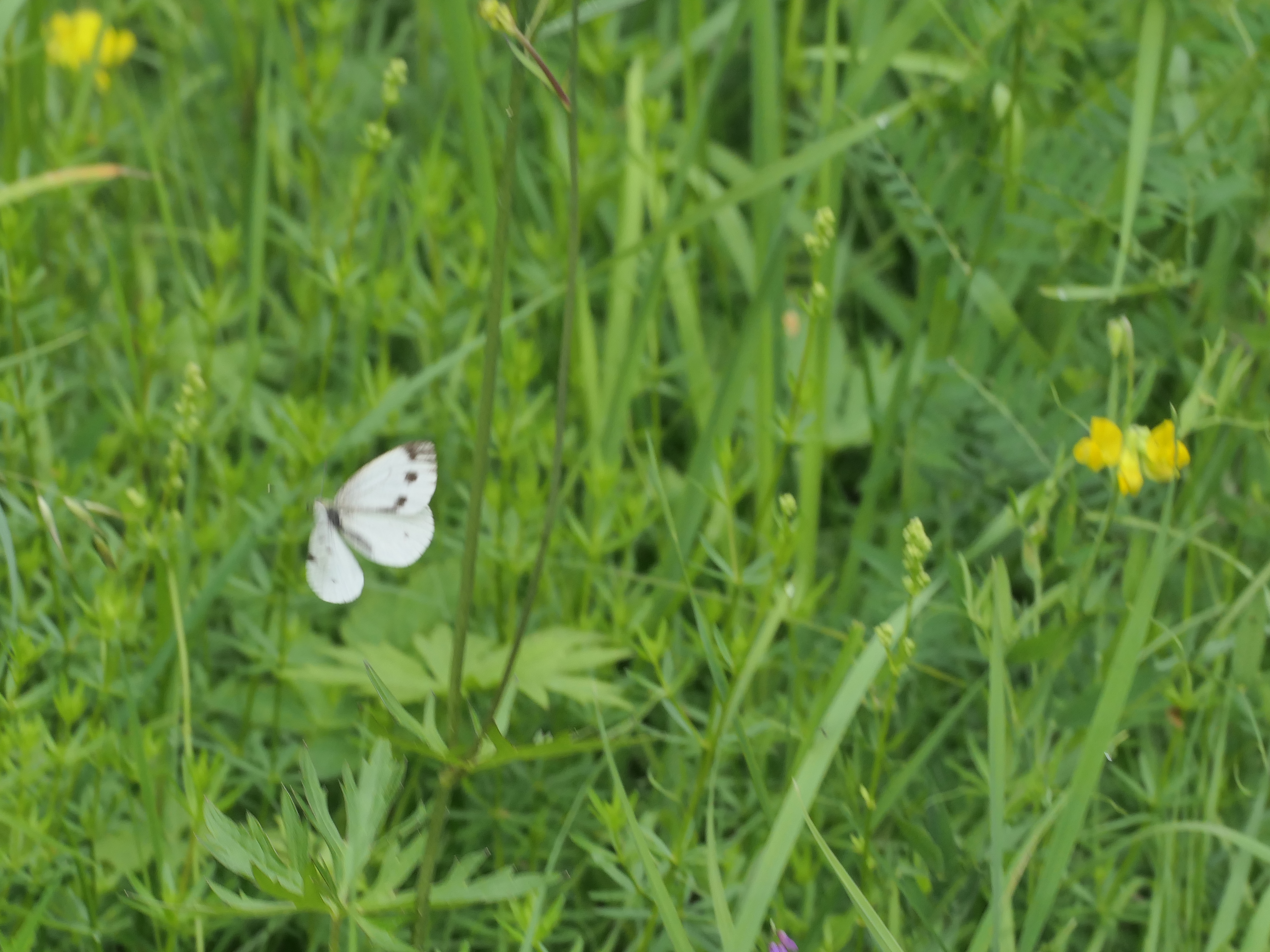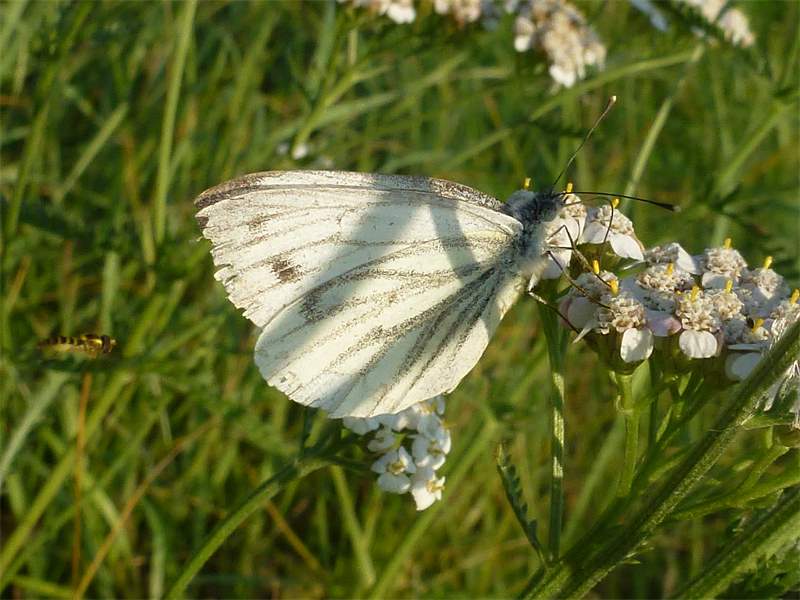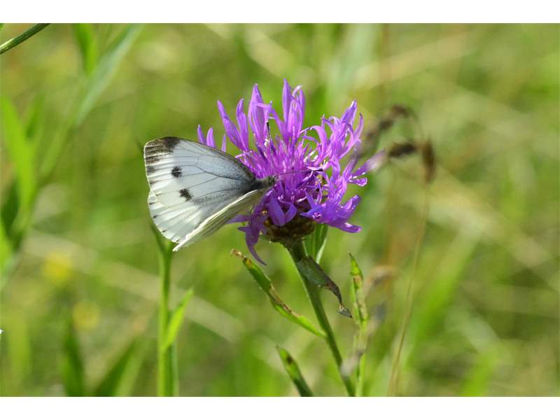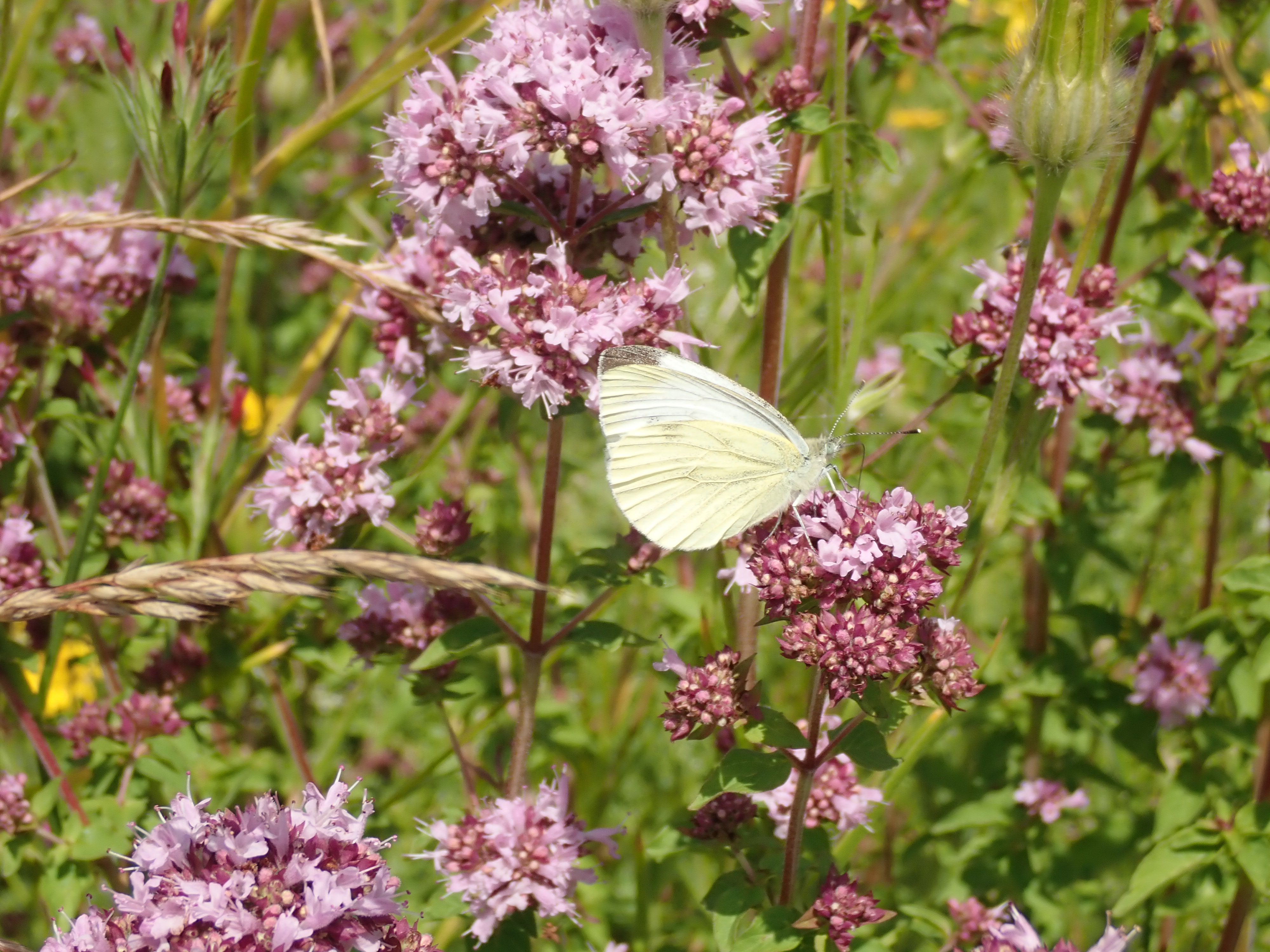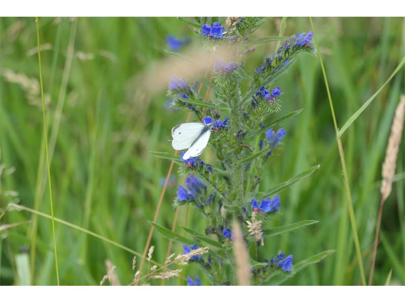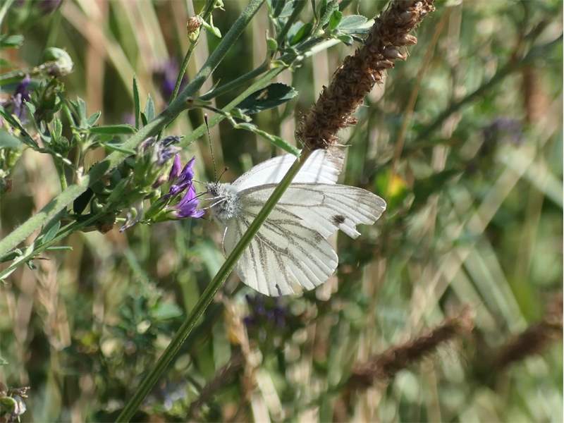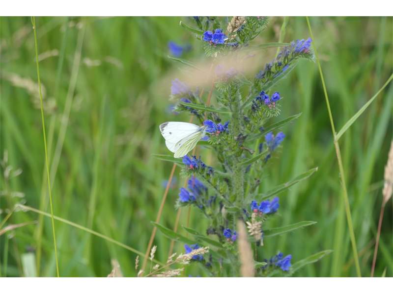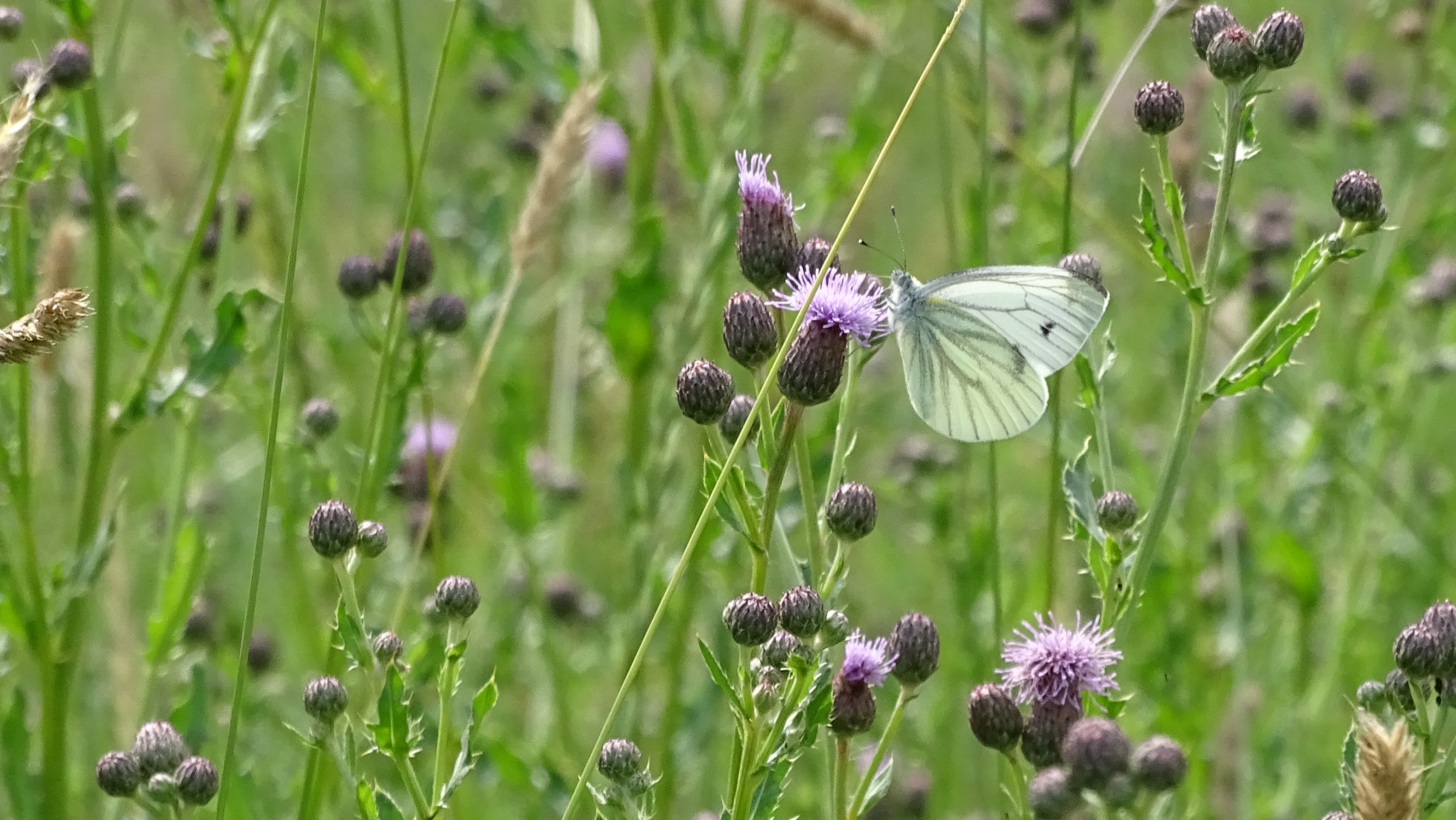Grünaderweißling auf blütenreich bewachsener Brachfläche in Dresden Klotzsche, 22. Juni 2016