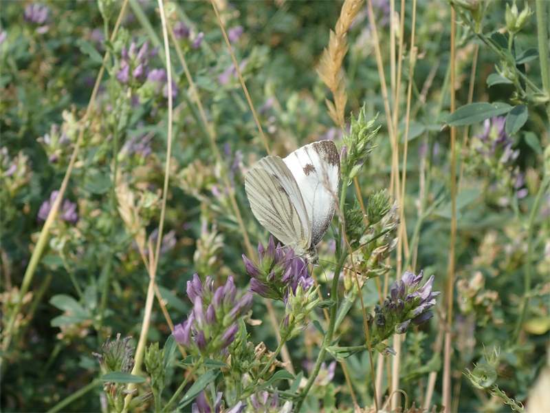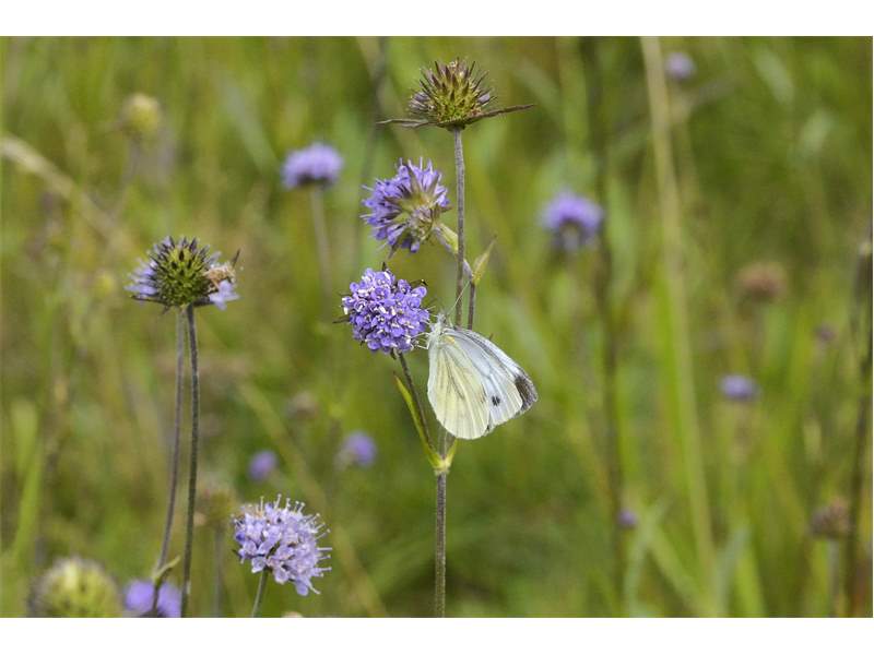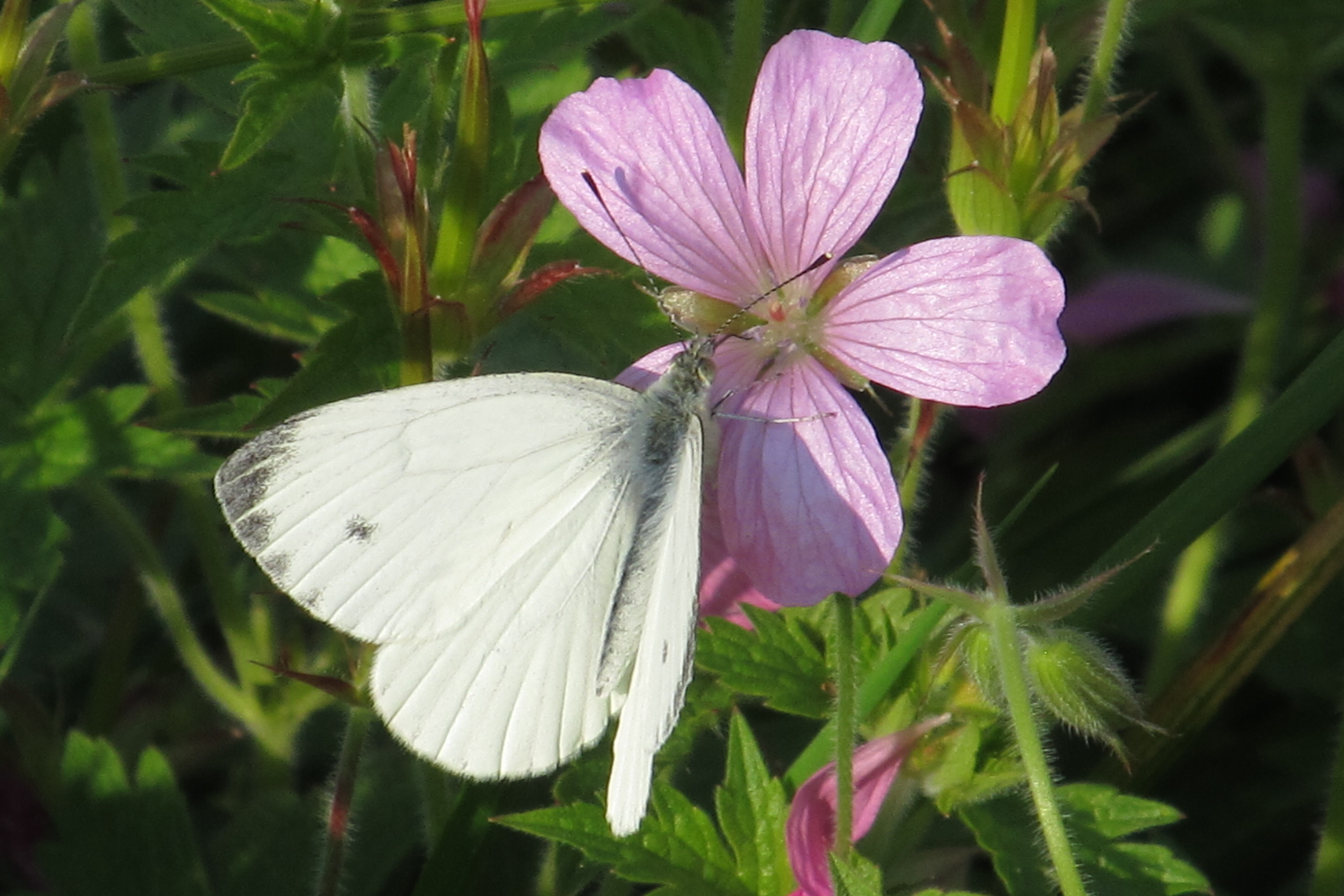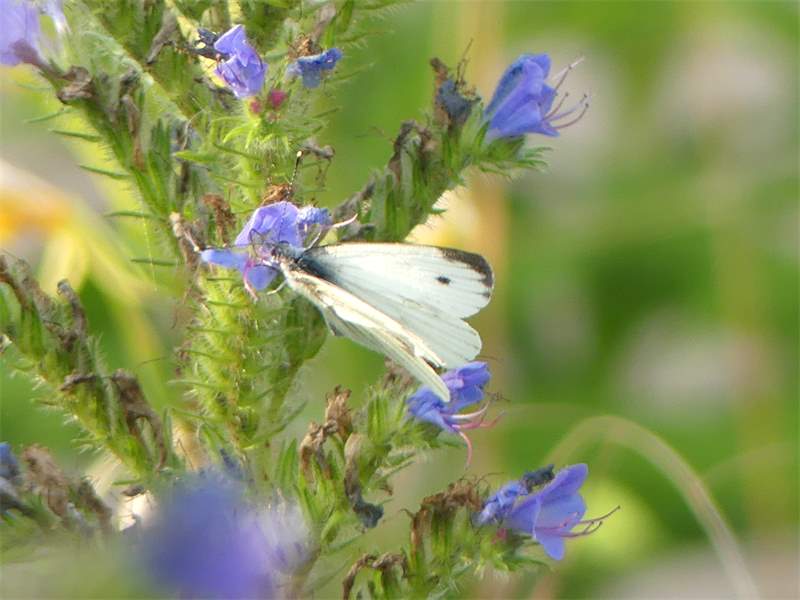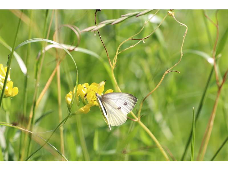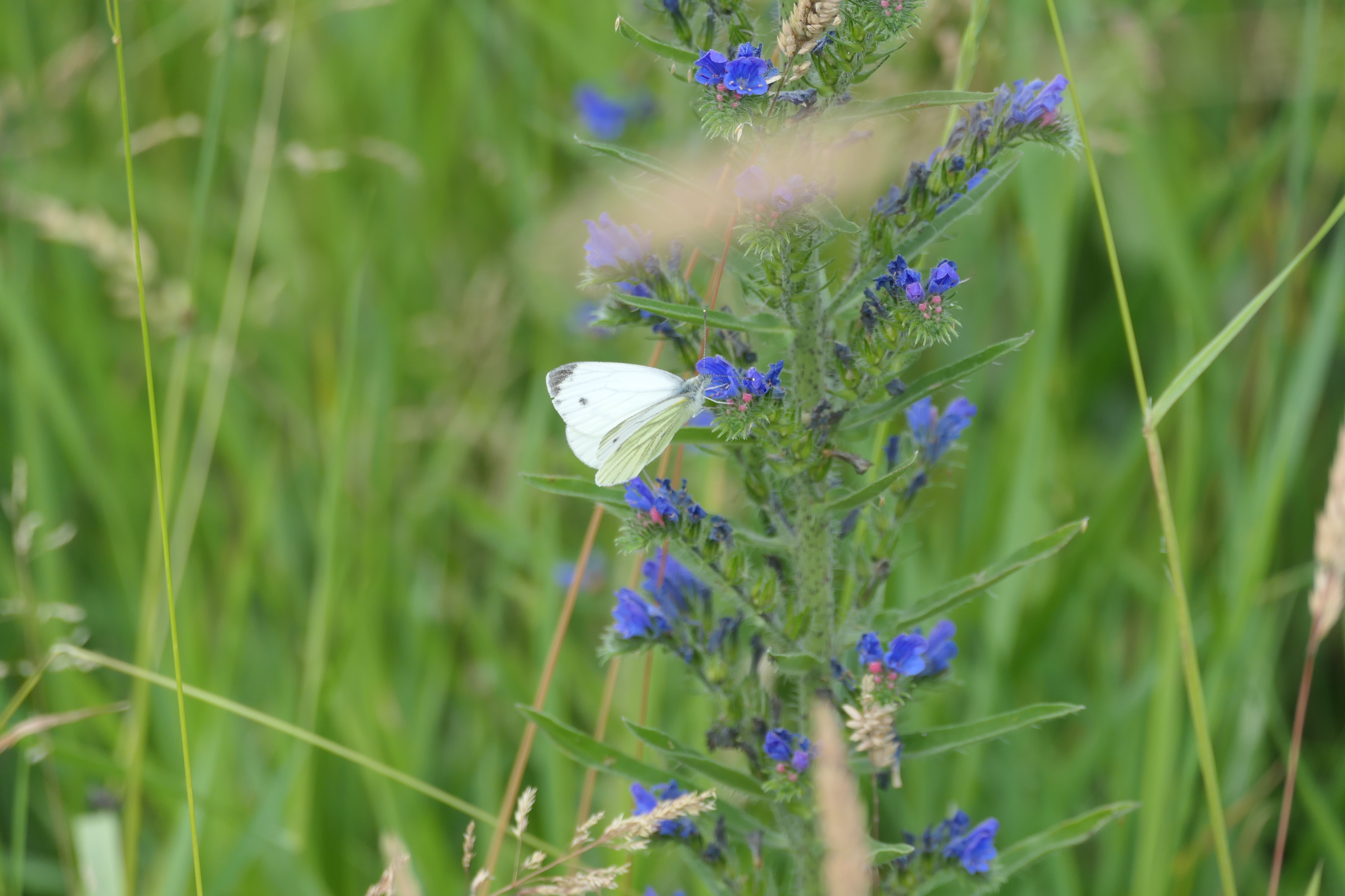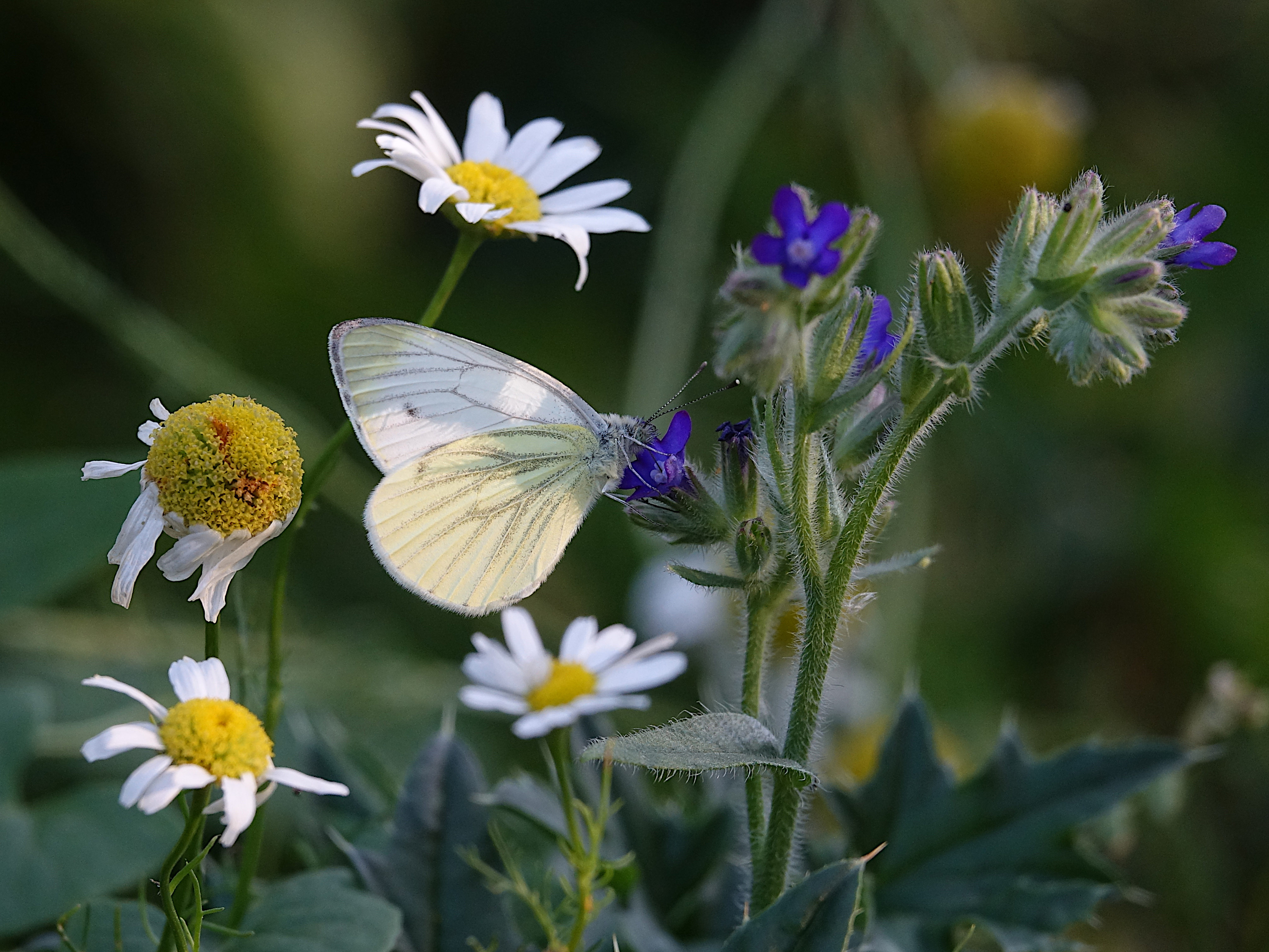 Grünaderweißling auf blütenreich bewachsener Brachfläche in Dresden Klotzsche, 22. Juni 2016