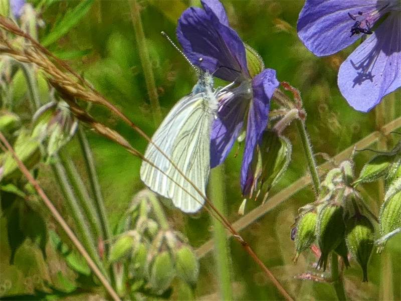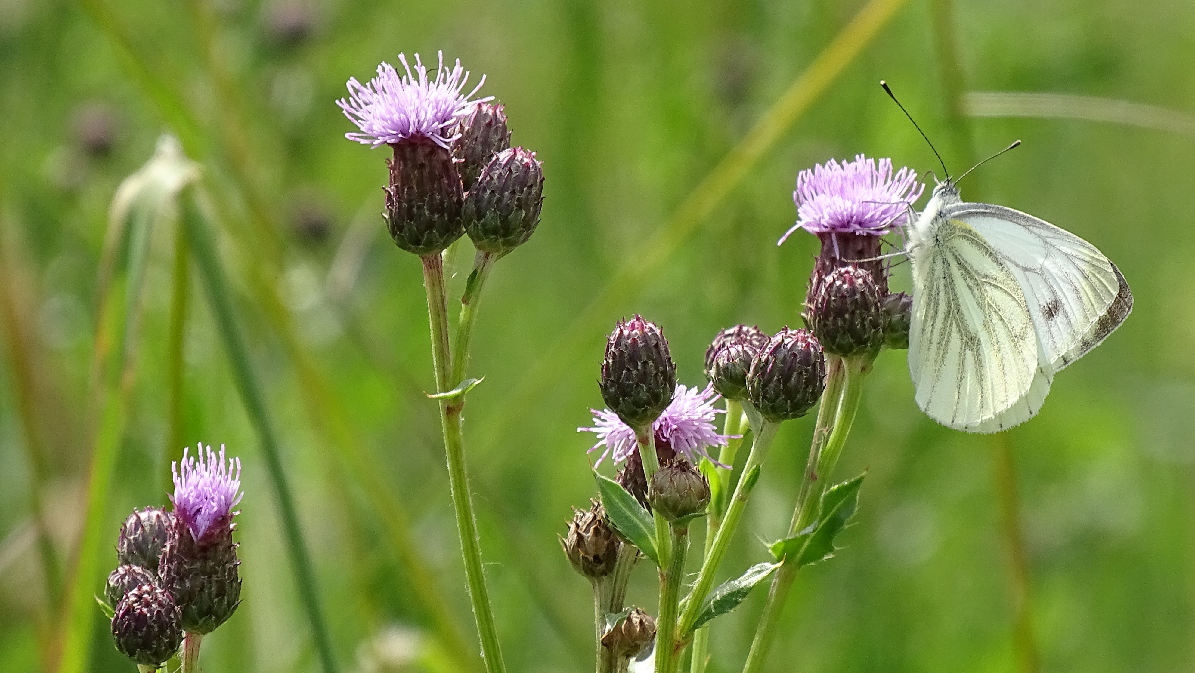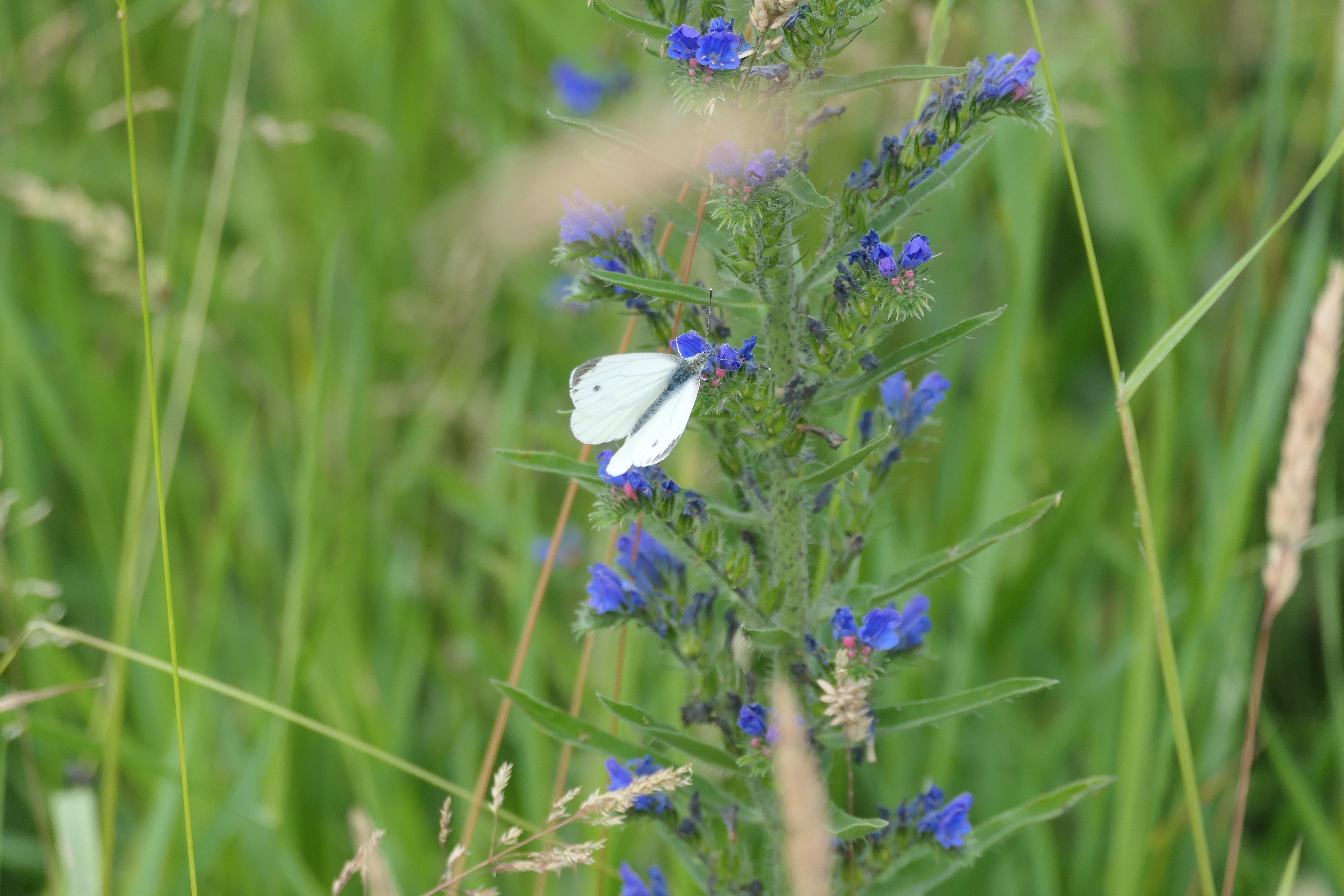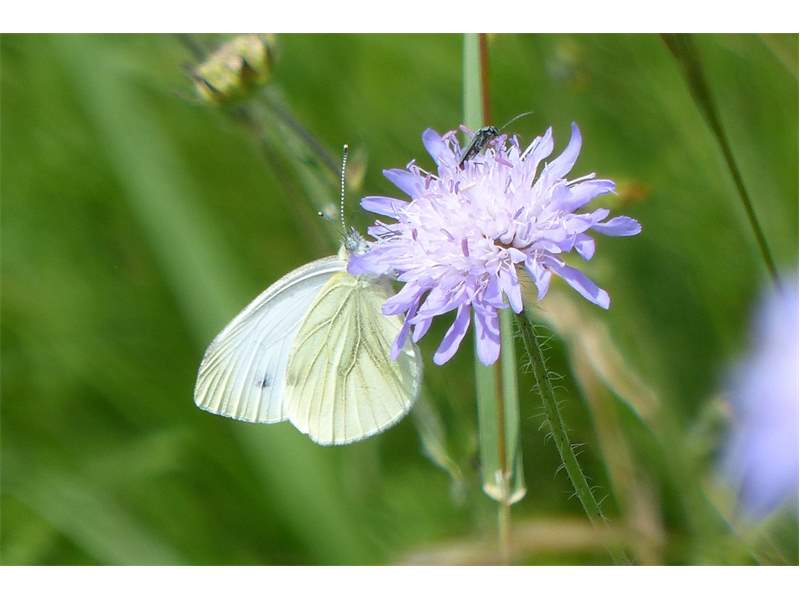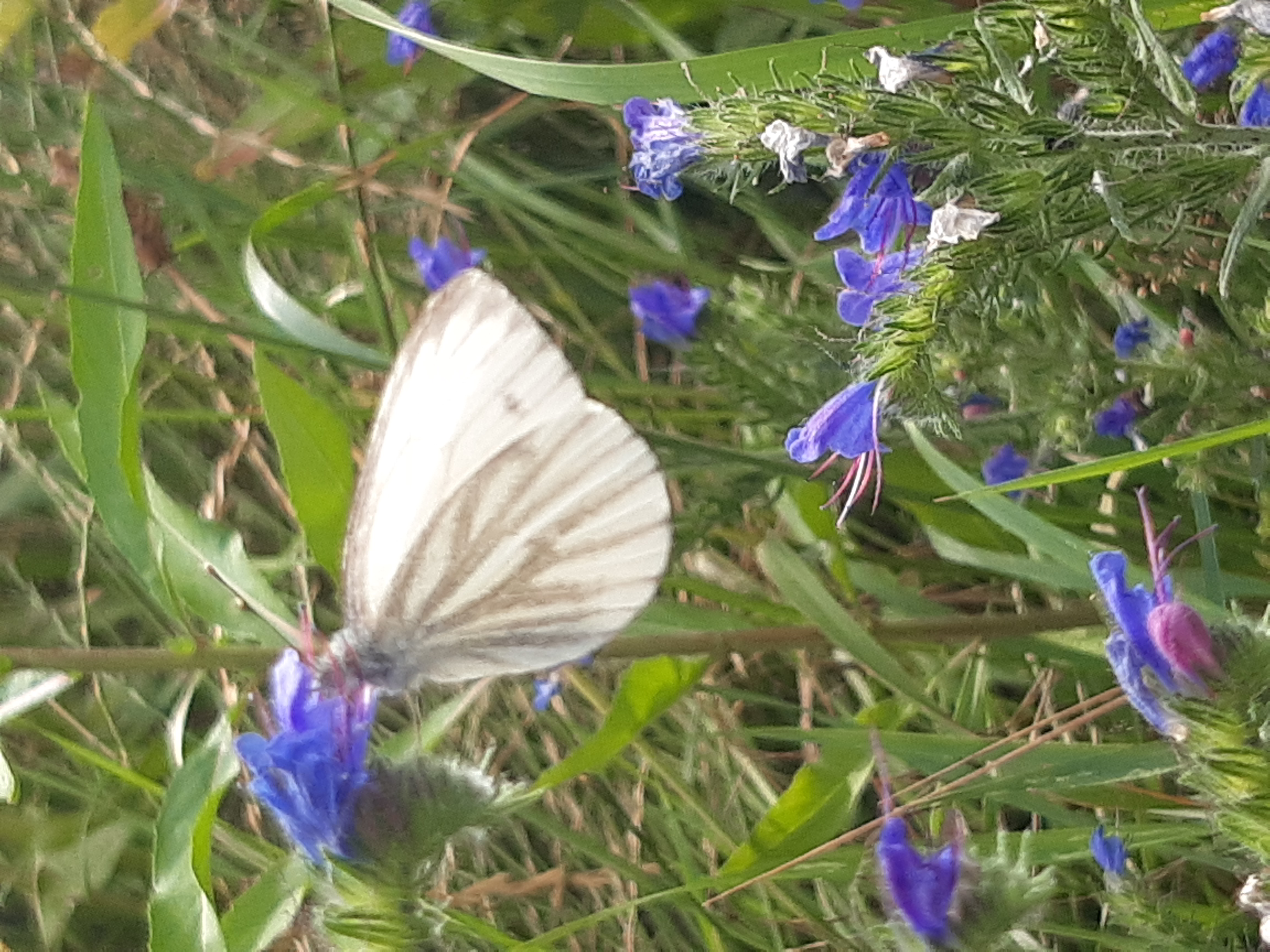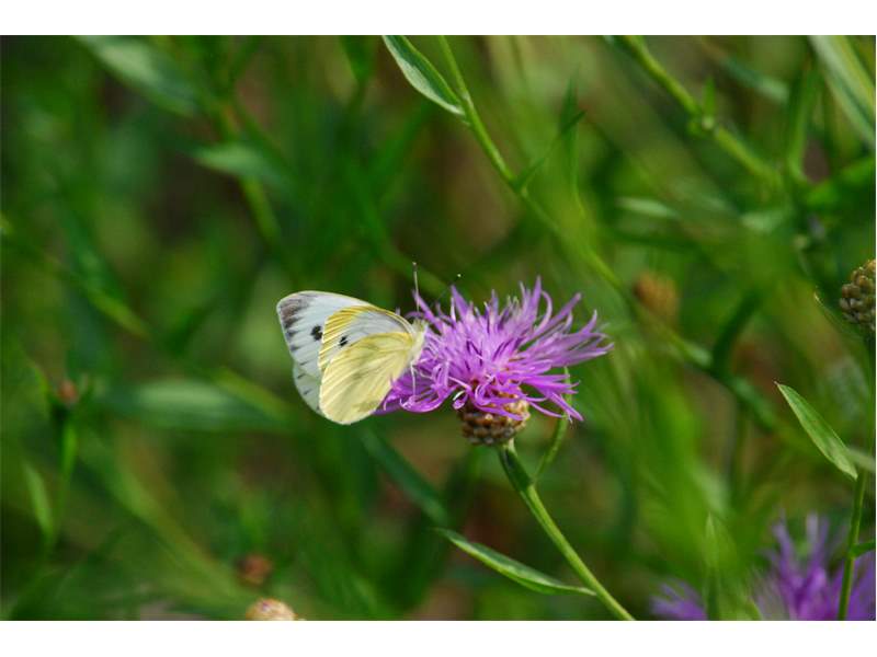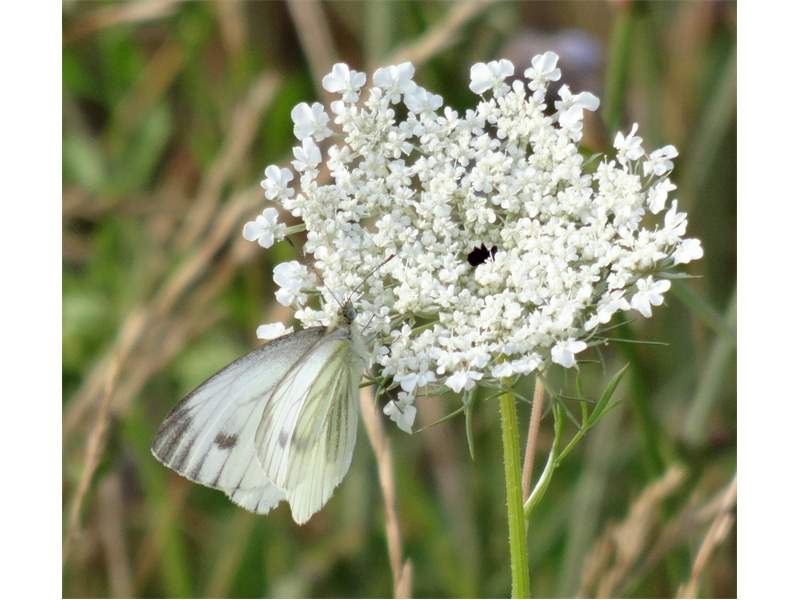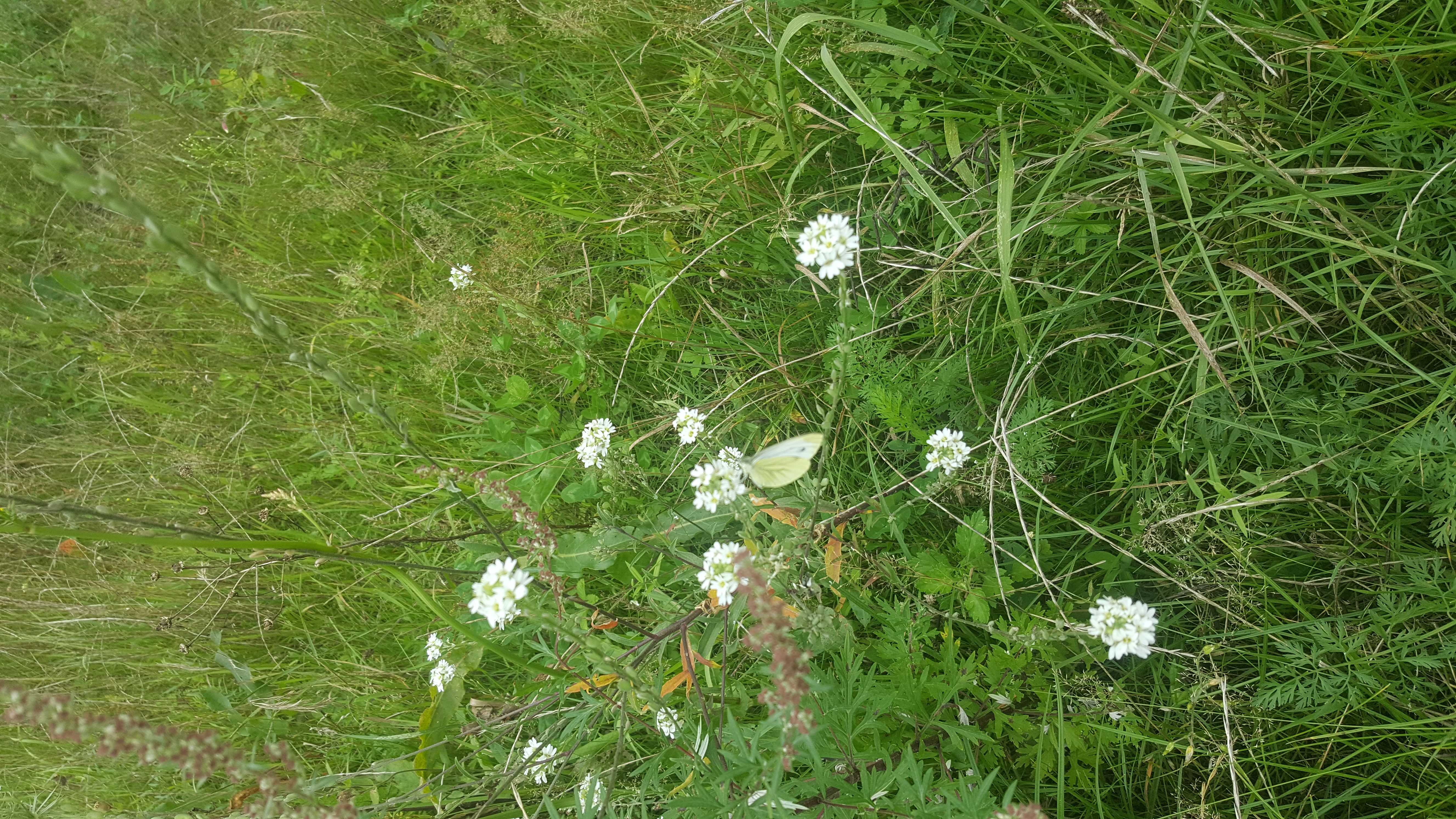 Grünaderweißling auf blütenreich bewachsener Brachfläche in Dresden Klotzsche, 22. Juni 2016