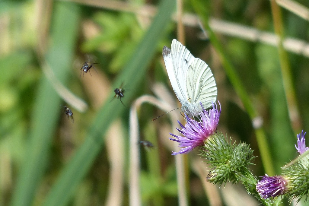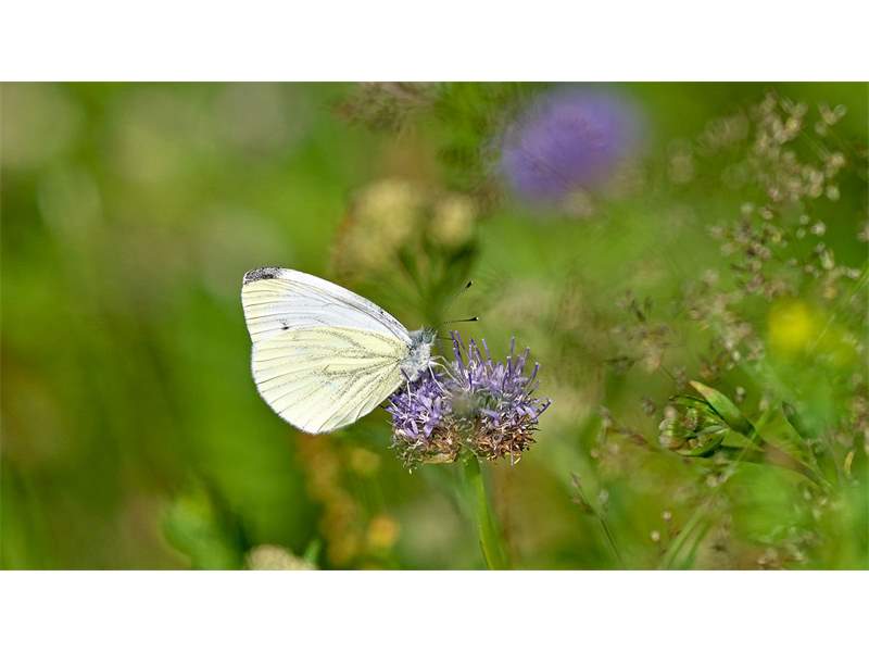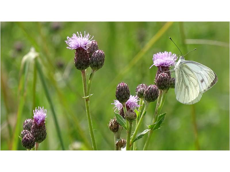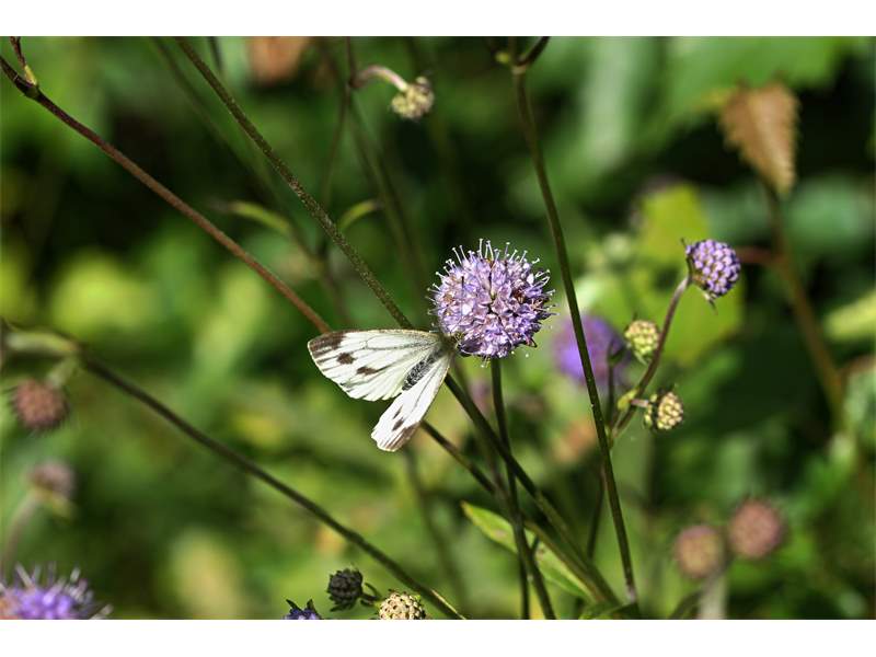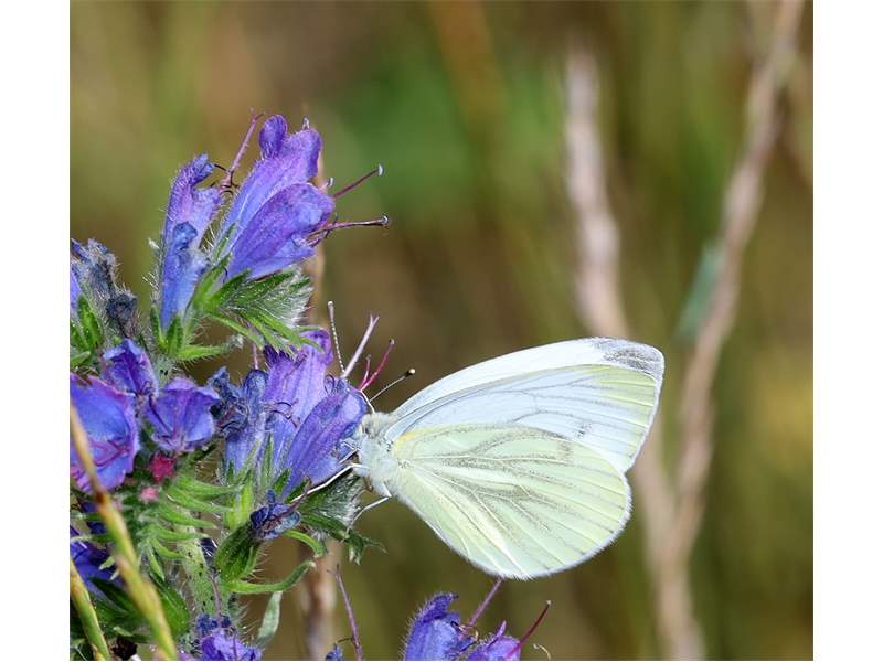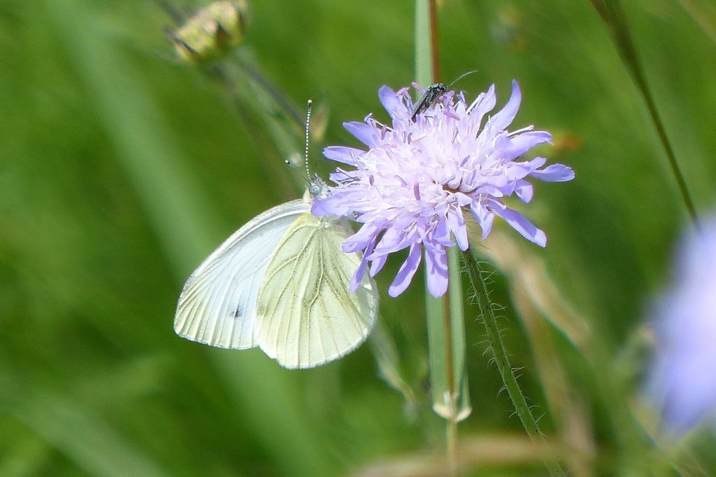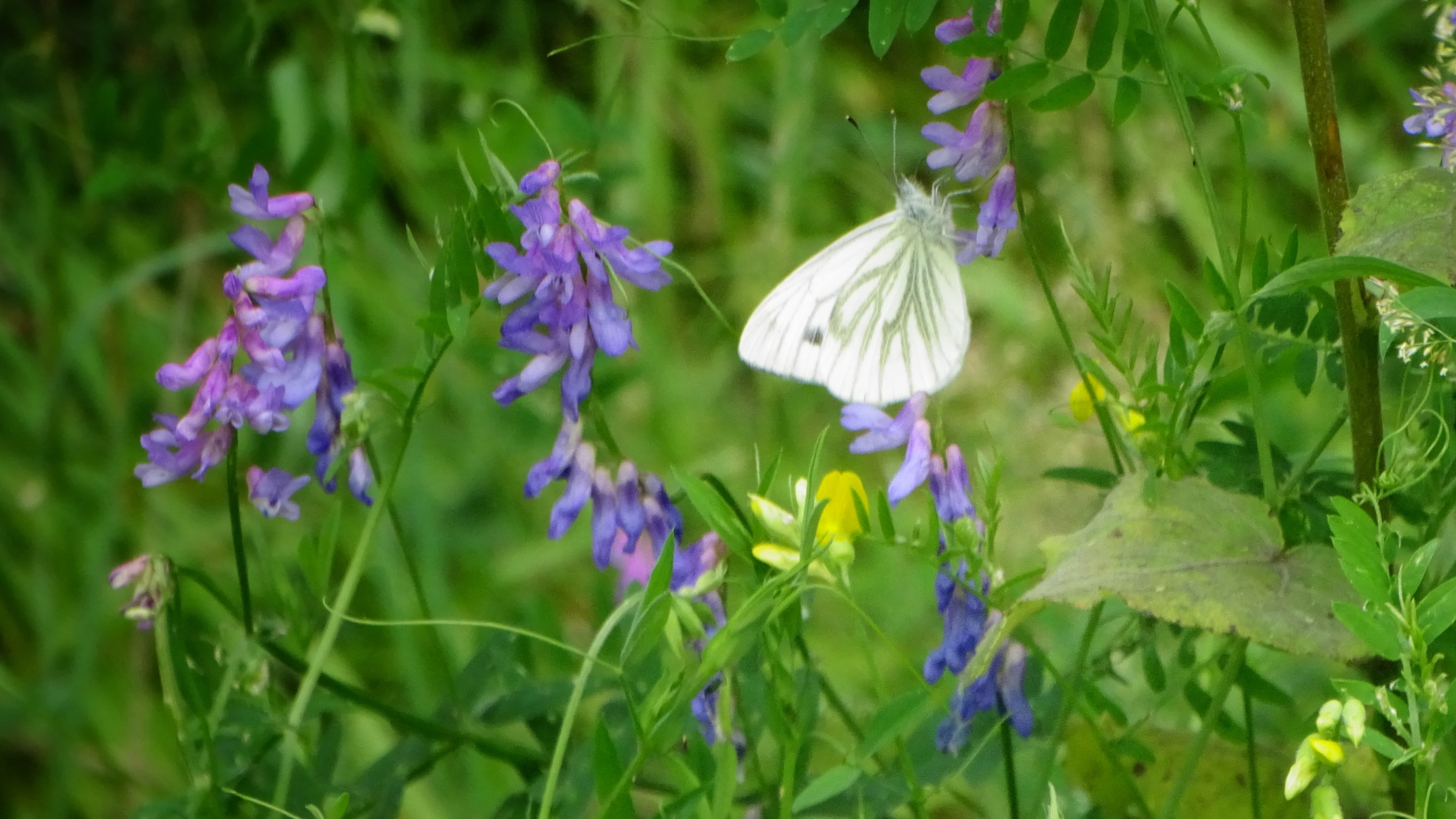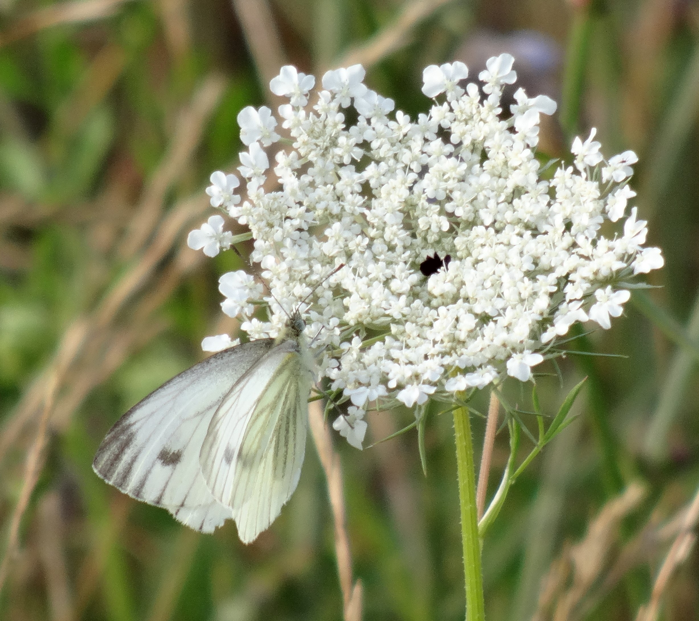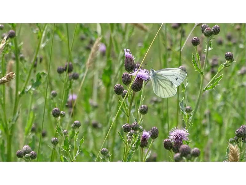 Grünaderweißling auf blütenreich bewachsener Brachfläche in Dresden Klotzsche, 22. Juni 2016