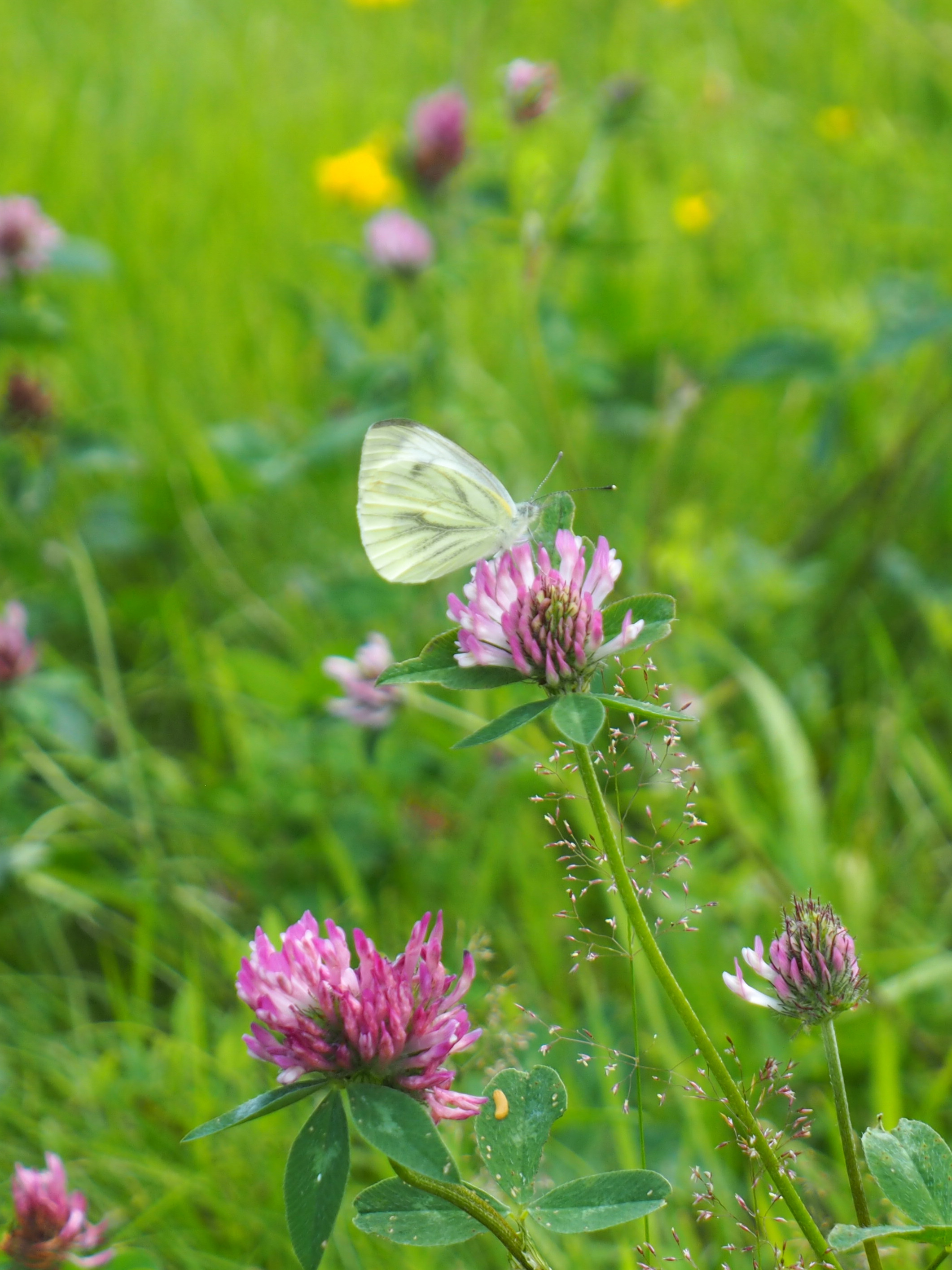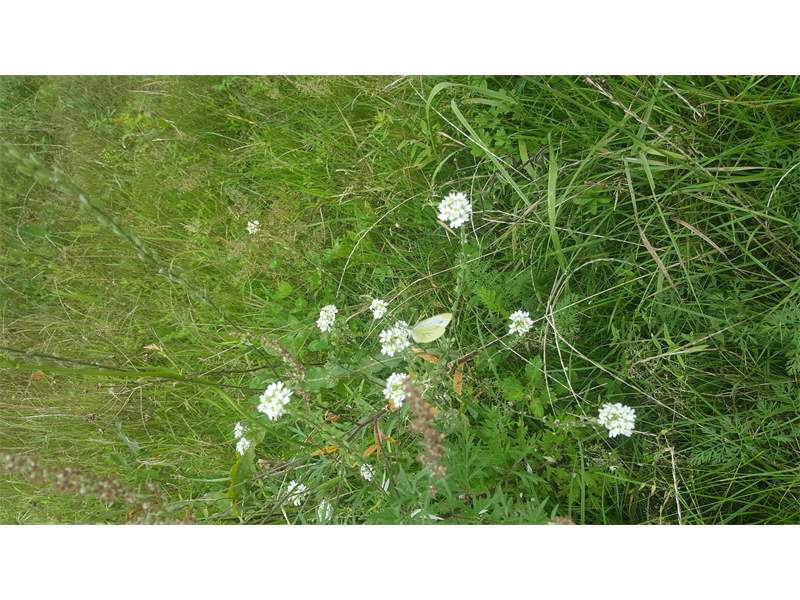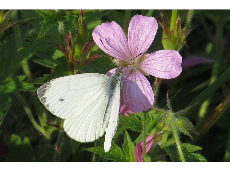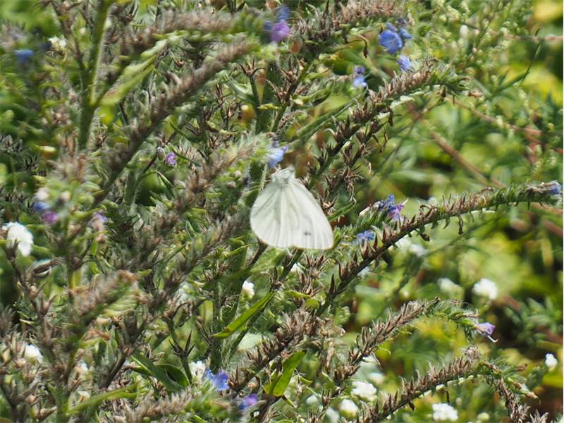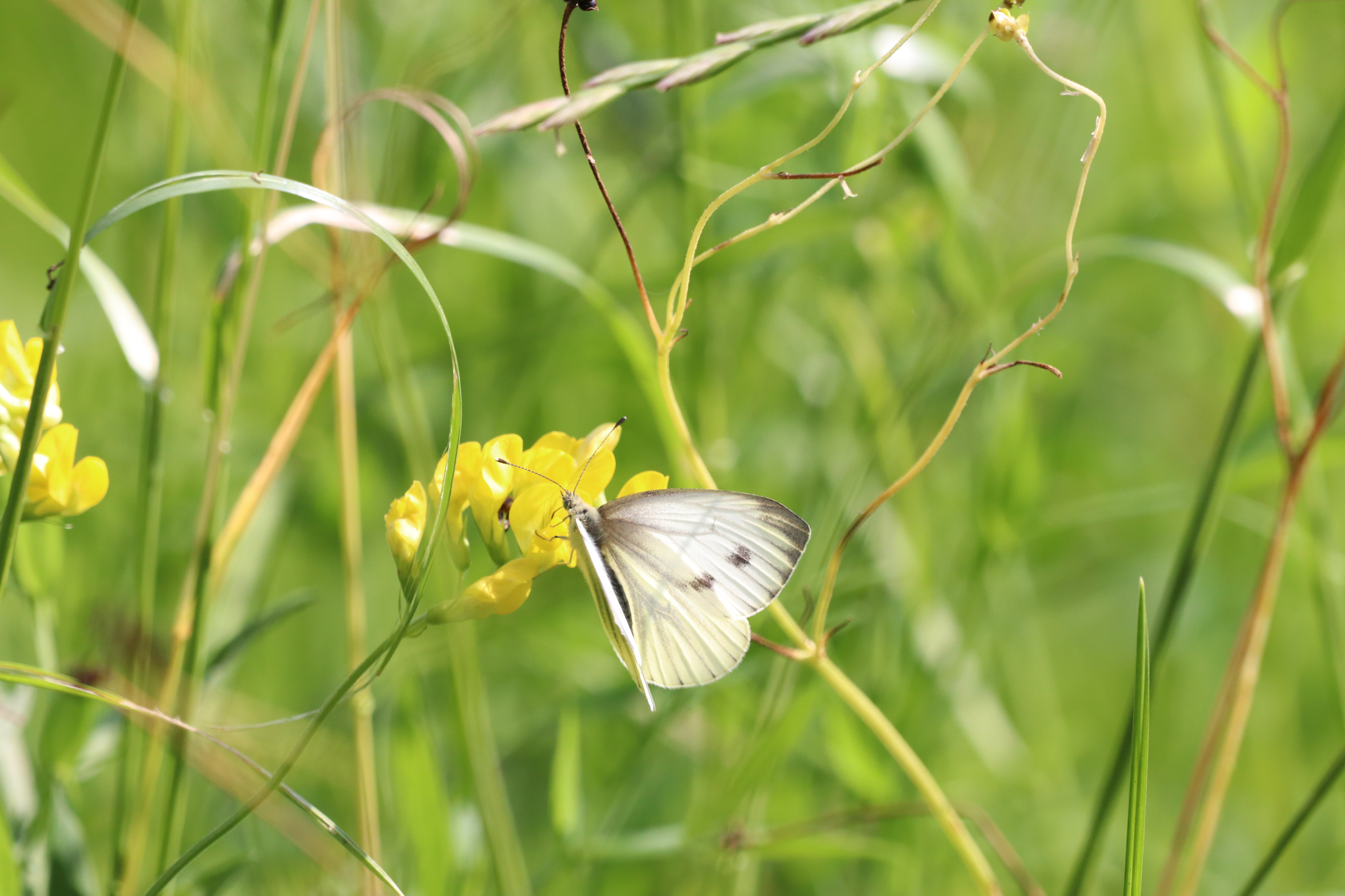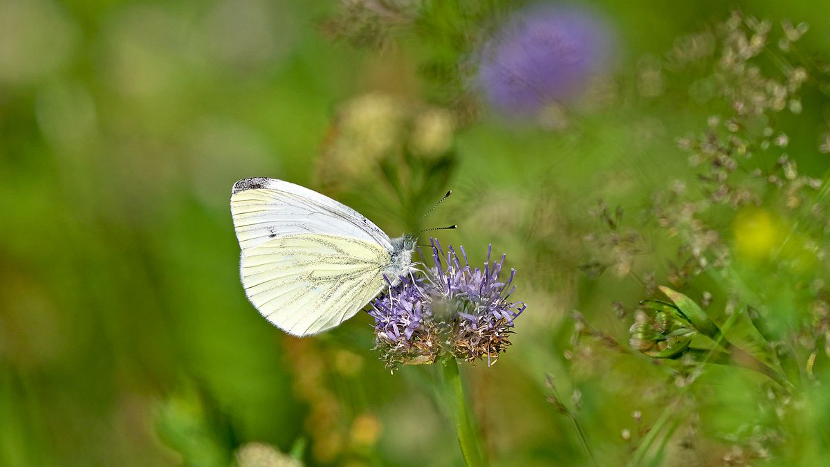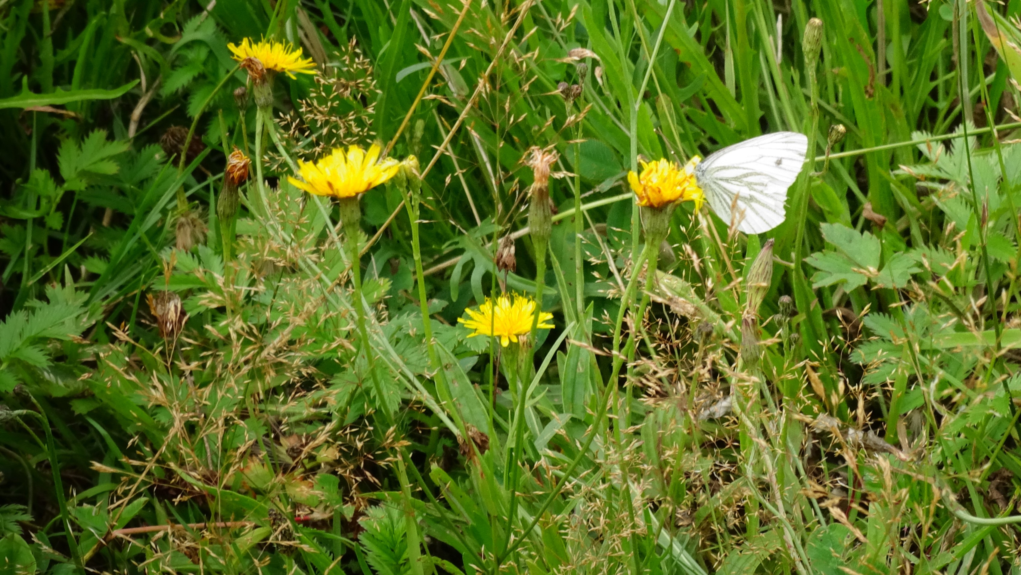 Grünaderweißling auf blütenreich bewachsener Brachfläche in Dresden Klotzsche, 22. Juni 2016