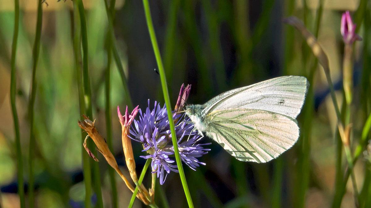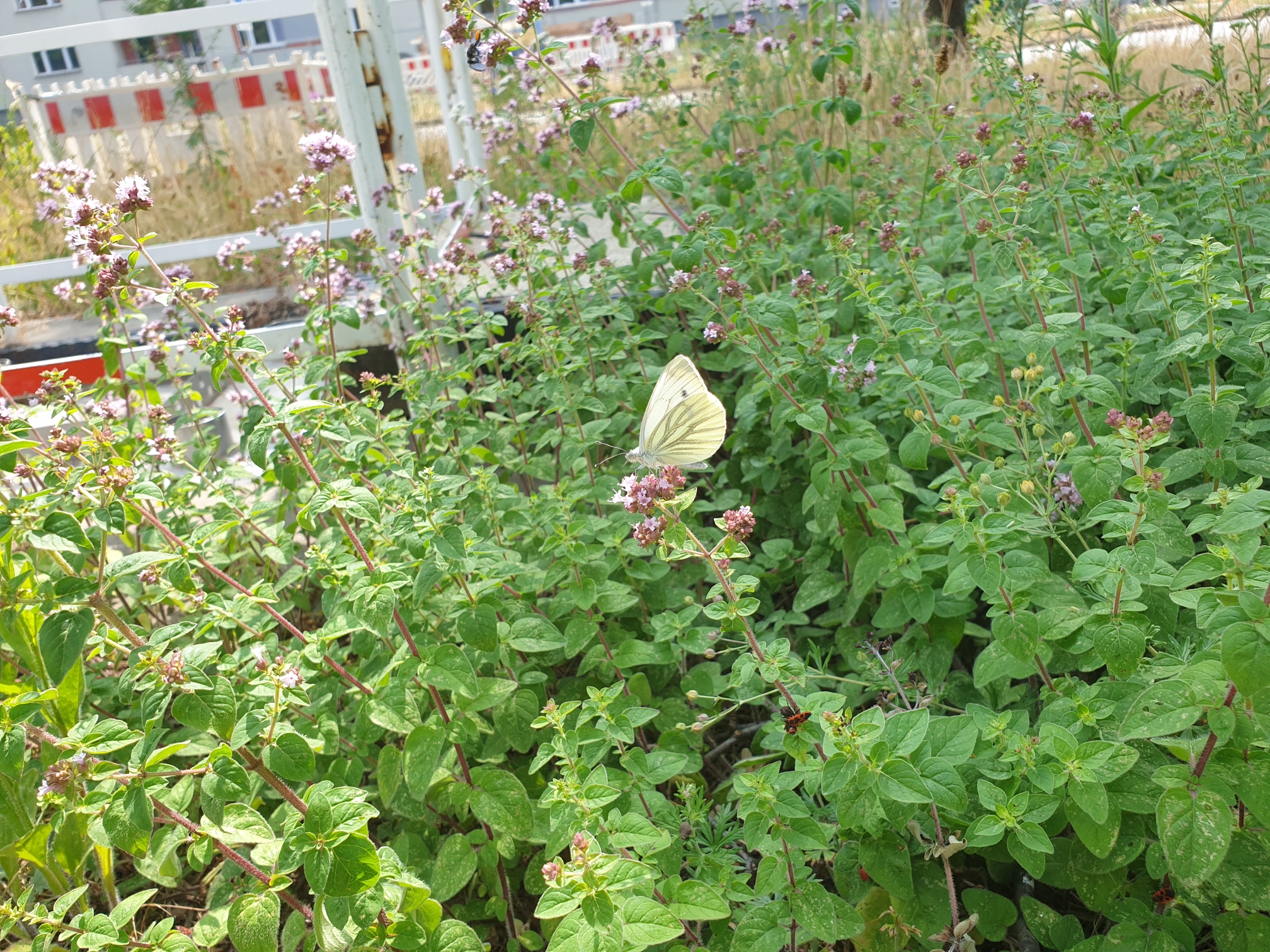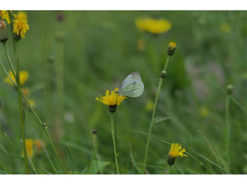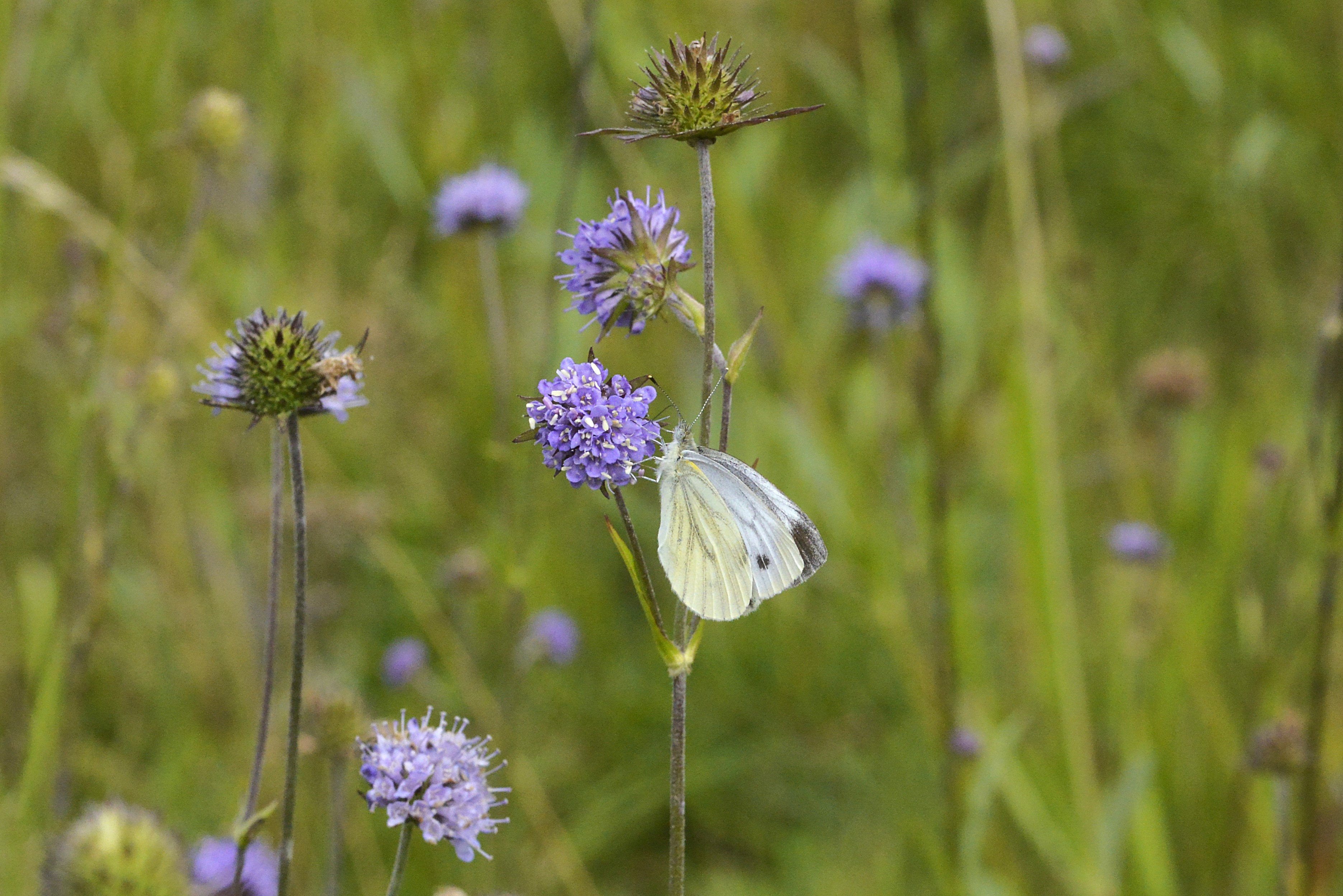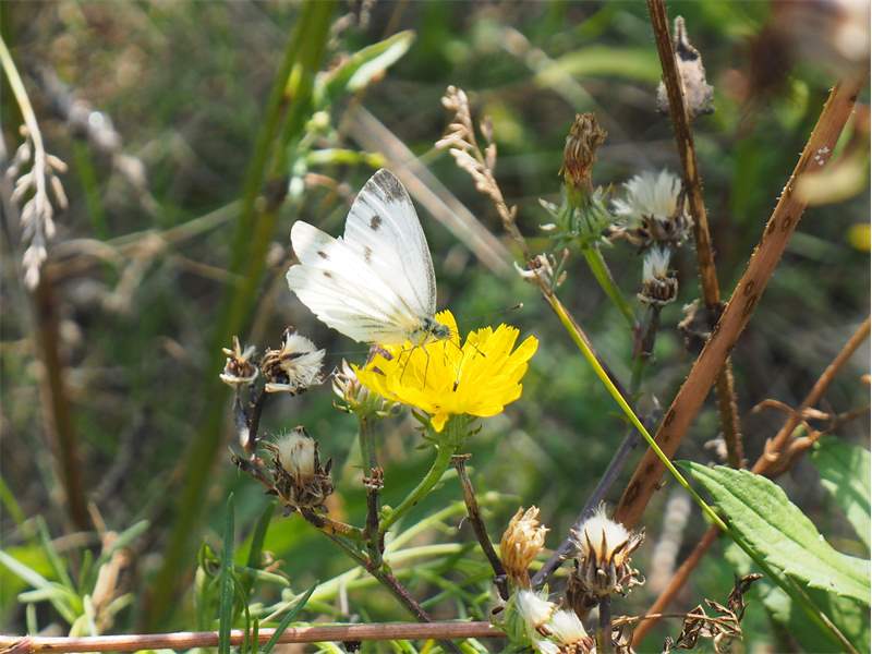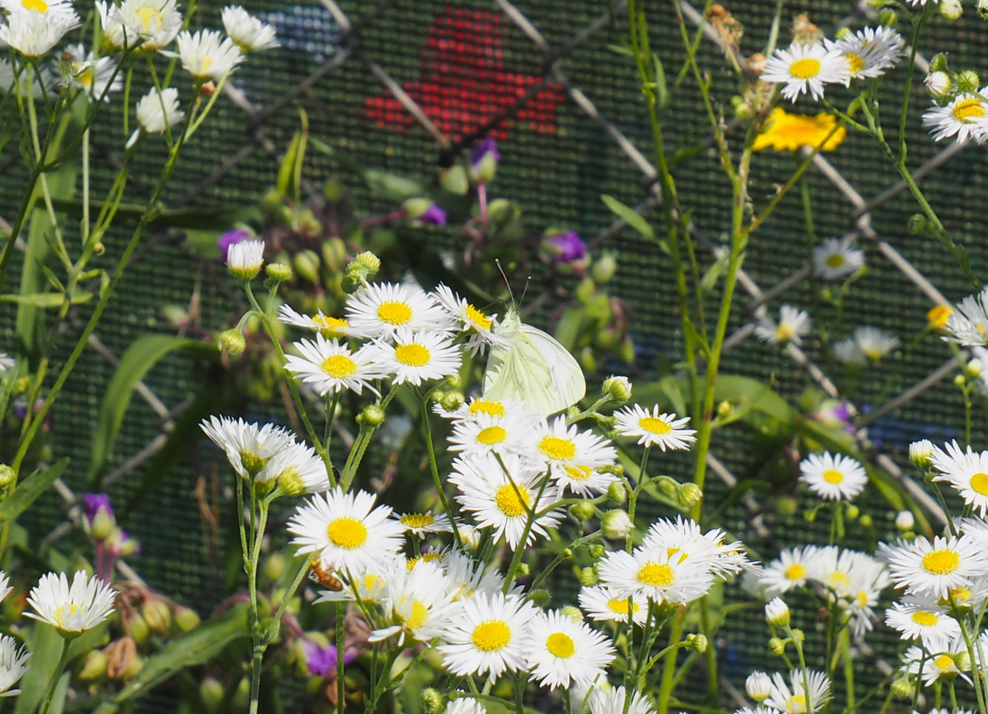 Grünaderweißling auf blütenreich bewachsener Brachfläche in Dresden Klotzsche, 22. Juni 2016