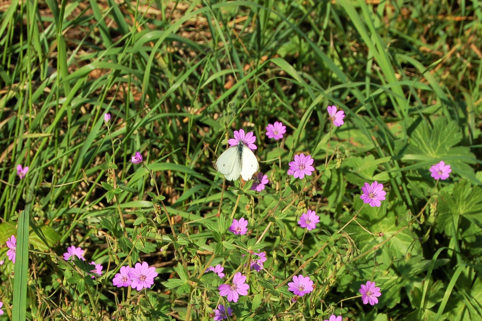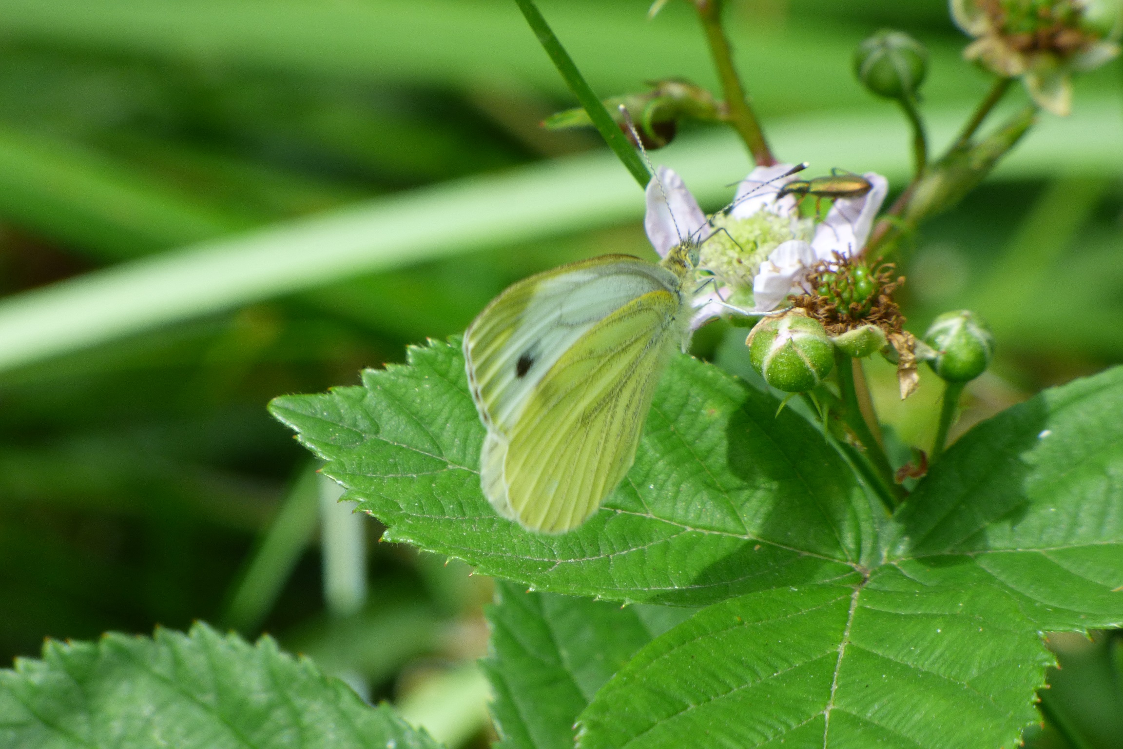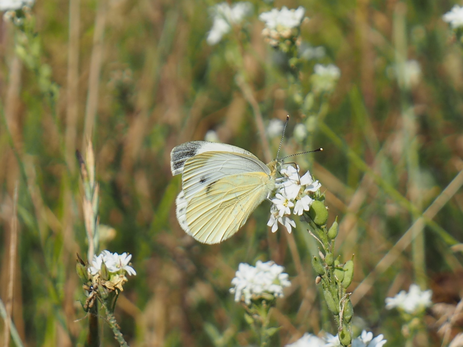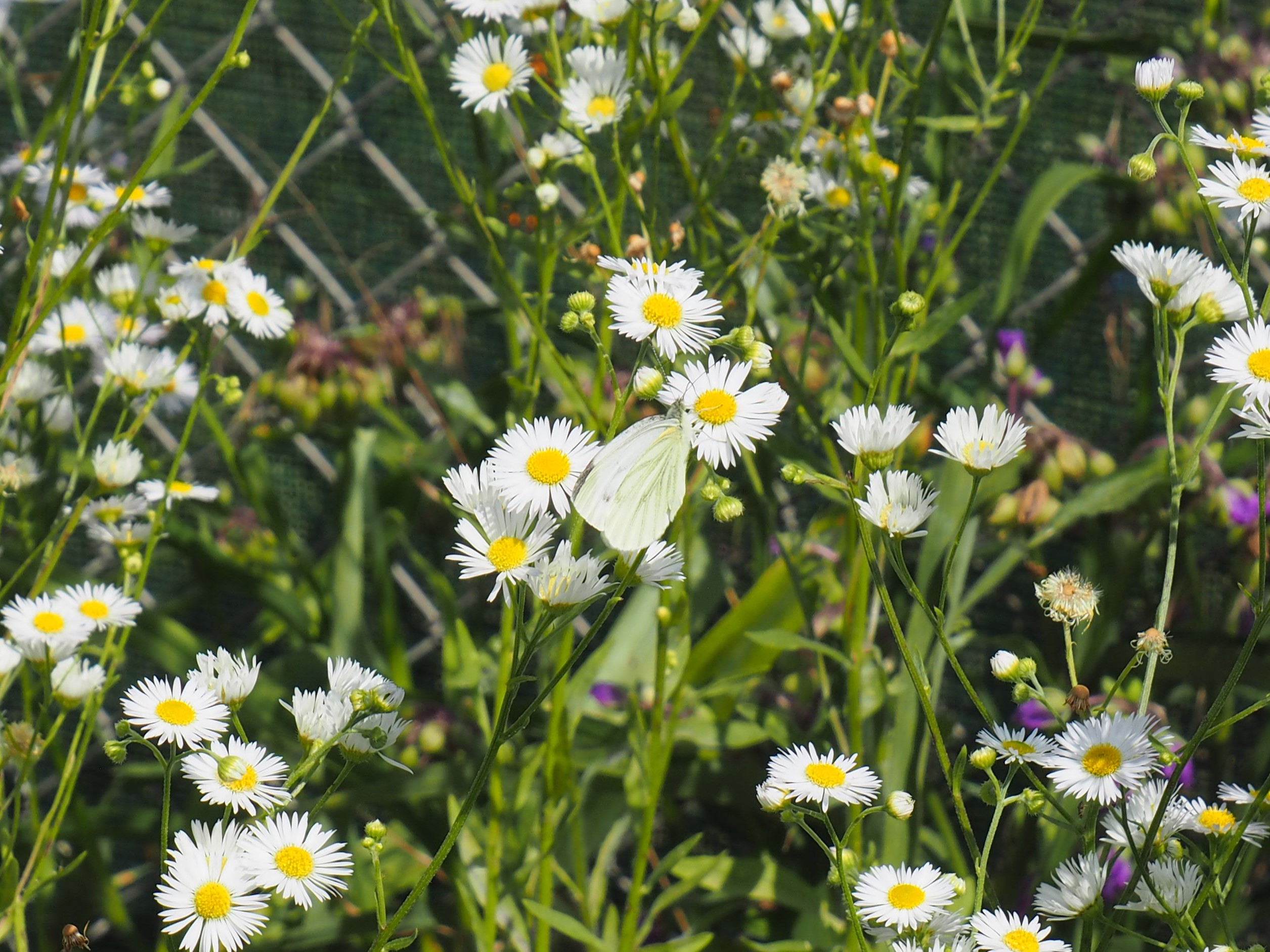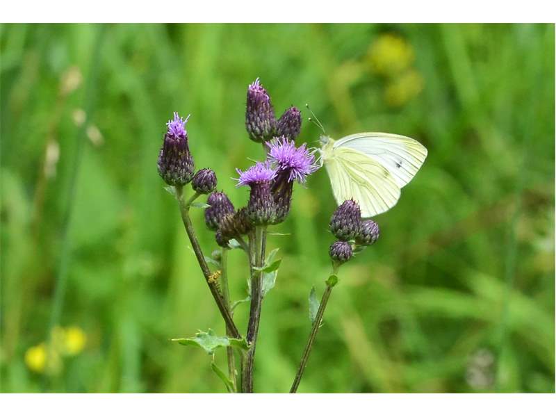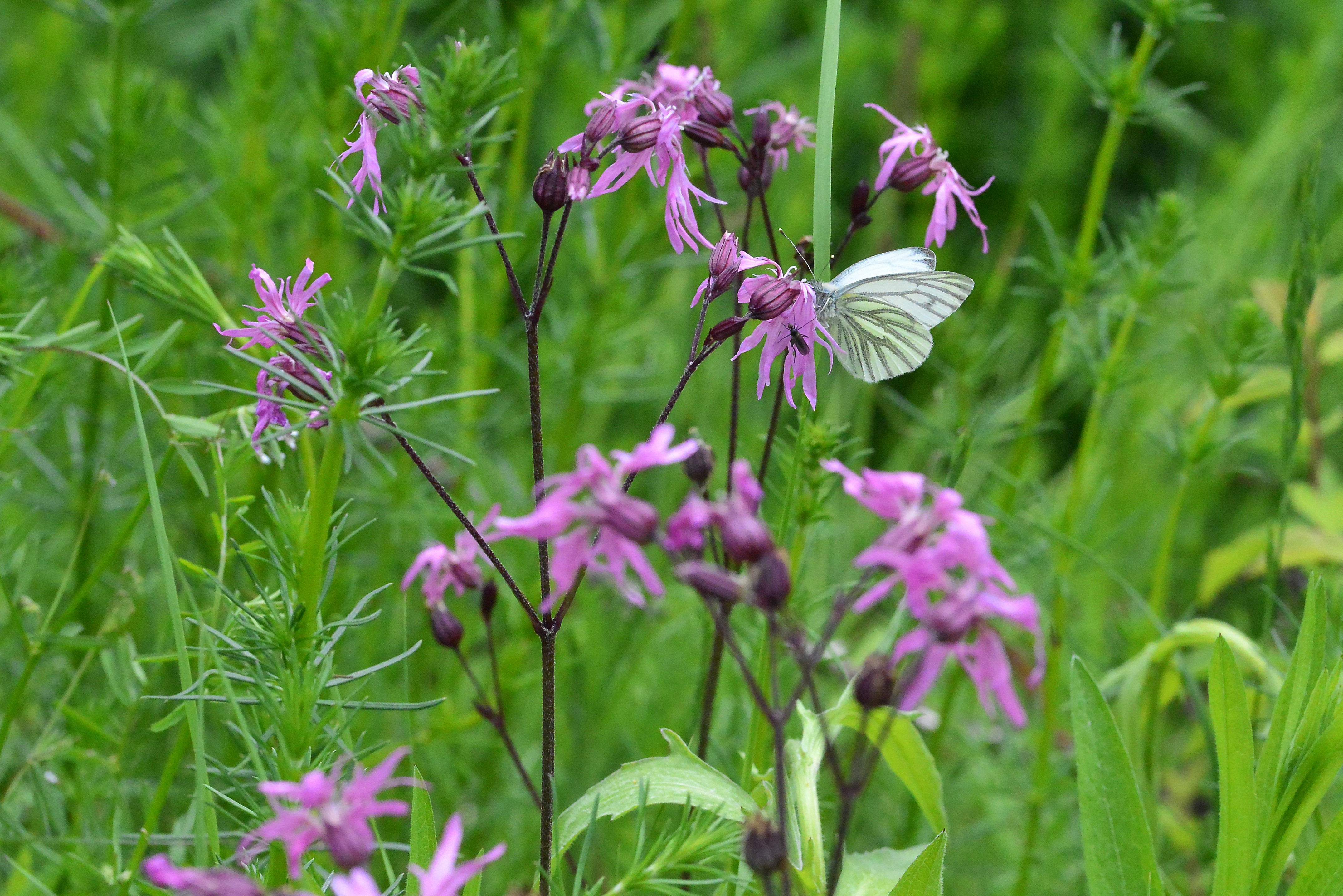 Grünaderweißling auf blütenreich bewachsener Brachfläche in Dresden Klotzsche, 22. Juni 2016