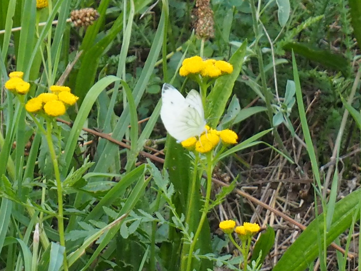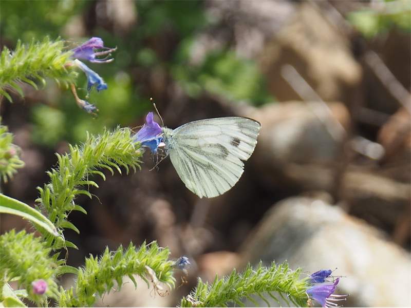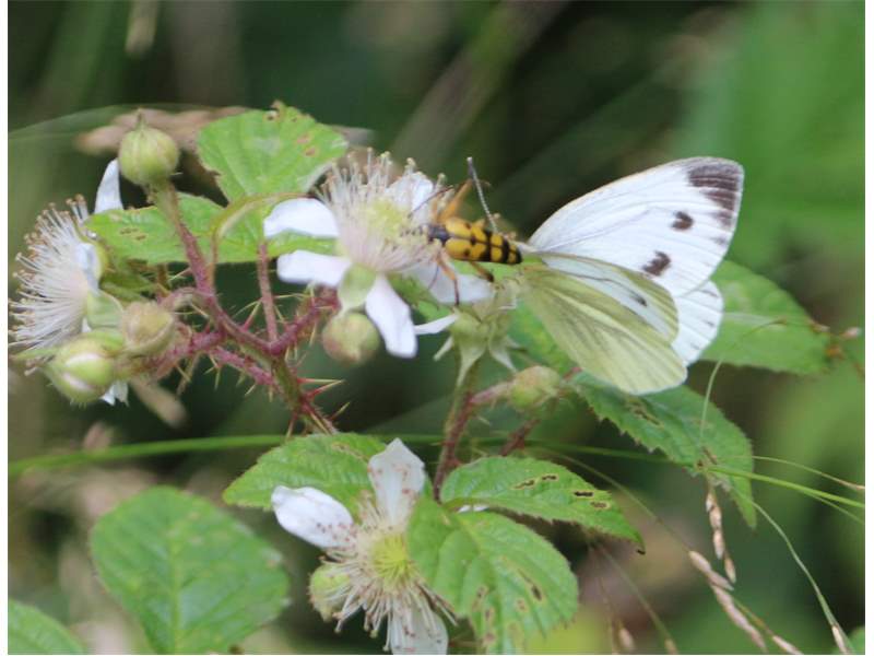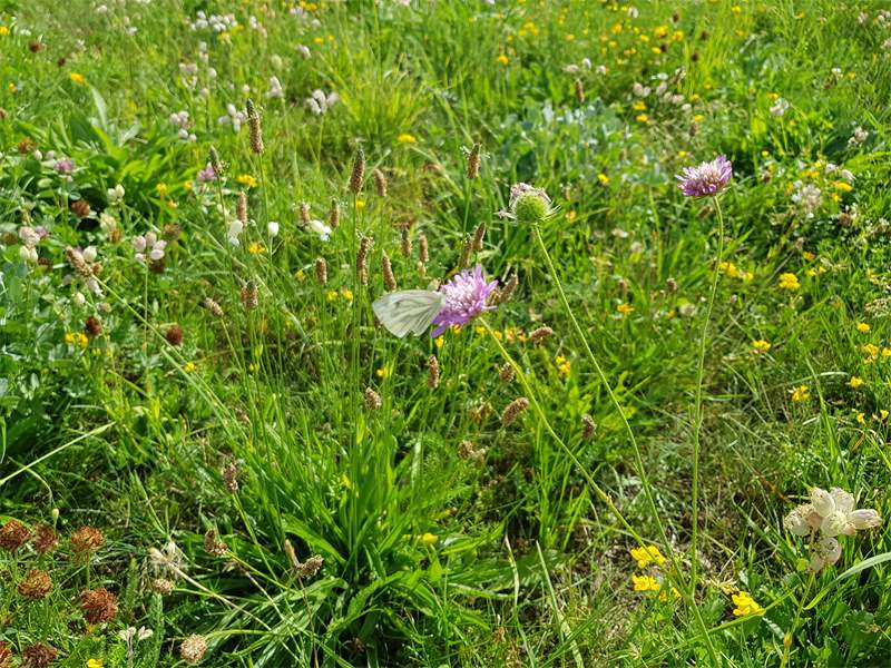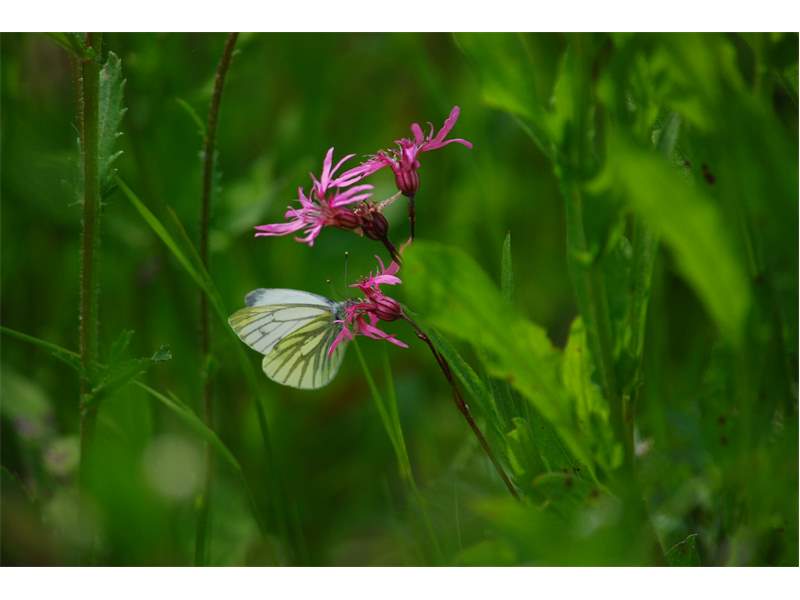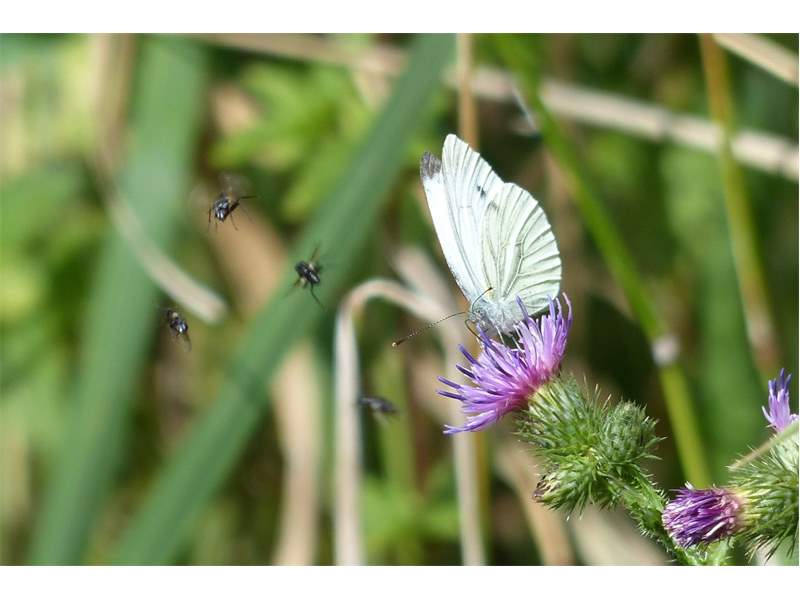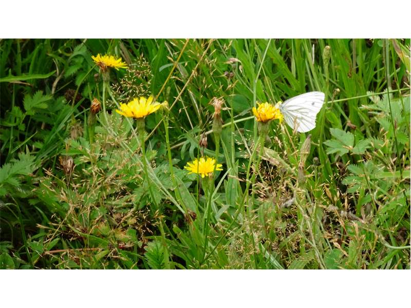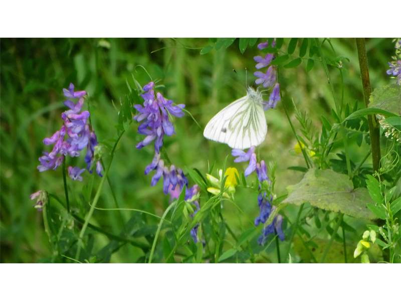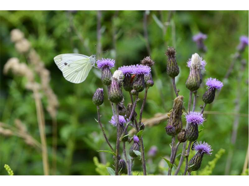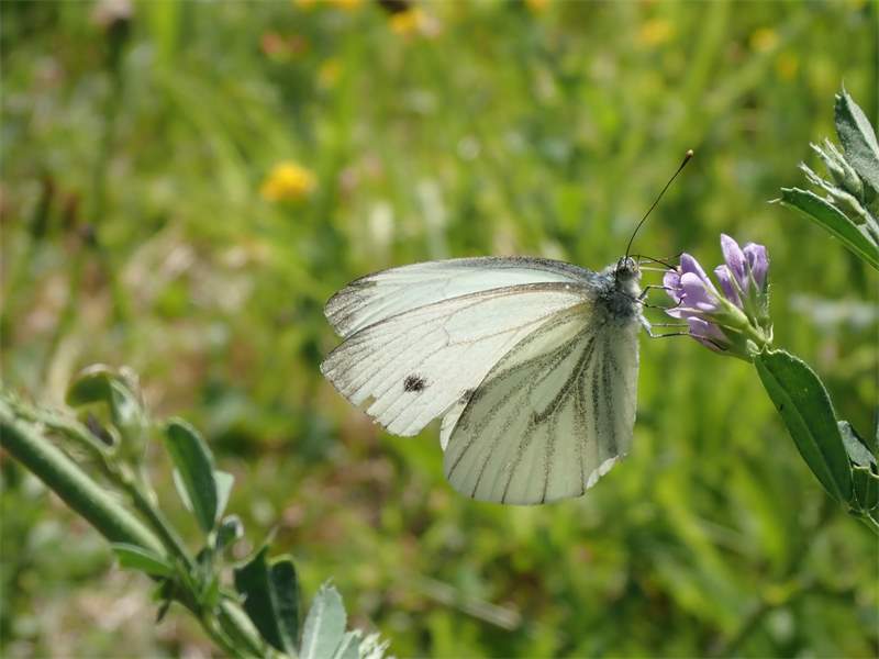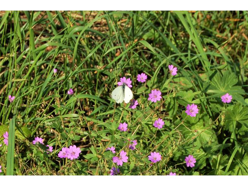 Grünaderweißling auf blütenreich bewachsener Brachfläche in Dresden Klotzsche, 22. Juni 2016