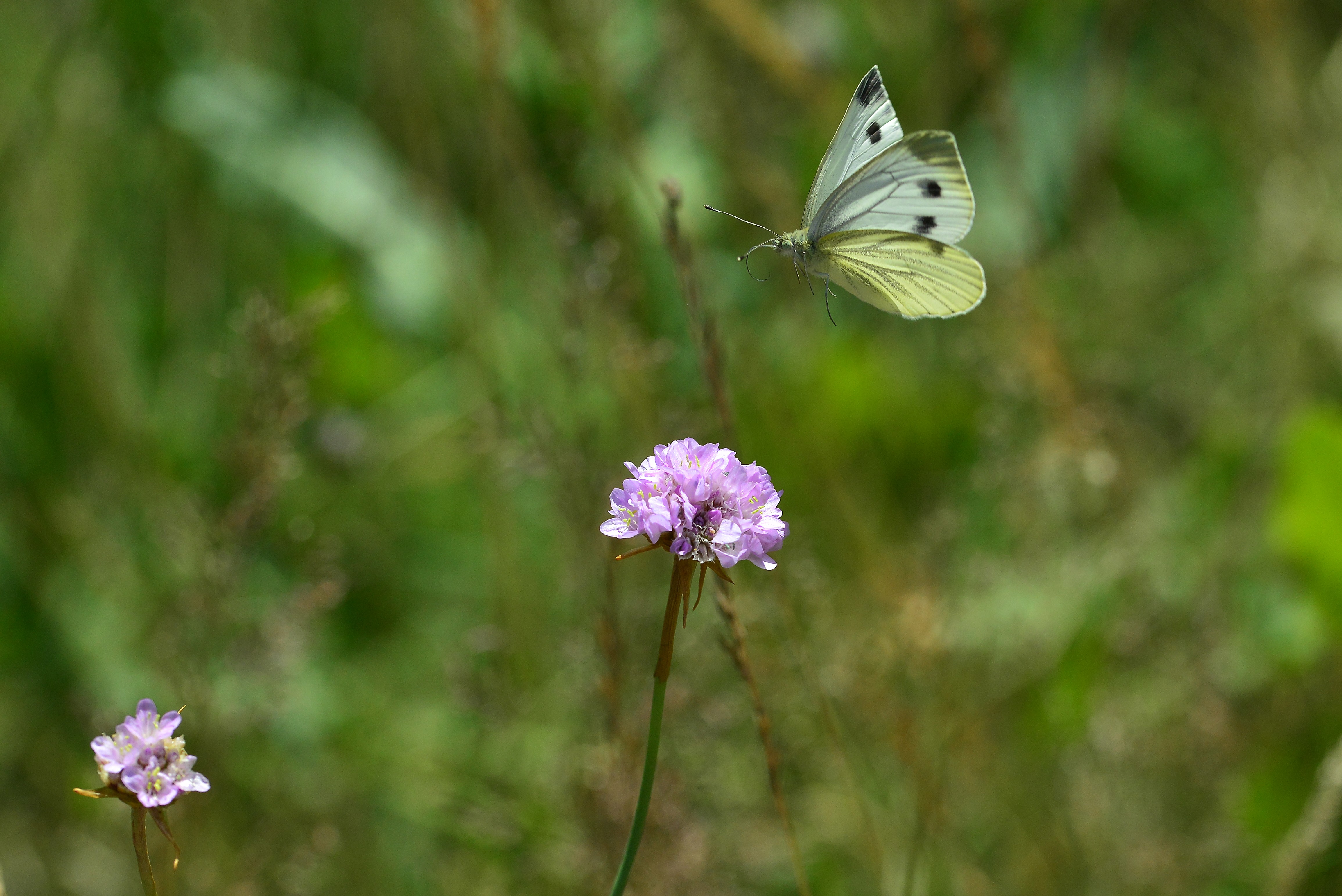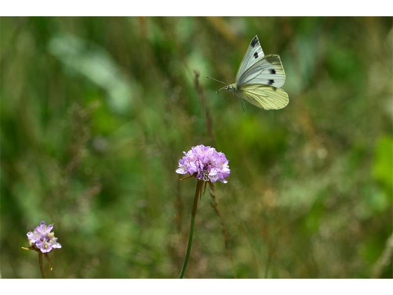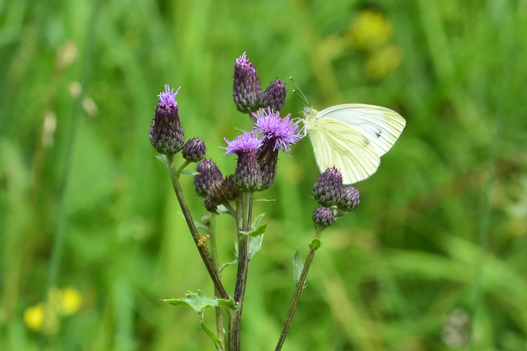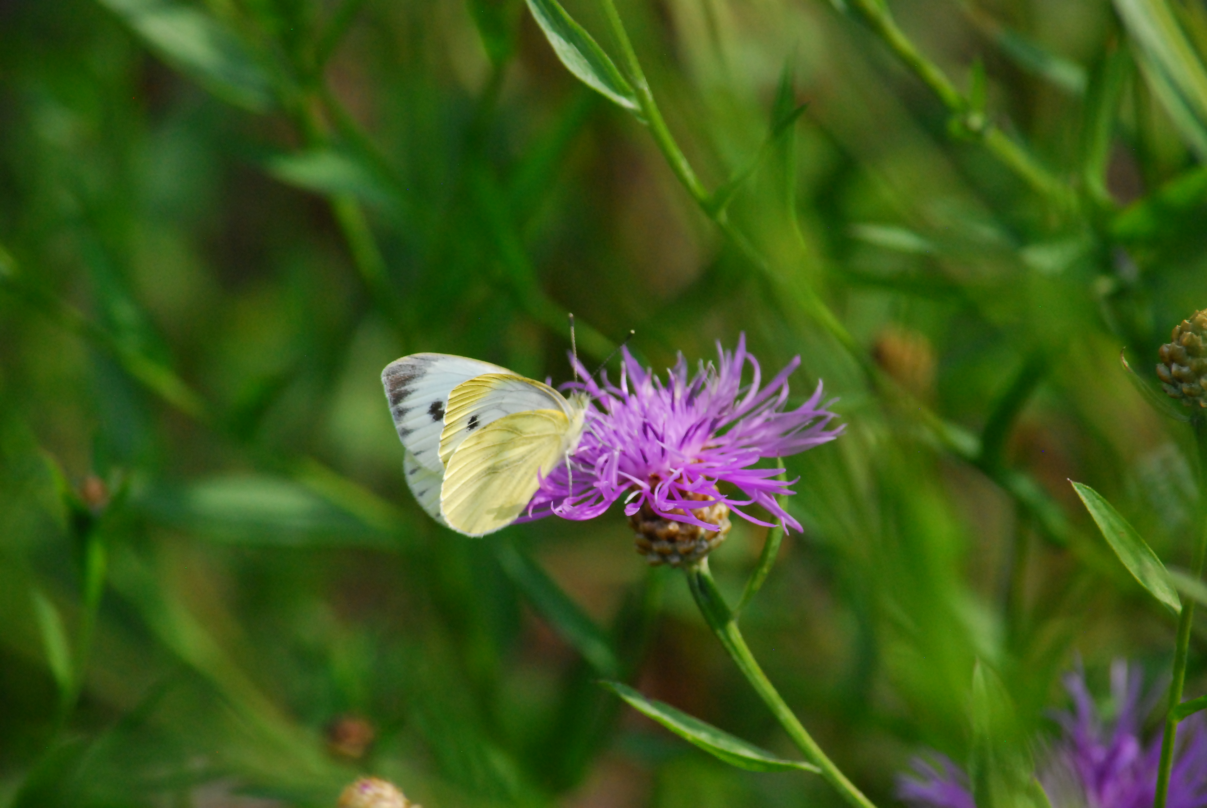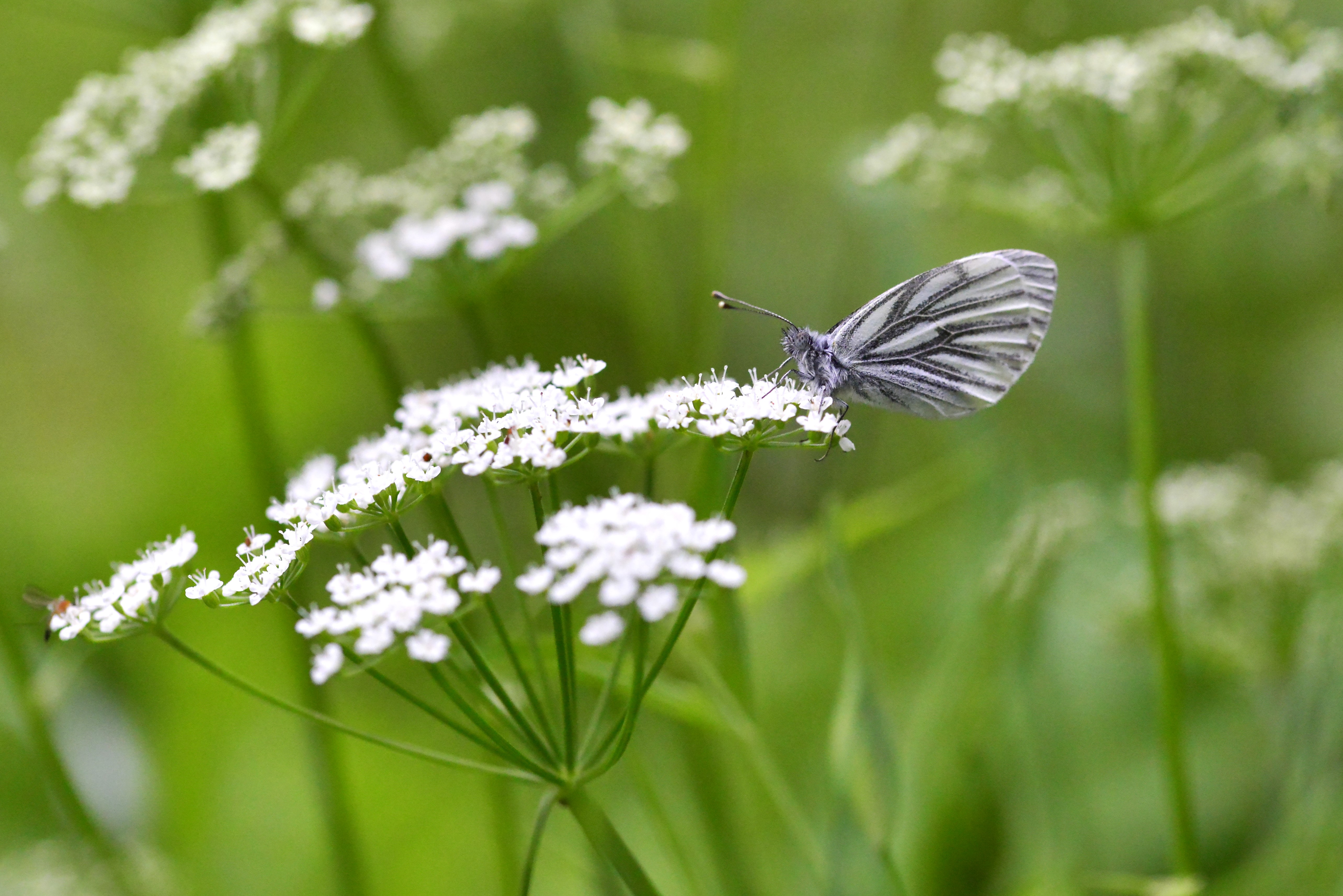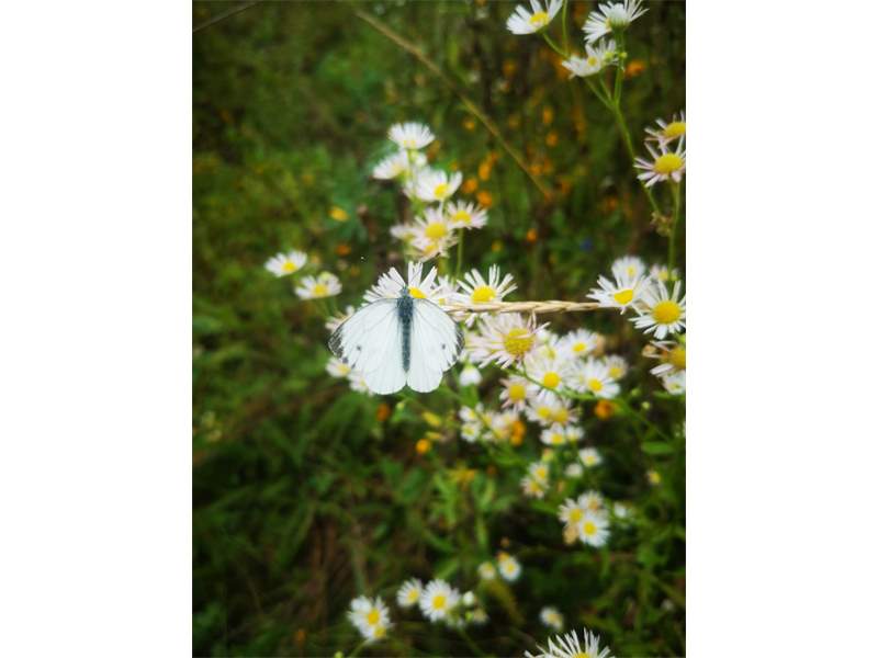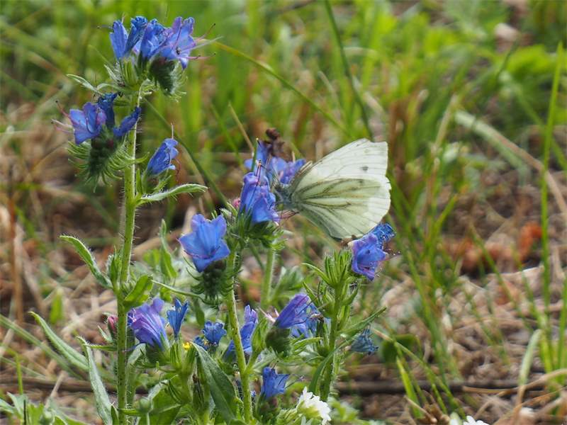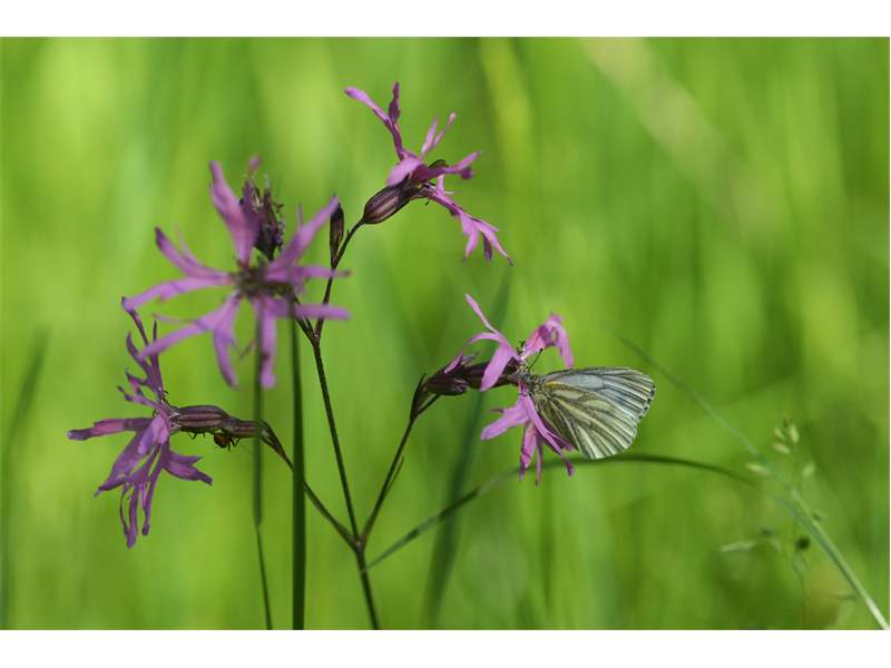 Grünaderweißling auf blütenreich bewachsener Brachfläche in Dresden Klotzsche, 22. Juni 2016