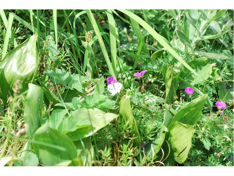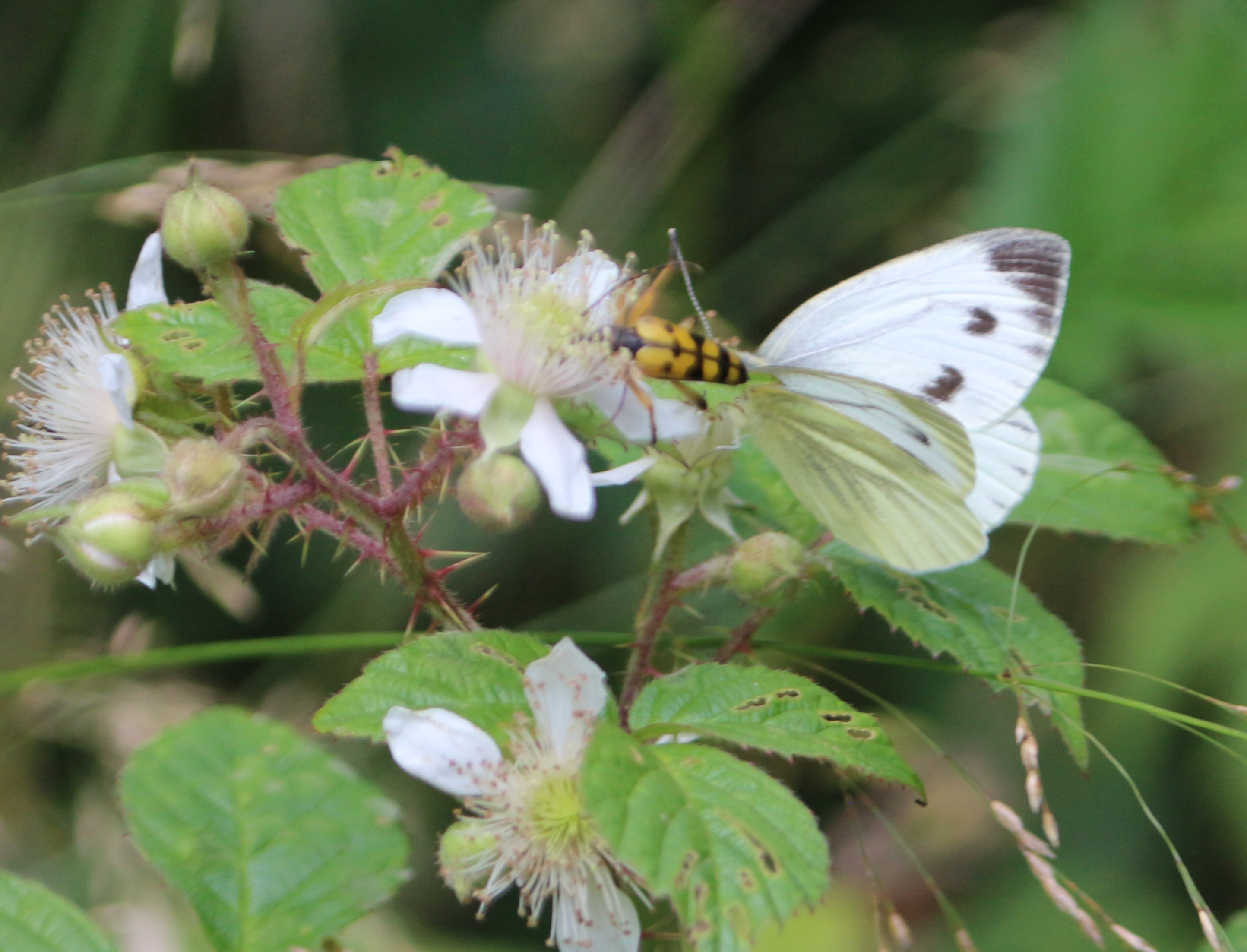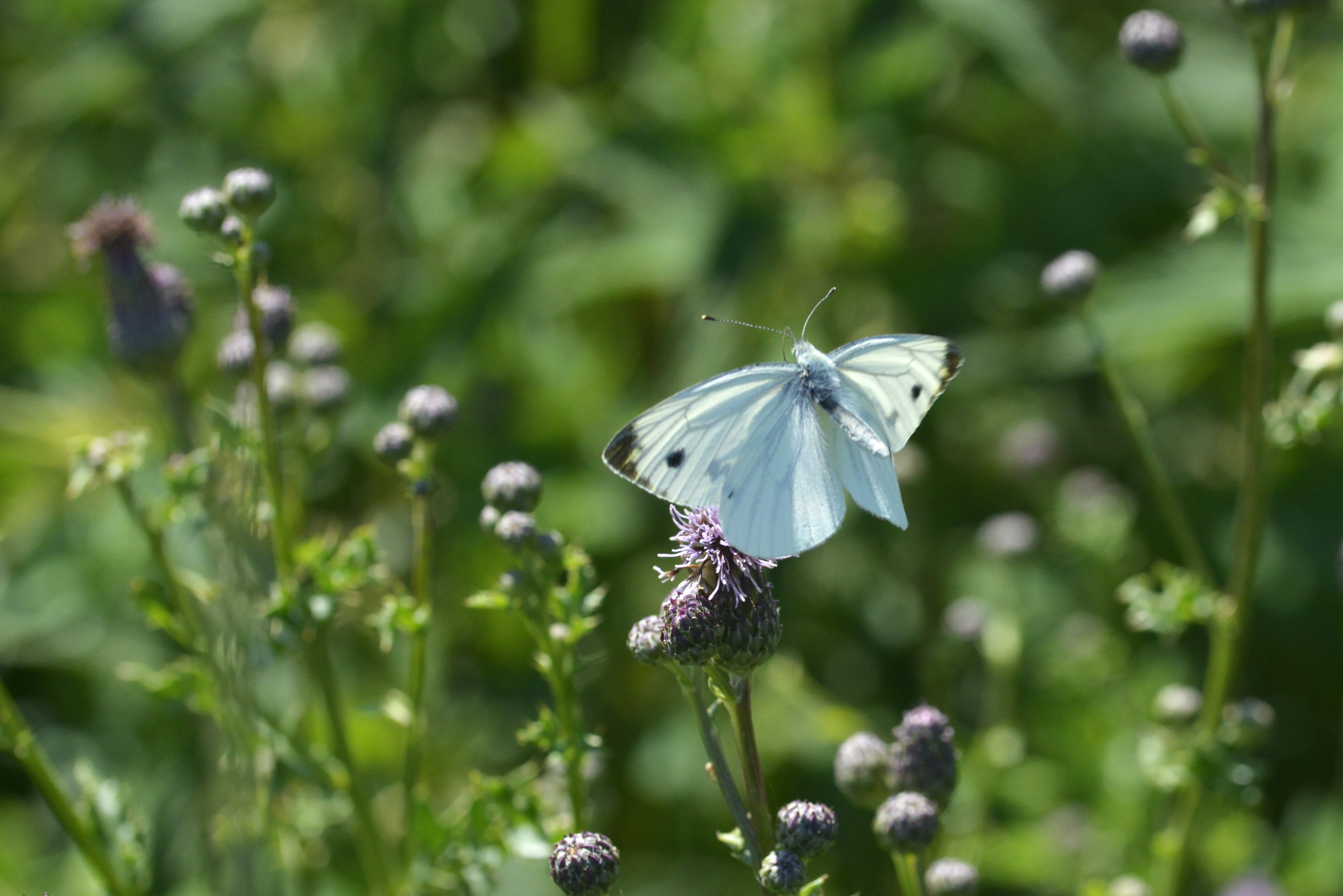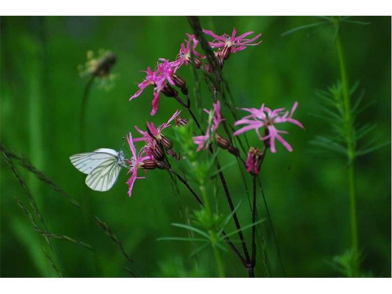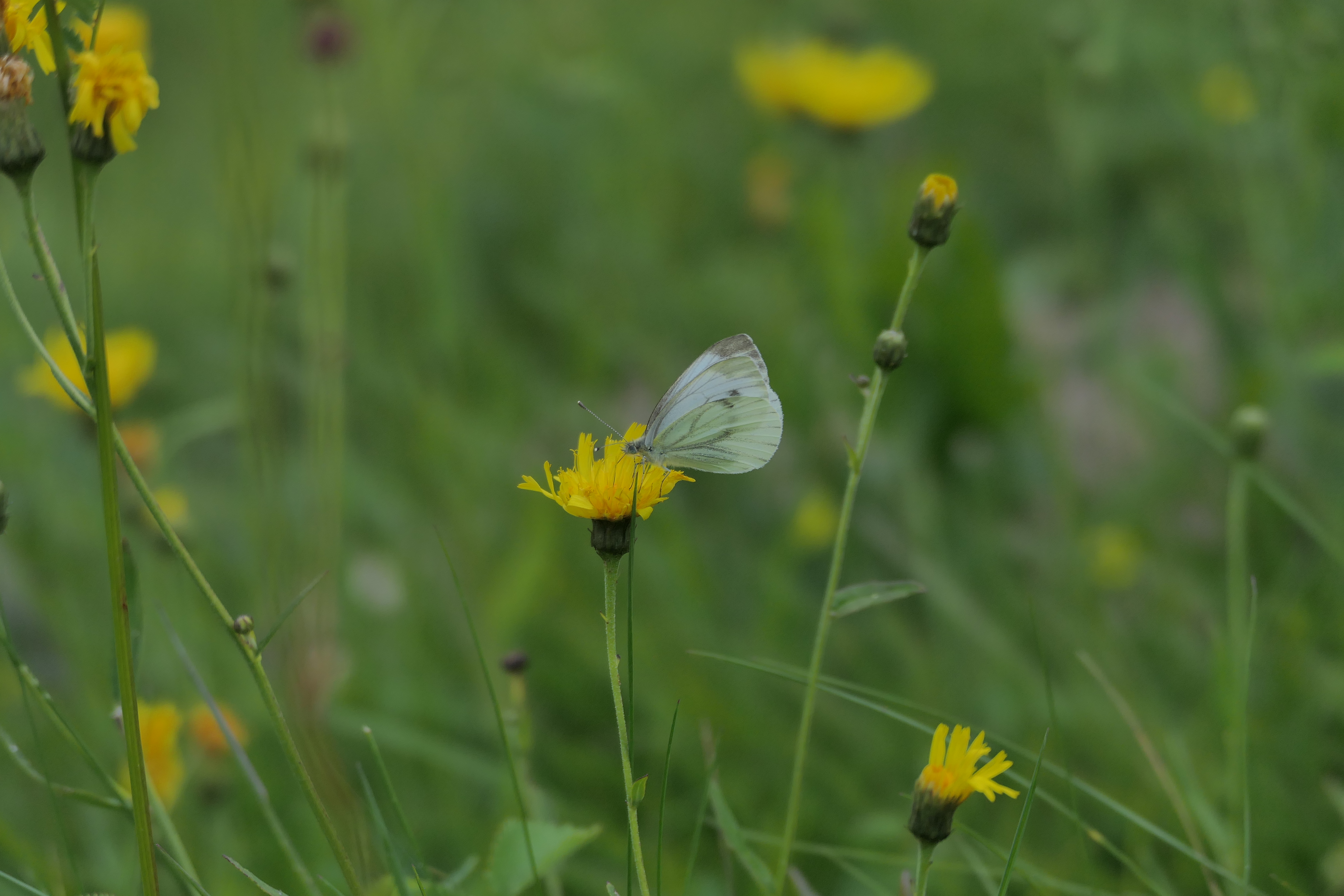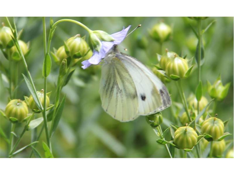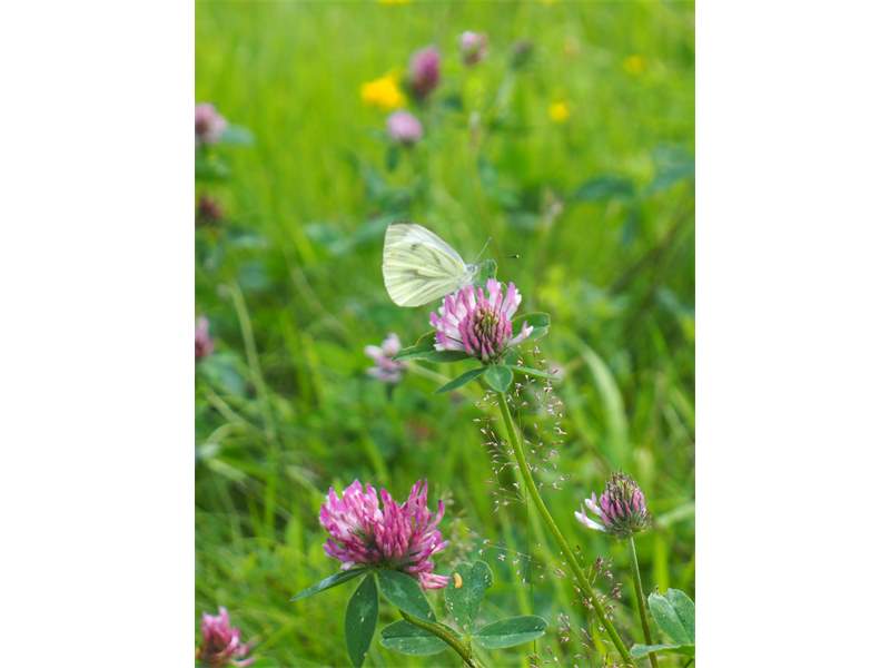 Grünaderweißling auf blütenreich bewachsener Brachfläche in Dresden Klotzsche, 22. Juni 2016