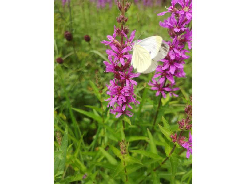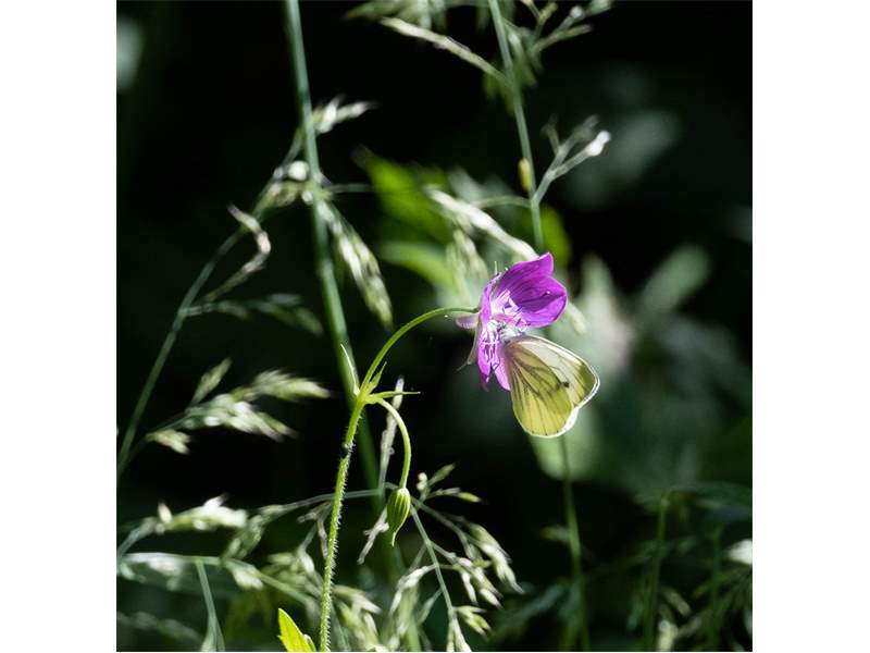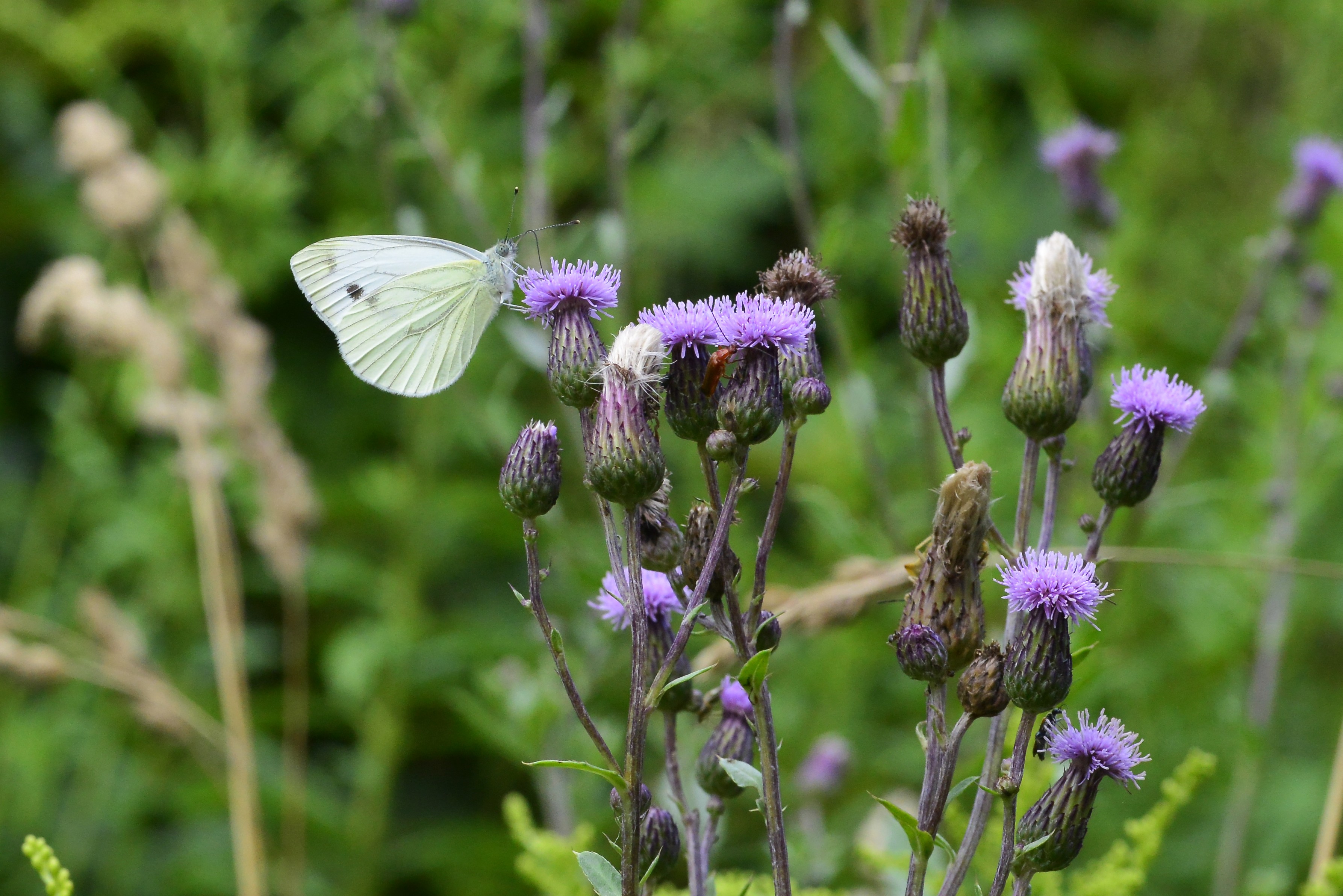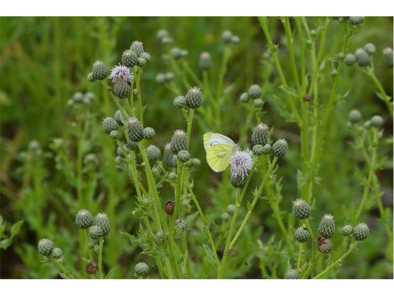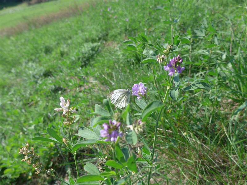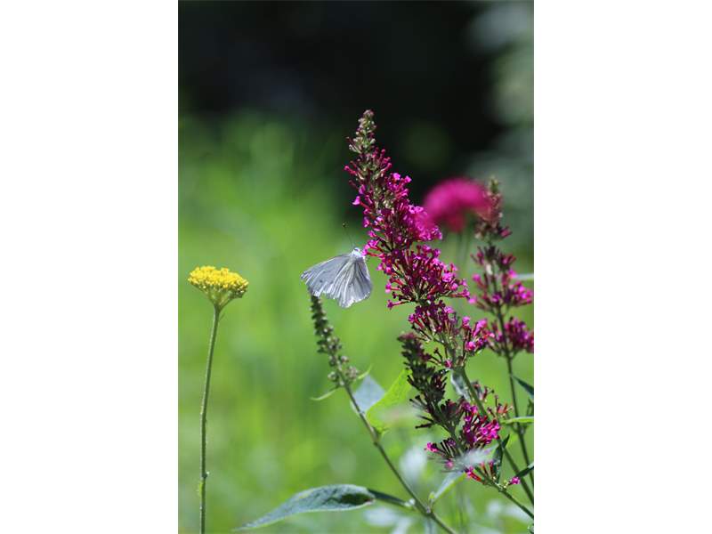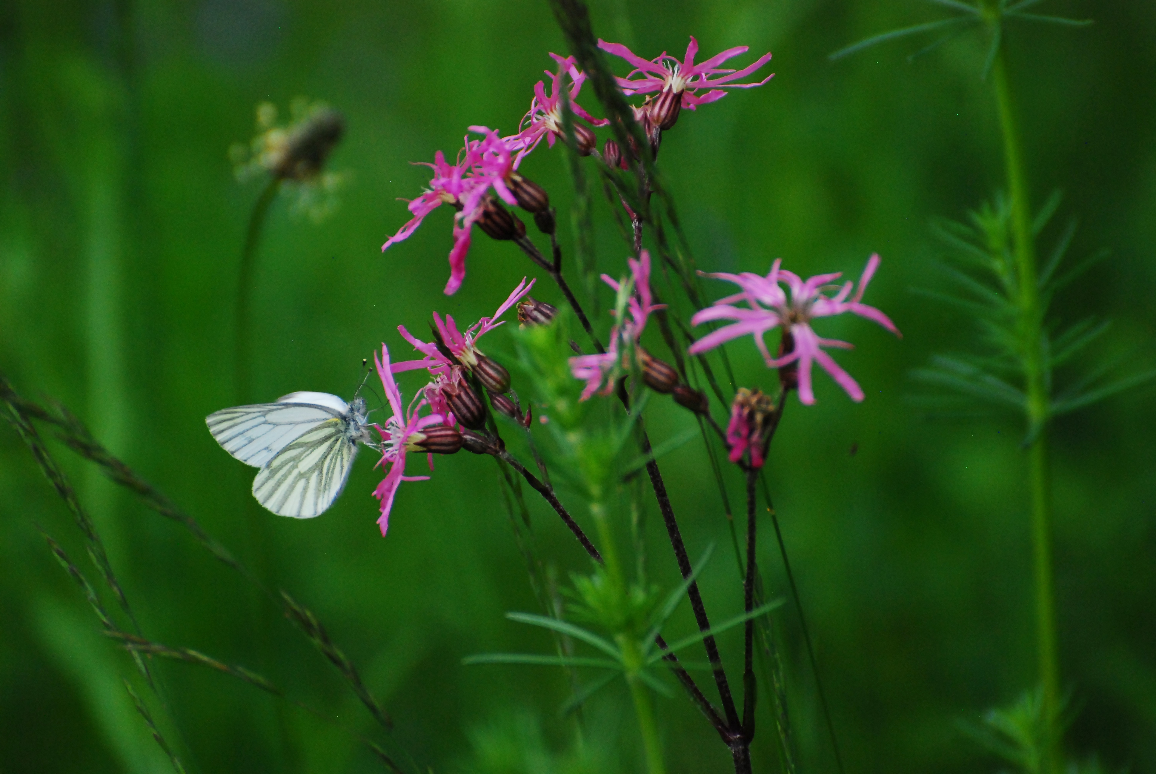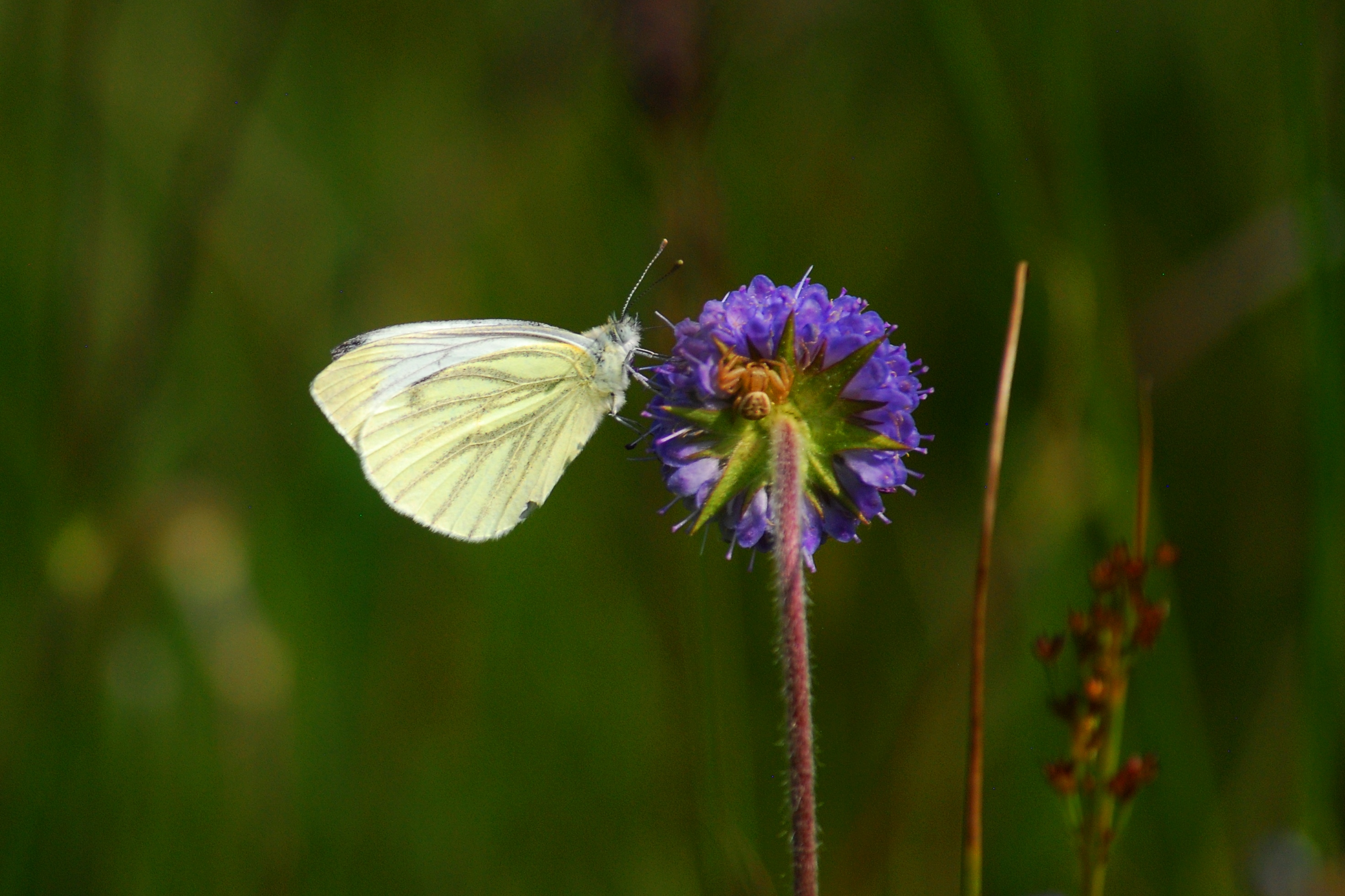 Grünaderweißling auf blütenreich bewachsener Brachfläche in Dresden Klotzsche, 22. Juni 2016