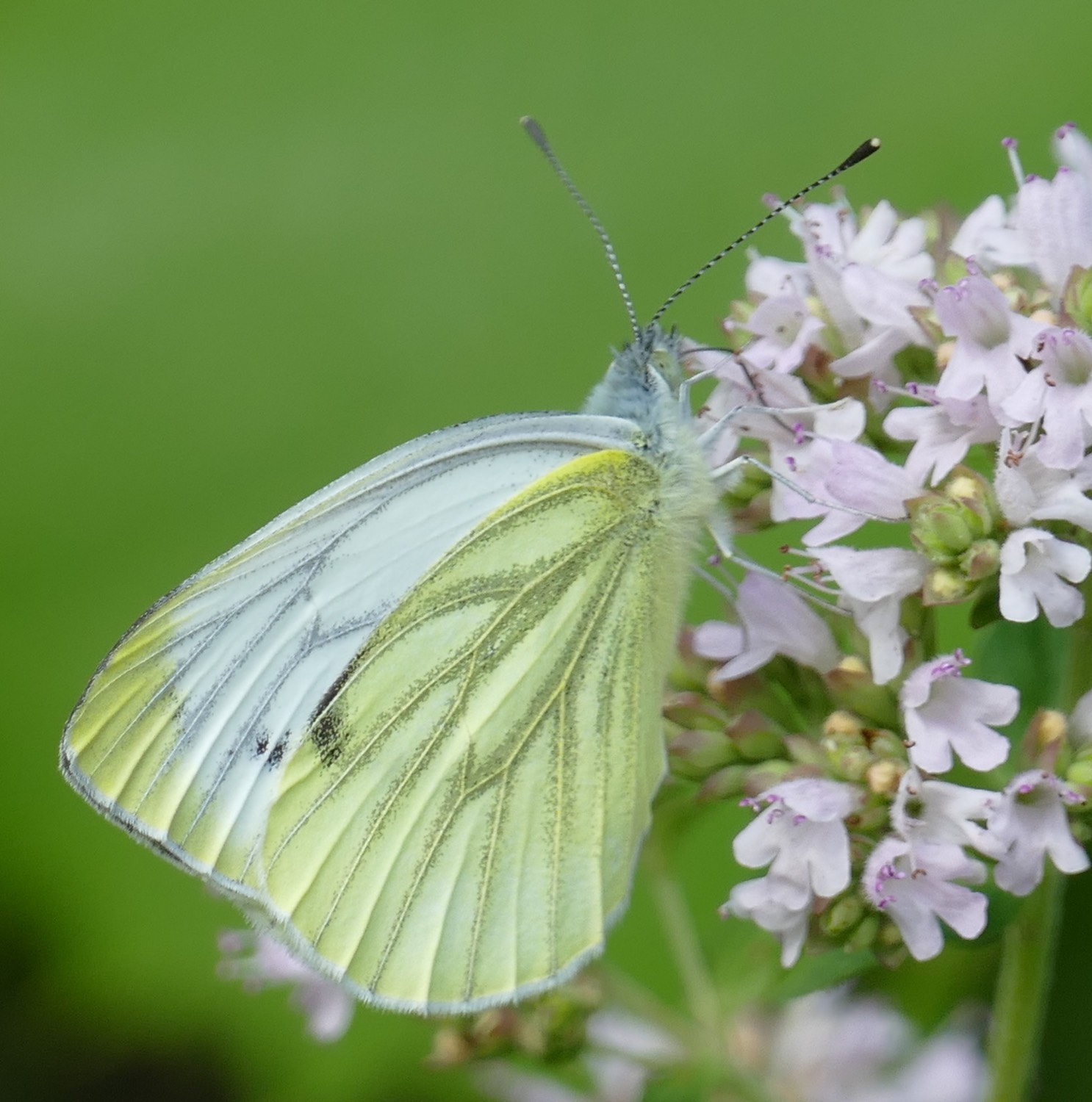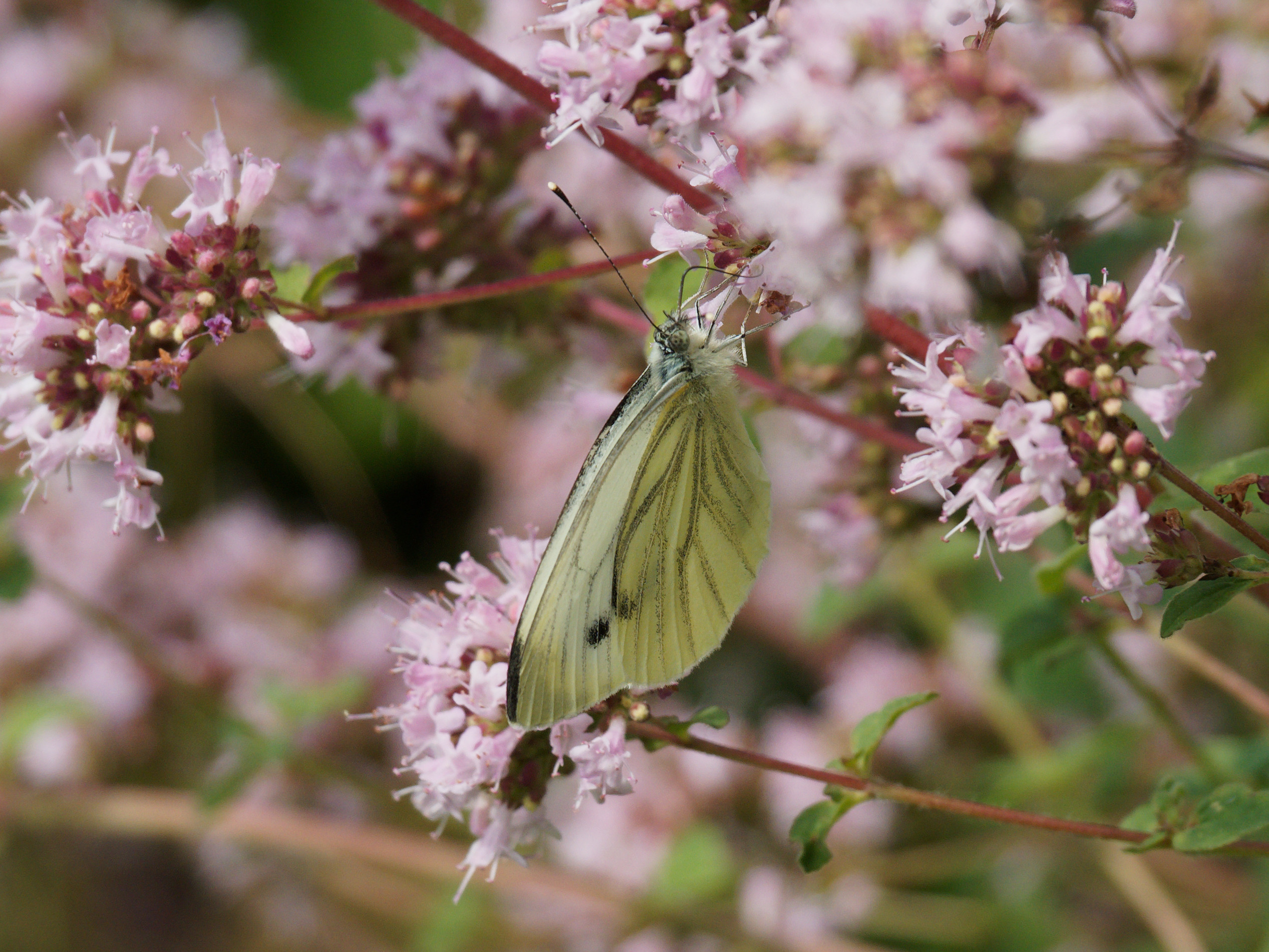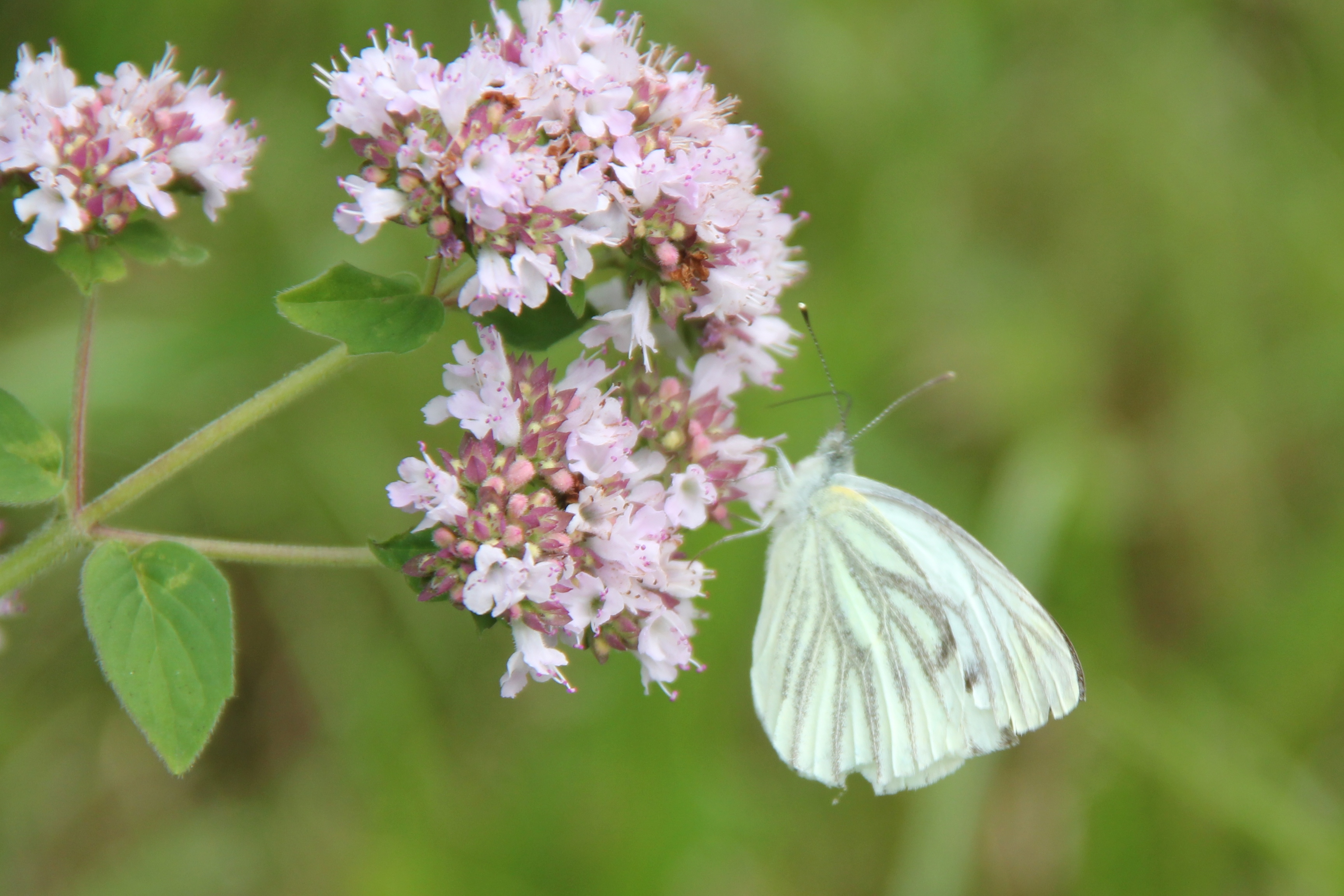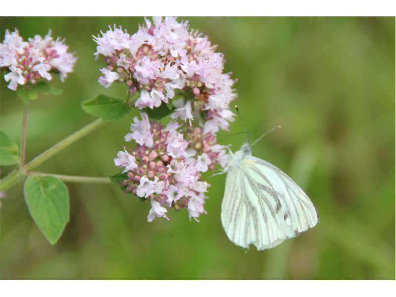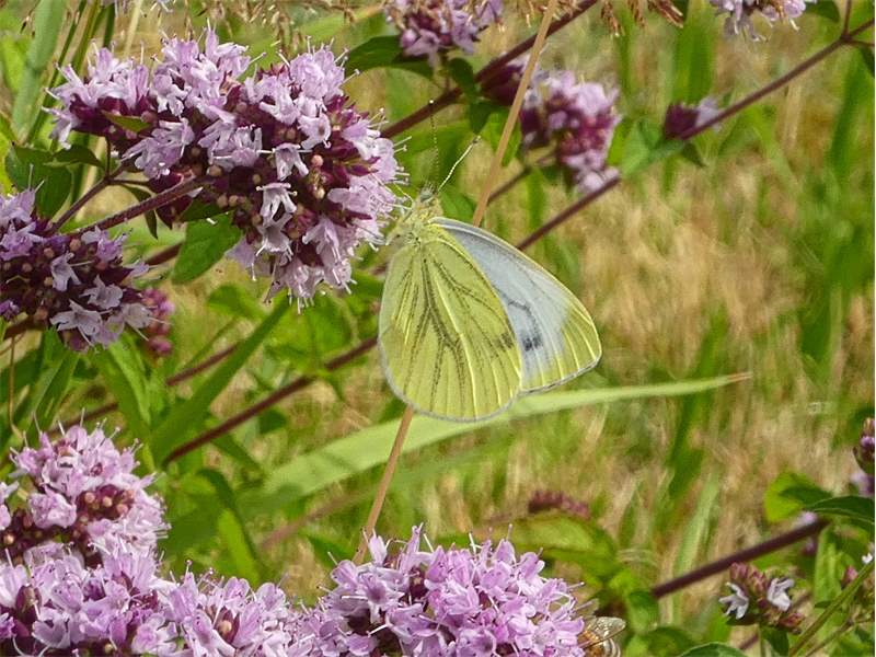 Grünaderweißling an Gewöhnlichem Dost in Großdrebnitz, Juli 2014