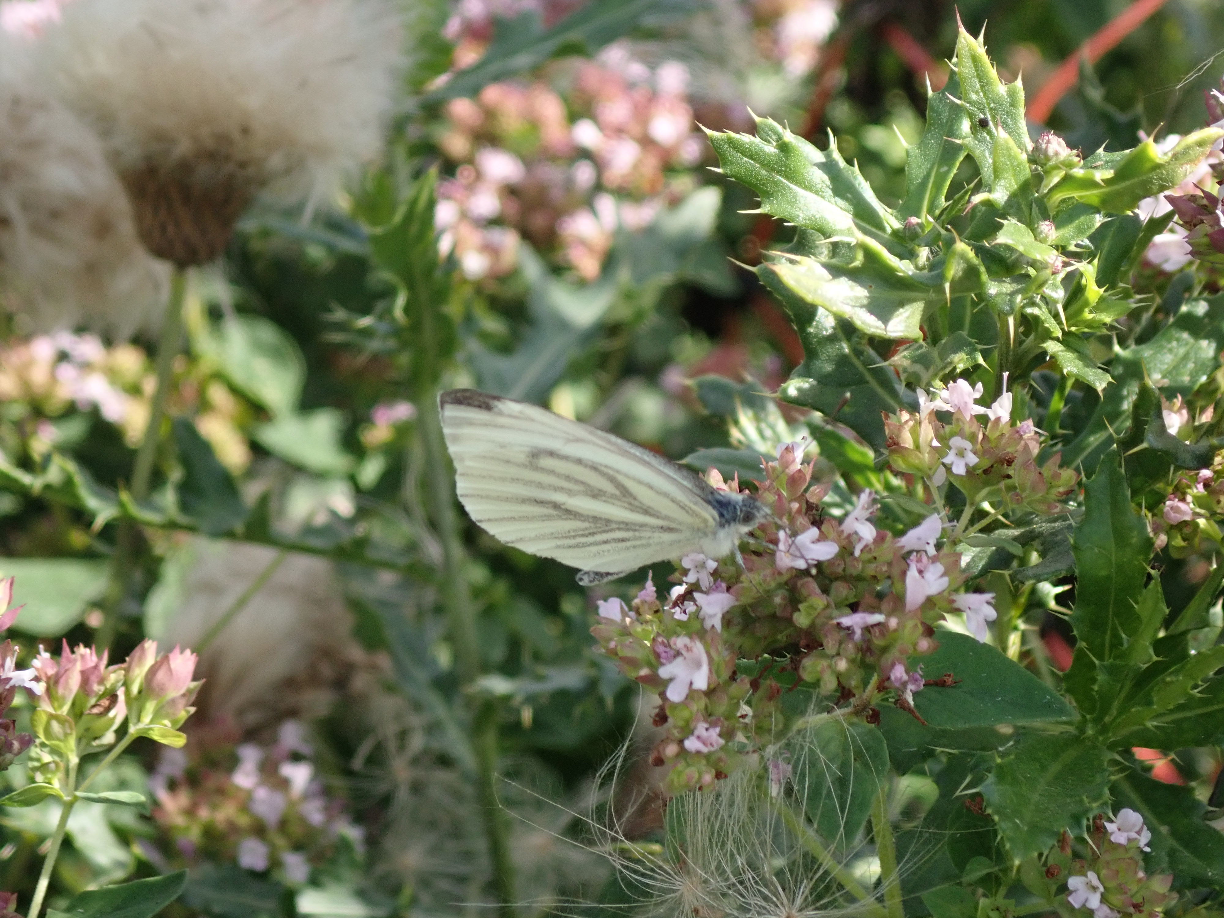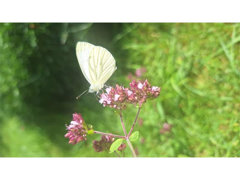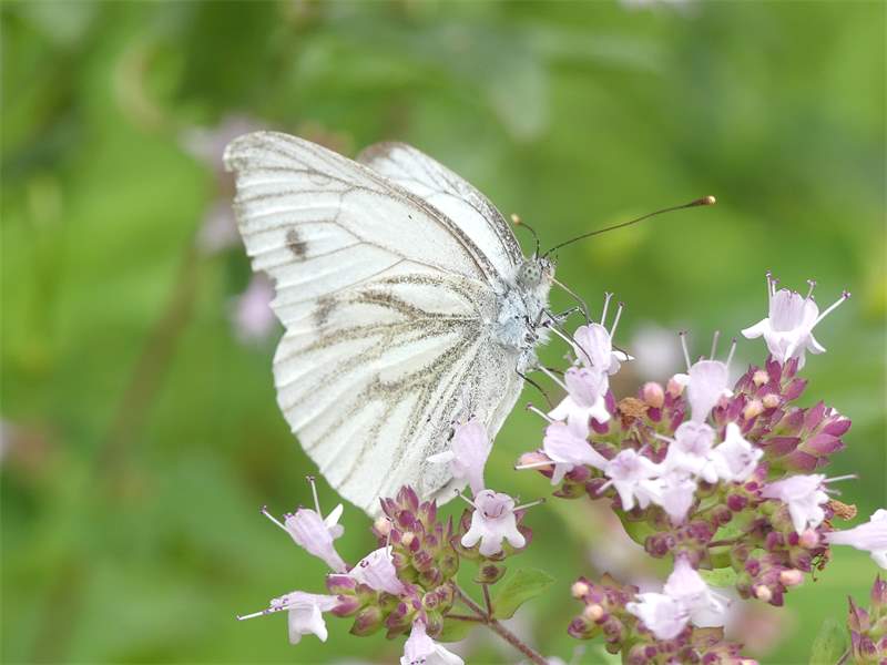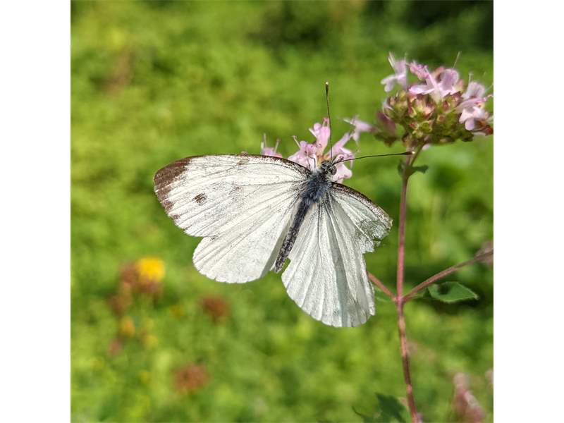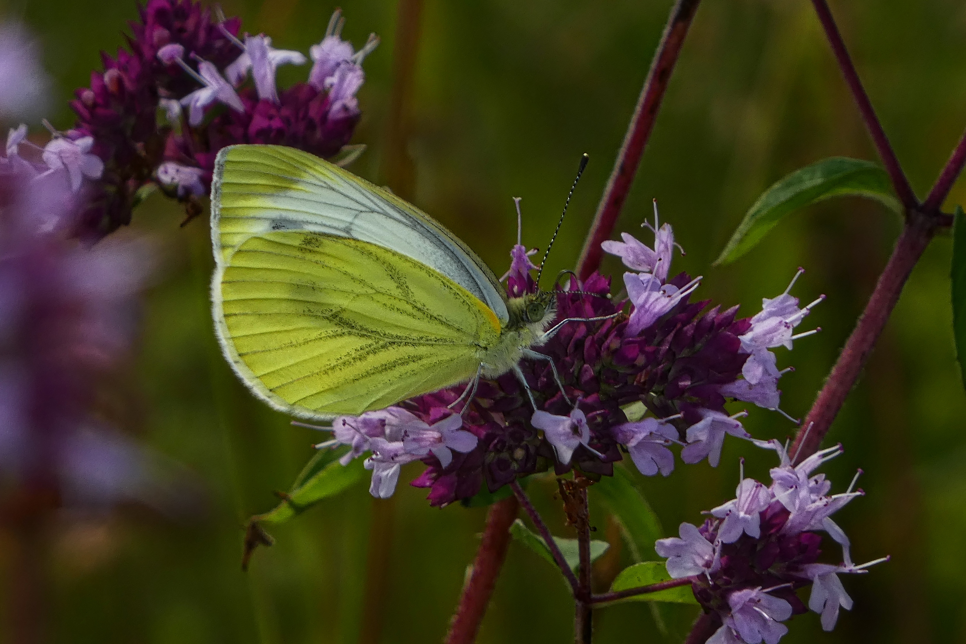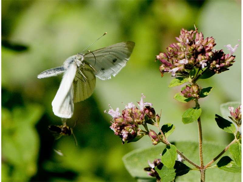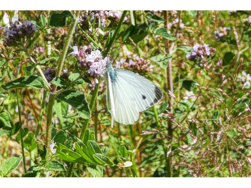 Grünaderweißling an Gewöhnlichem Dost in Großdrebnitz, Juli 2014