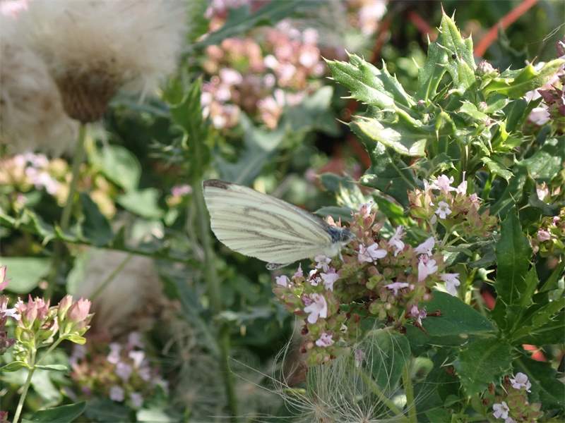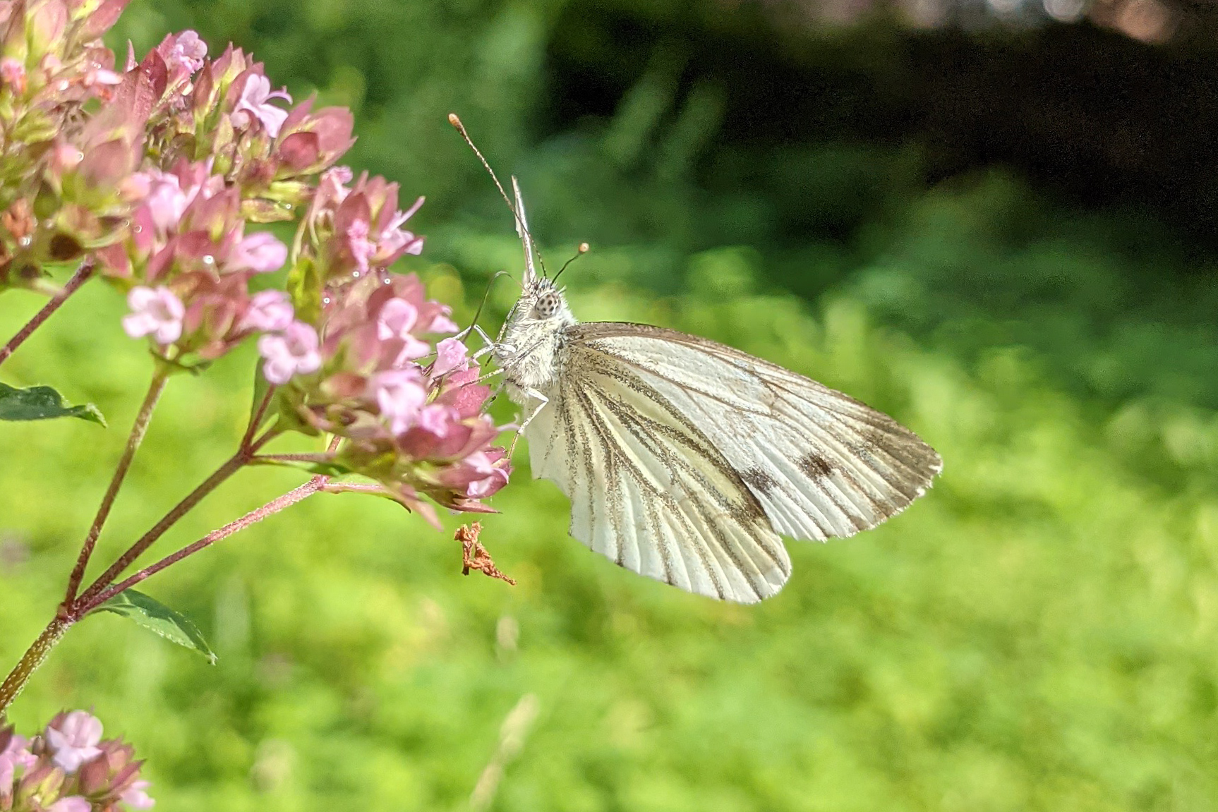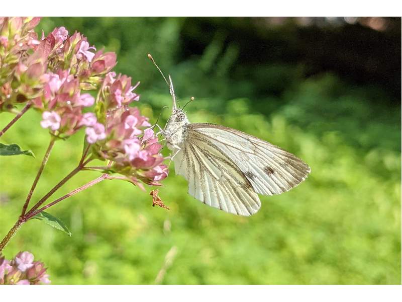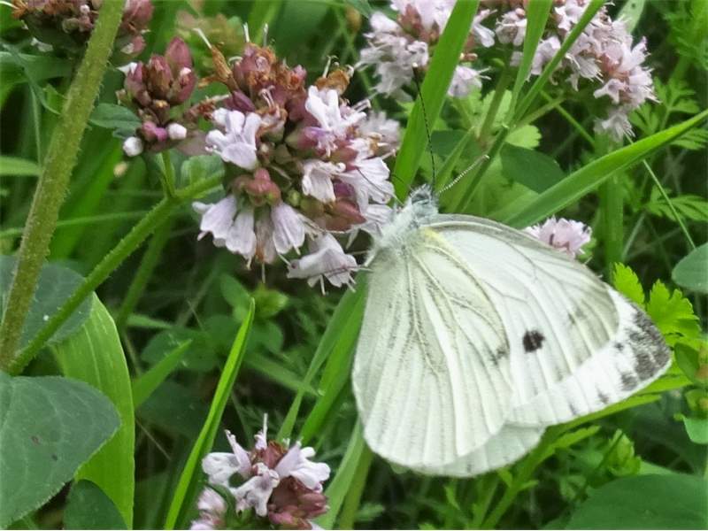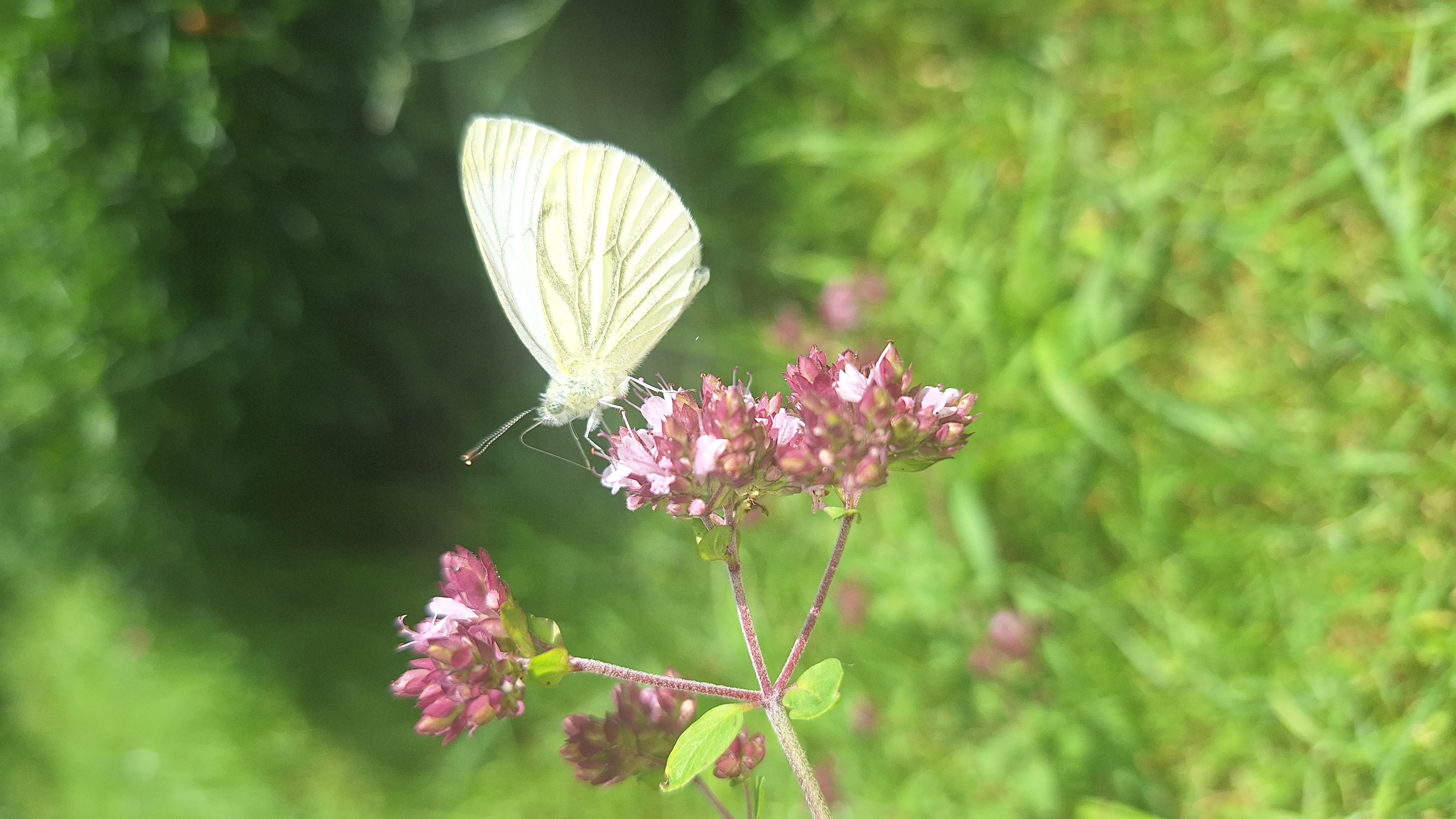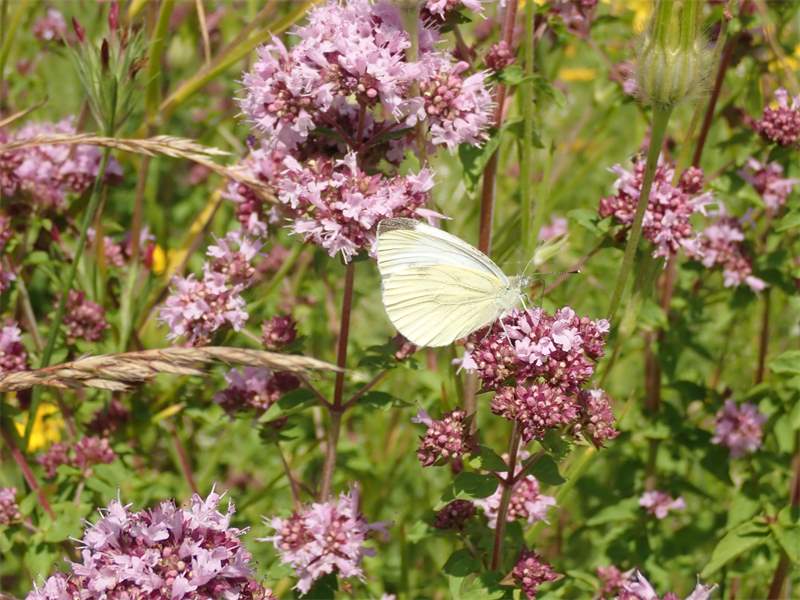 Grünaderweißling an Gewöhnlichem Dost in Großdrebnitz, Juli 2014