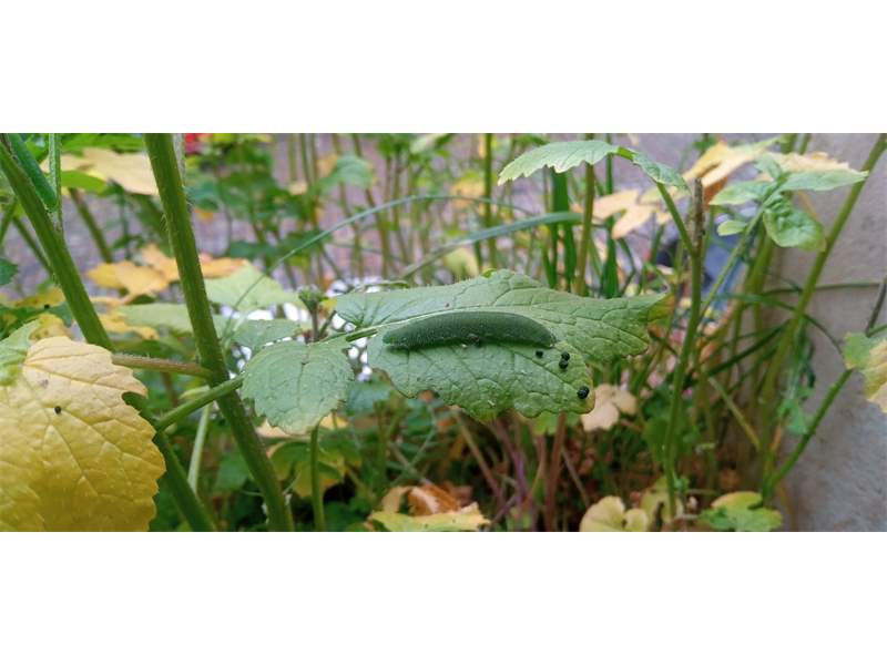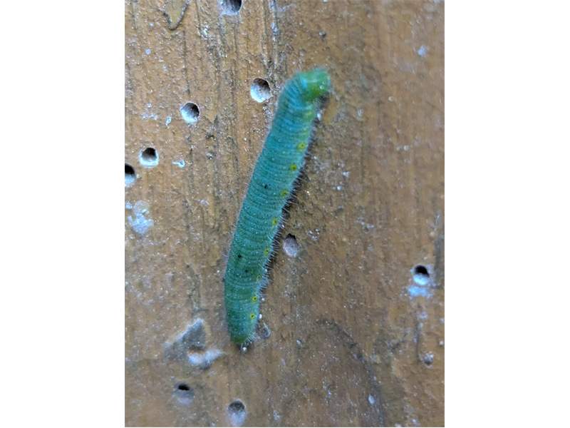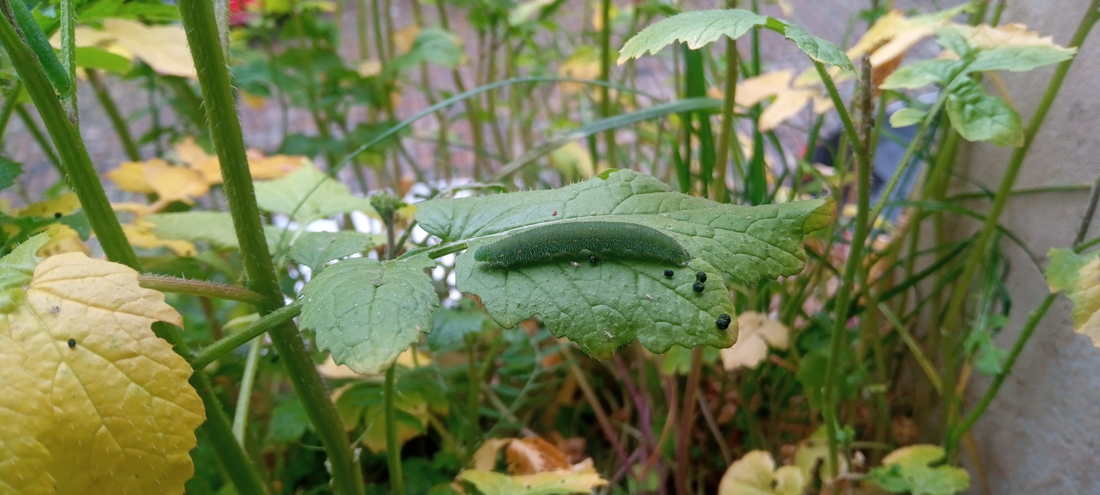 Larve vom Grünaderweißling am 31.08.2009 in Radebeul-Zitzschewig