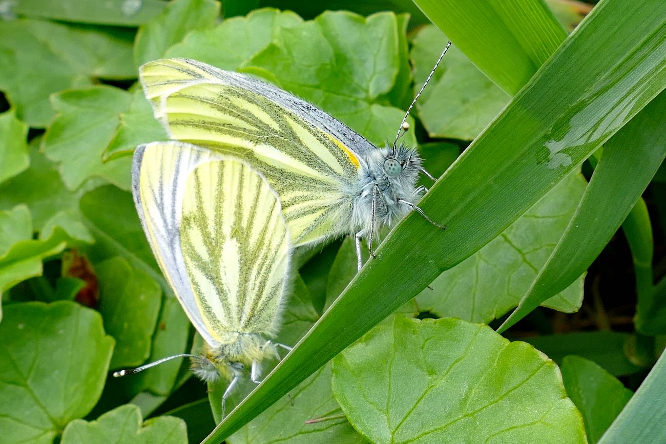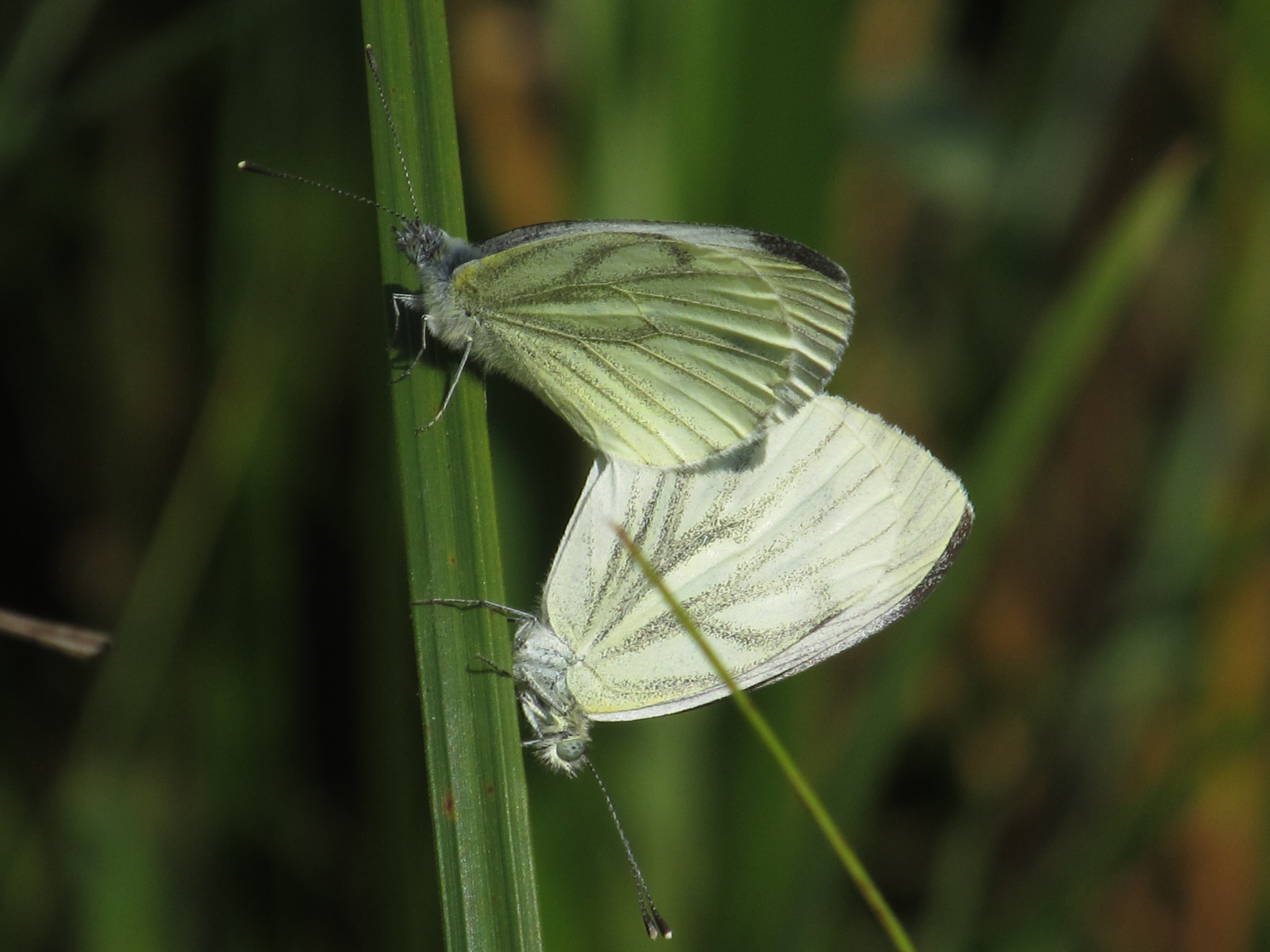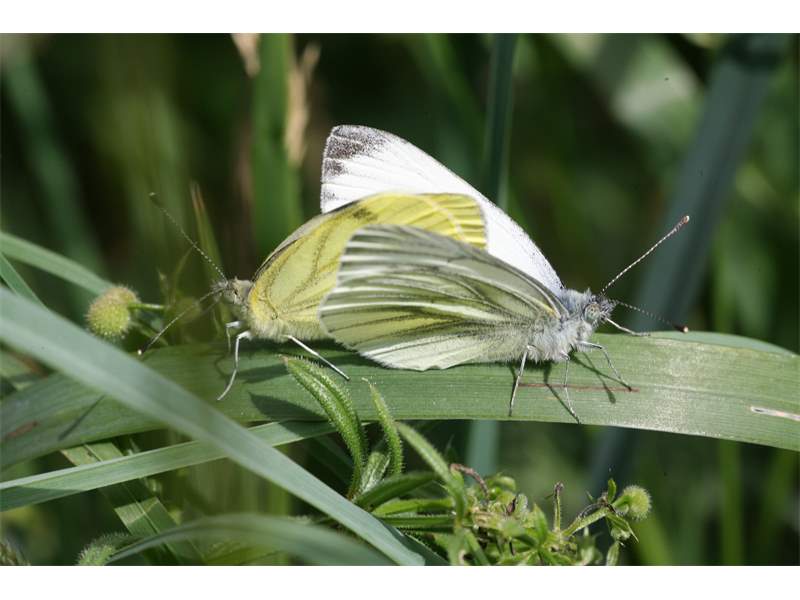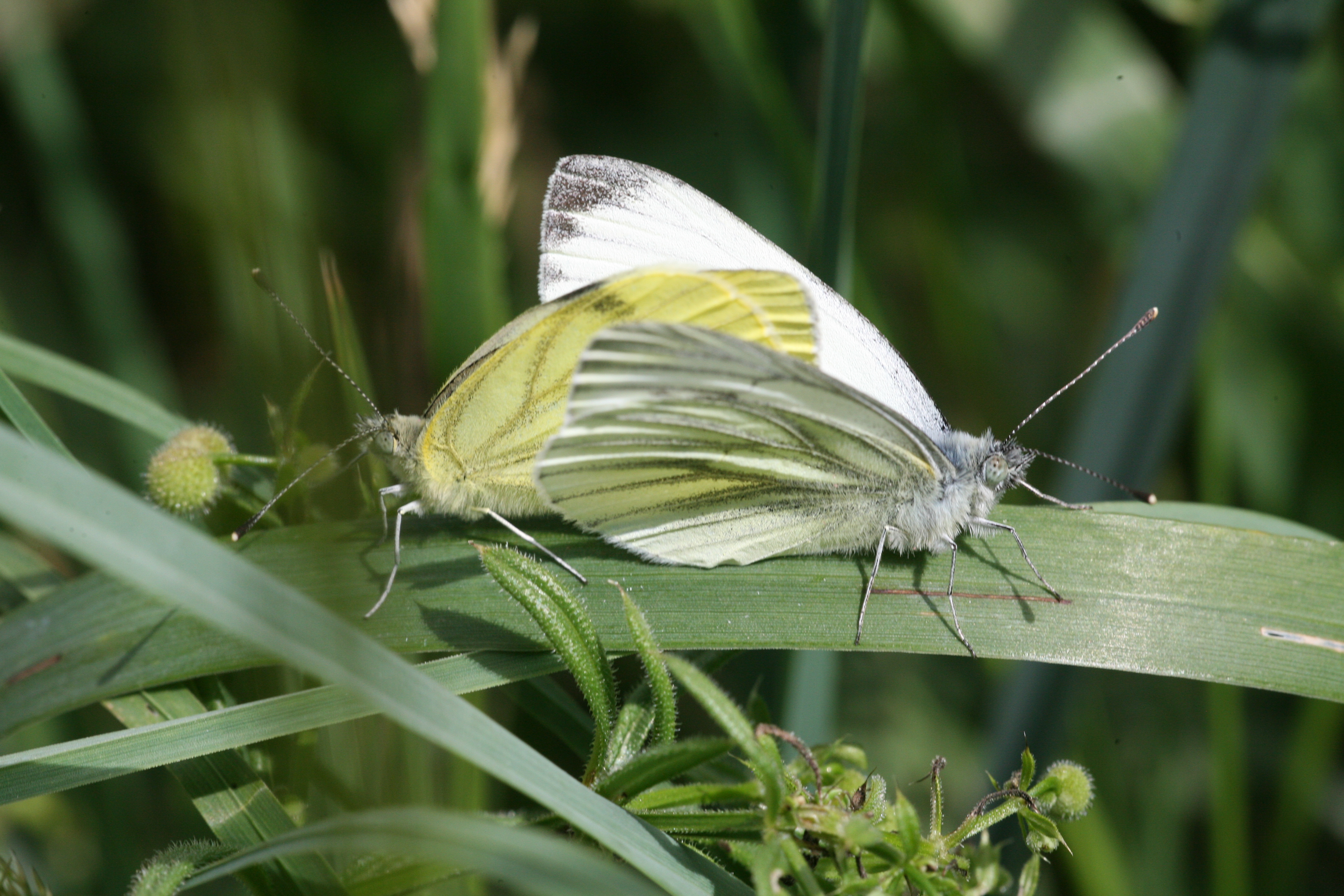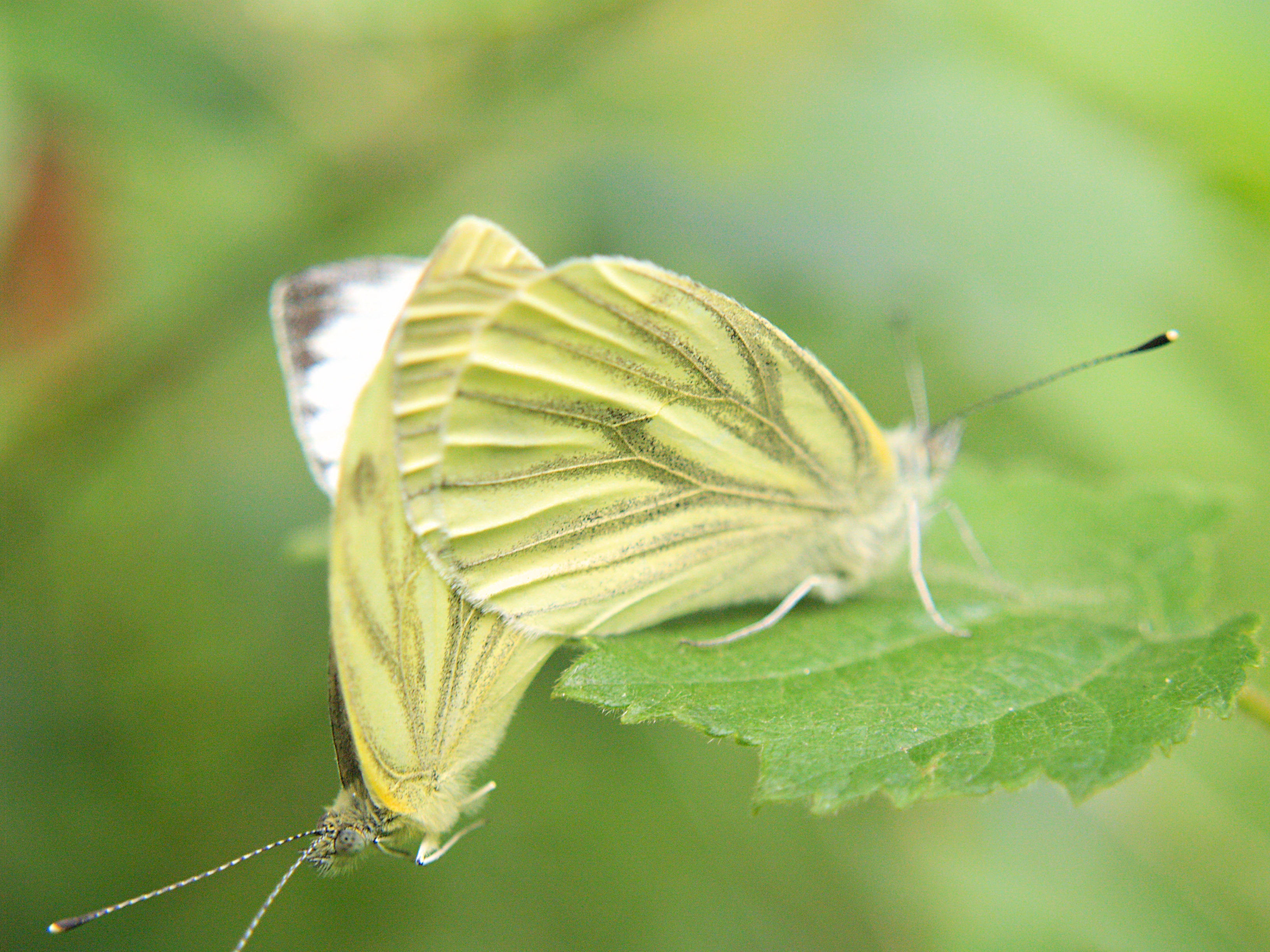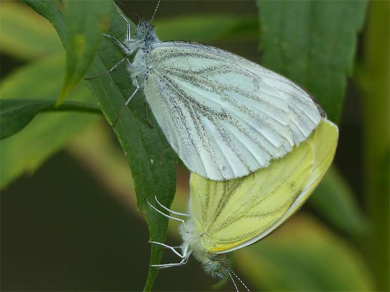 Männchen und Weibchen des Grünaderweißlings beim Paarungsspiel. Dresdner Heller, August 2014