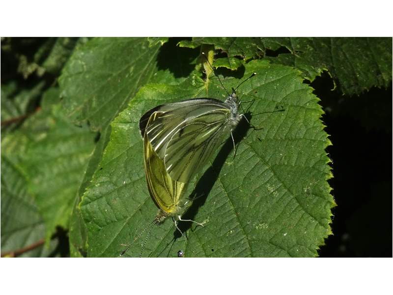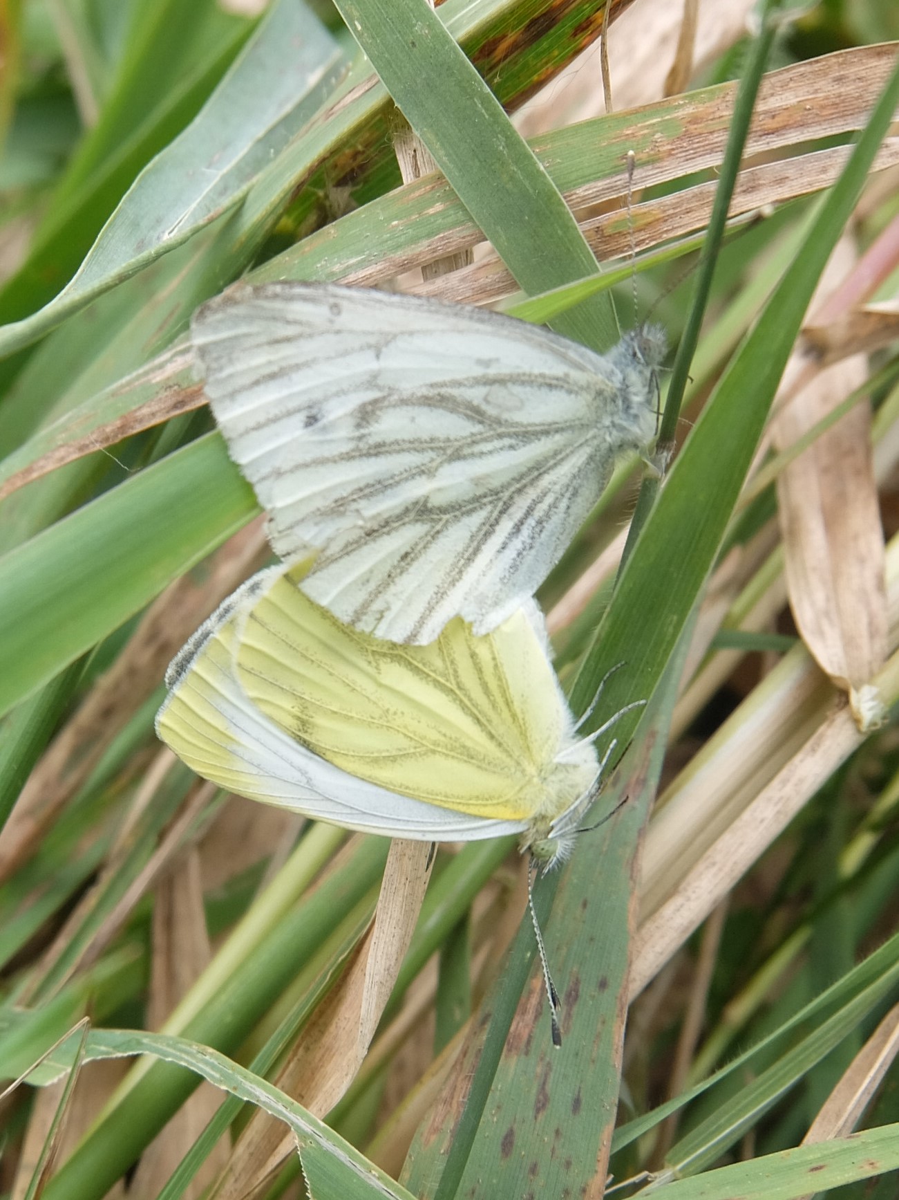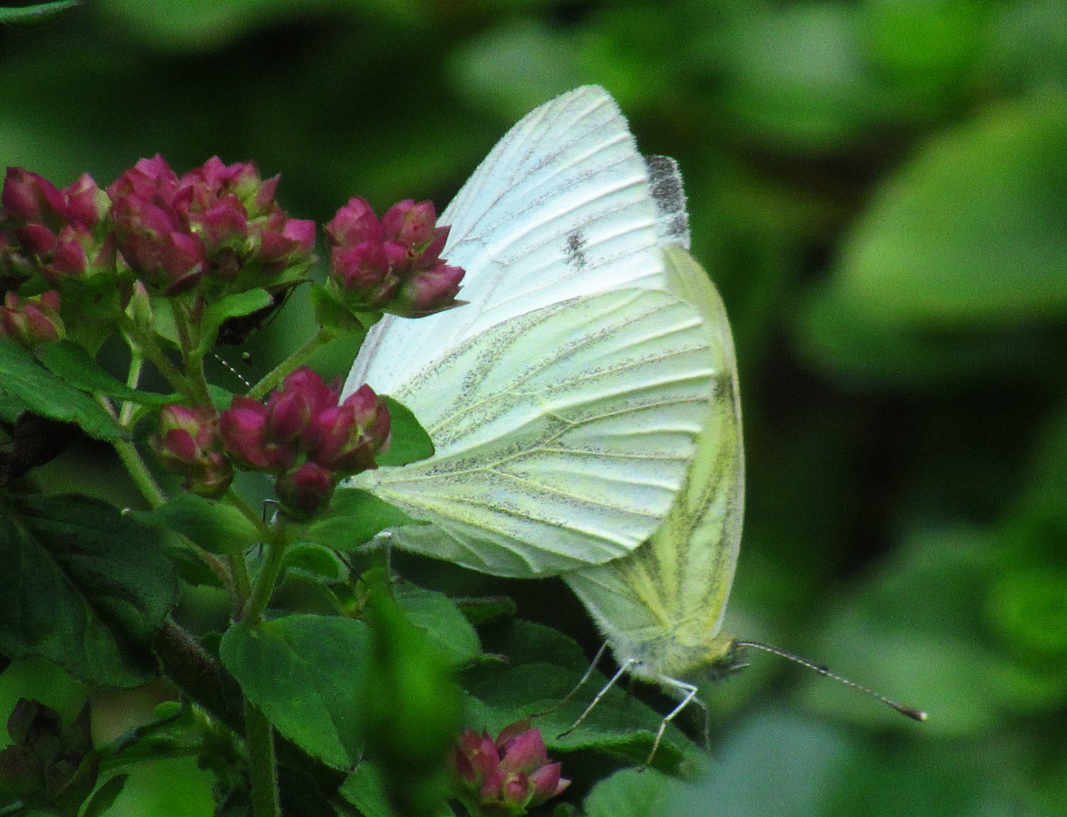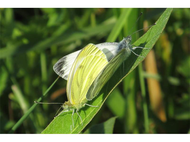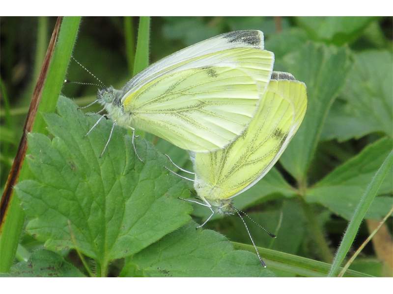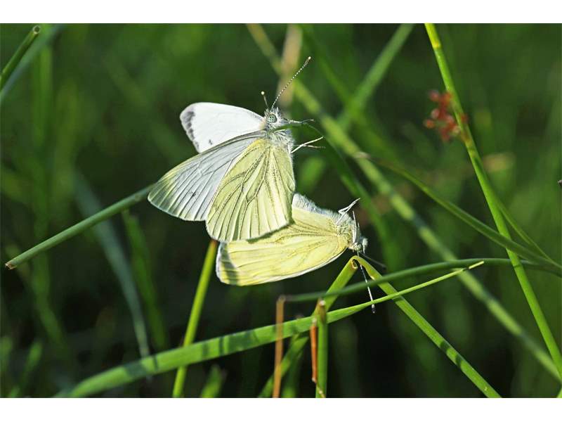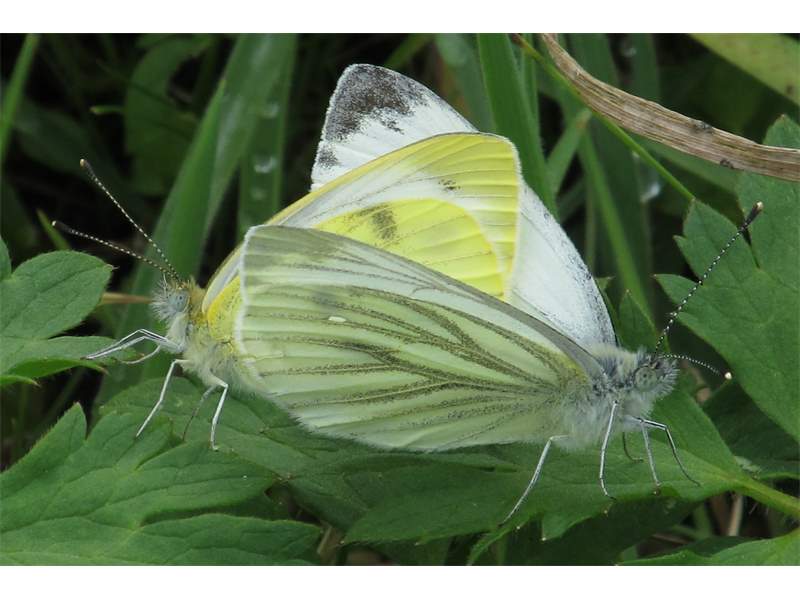 Männchen und Weibchen des Grünaderweißlings beim Paarungsspiel. Dresdner Heller, August 2014