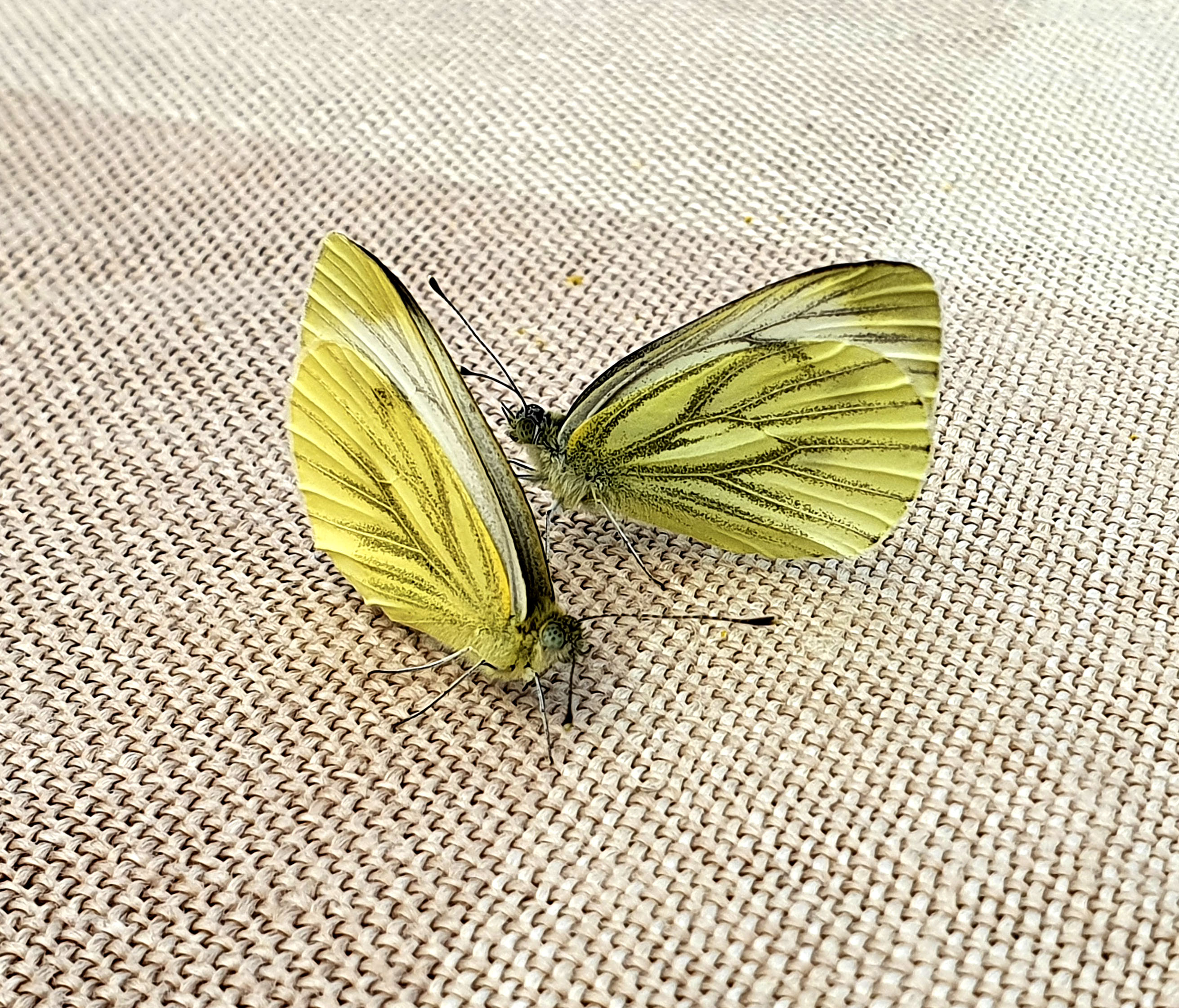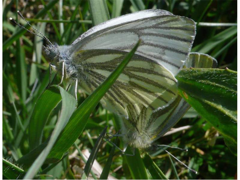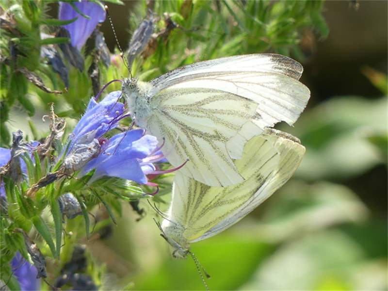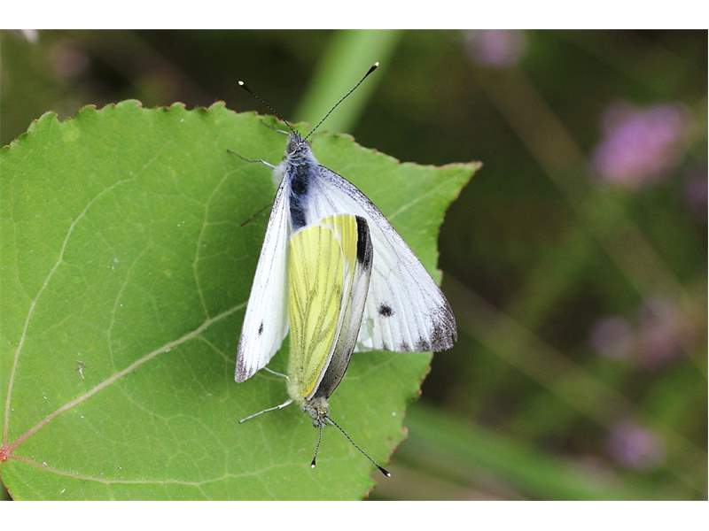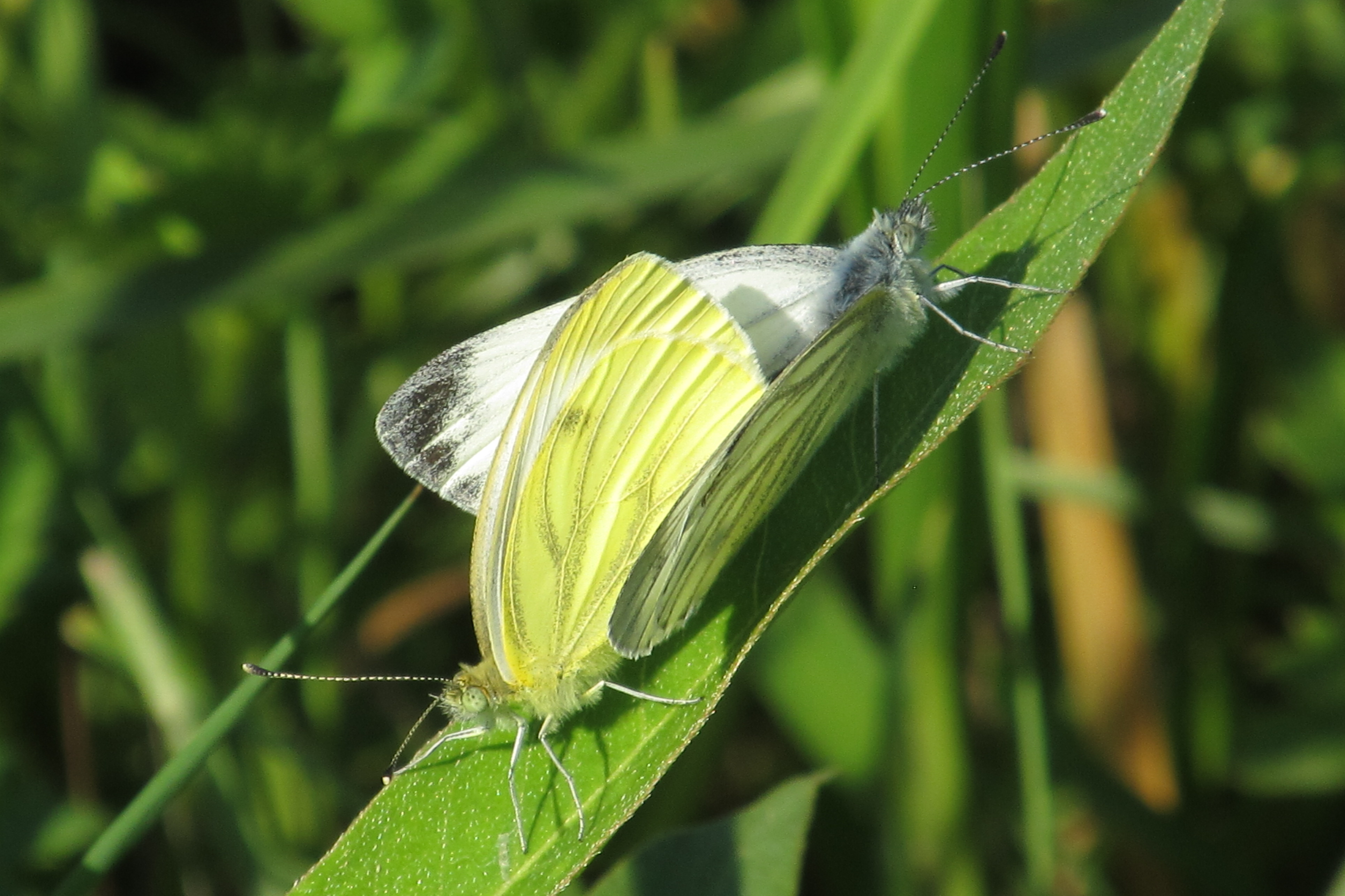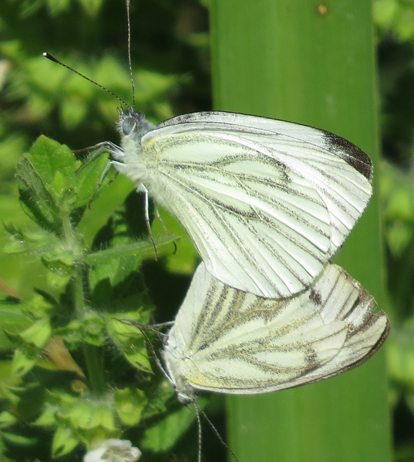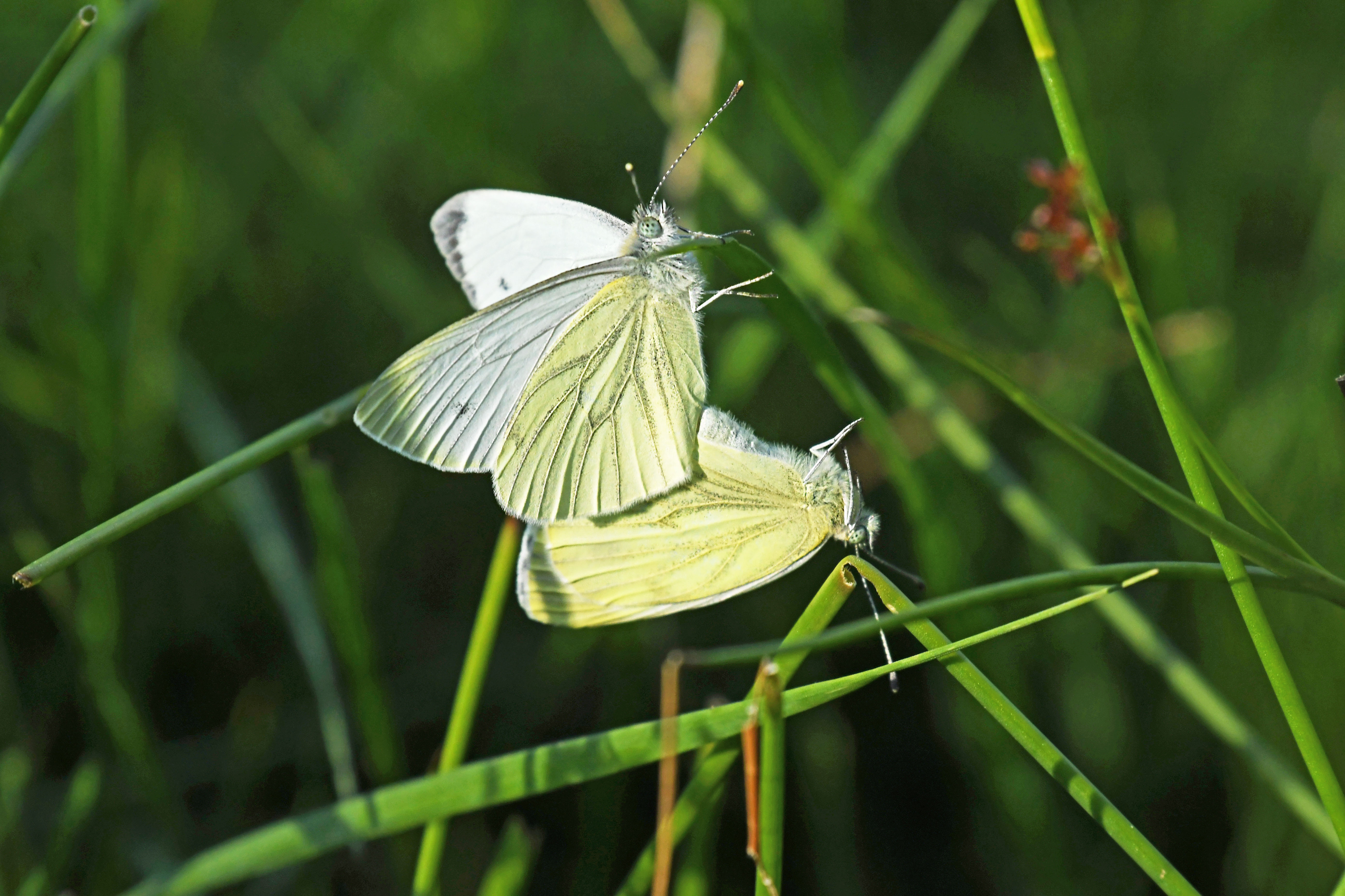 Männchen und Weibchen des Grünaderweißlings beim Paarungsspiel. Dresdner Heller, August 2014