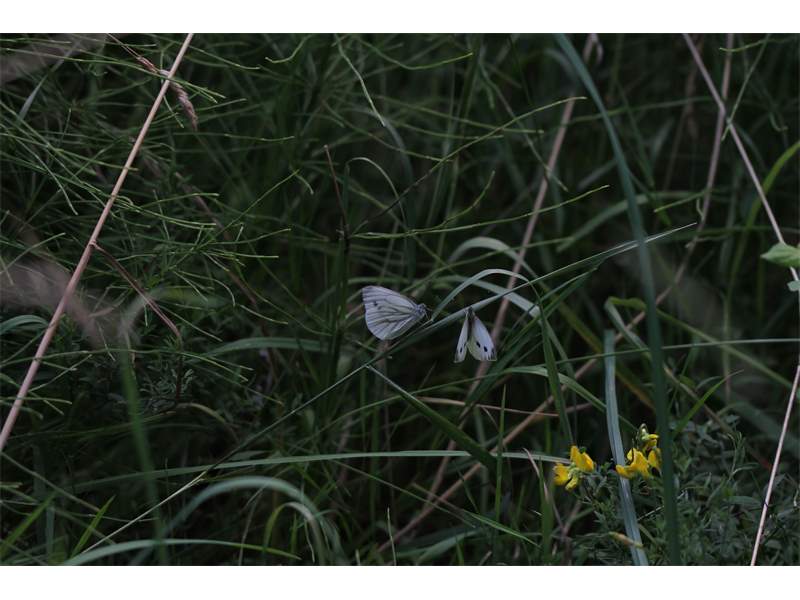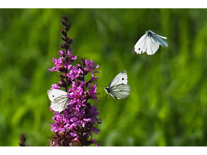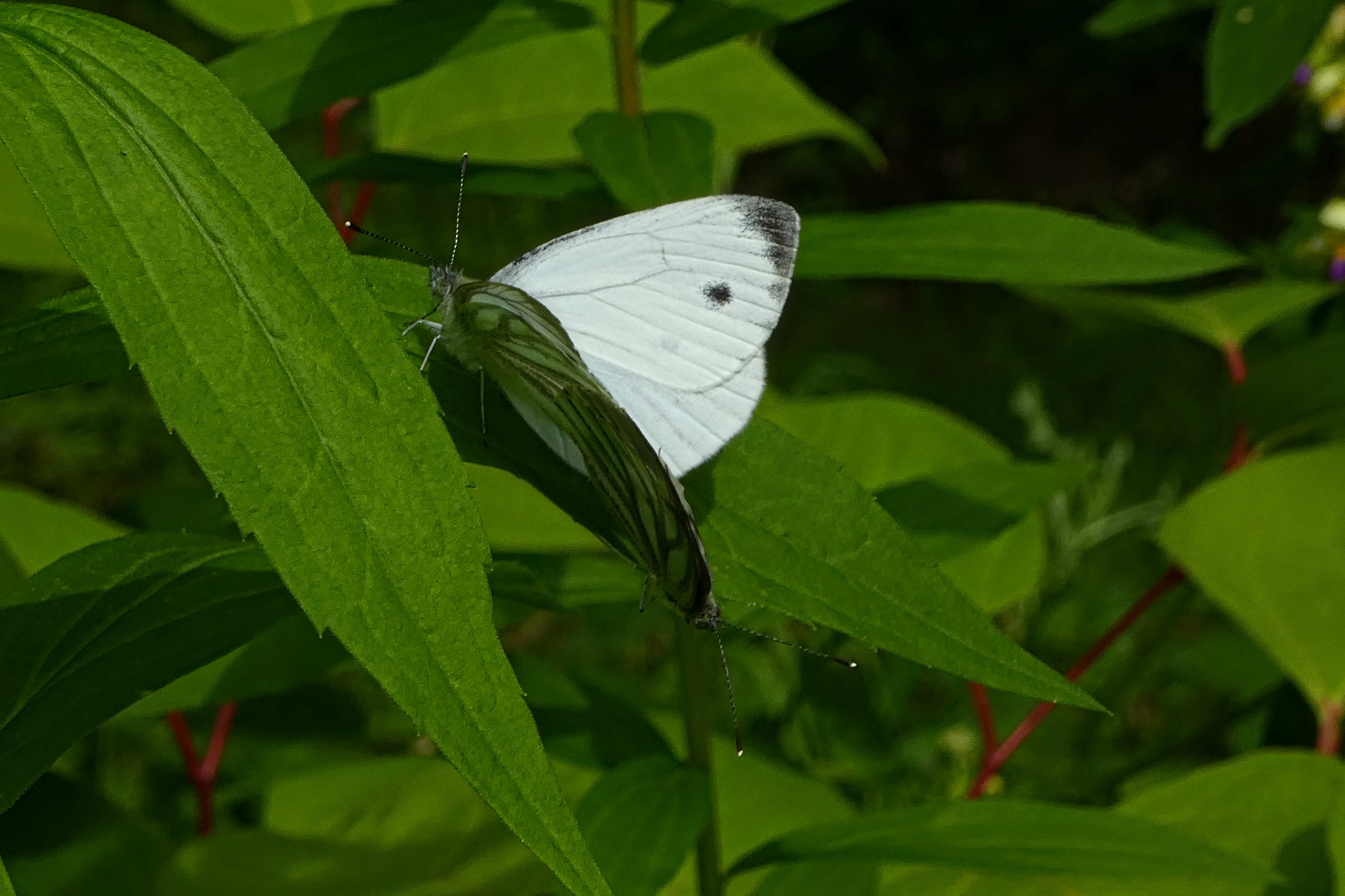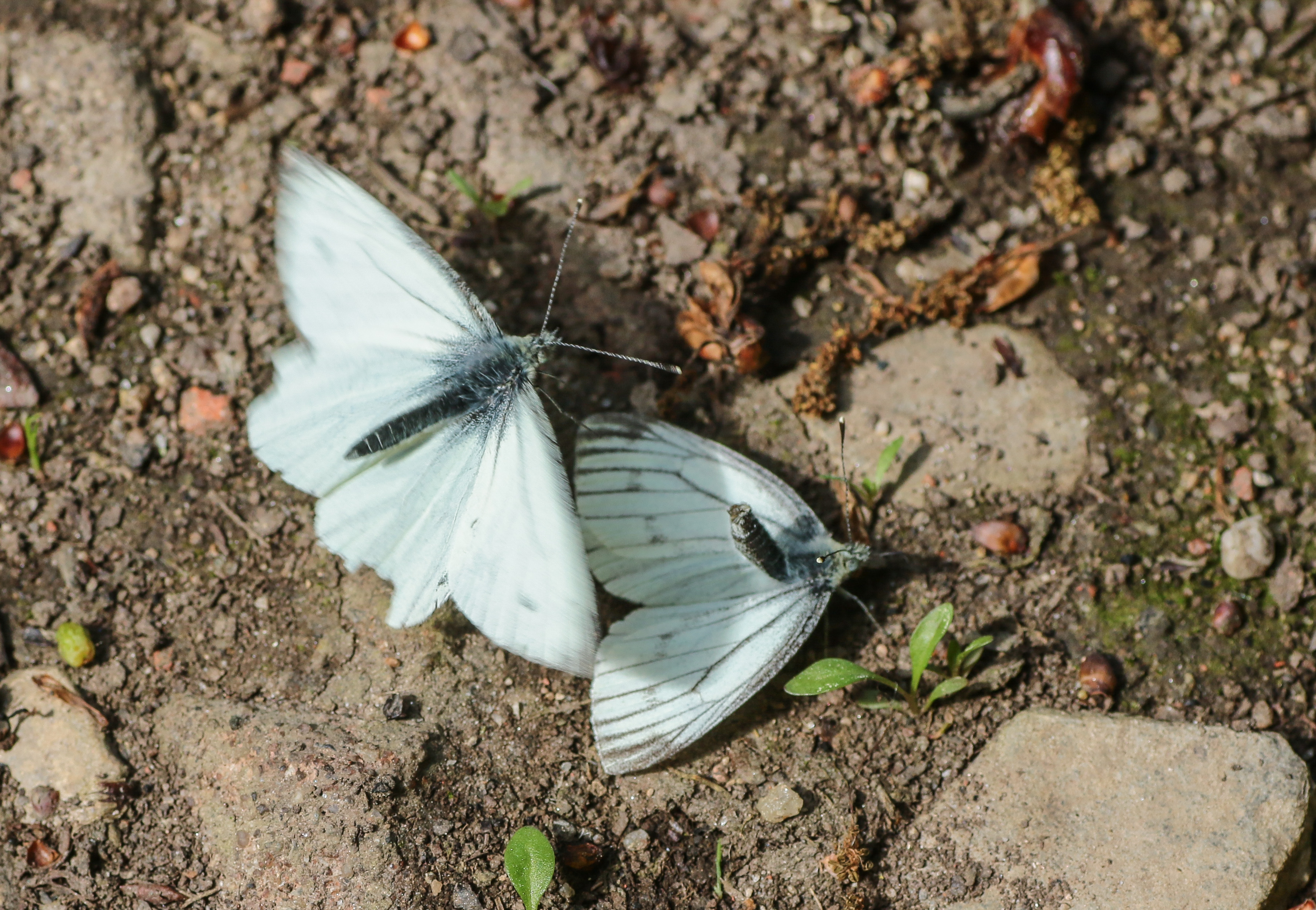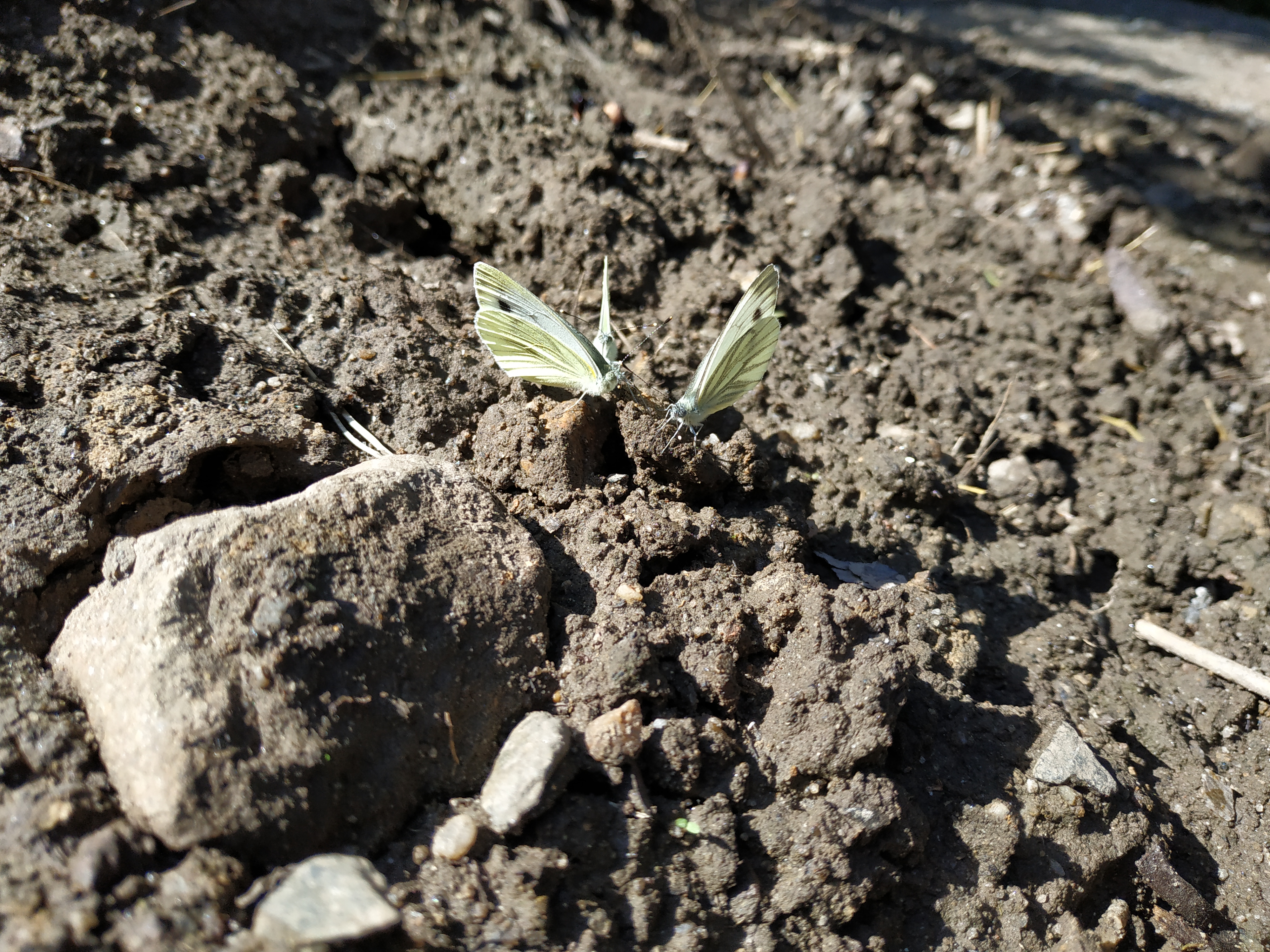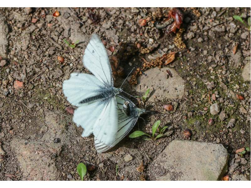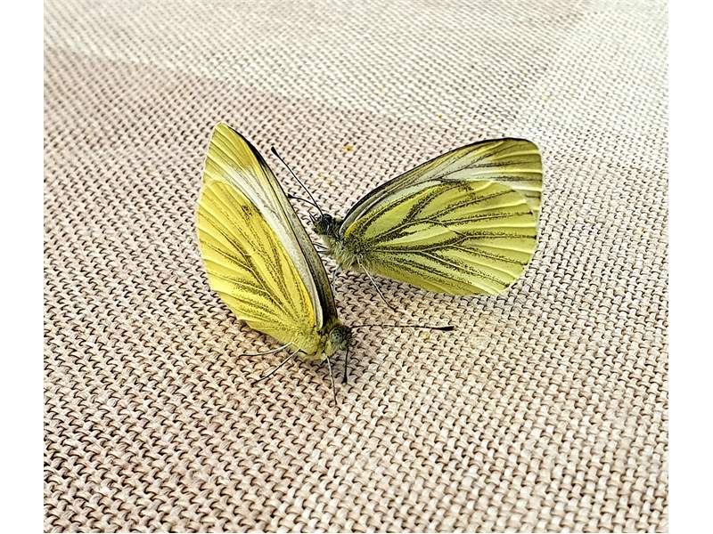 Männchen und Weibchen des Grünaderweißlings beim Paarungsspiel. Dresdner Heller, August 2014