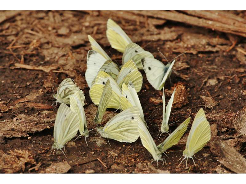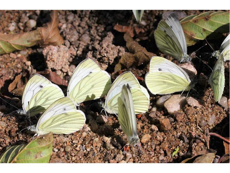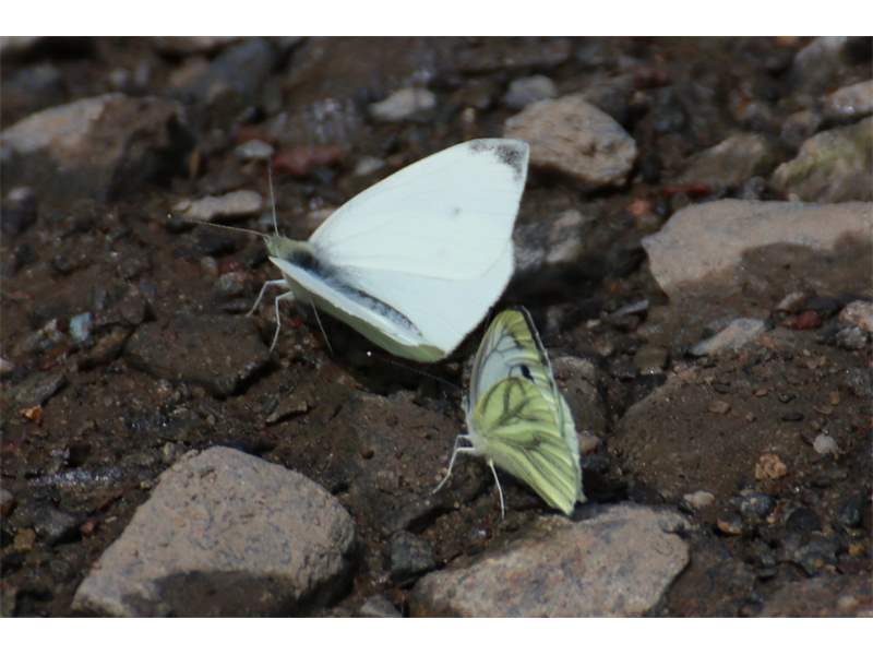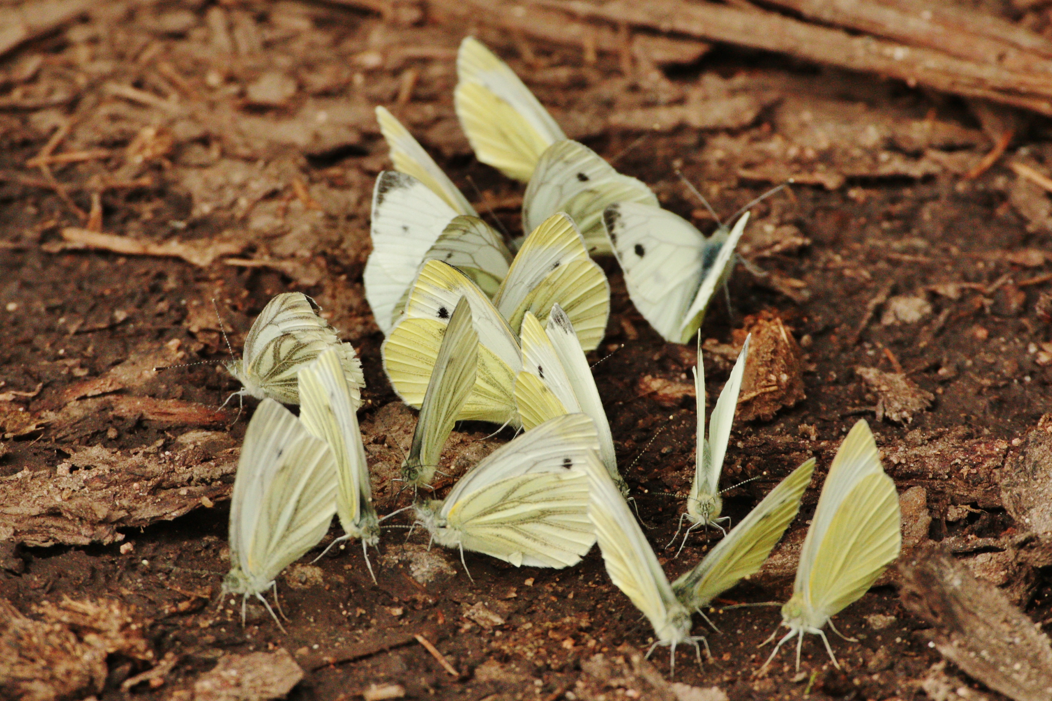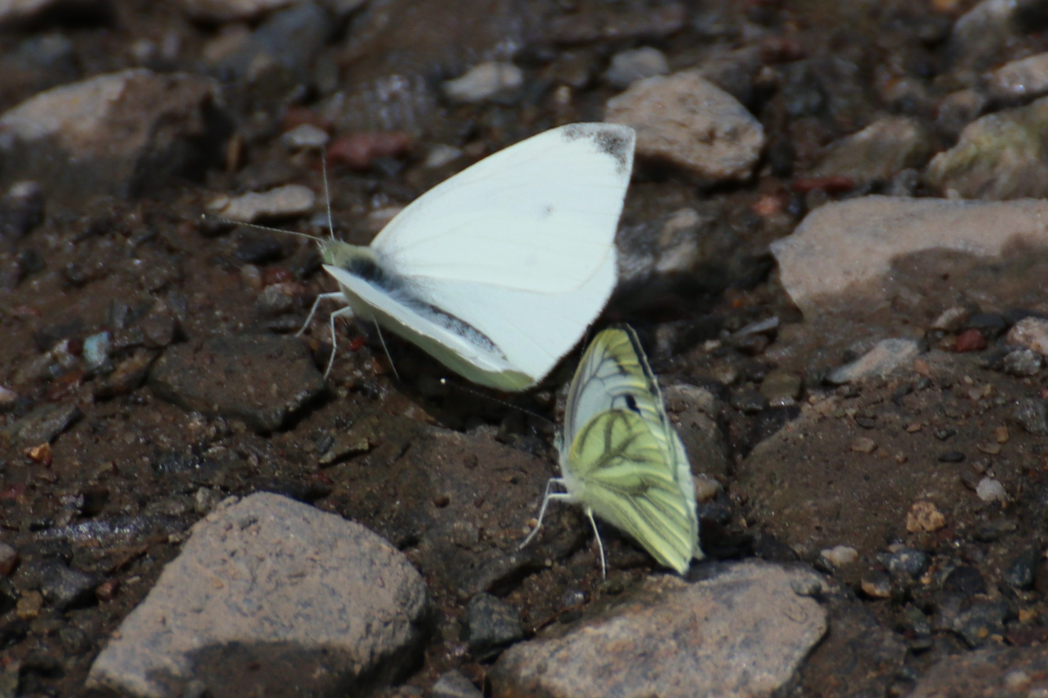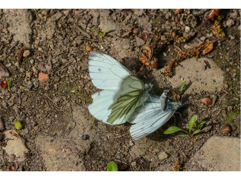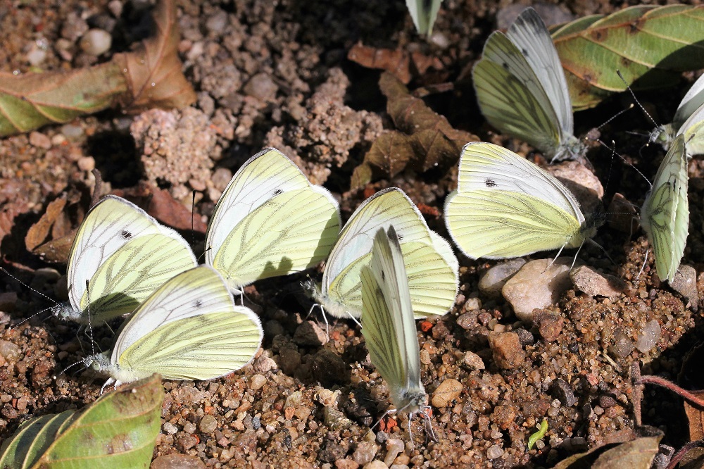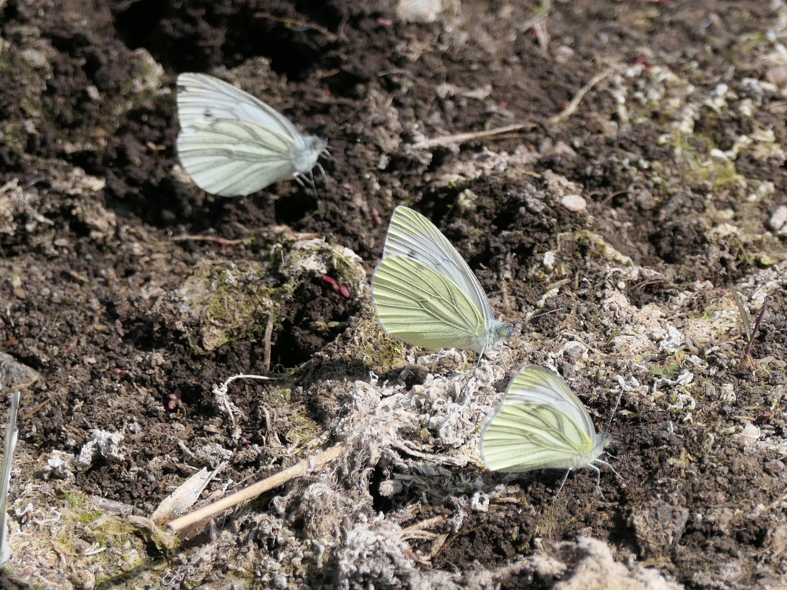 Grünaderweißlinge findet man oft an feuchten Stellen in Gruppen gemeinsam saugend, wie hier im Prießnitztal bei Glashütte am 28.07.2013
