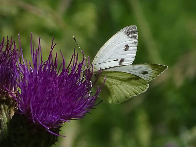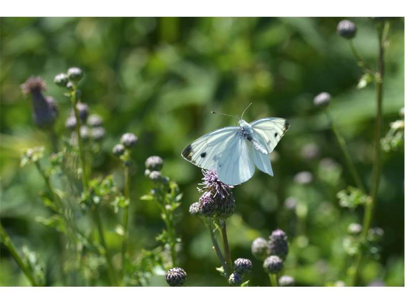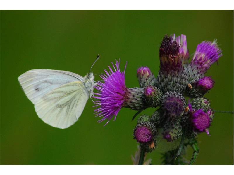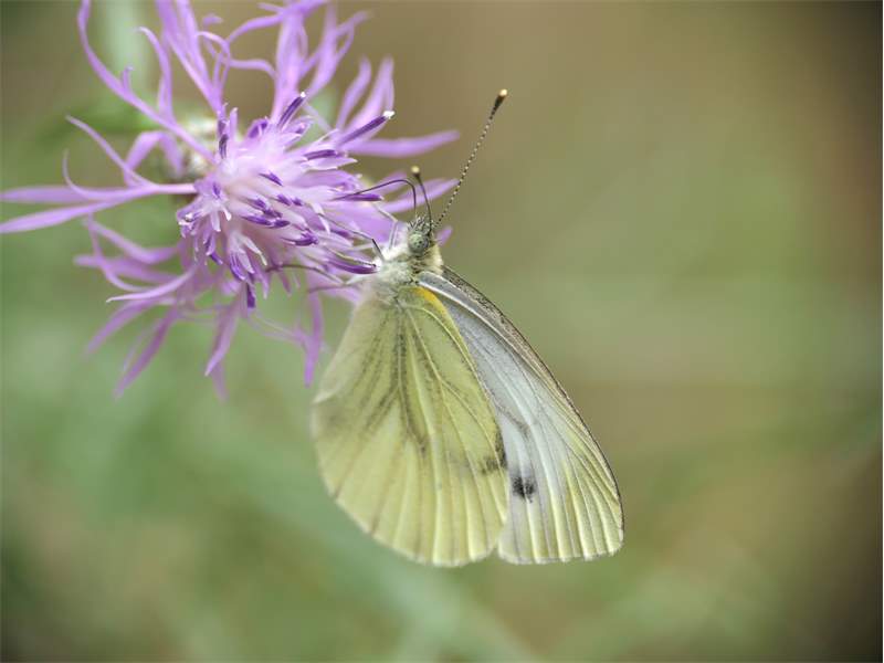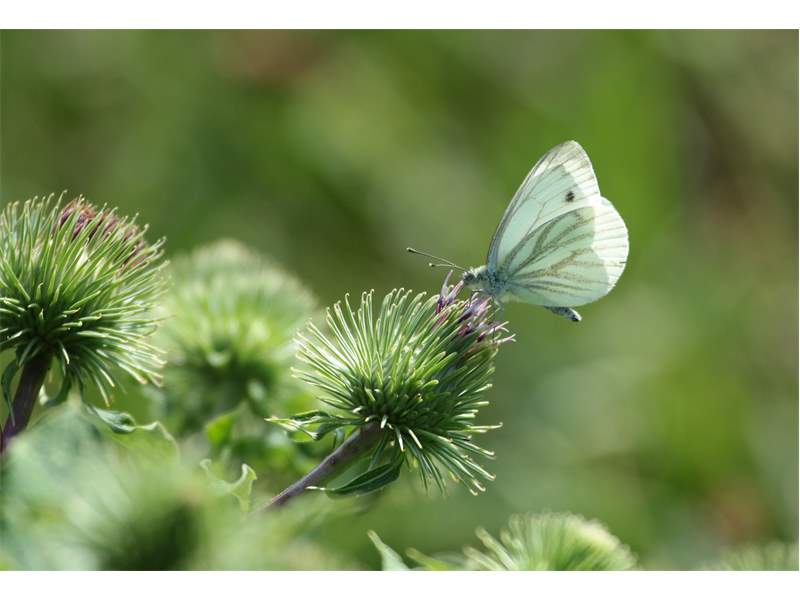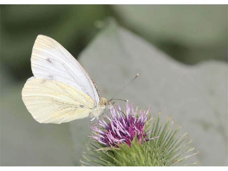 Falter des Rapsweißlings an Arctium-Blütenstand saugend; gefunden in der Dresdner Heide am 24.07.2013
