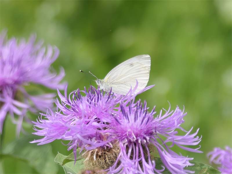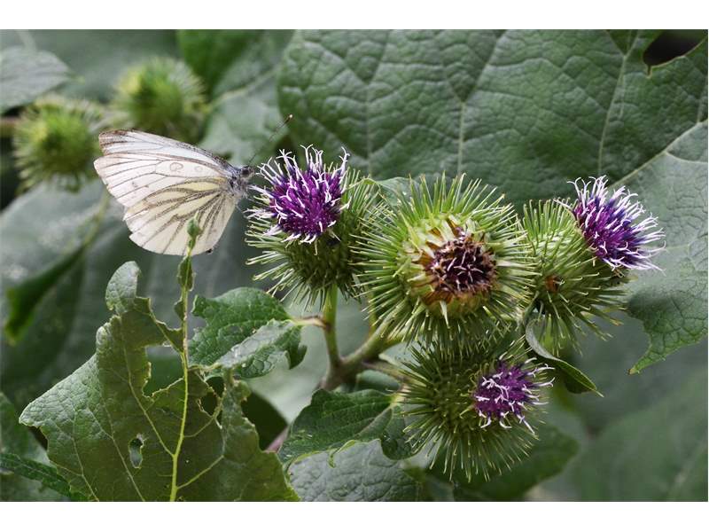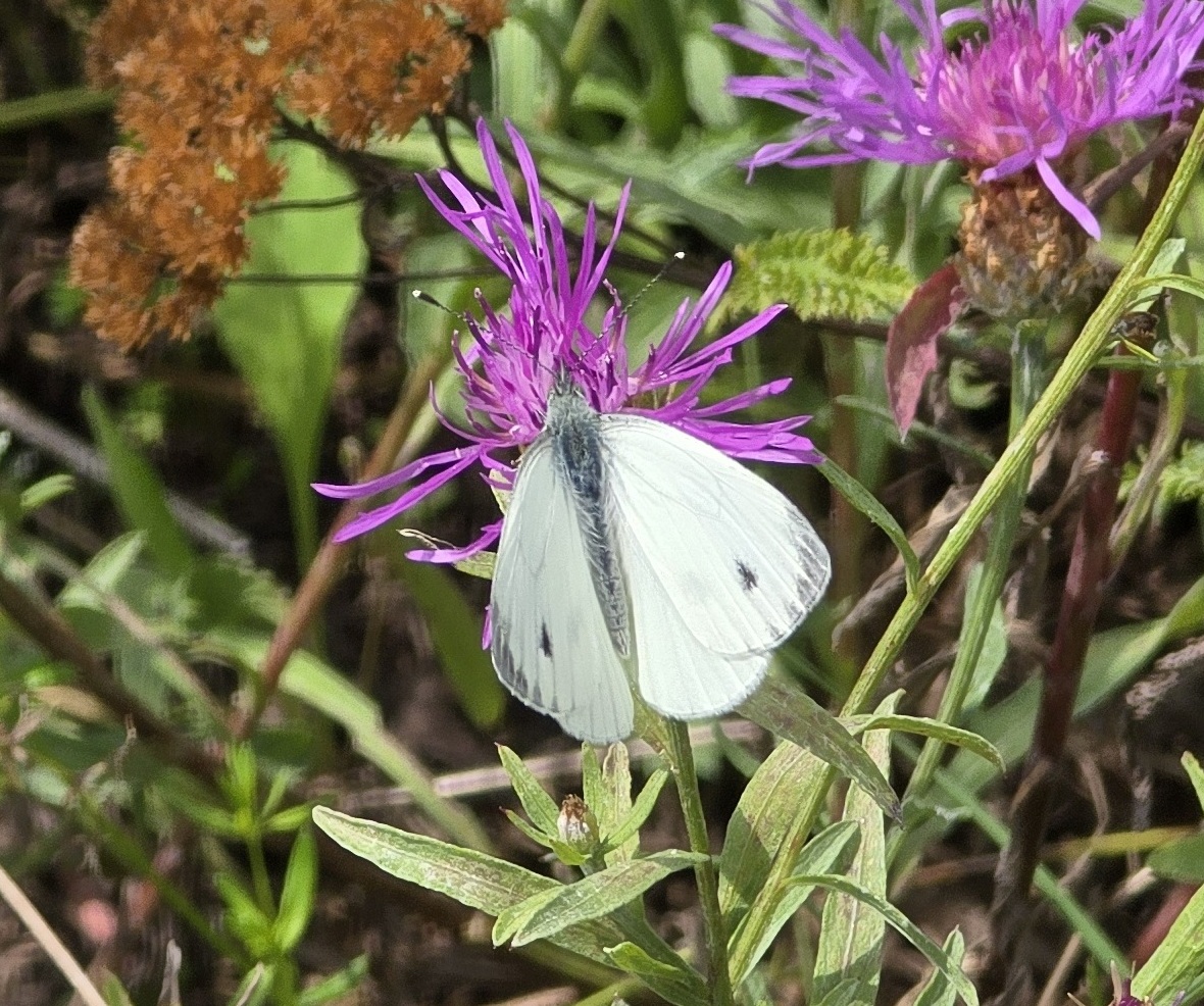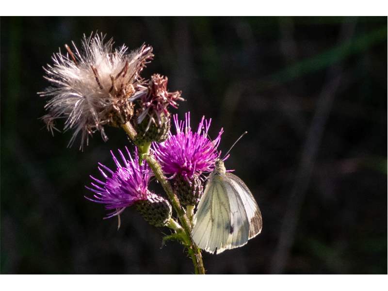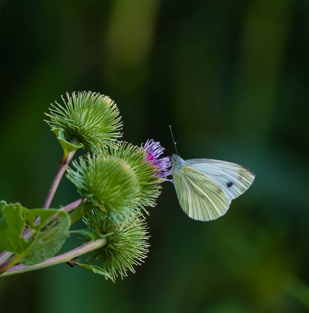 Falter des Rapsweißlings an Arctium-Blütenstand saugend; gefunden in der Dresdner Heide am 24.07.2013