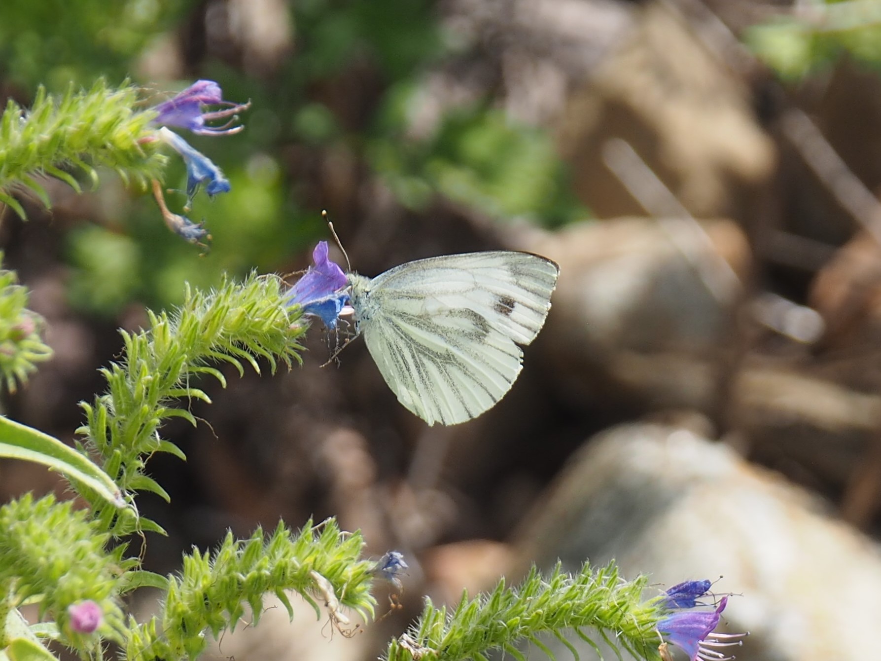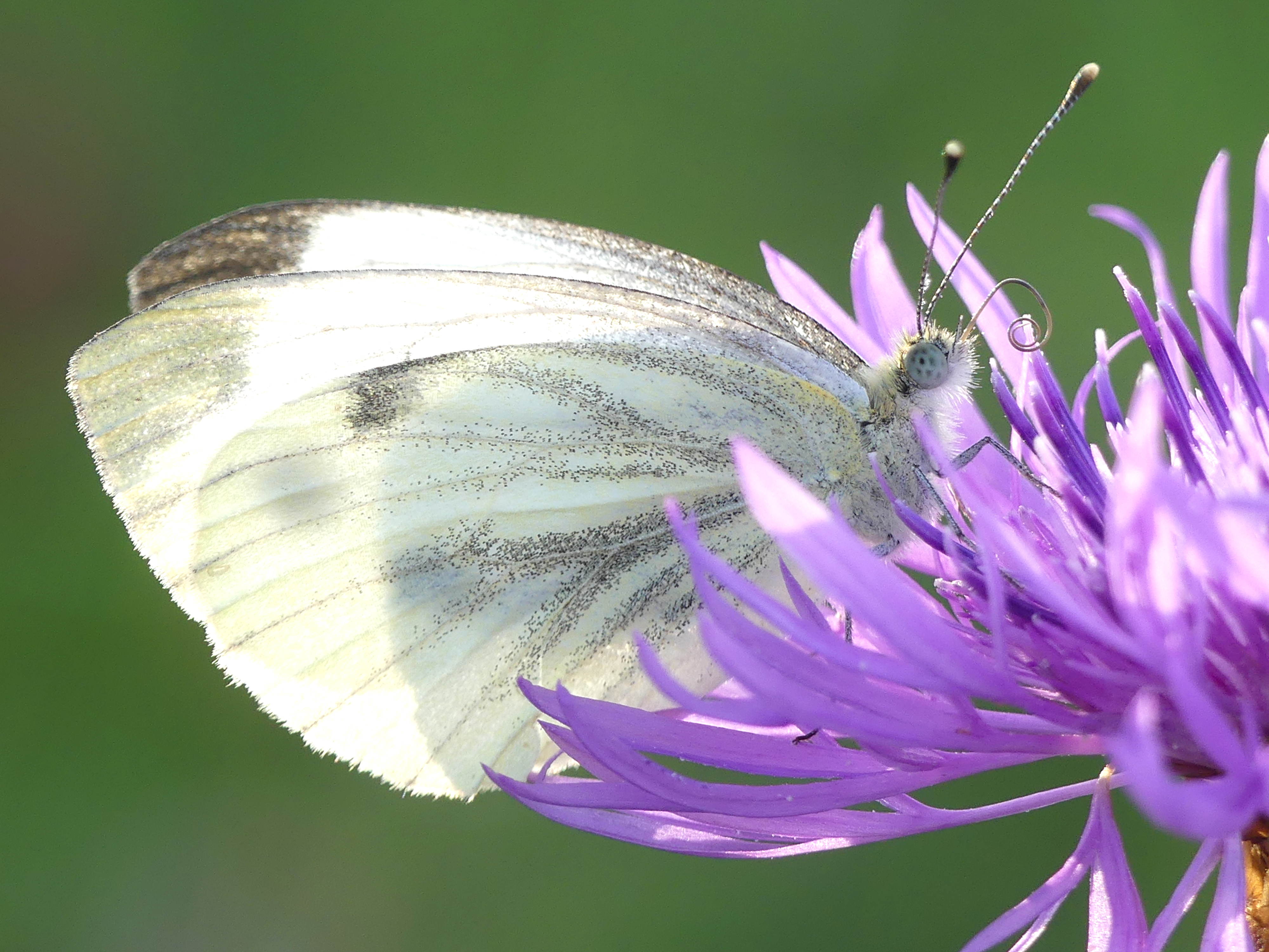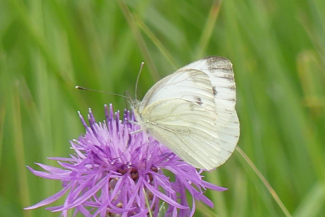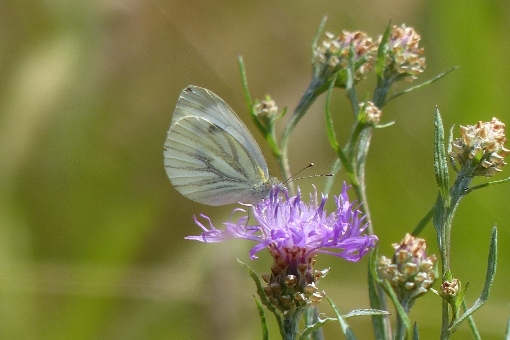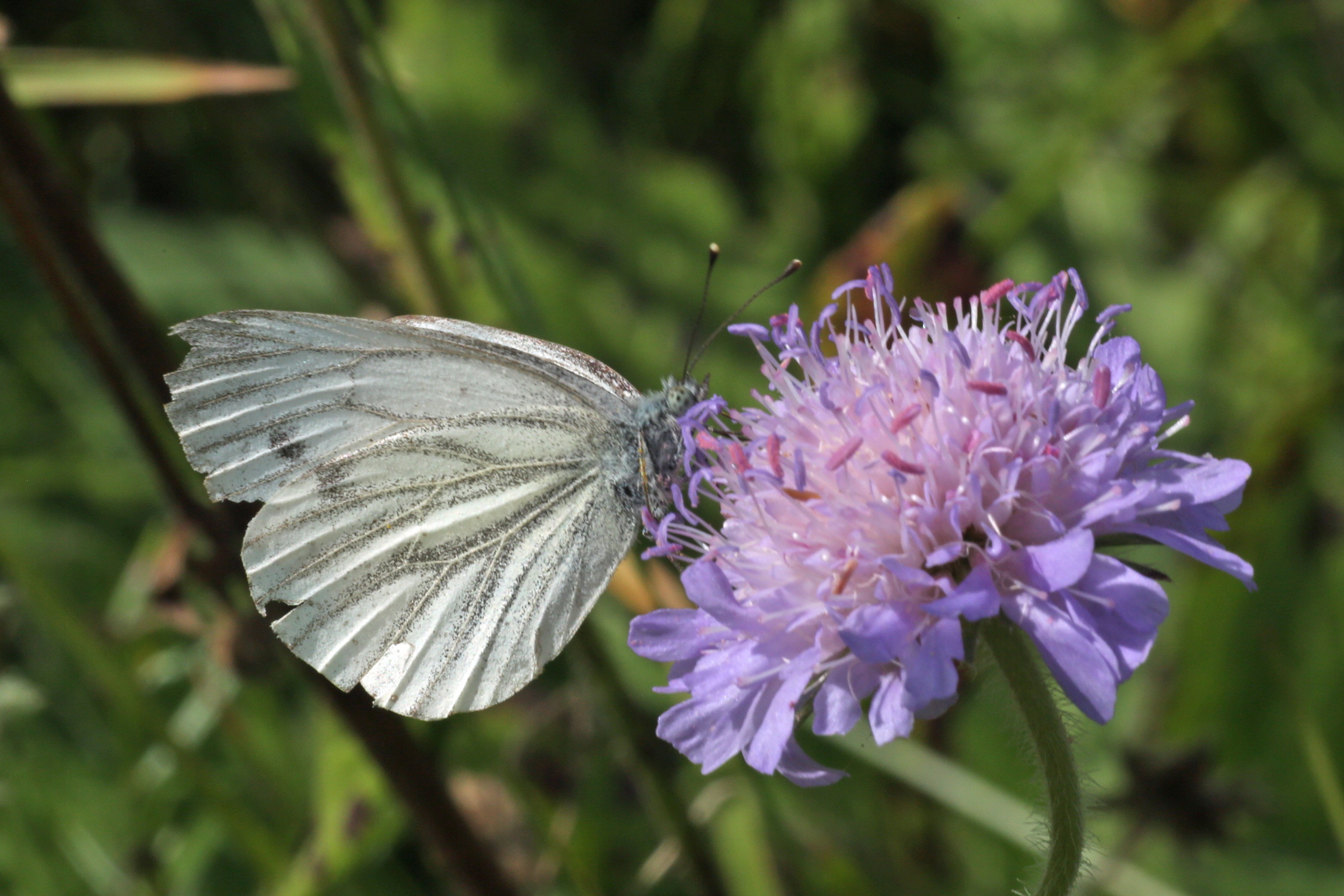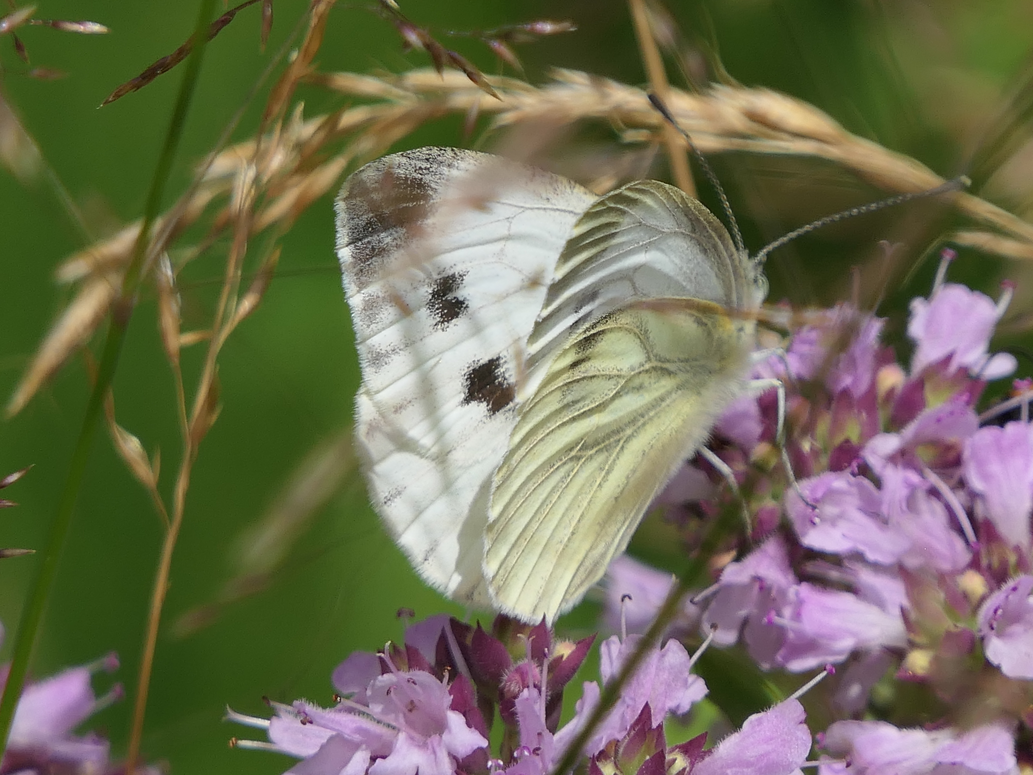 Ein stark abgeflogener Grünaderweißling im Juli 2015 auf dem Mont Salève in Frankreich
