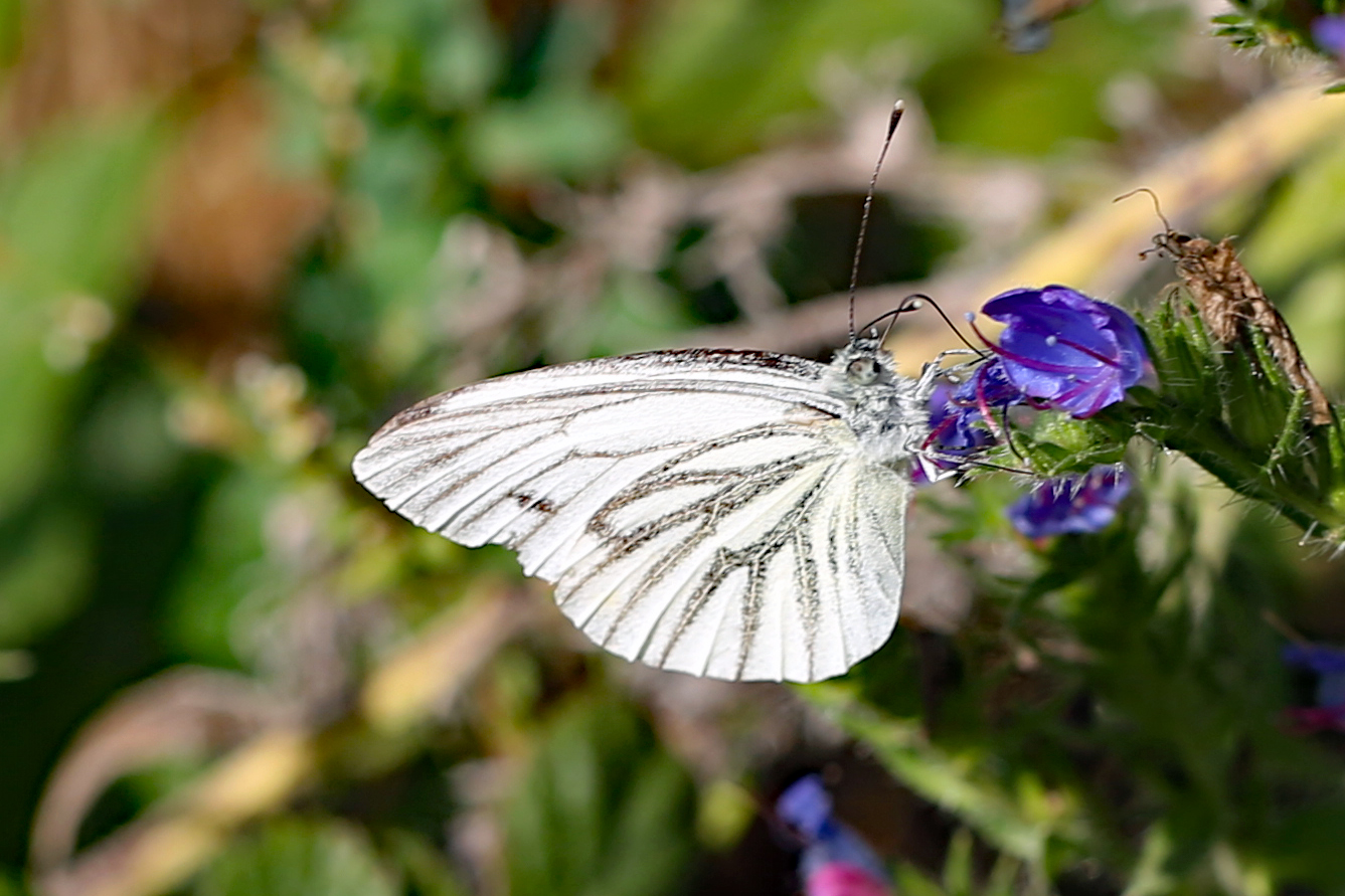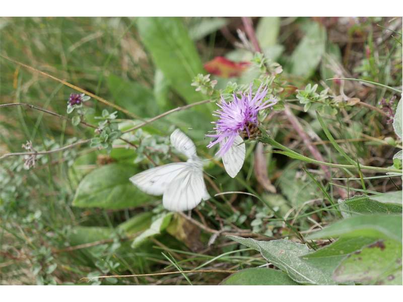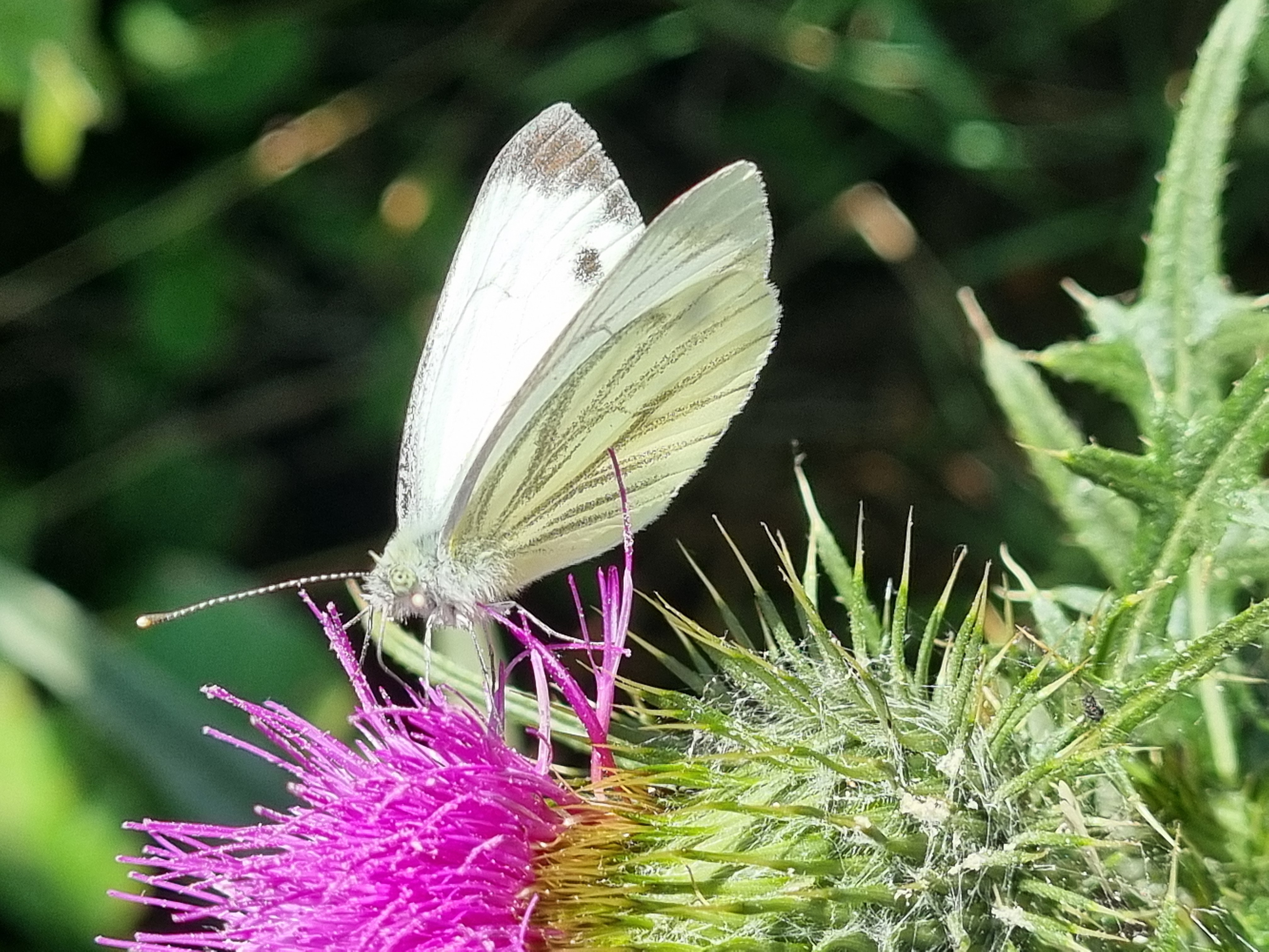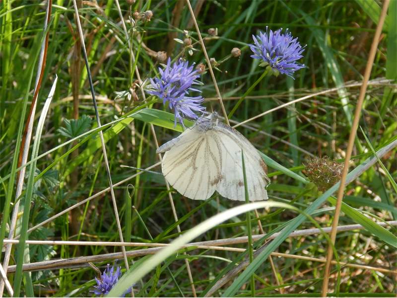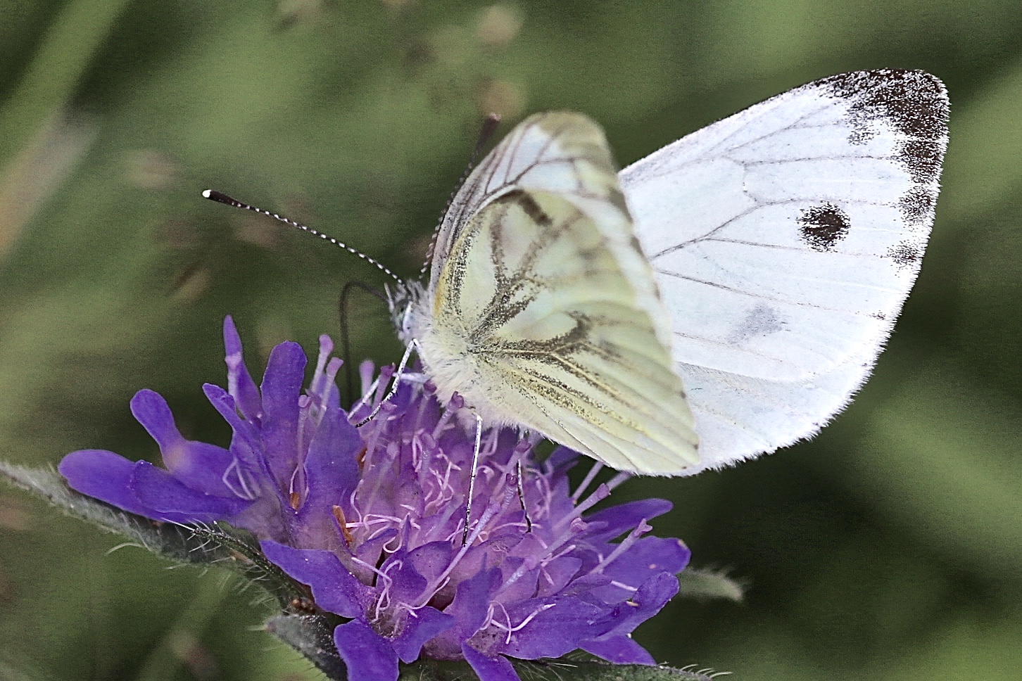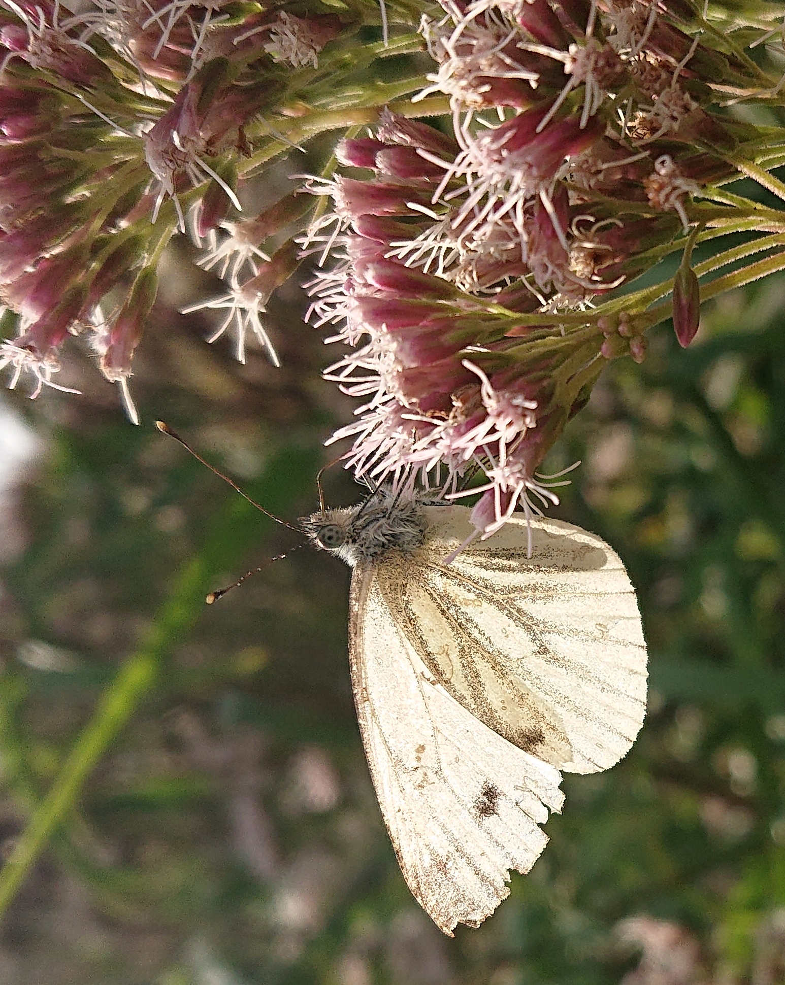 Ein stark abgeflogener Grünaderweißling im Juli 2015 auf dem Mont Salève in Frankreich